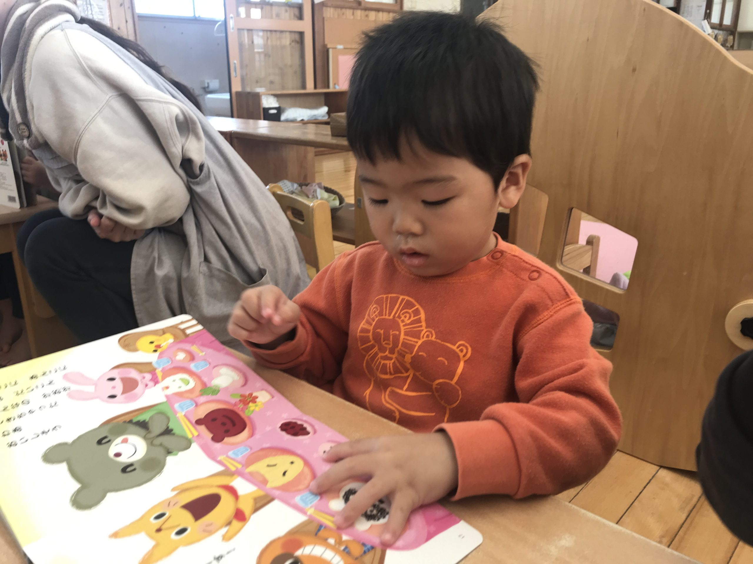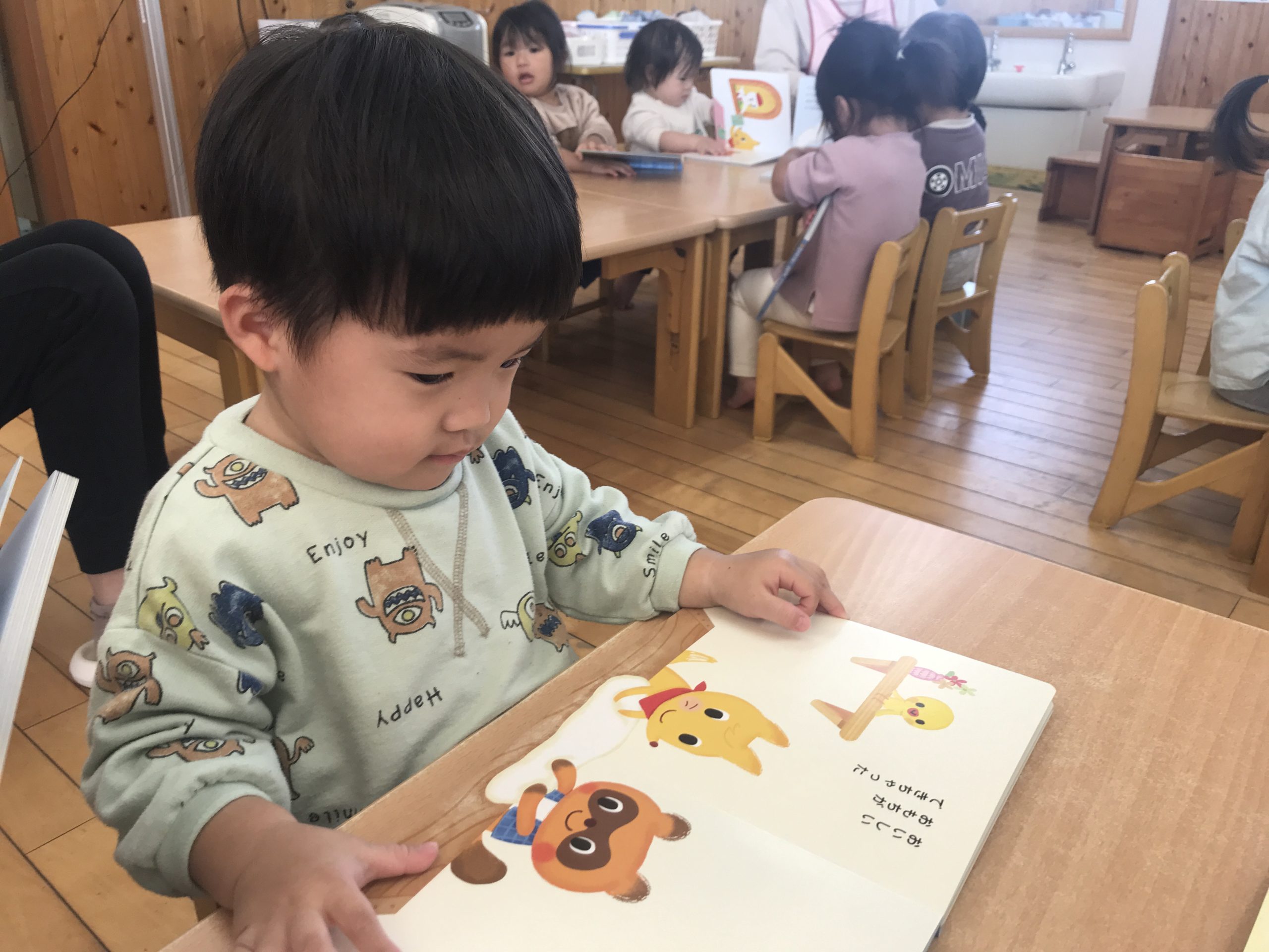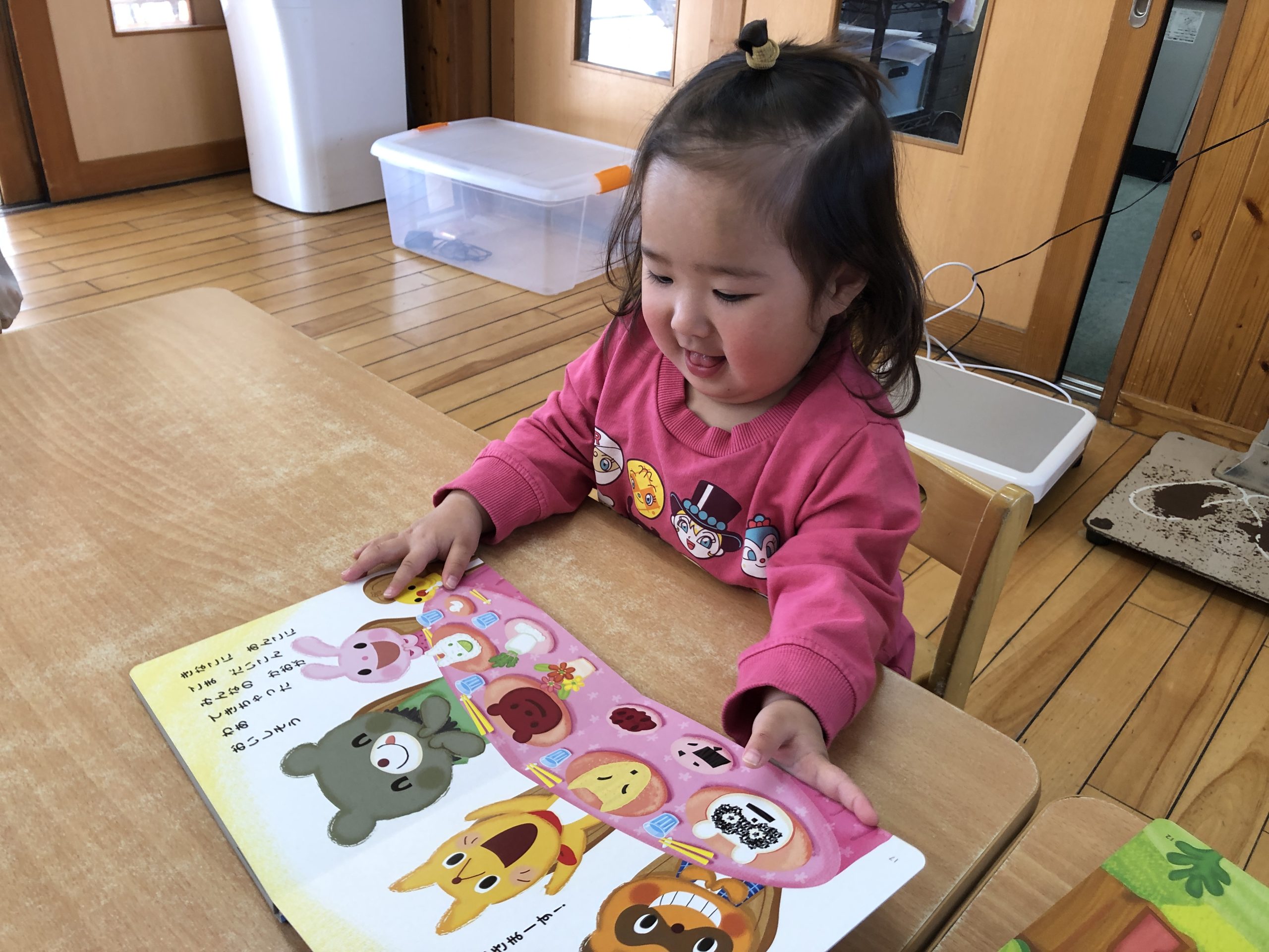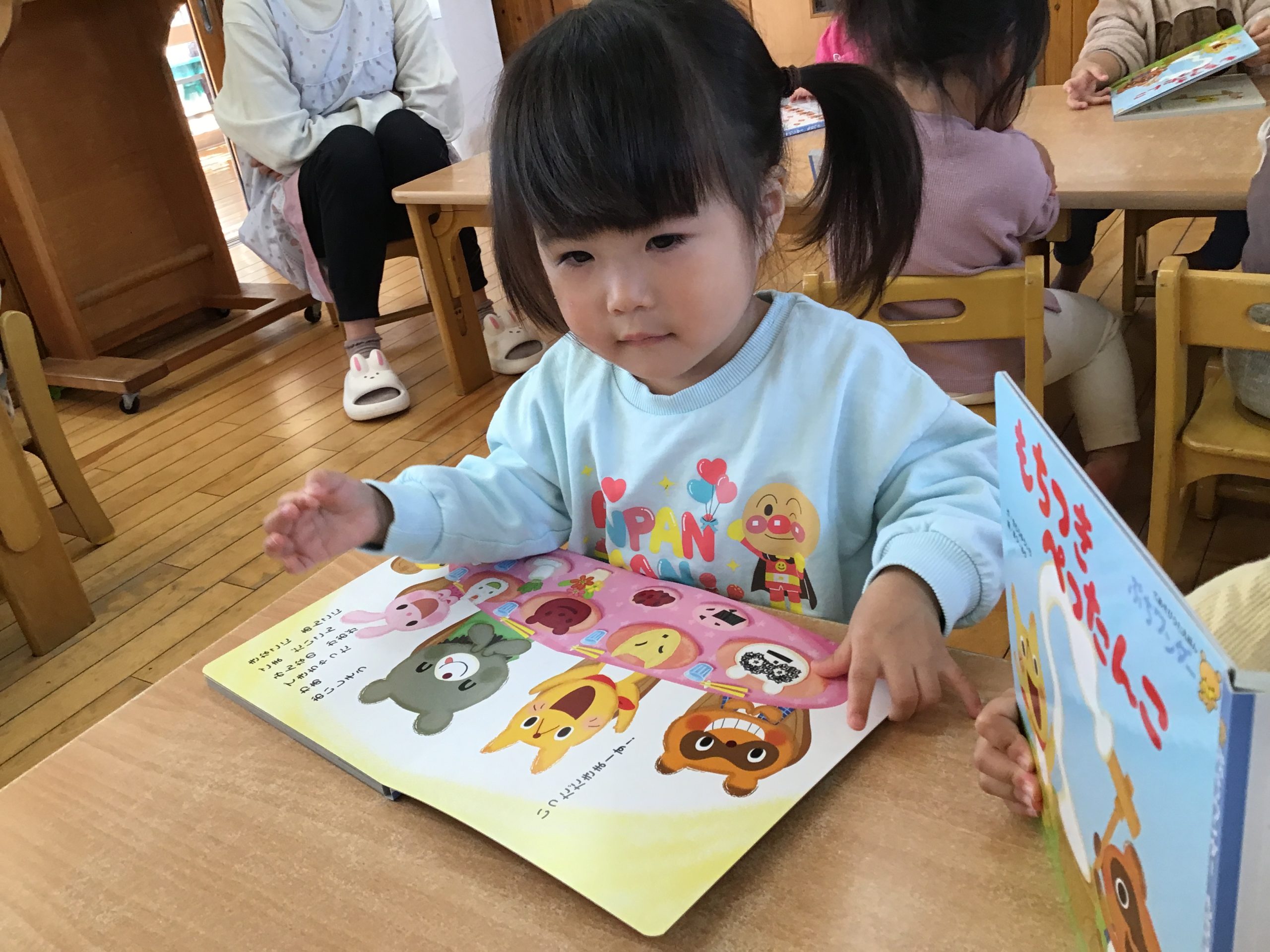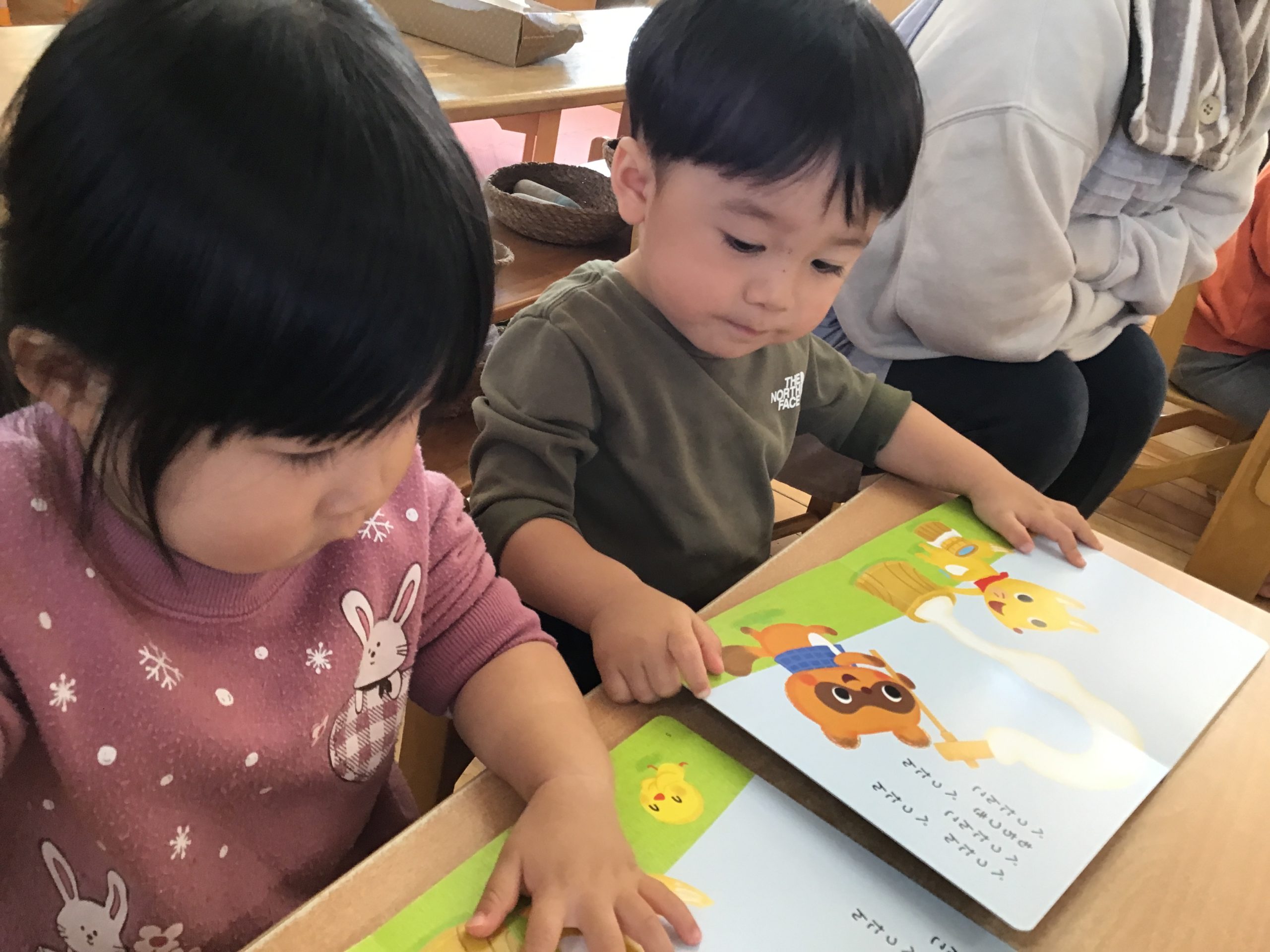 今日は月刊絵本「もちつきぺったんこ」の読み聞かせをしました!ぺったんぺったんとおしゃべりしながら楽しみましたよ♪