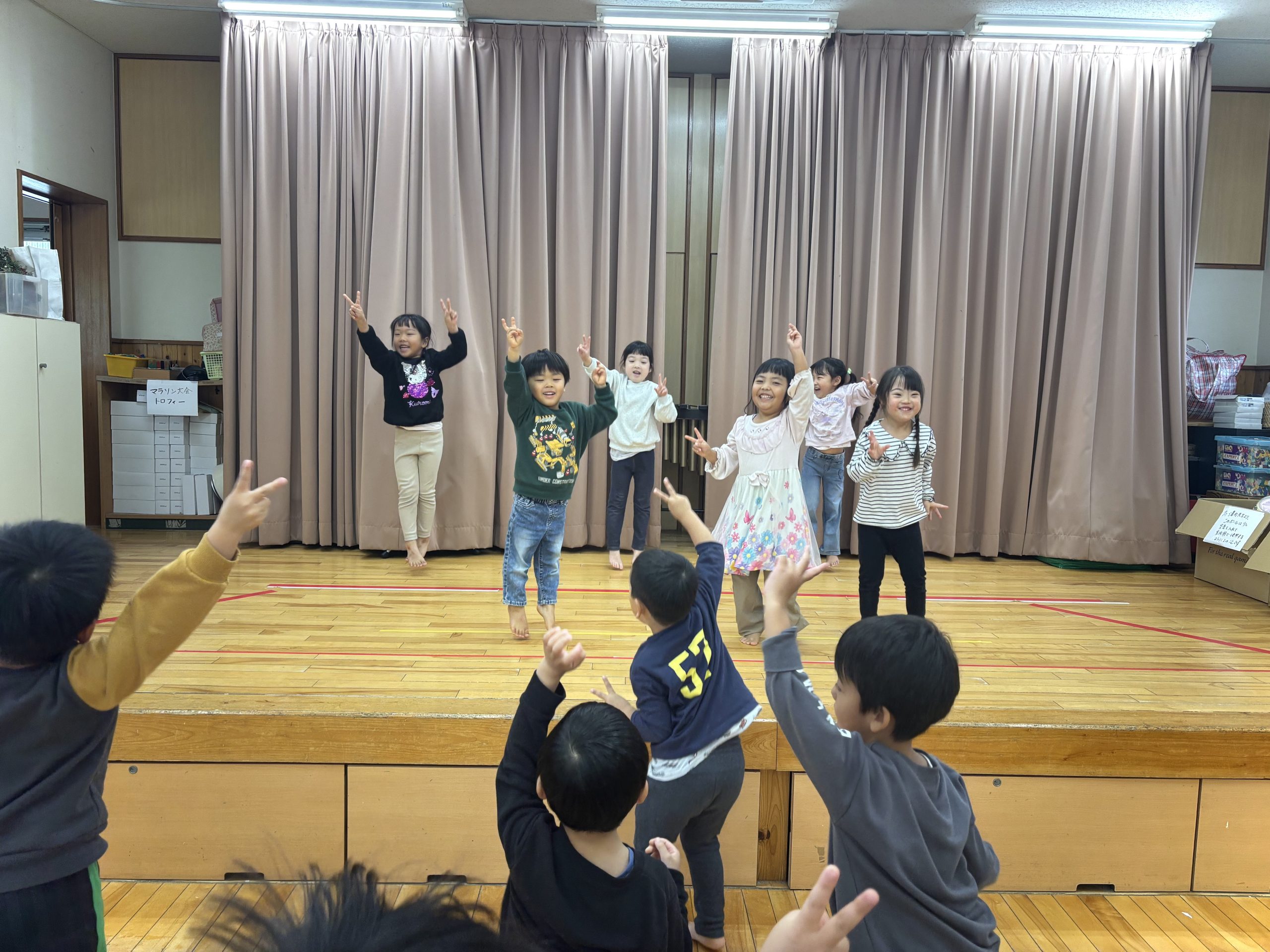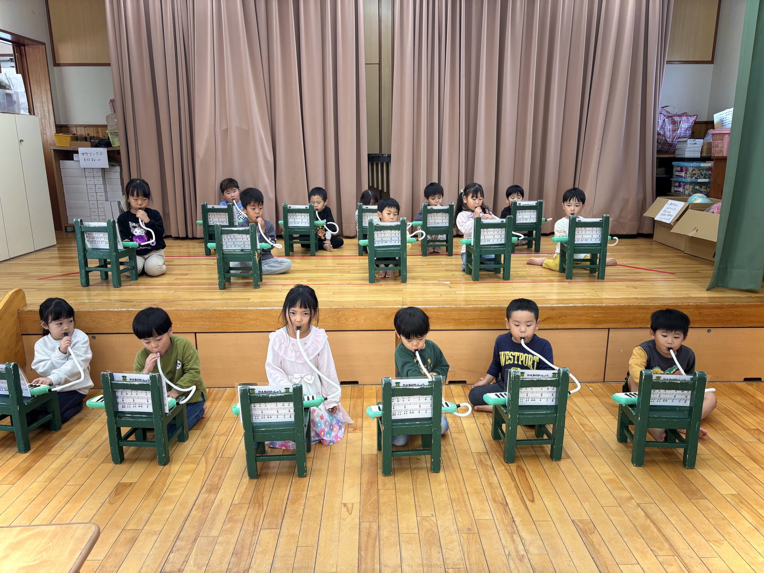 今日は楽器・リズム遊びをしました。発表会に向けて鍵盤ハーモニカとダンスの練習をしました🎶鍵盤ハーモニカは初めてステージで練習してみました✨ダンスではノリノリで楽しそうに踊っていましたよ💖