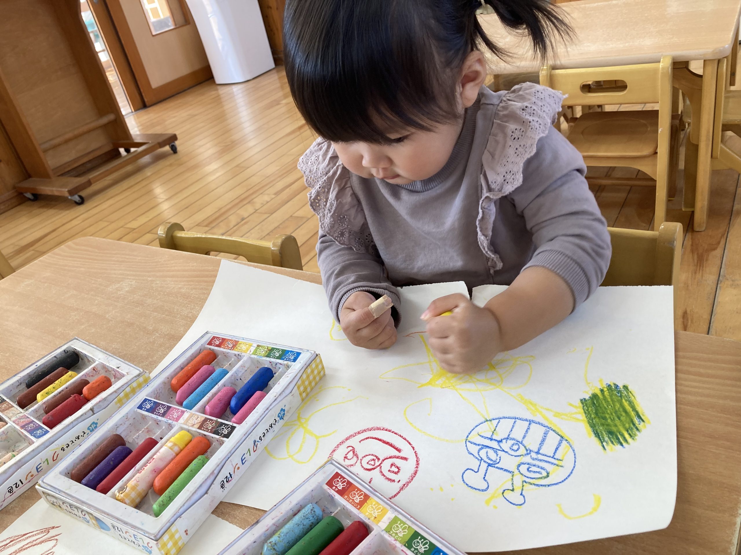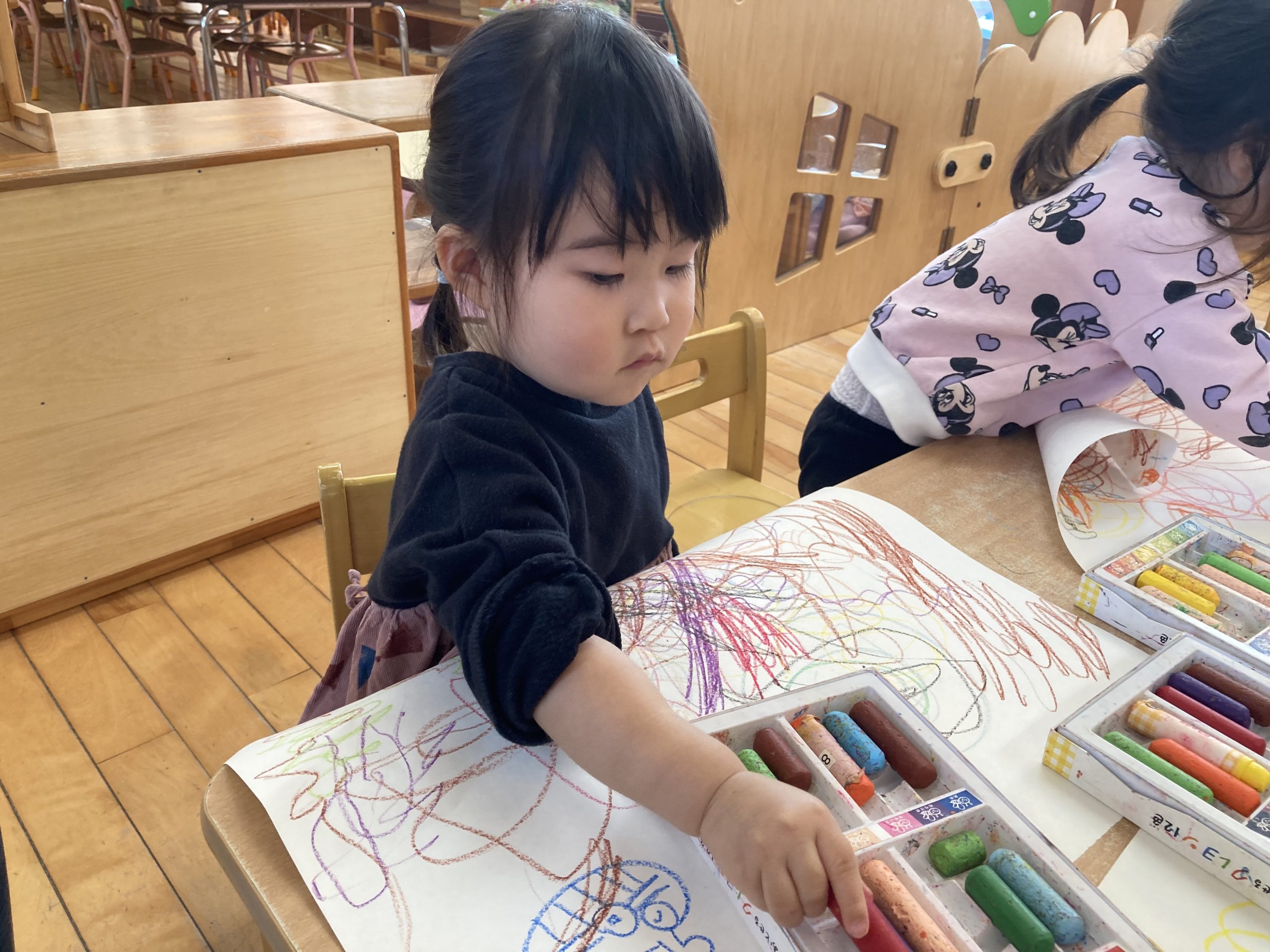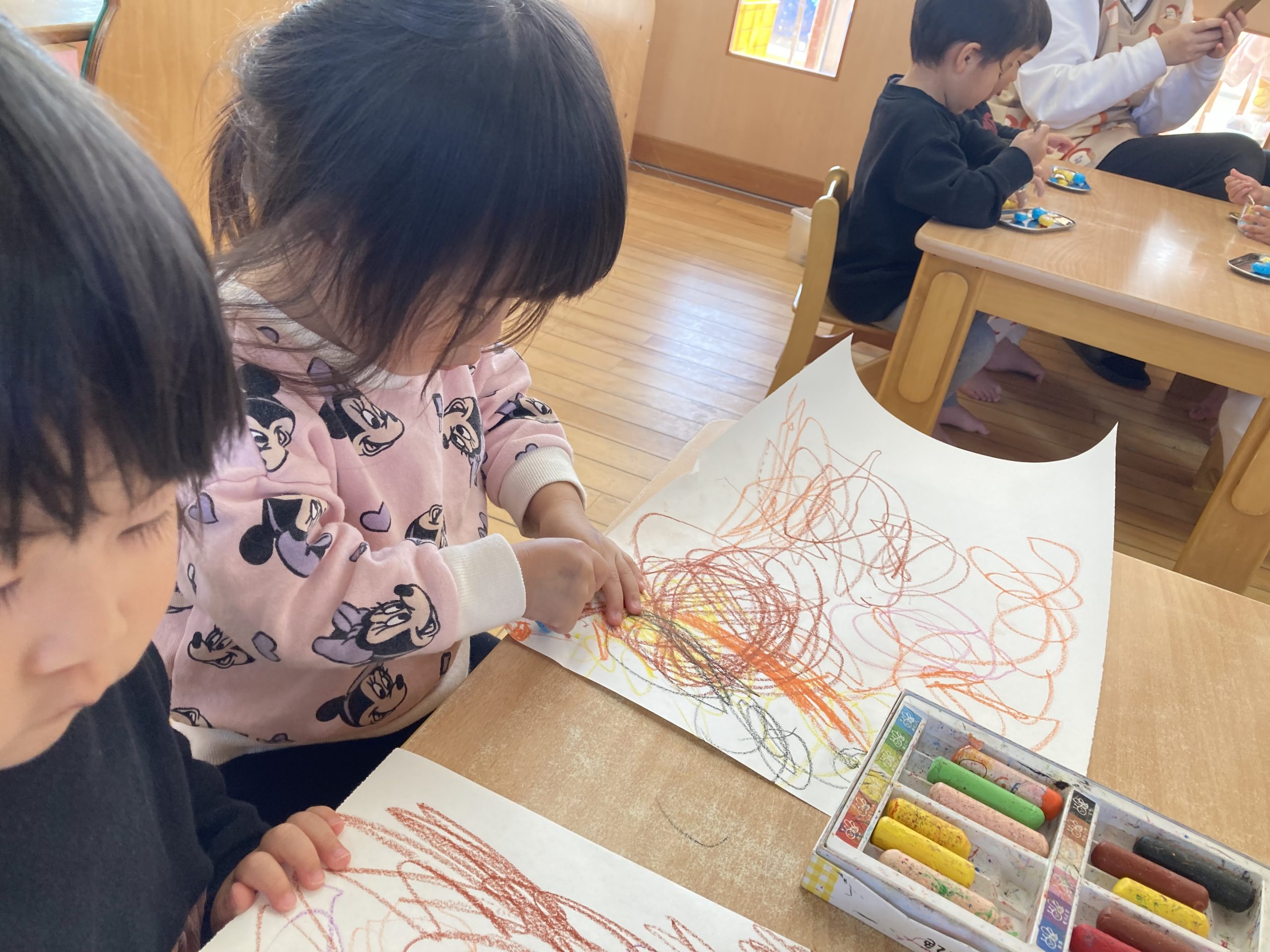 今日は、お絵描きをしました✨たくさん描いて楽しんでいましたよー!!そのあとは、戸外遊びをしました♪