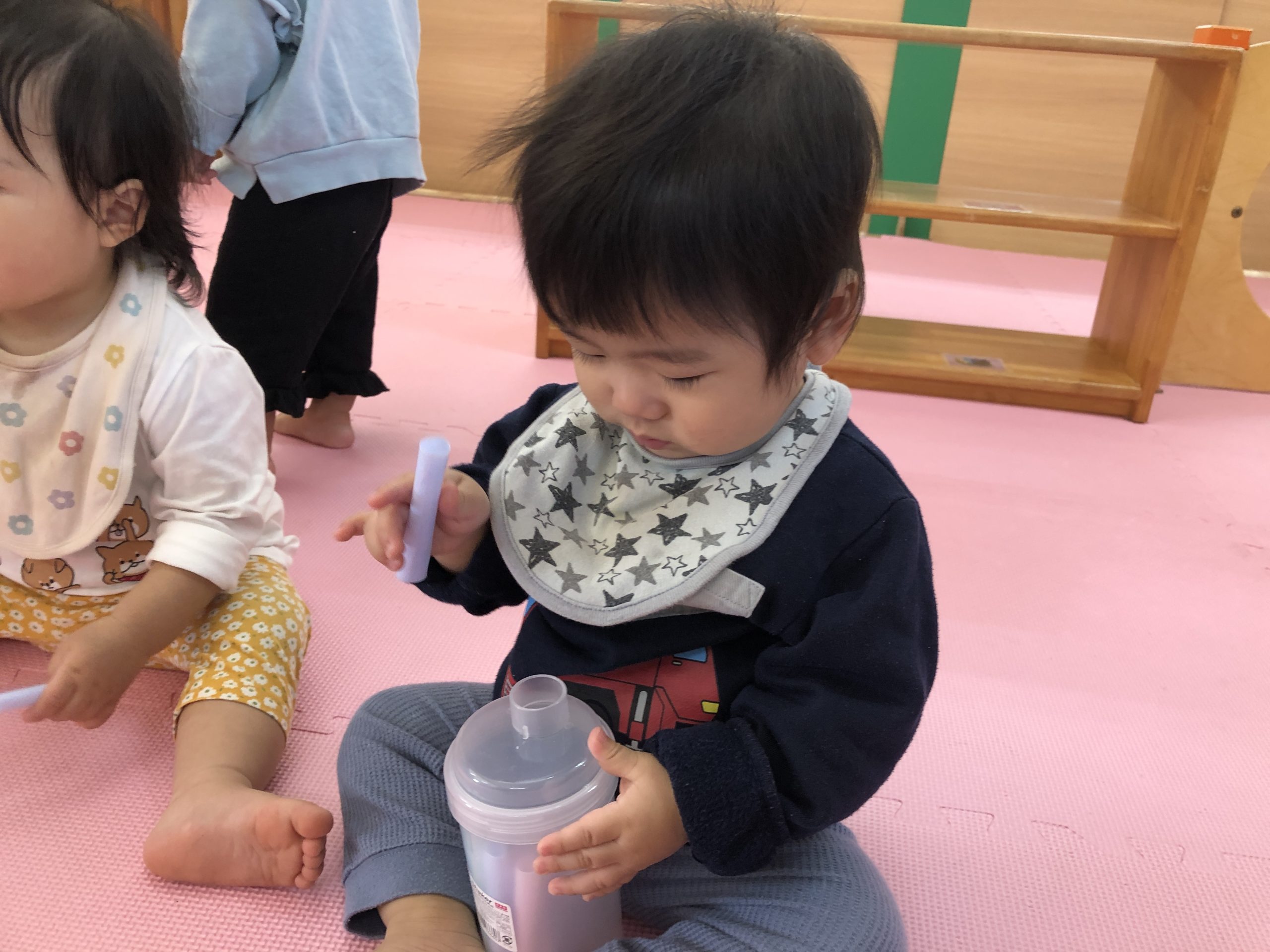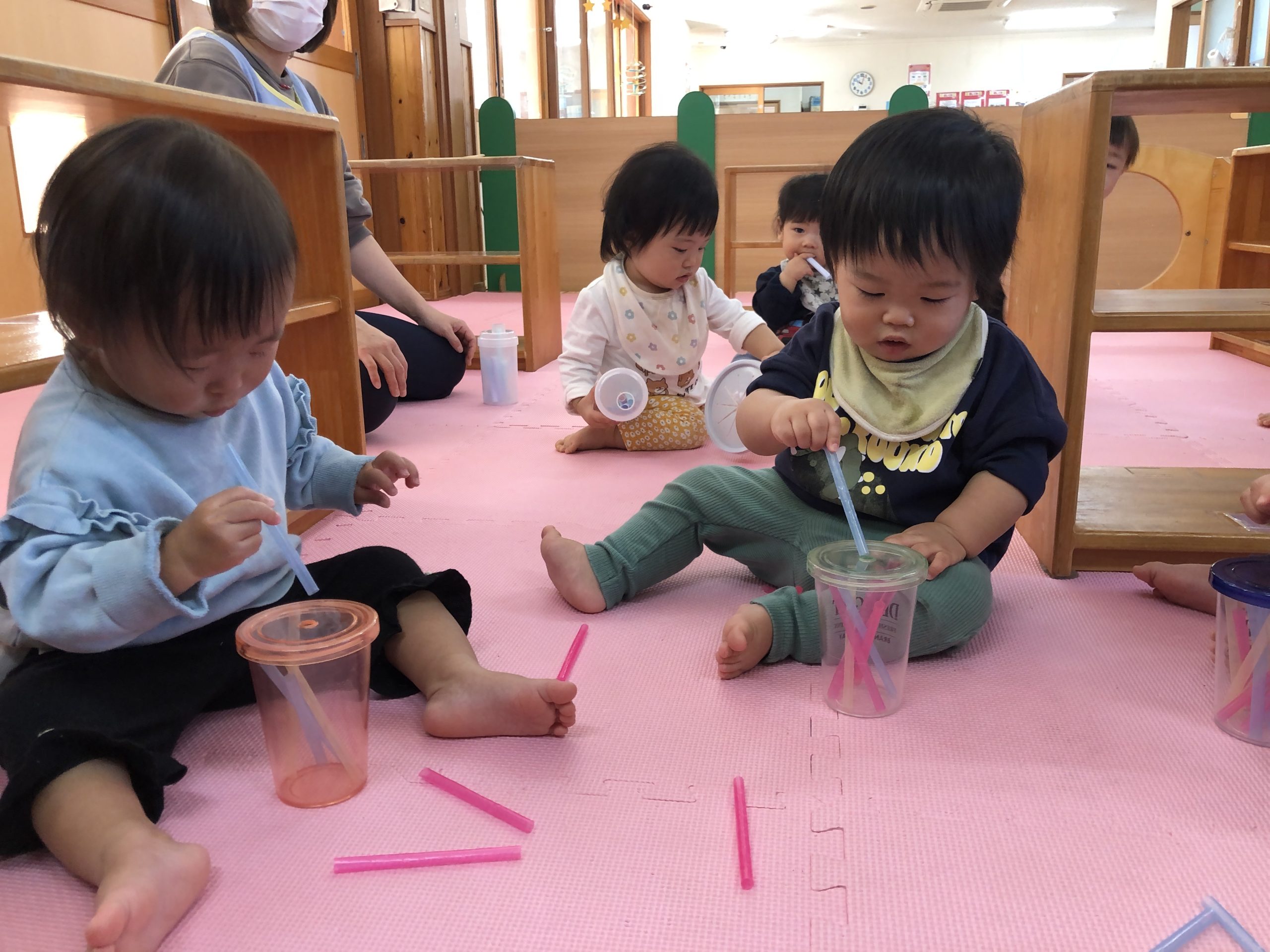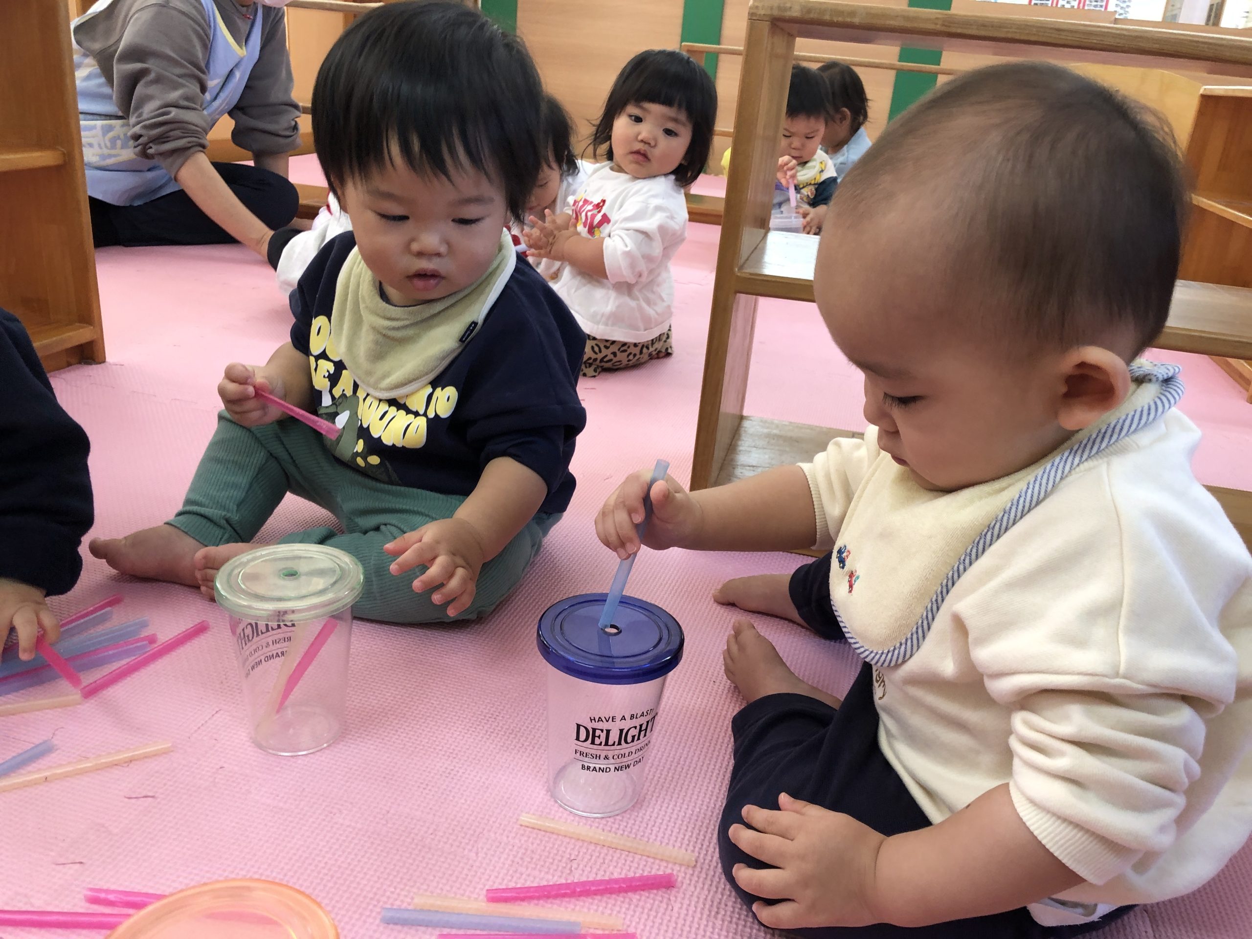今日は、ストロー落とし玩具であそびました。太さの違うストローを上手に容器に入れていましたよ🎶集中して何度も楽しんでいたお友だちでした☆彡
