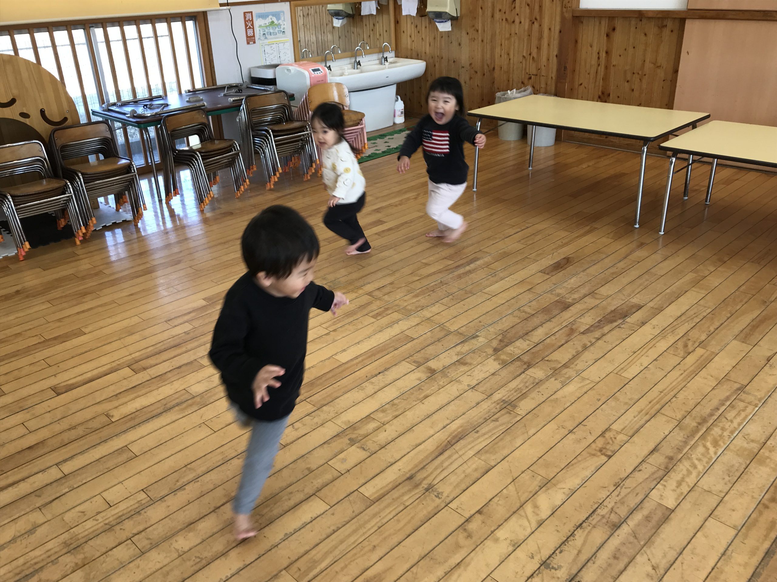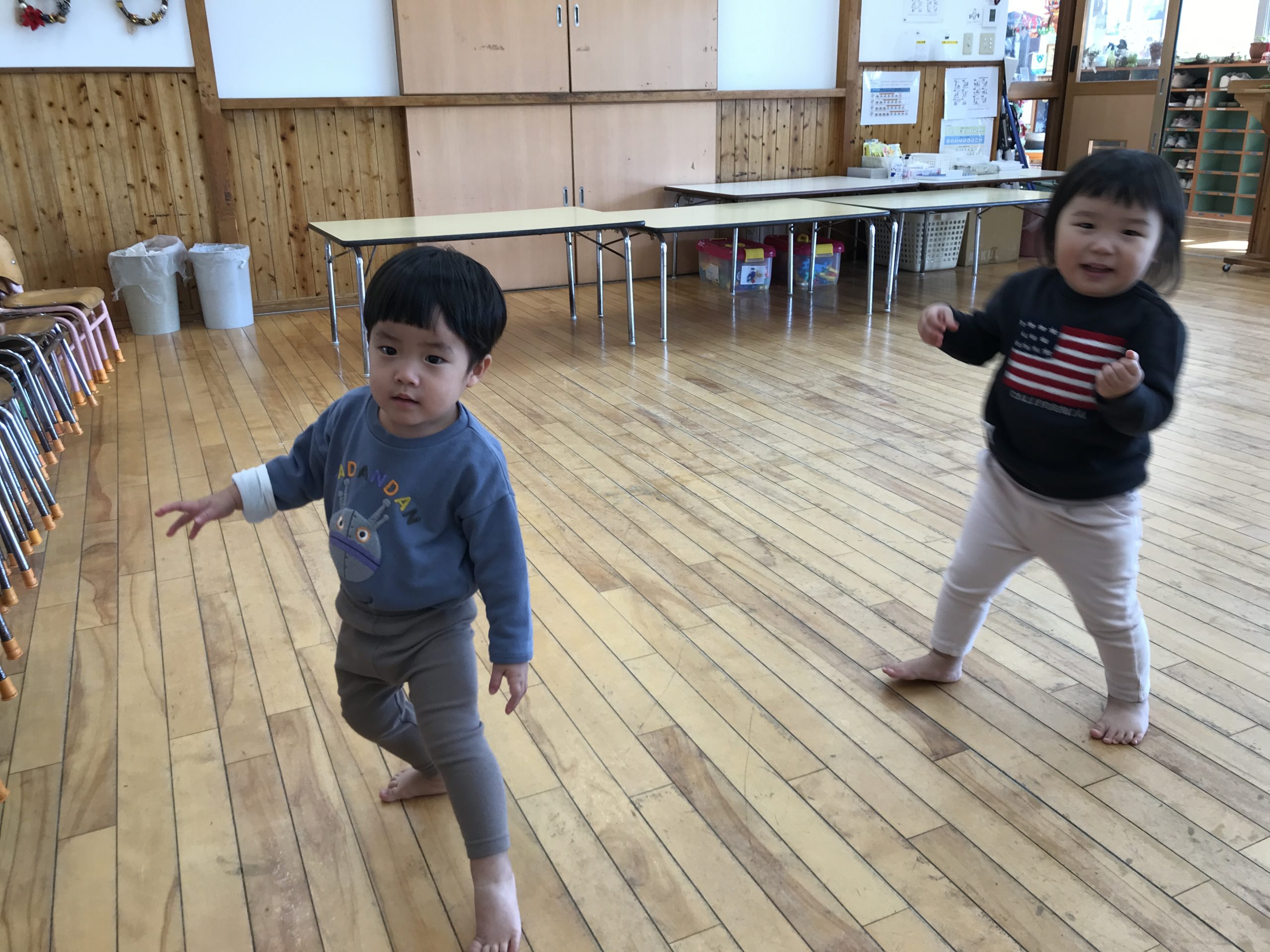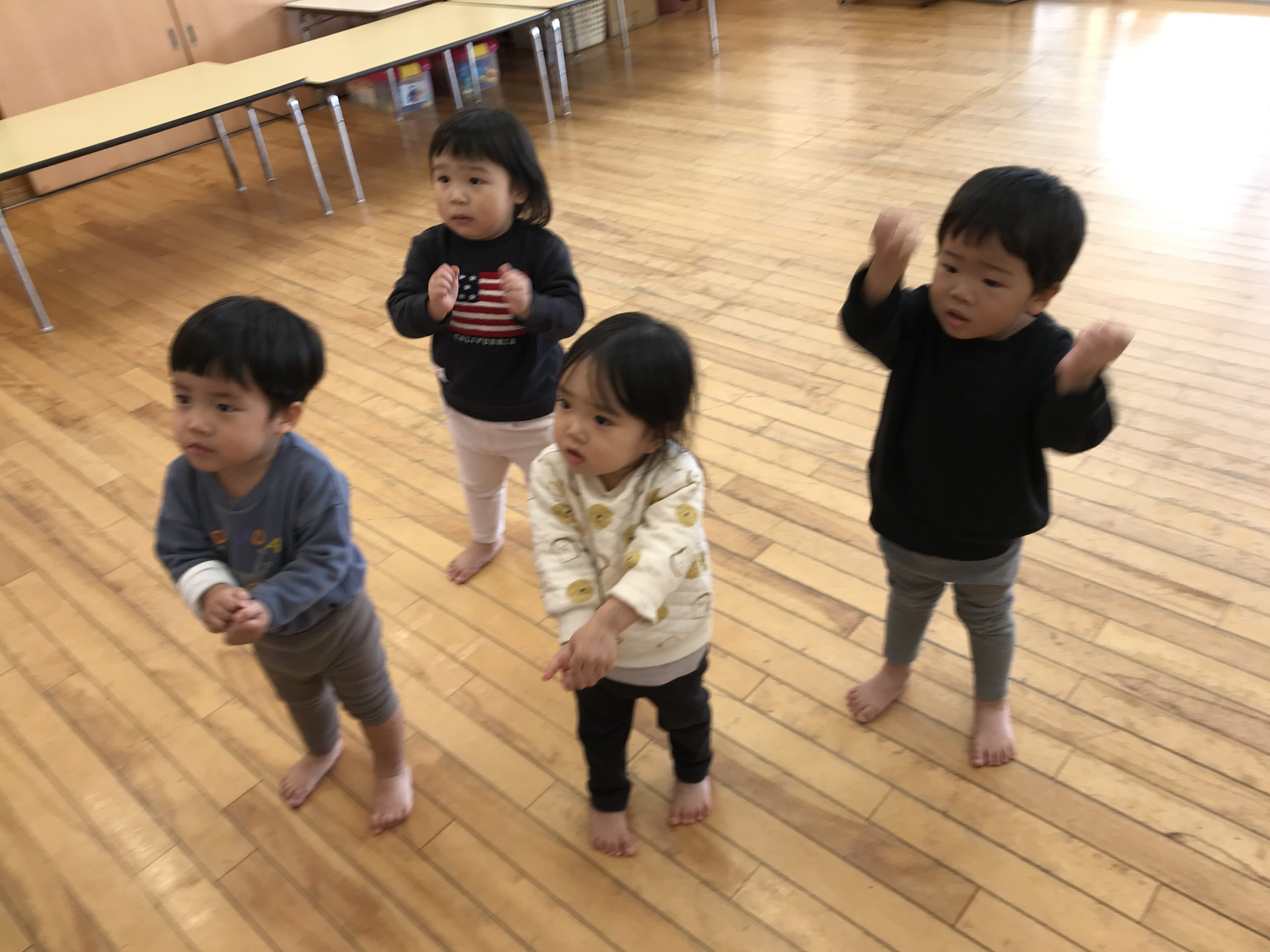 今日はリズム遊びをしました✨元気に踊っていましたよ✨また、後半は、足蹴りバイクに乗って遊びました~!!