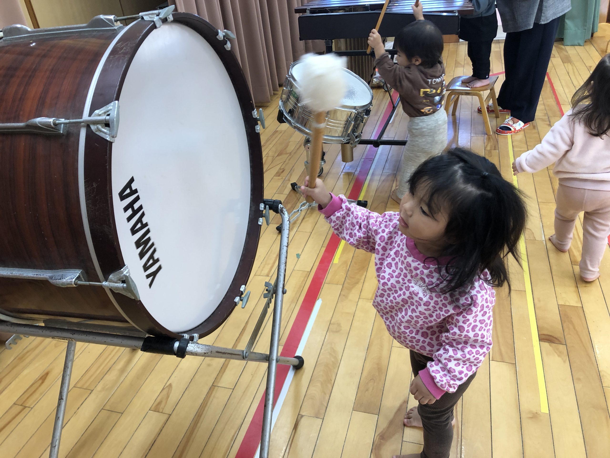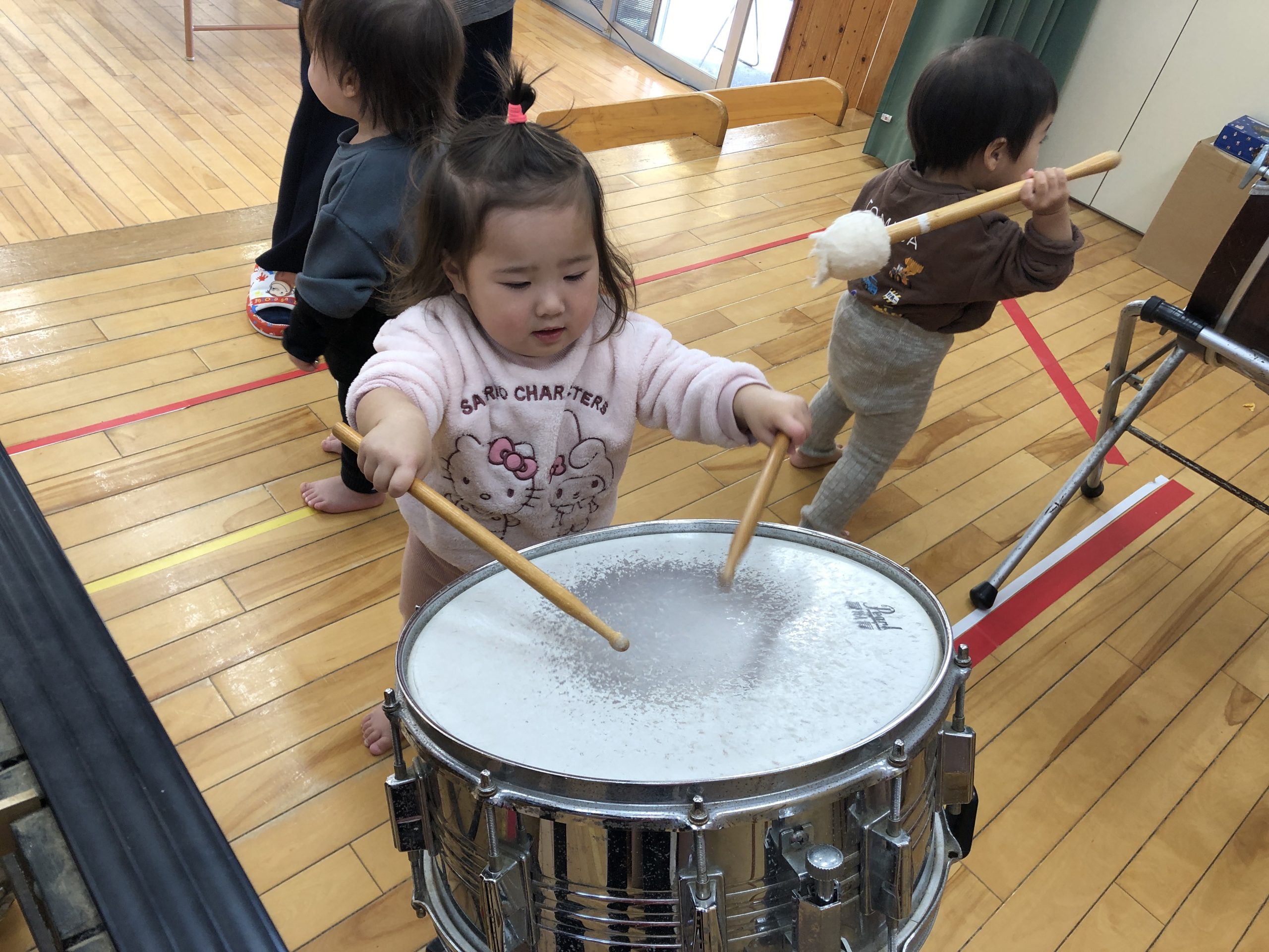 今日はいろいろな種類の楽器で遊びました!音の大きさや音色の違いを感じながら楽しみしたよ🥁