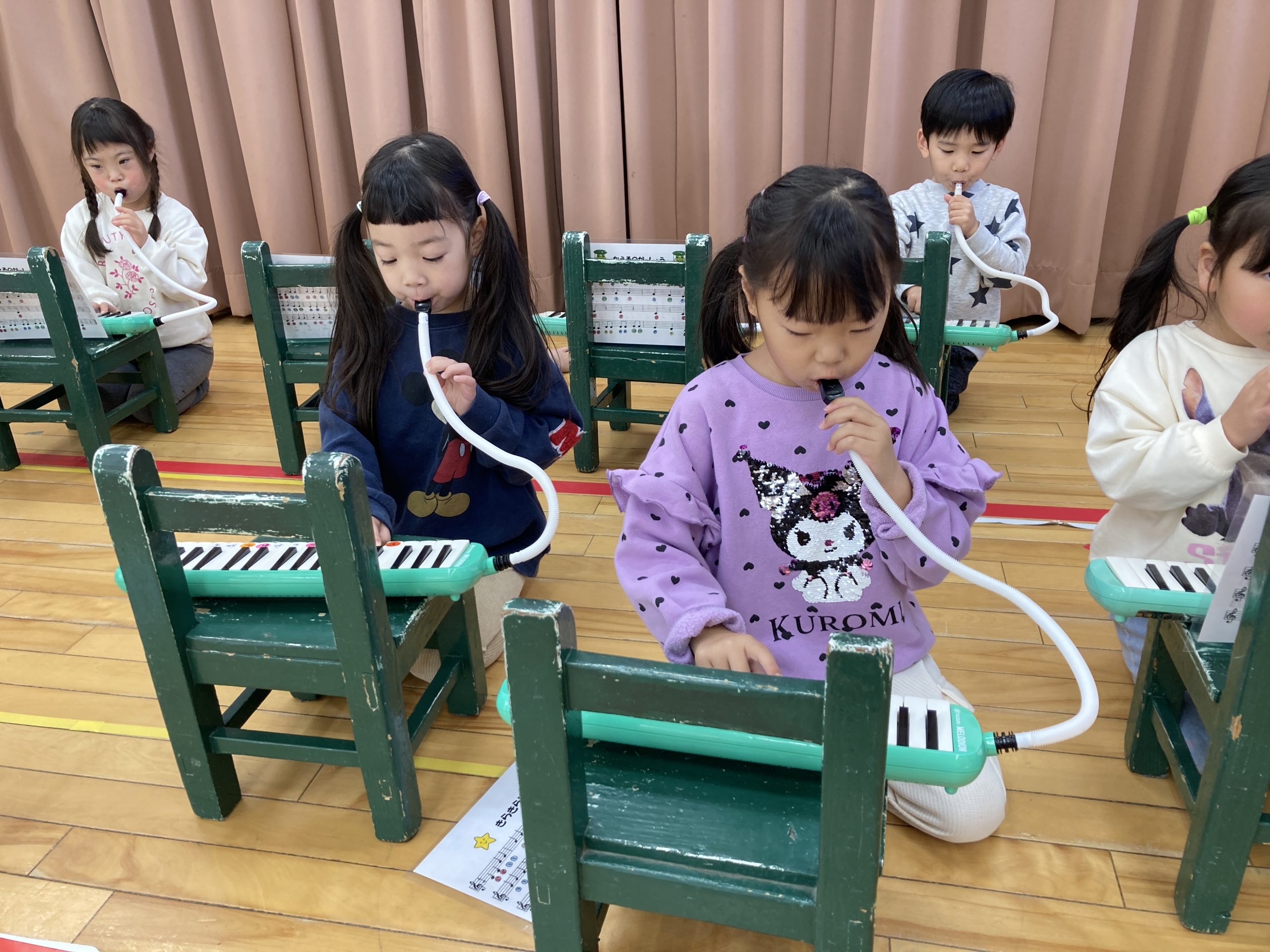 今日はリズム・楽器遊びで、発表会でするダンスと鍵盤ハーモニカの練習をしました🎶鍵盤ハーモニカでは楽譜を見ずに弾くことを頑張っていました✊🏻また、園庭でも遊びました⭐️