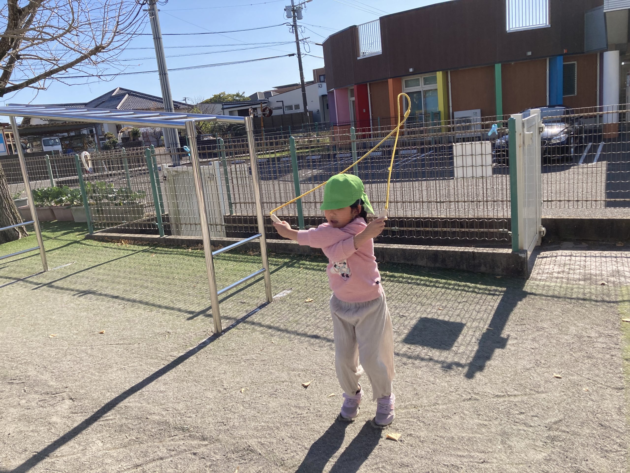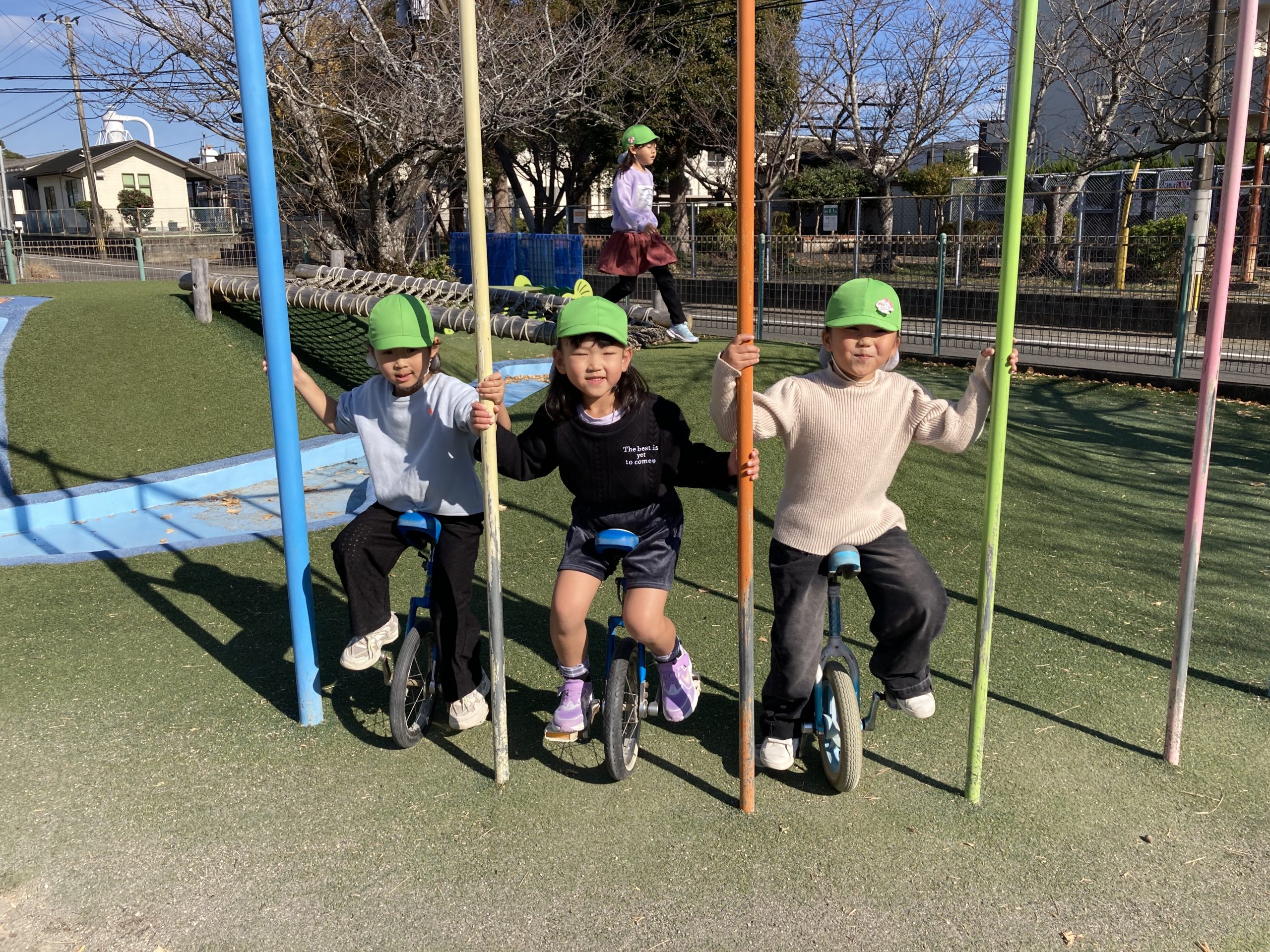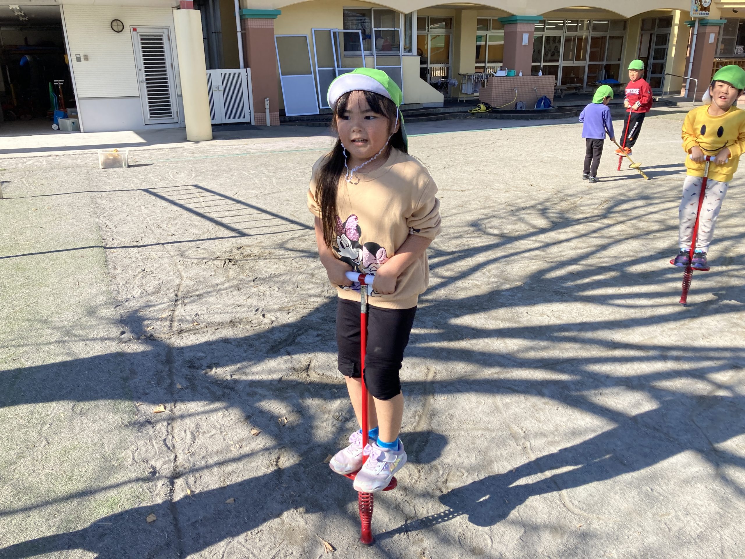 今日は、戸外あそびをしました。一輪車の練習を頑張っていました‼️ホッピングでは、みんなで競走して誰が1番長く跳べるか競走していました。