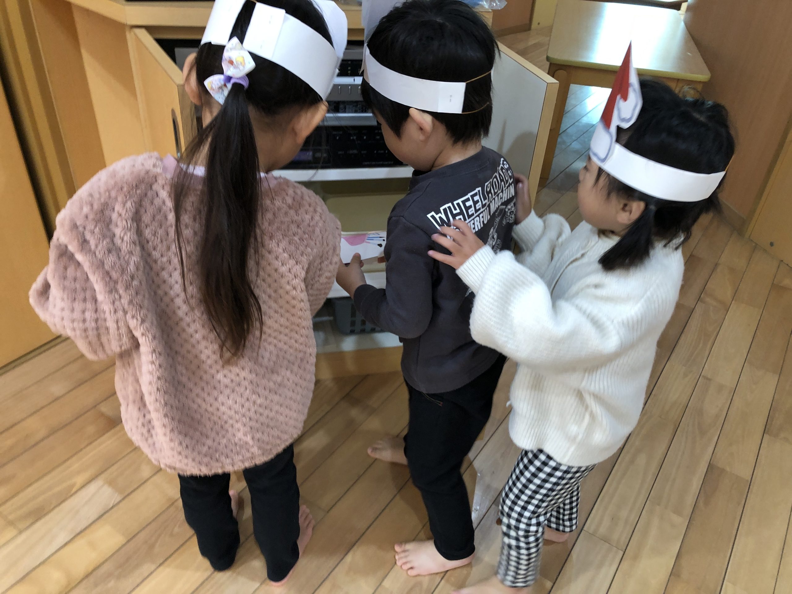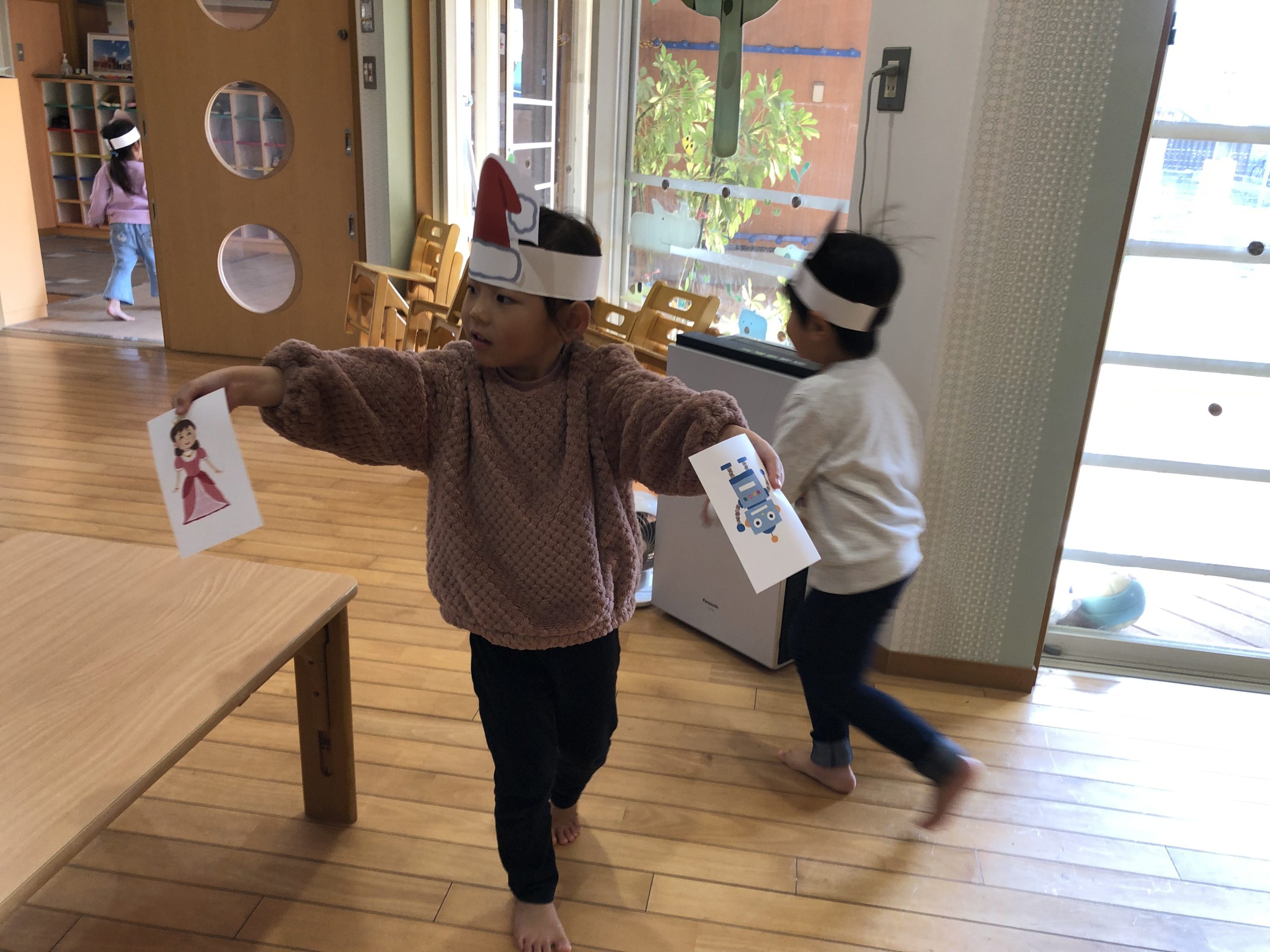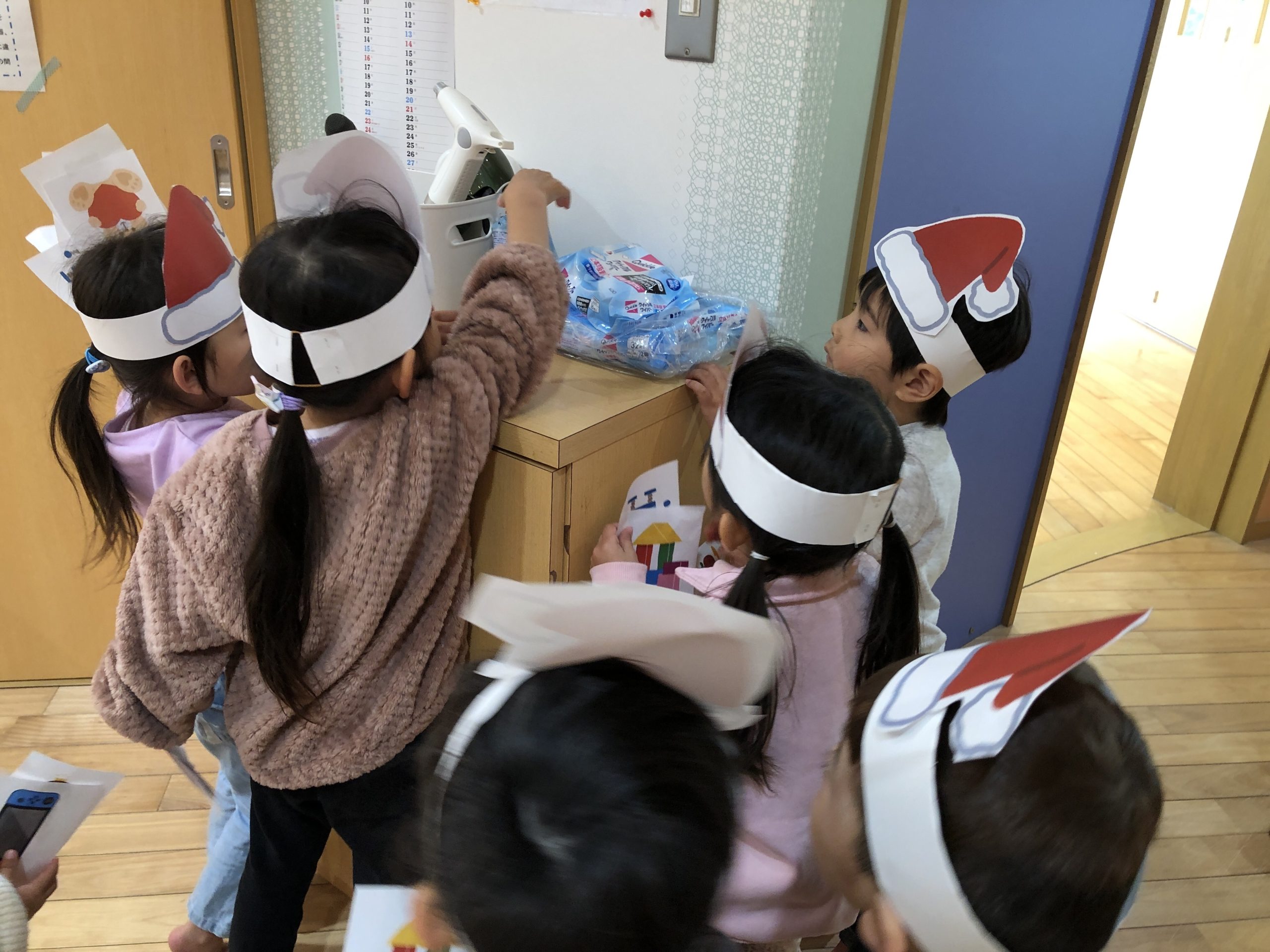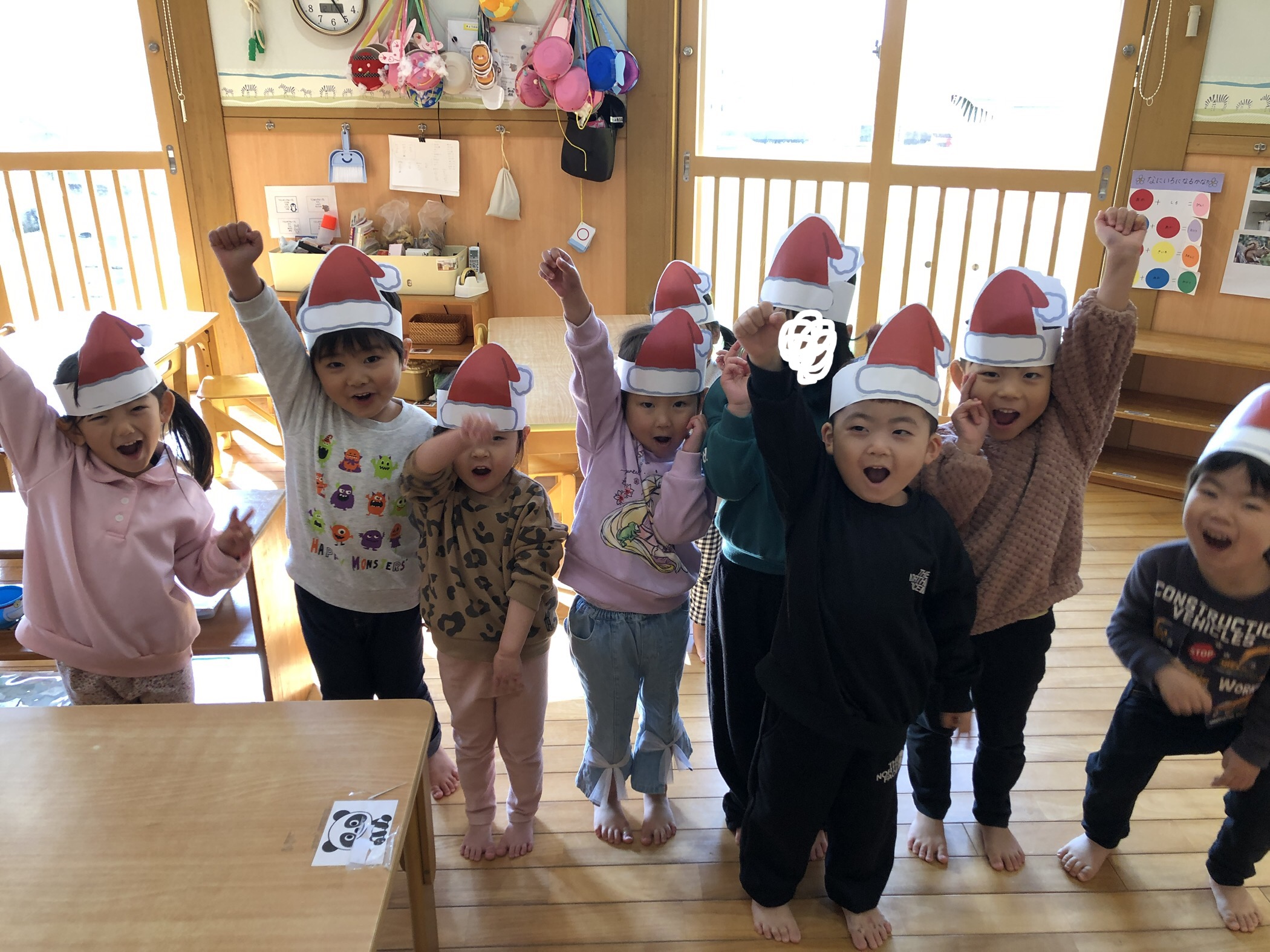 今日は、宝探しゲームをしました🏴☠️12月という事で、サンタになってお部屋に隠れているプレゼントを探しましたよ🎁カーテンの裏や棚の中などくまなく探していたつきぐみさん達🎅プレゼントを見つけると「見つけたよー!」「かくれてた!」と見つけた嬉しそうに教えてくれましたよ🎶