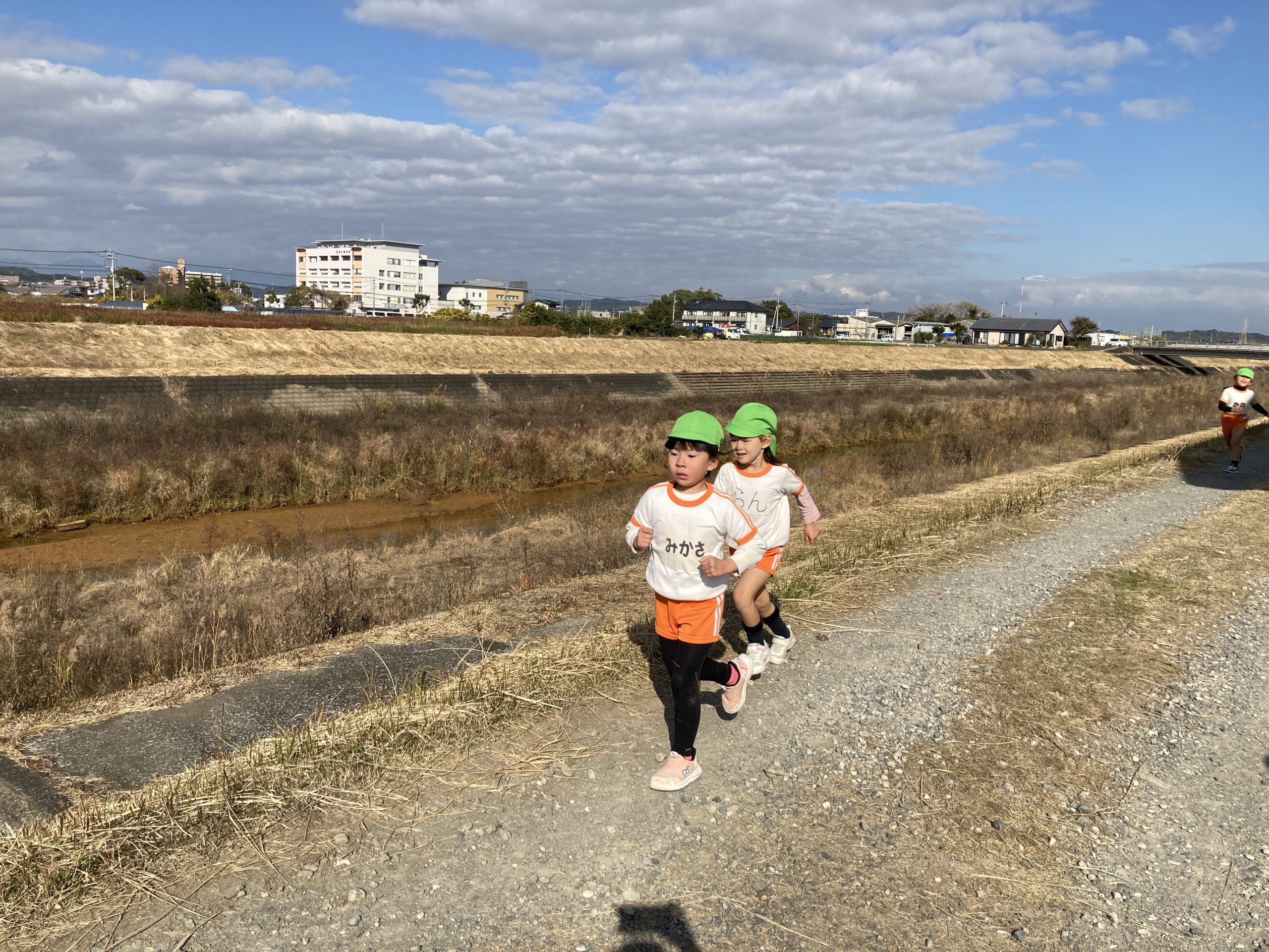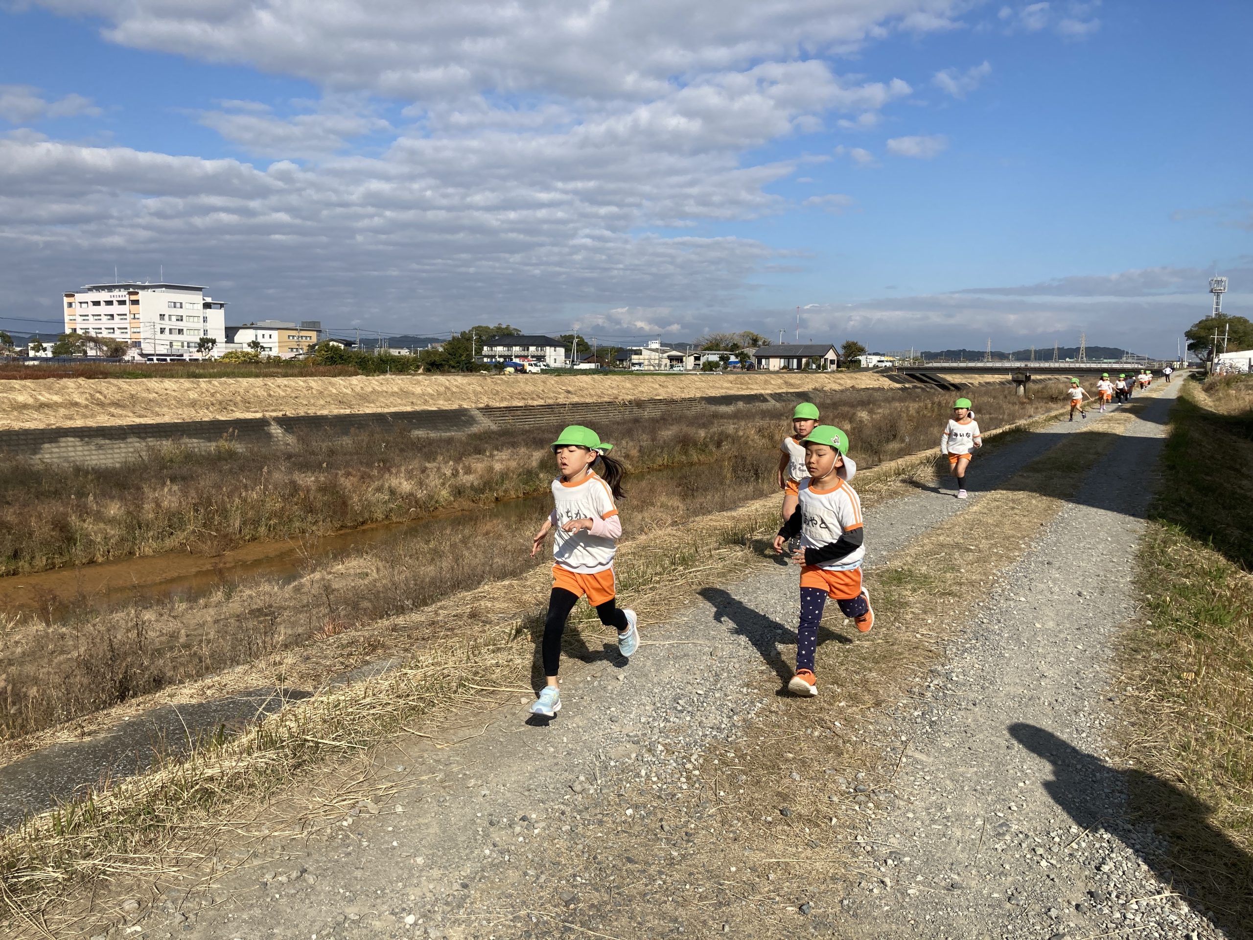 今日は、体育あそびでマラソン大会に向けて堤防を走りました💨久しぶりに長い距離を走りましたが、ゴールまで頑張って走っていました🏃♀️
