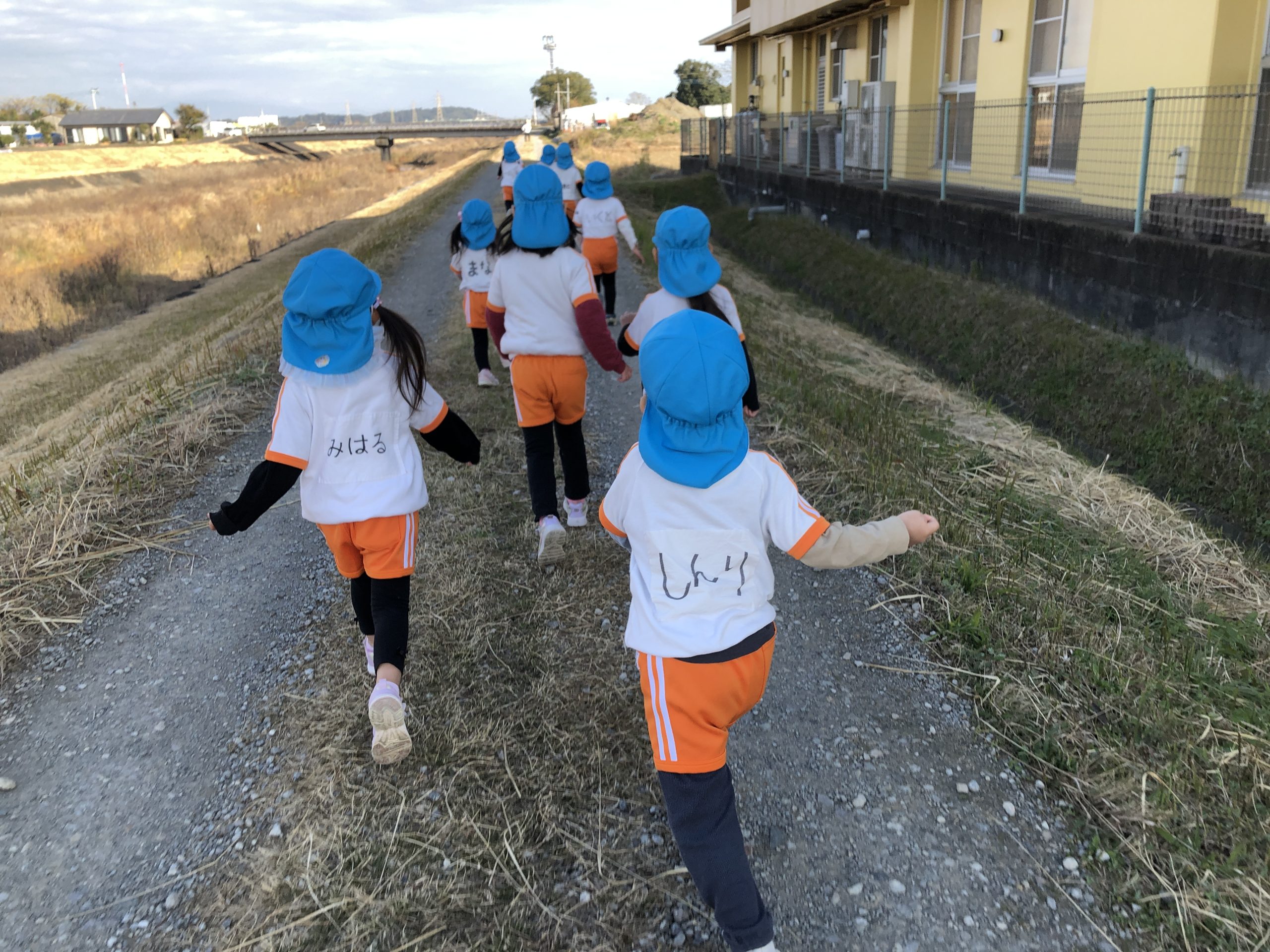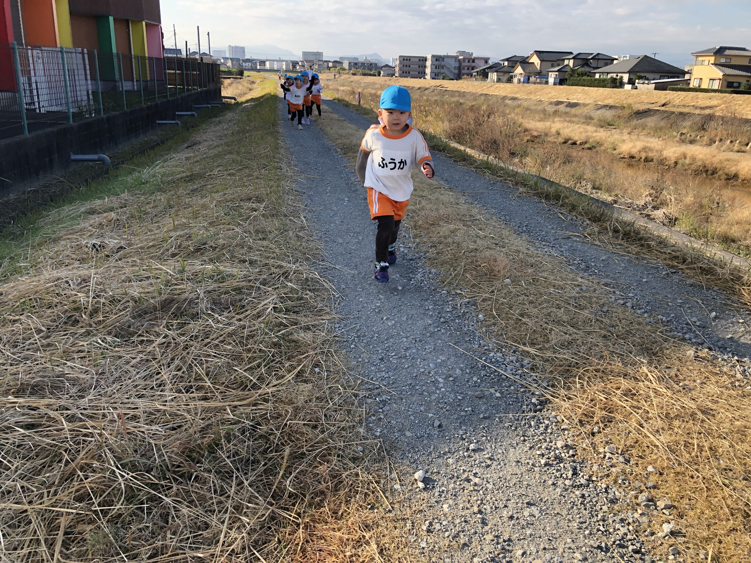 今日の体育遊びでは、マラソン大会の練習で堤防を走りました🌞長い距離でしたが最後まで諦めずに走り切ることができましたよ👏みんな頑張っていました😊✨