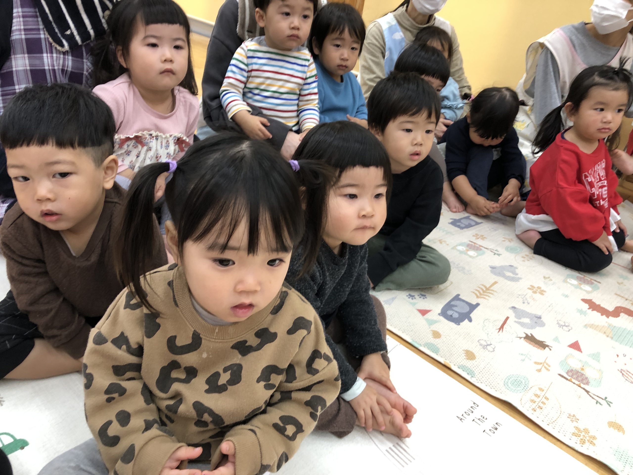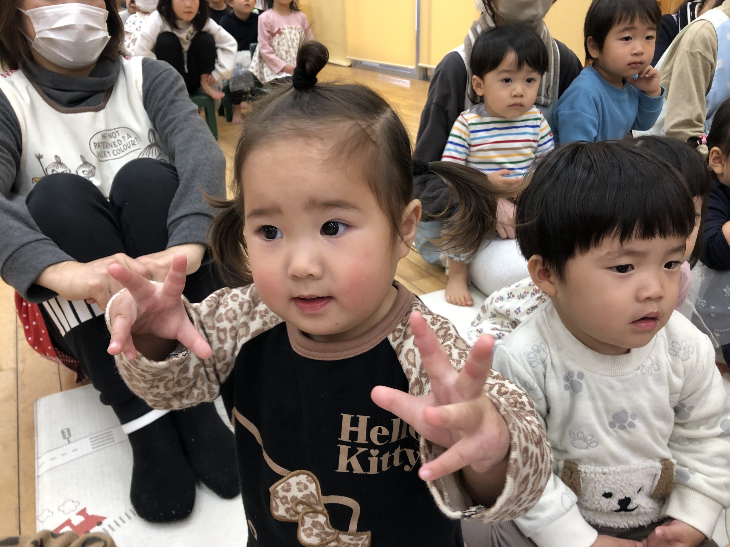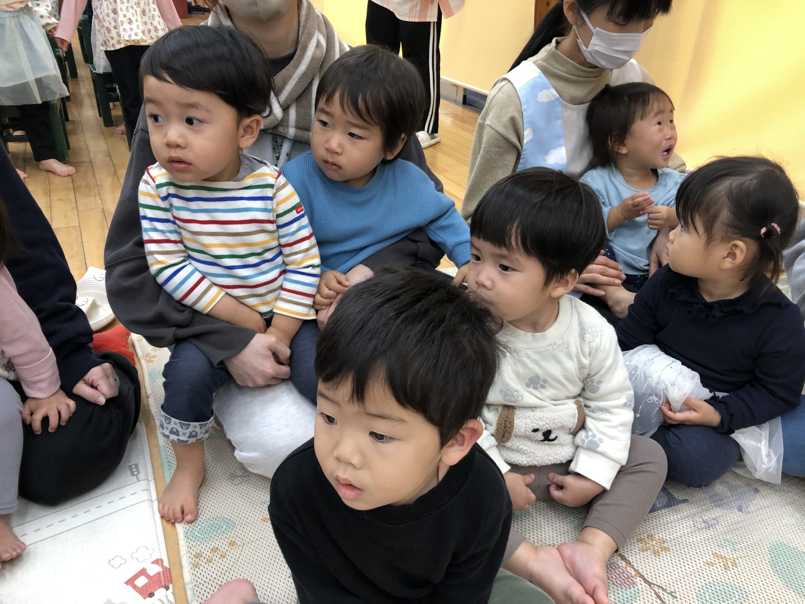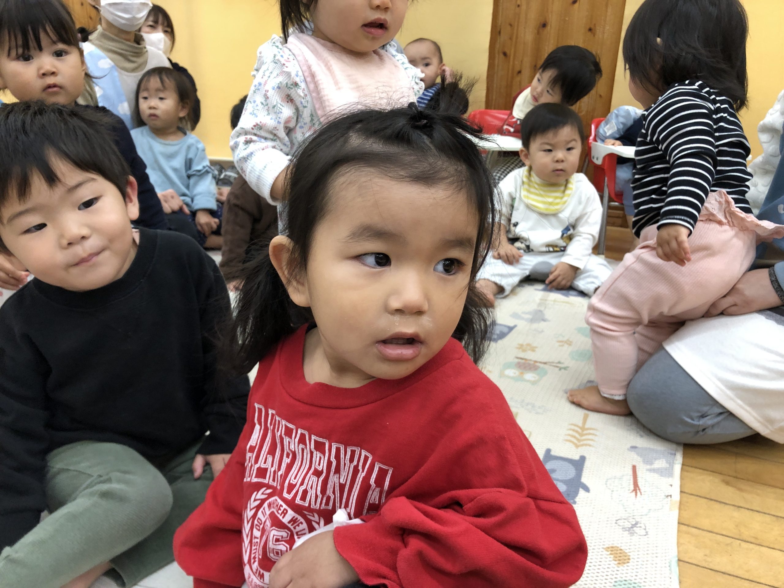 今日はクリスマス会がありました!うさぎぐみ、きりんぐみさんのリズムを見たり、サンタさんからプレゼントを貰ったりしましたよ🎅