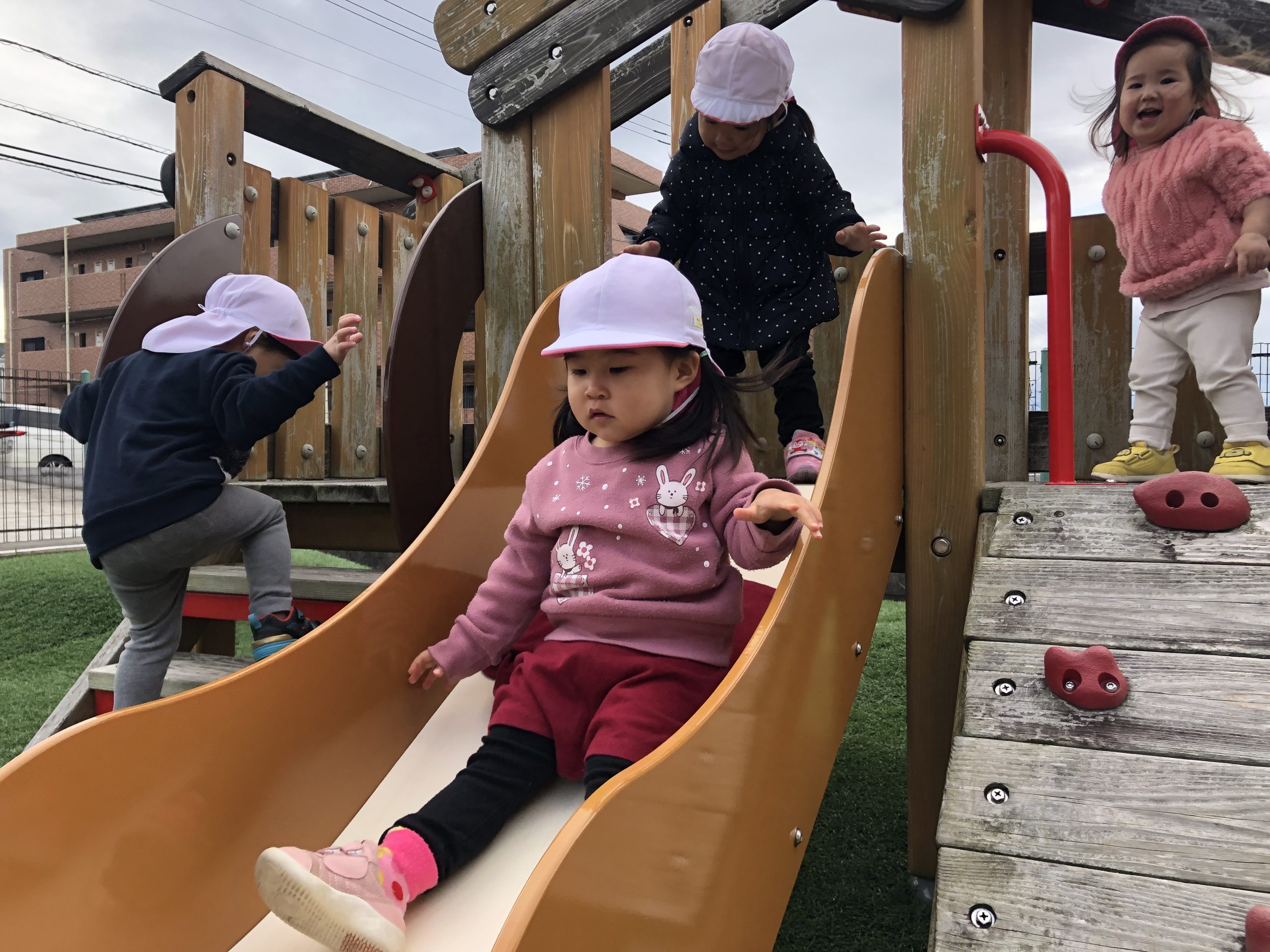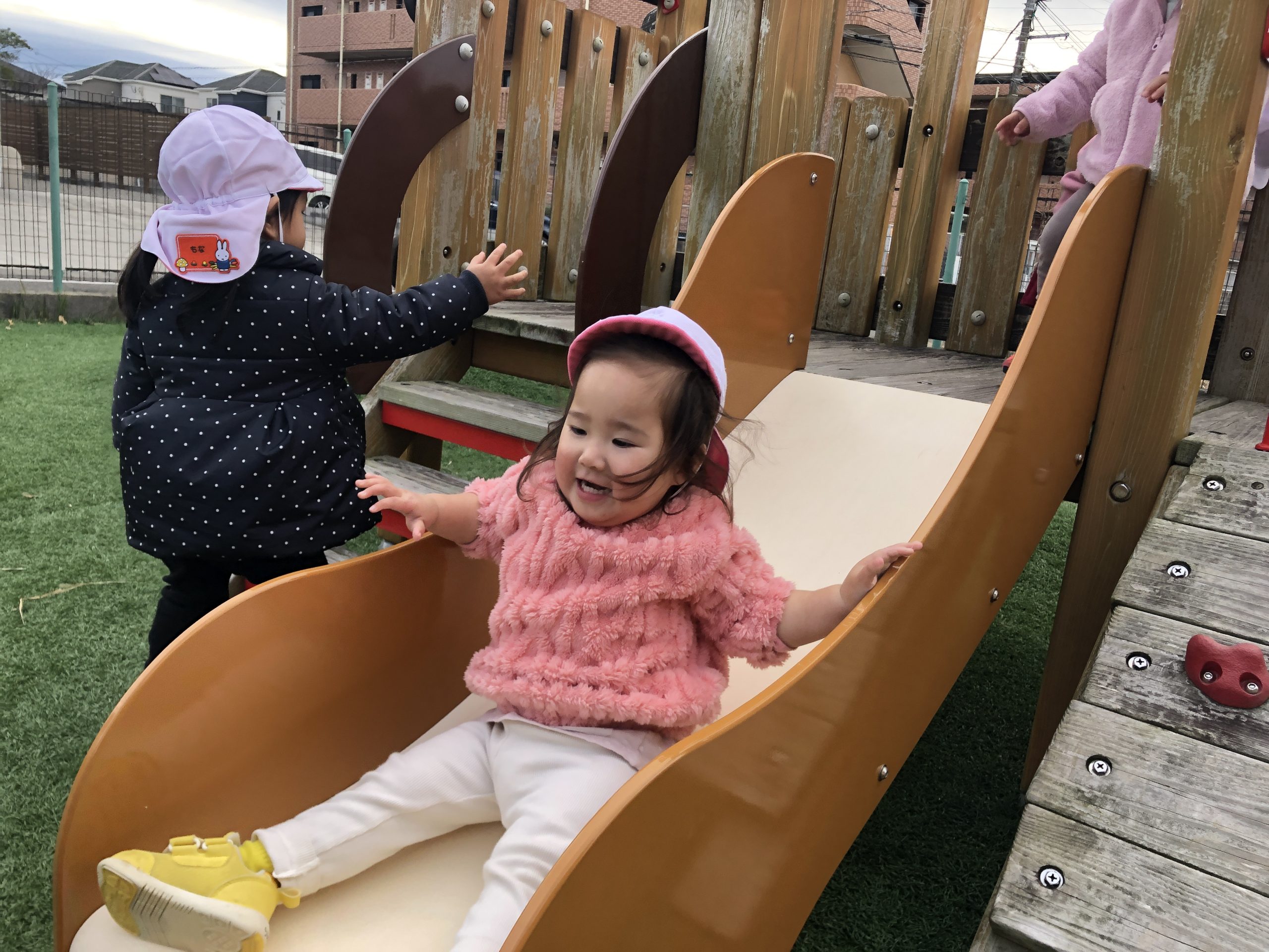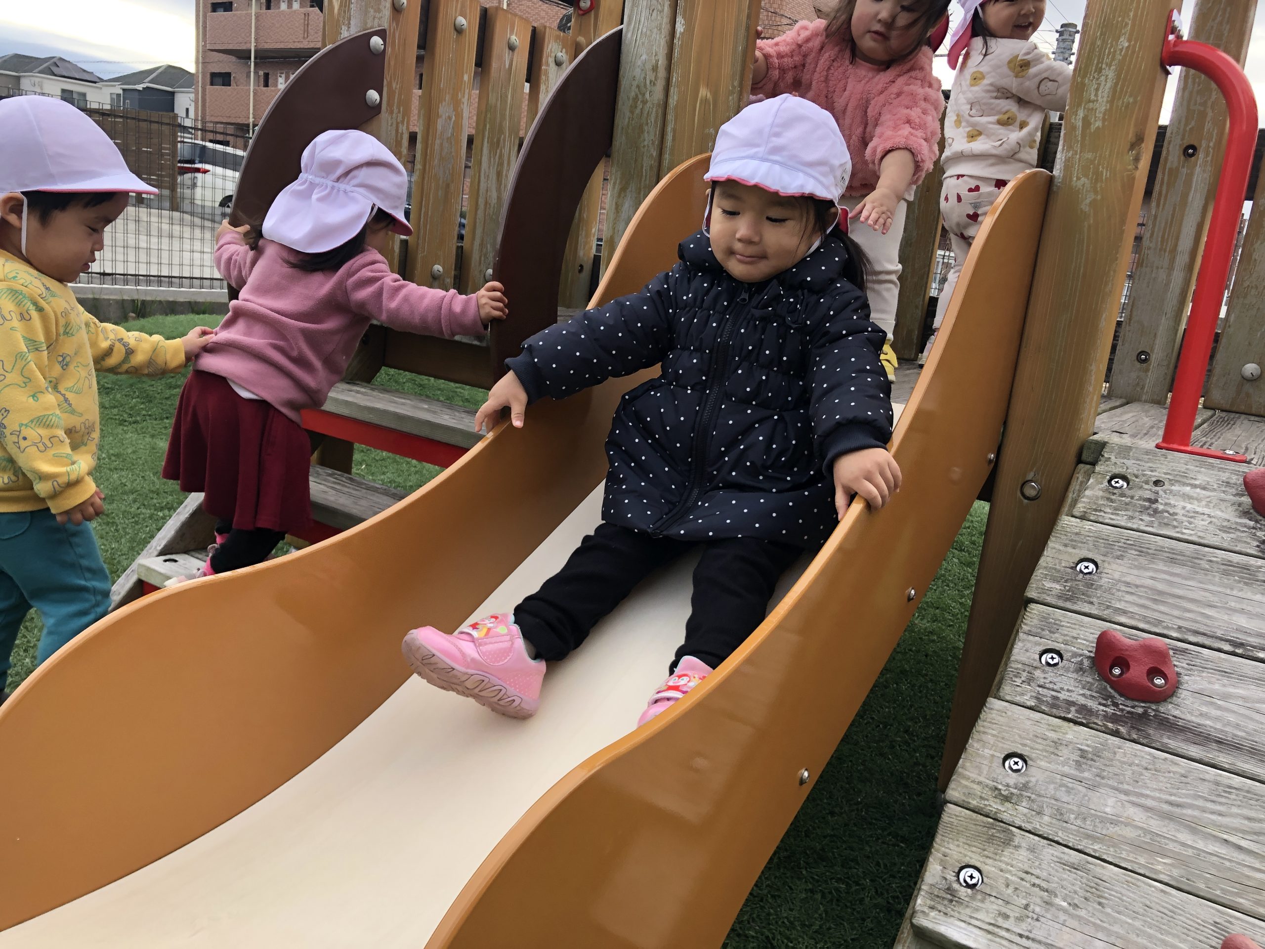 今日は戸外遊びをしました!滑り台を滑ったり、追いかけっこをしたりして楽しみました🛝🎵