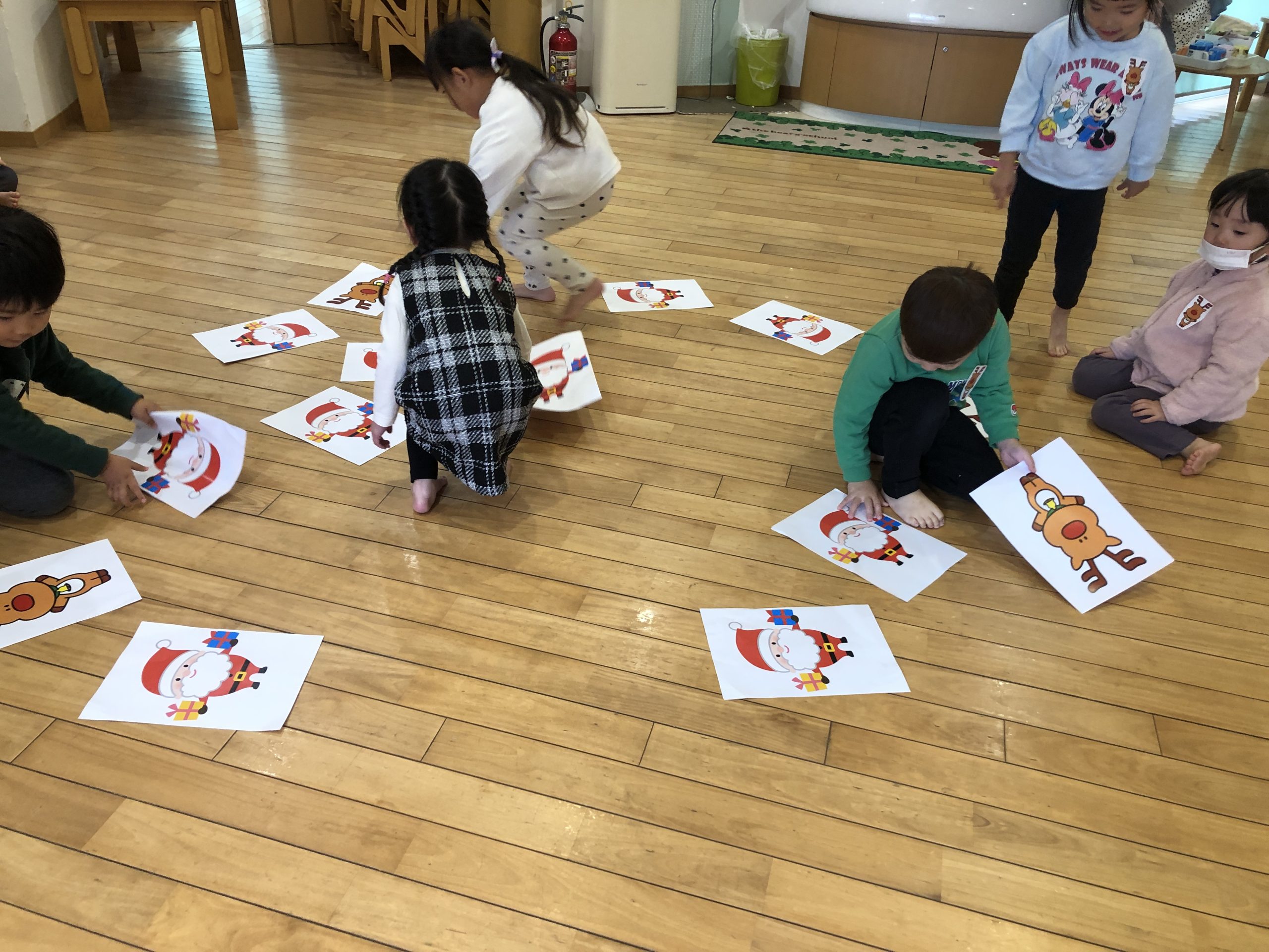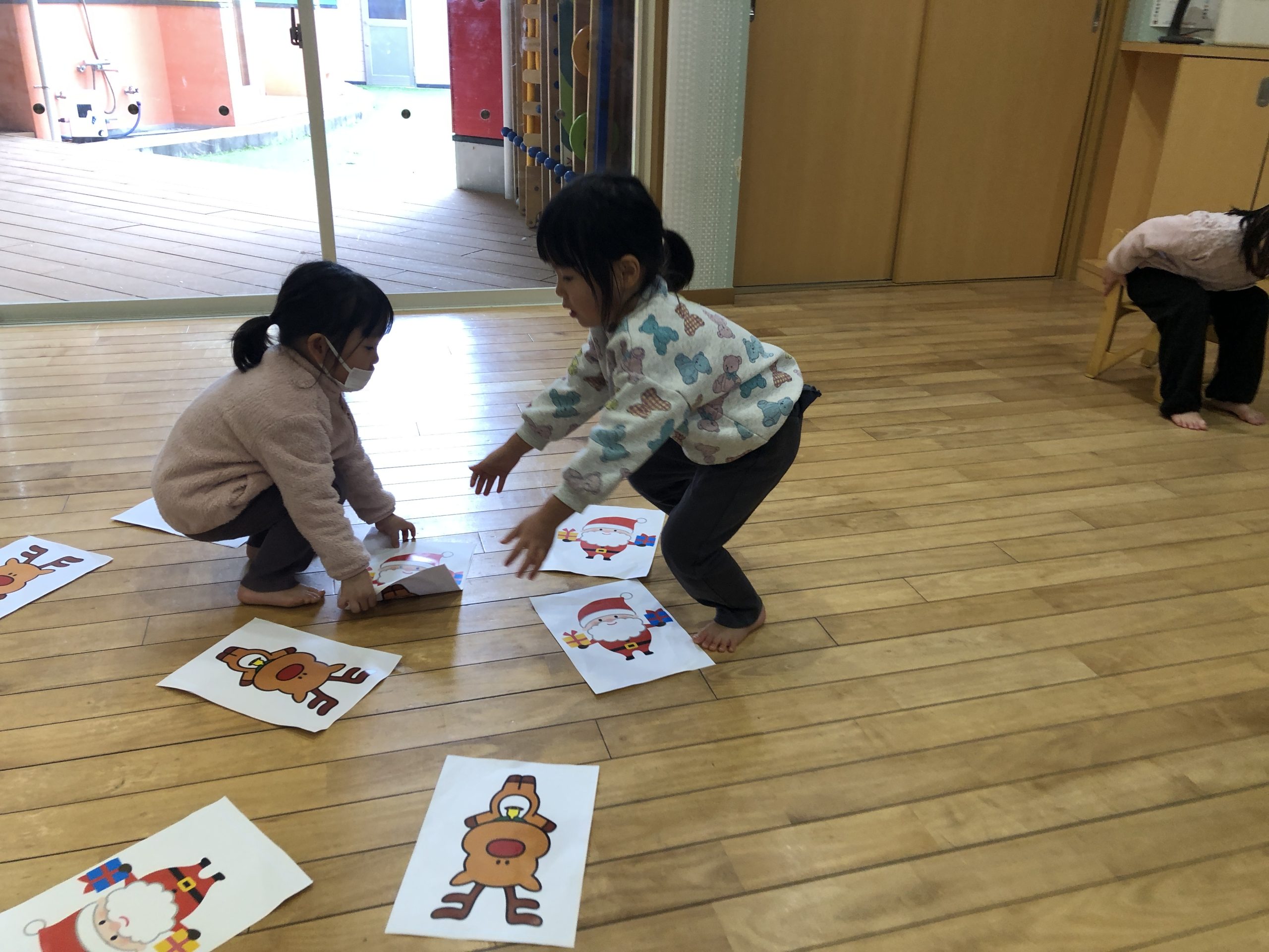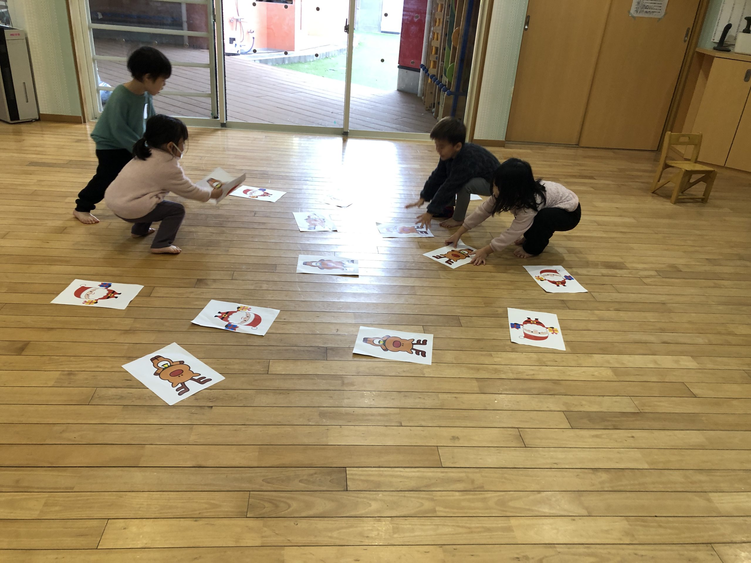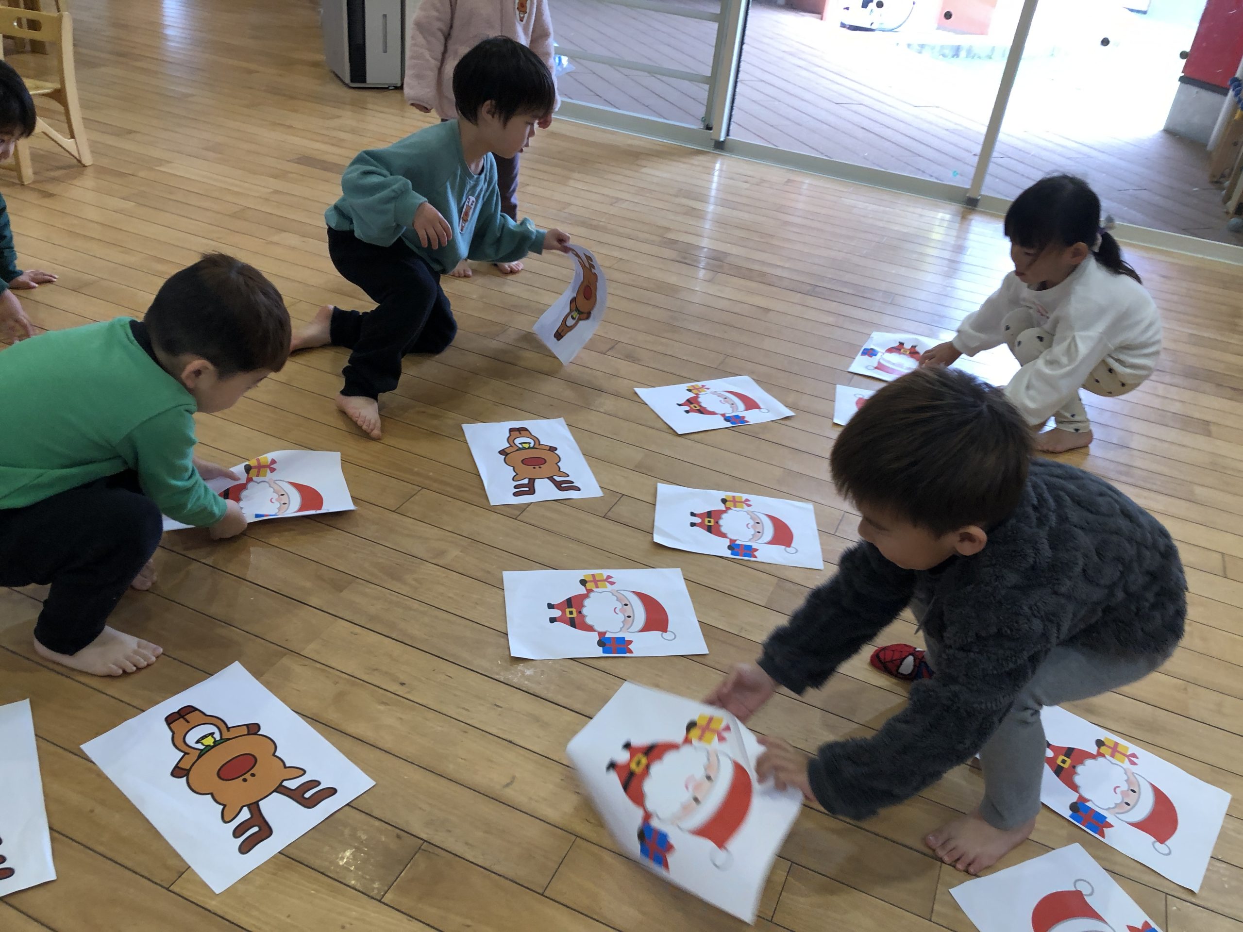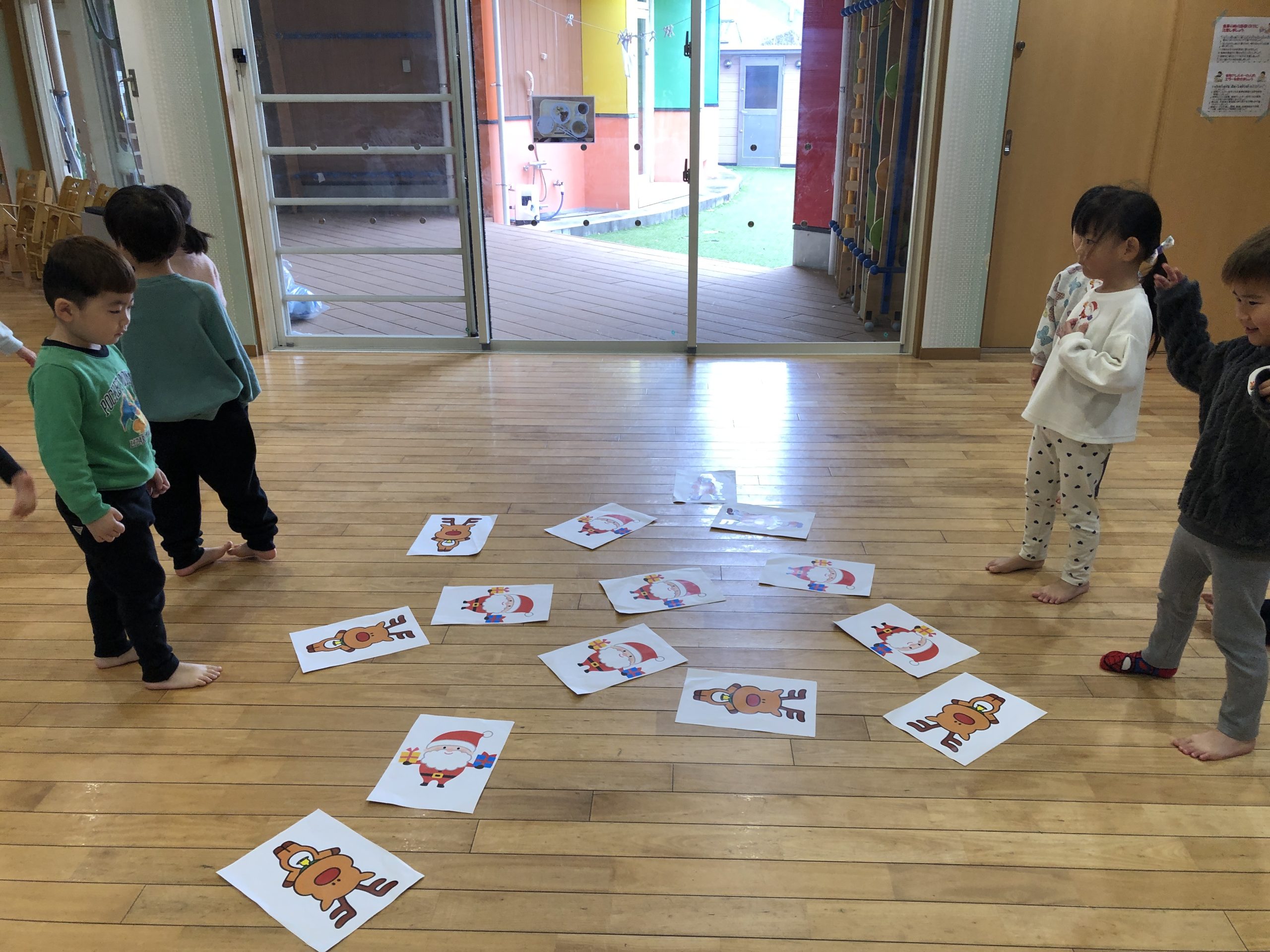 今日は、カードめくりゲームをしました🎅クリスマスバージョンで、サンタとトナカイのチームに分かれ勝負しましたよ!!みんな一生懸命カードをめくり勝つことができると嬉しそうでしたよ😊負けてしまっても「次は勝つぞ!!」と言い何度も遊び楽しんでいました🎄✨