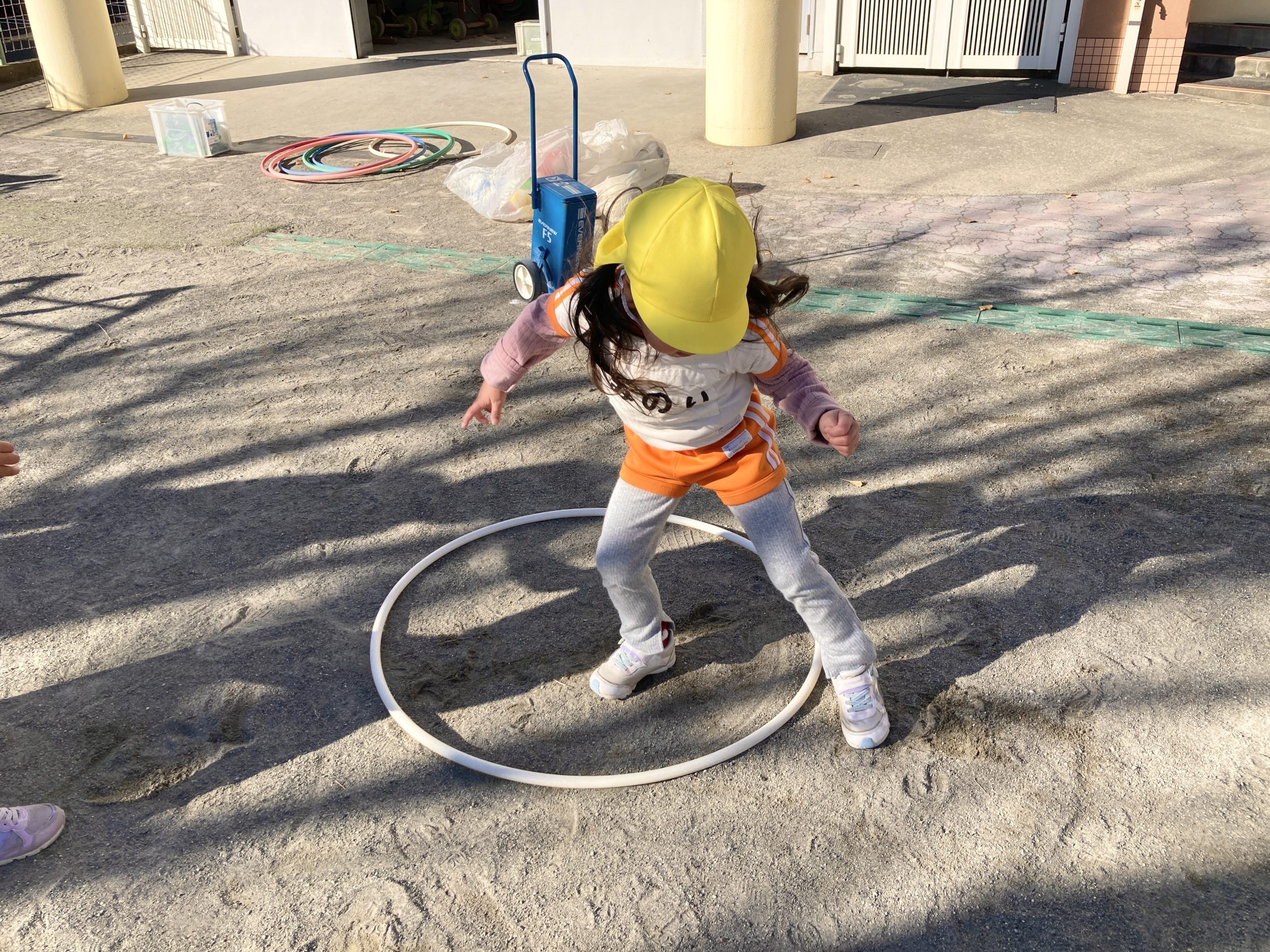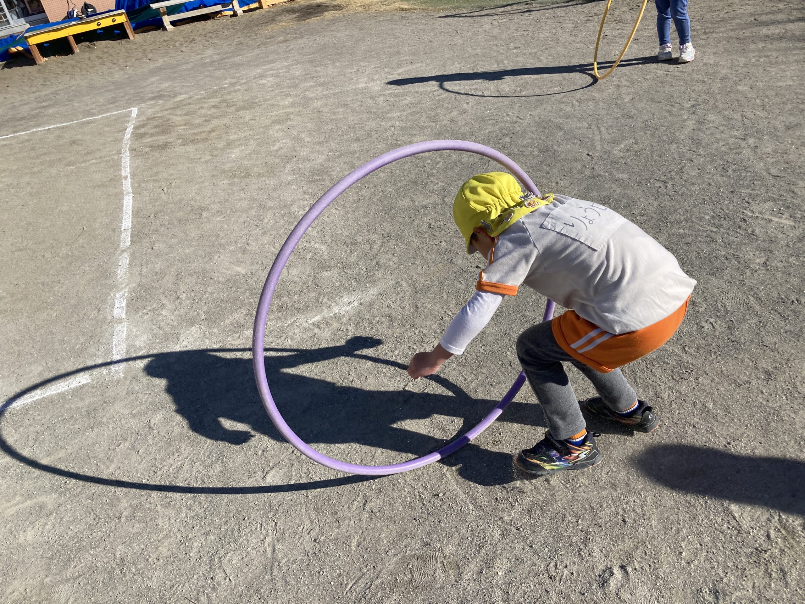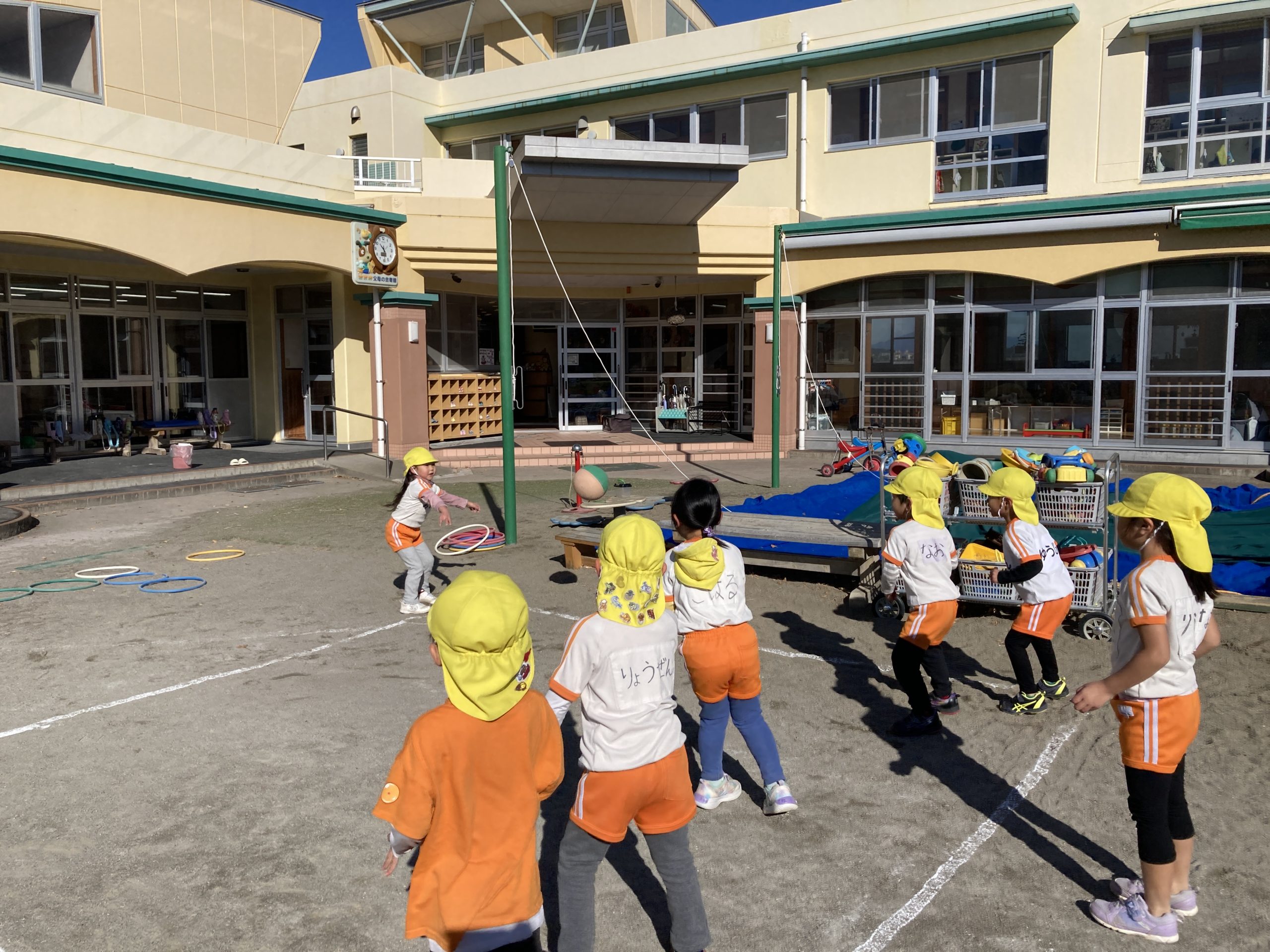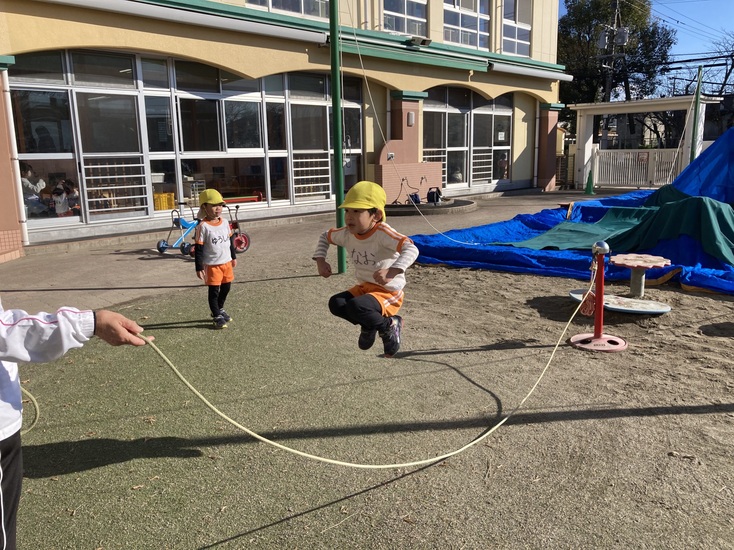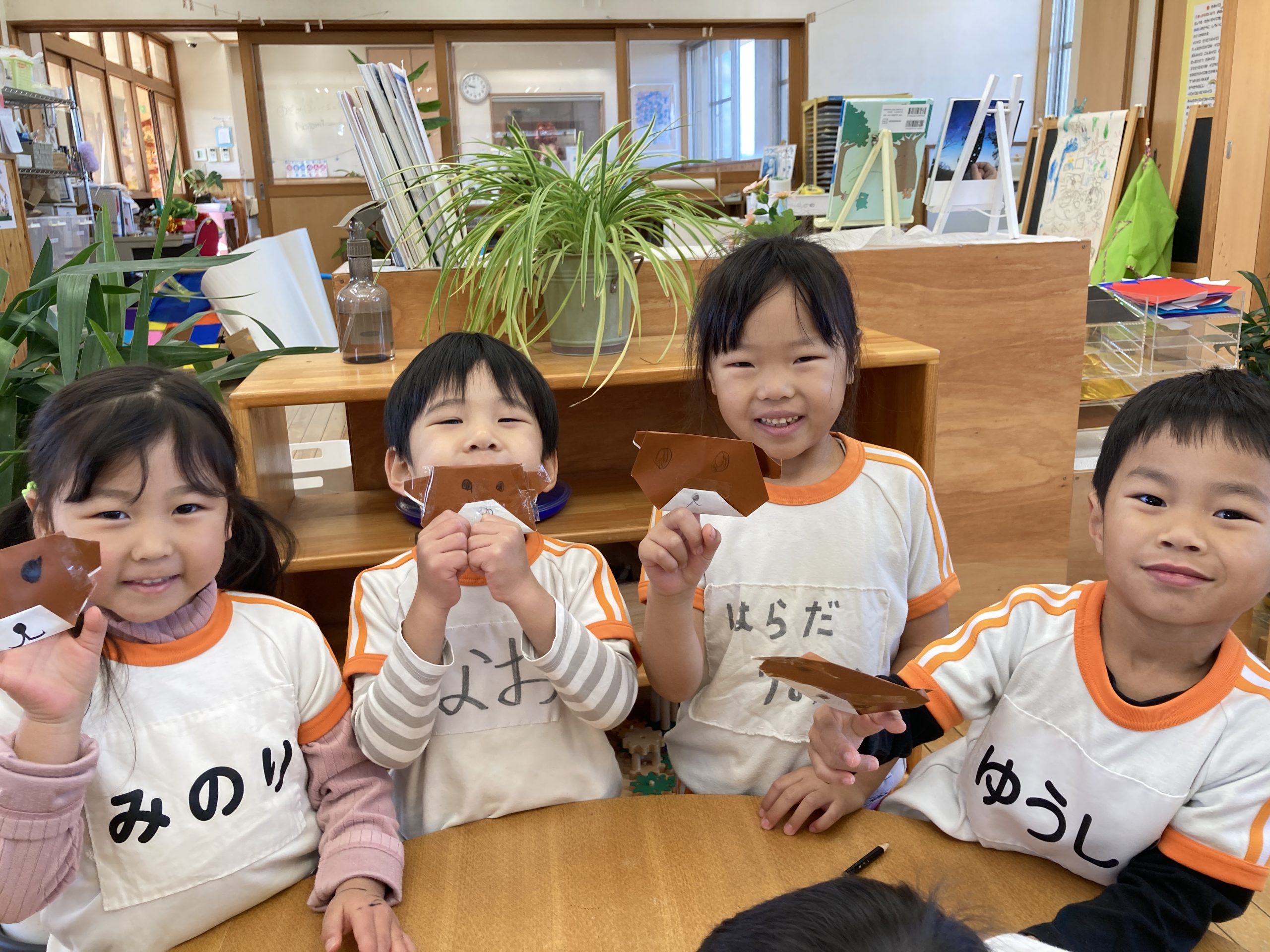 今日の体育遊びは縄跳びやフラフープ、マラソンなどたくさん体を動かして遊びました!転がしたフラフープの中をくぐったりフラフープで縄跳びをしたりいろいろな遊び方で楽しんで遊んでいました🍀また、折り紙でくまを作りましたよ🐻