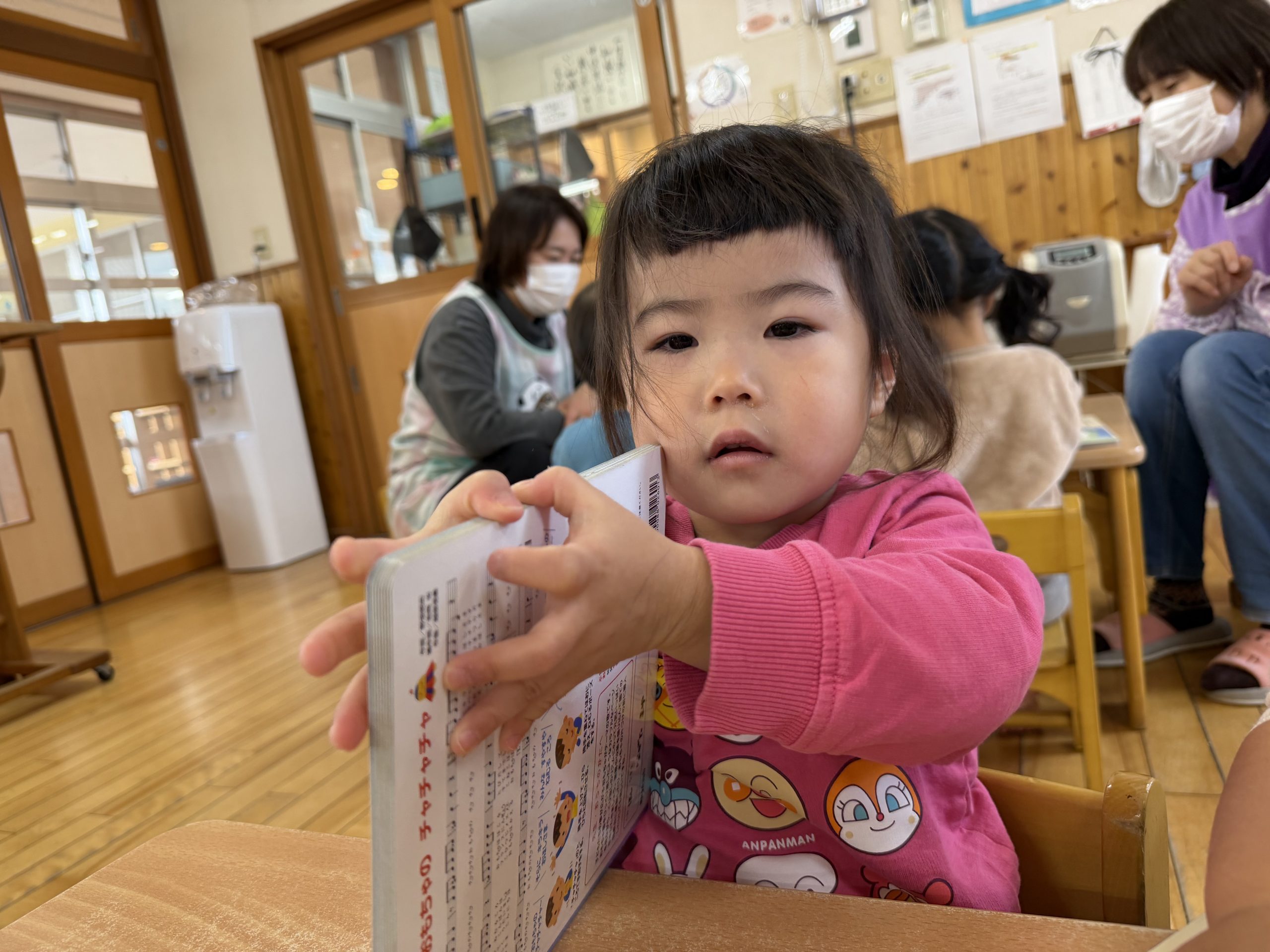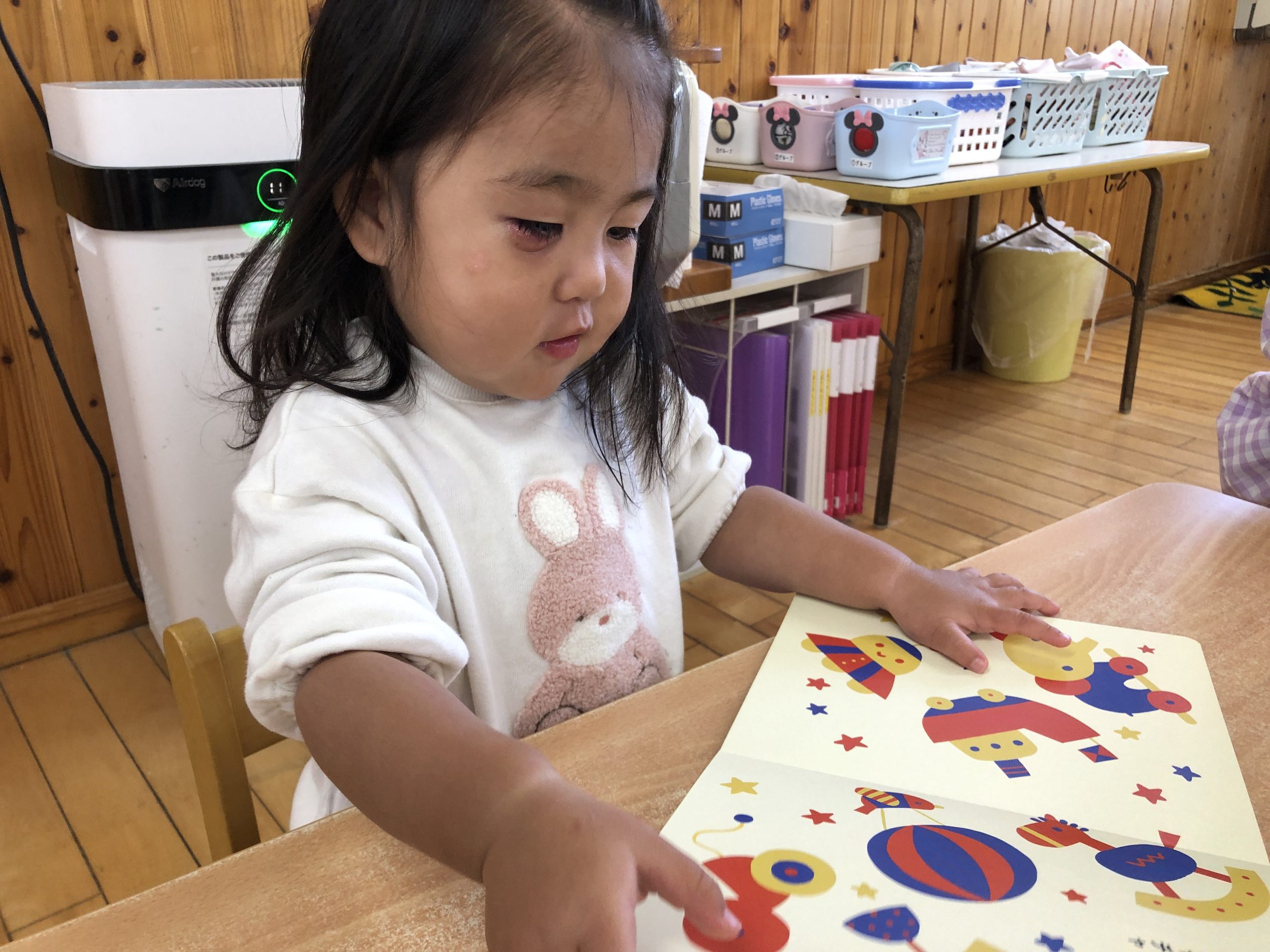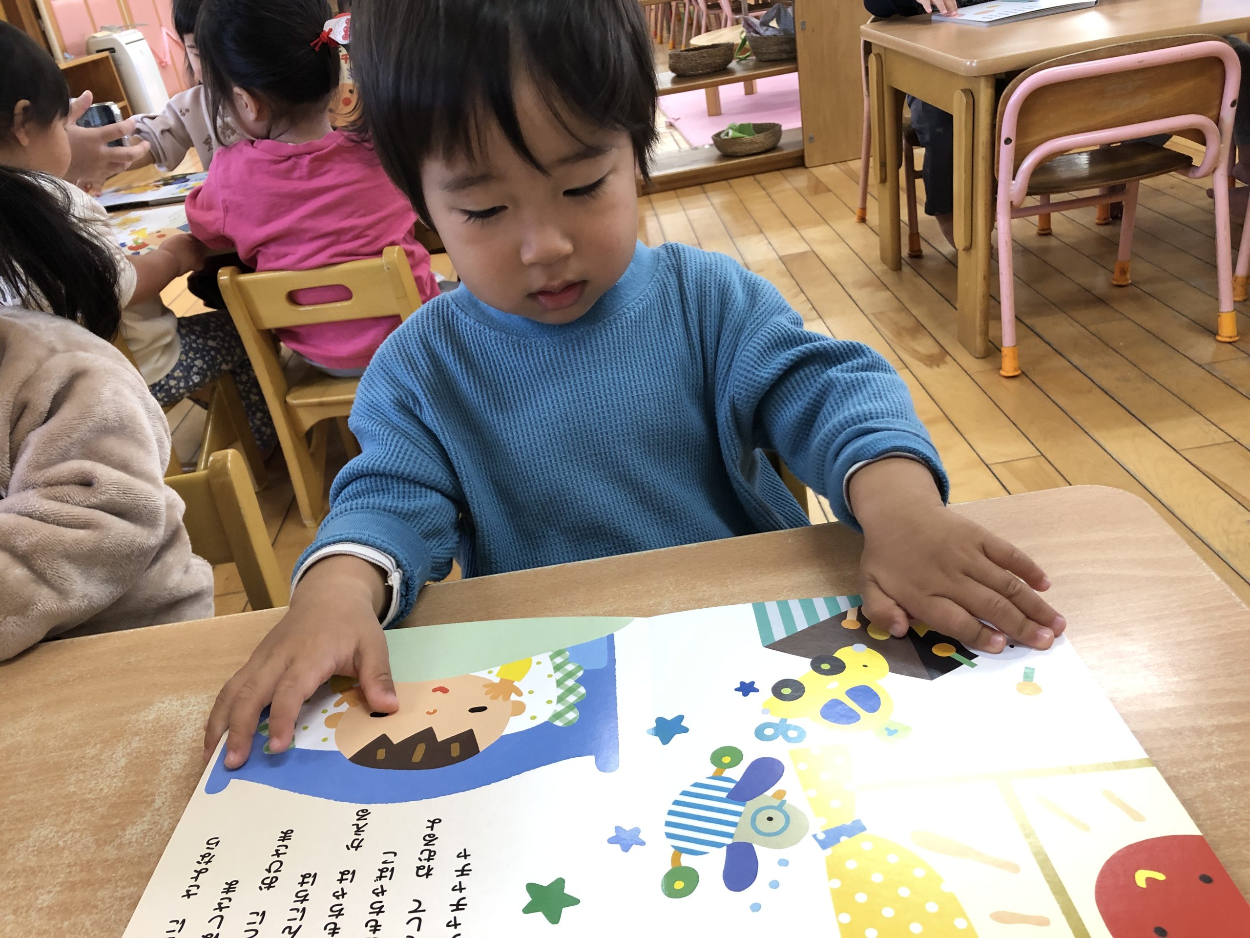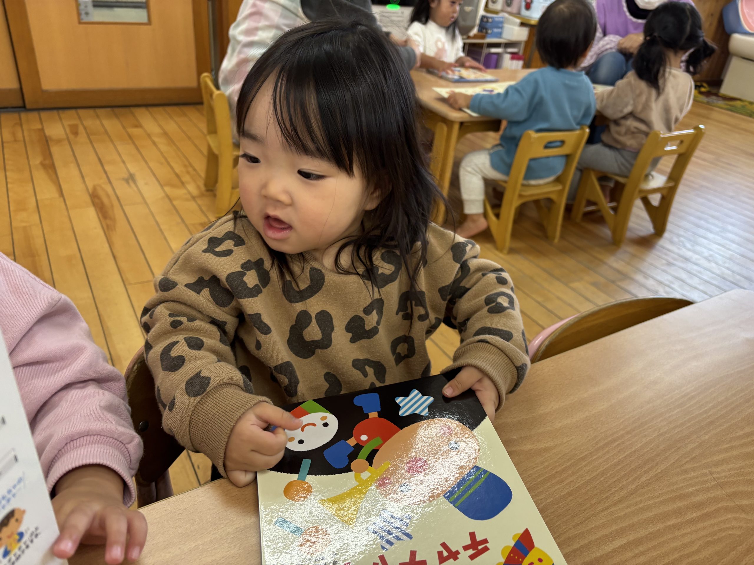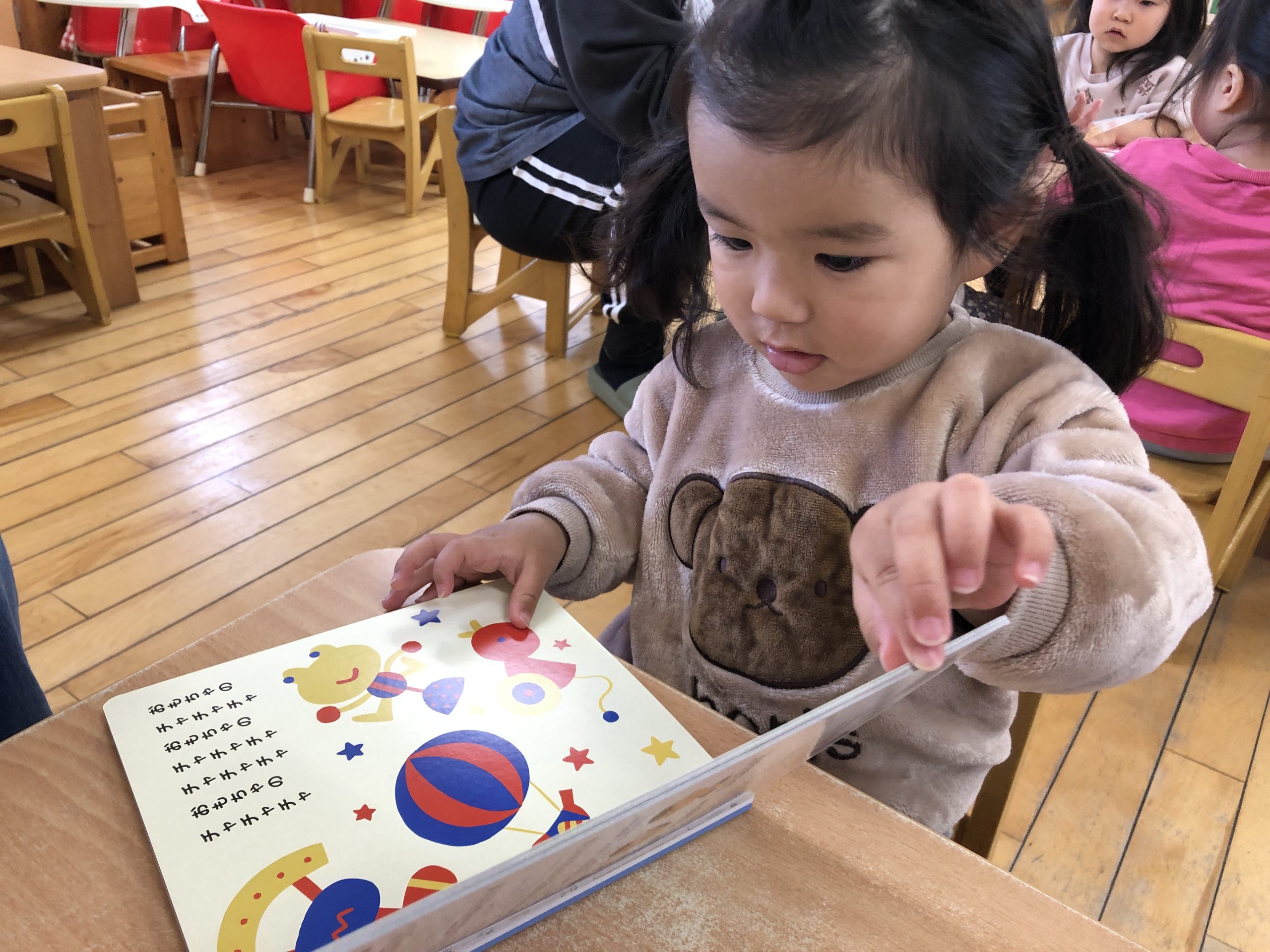 今日は月刊絵本「おもちゃのチャチャチャ」を見ました🎵音楽に合わせて歌を歌ったりと楽しそうに絵本を見ていましたよ😊