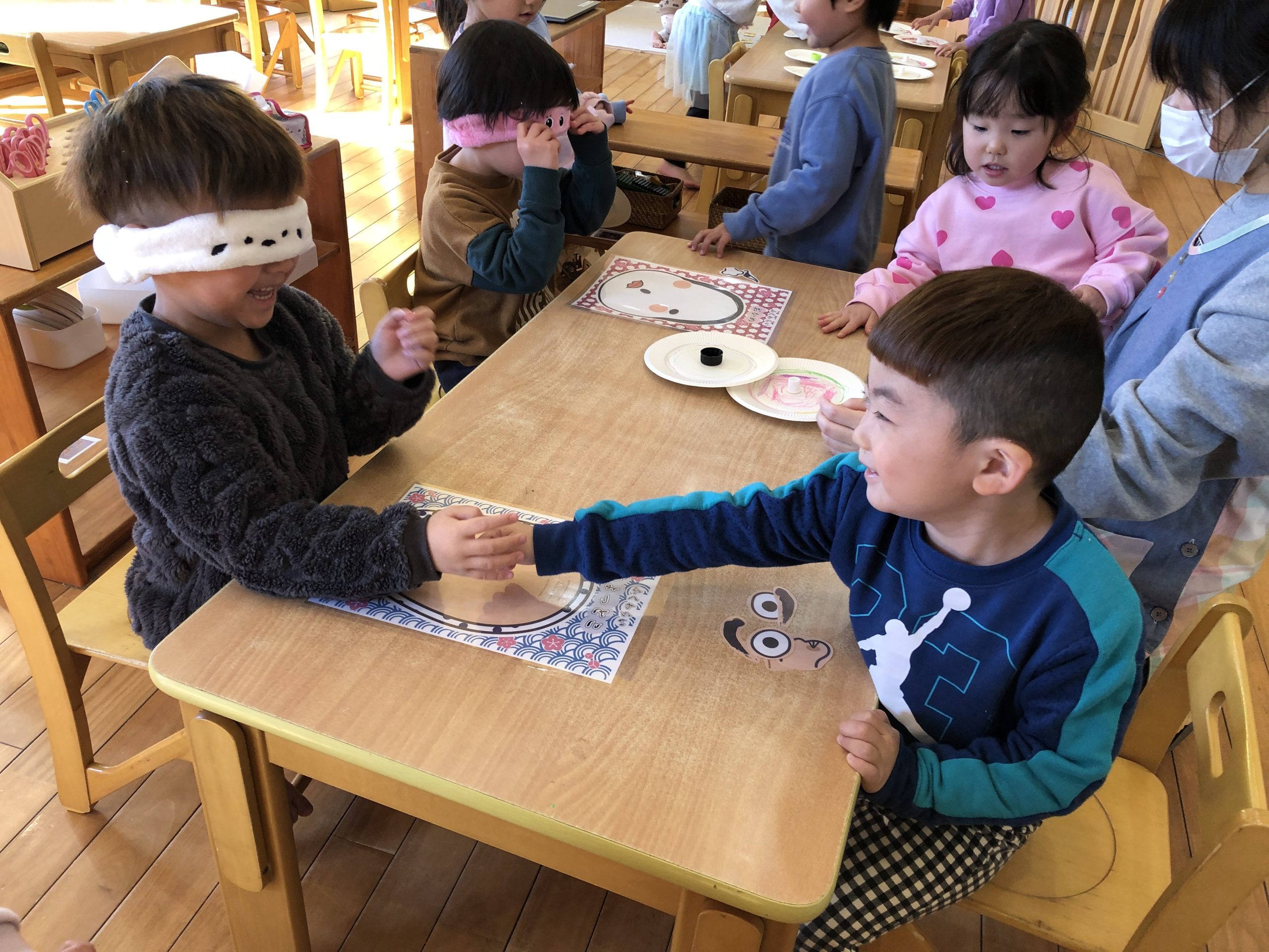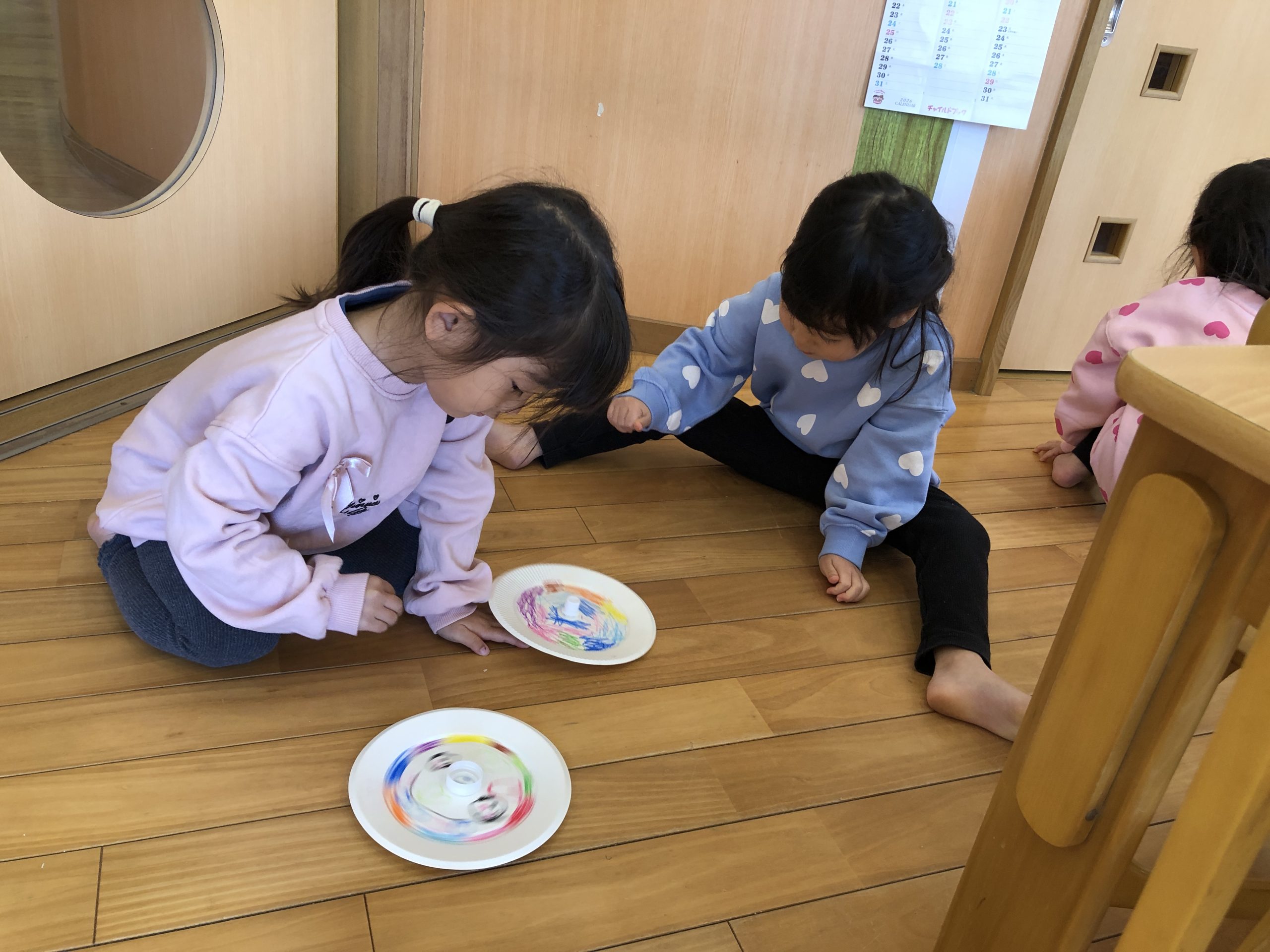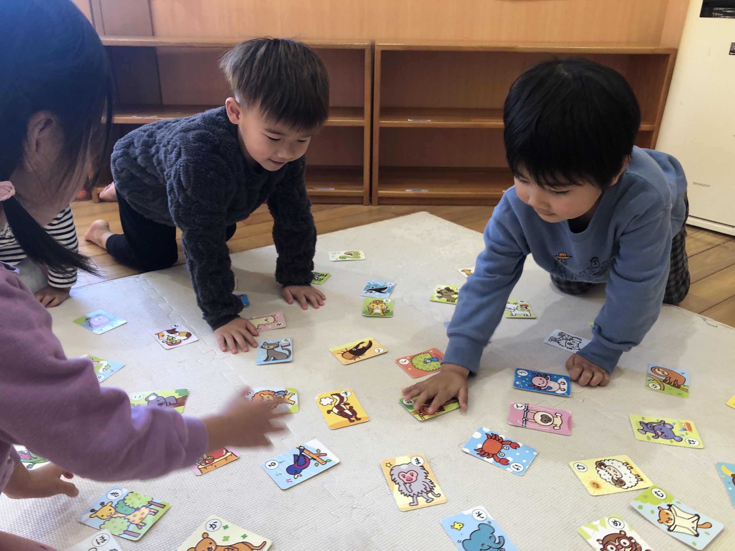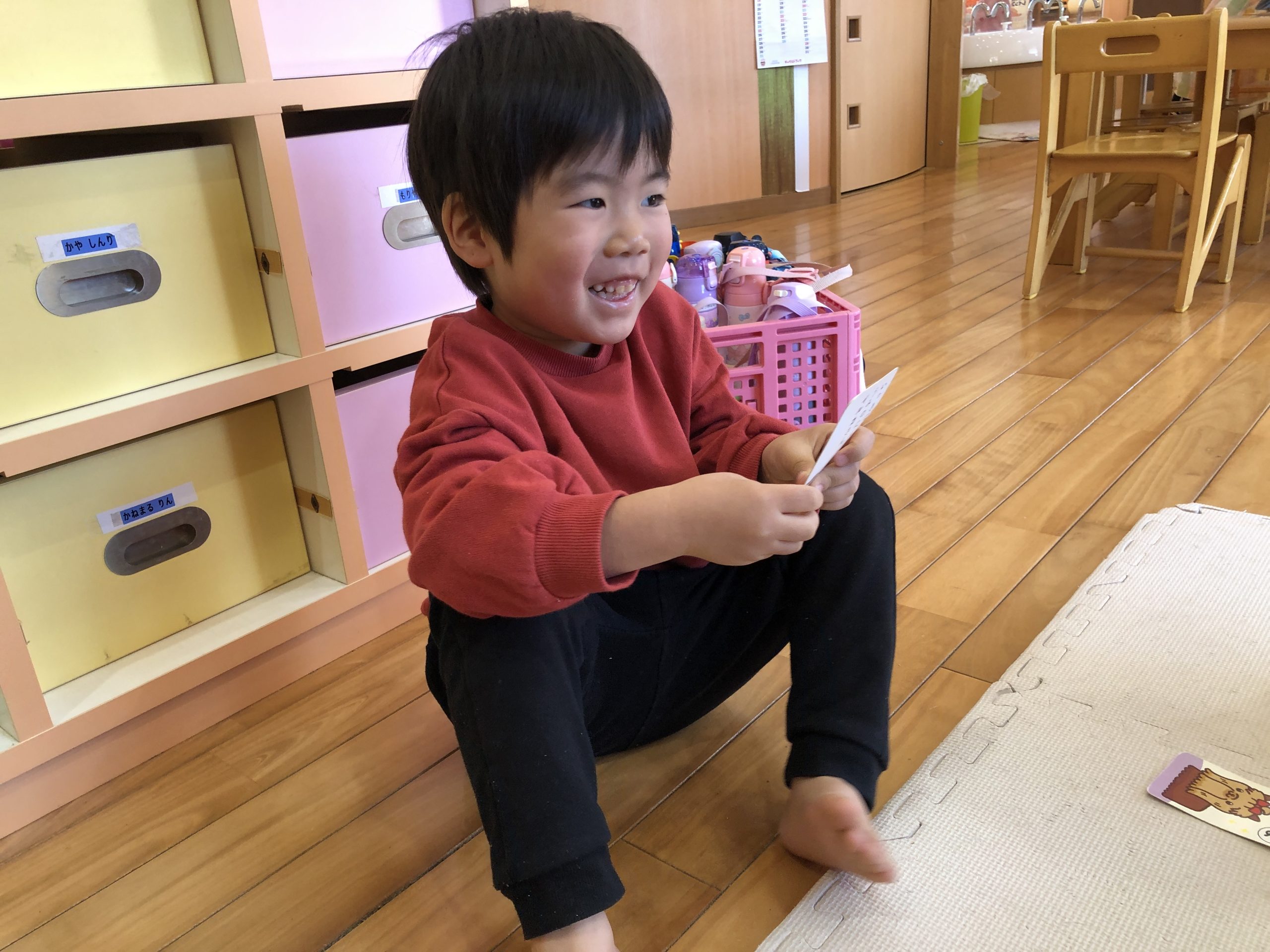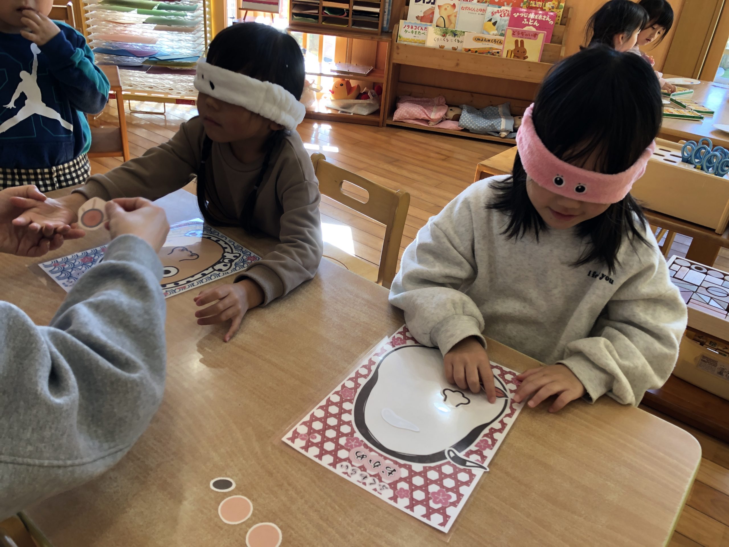 今日はお正月遊びで、コマ・福笑い・カルタをしました🎍好きな場所に行きそれぞれ楽しんで遊んでいましたよ〜!!