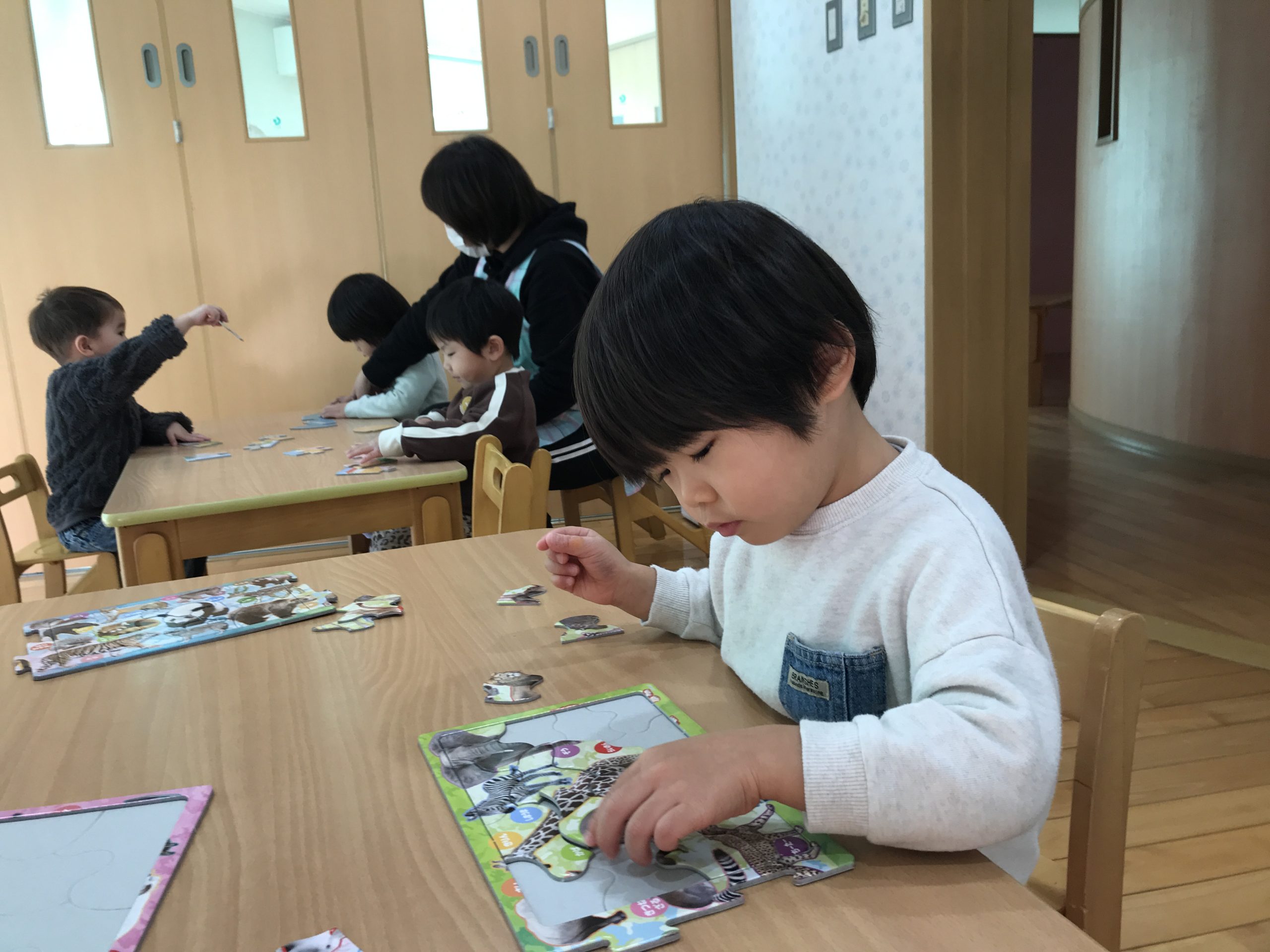 今日は、パズル遊びをしました✨組み合わせながら完成すると、嬉しそうに見せてくれましたよ(*^^*)