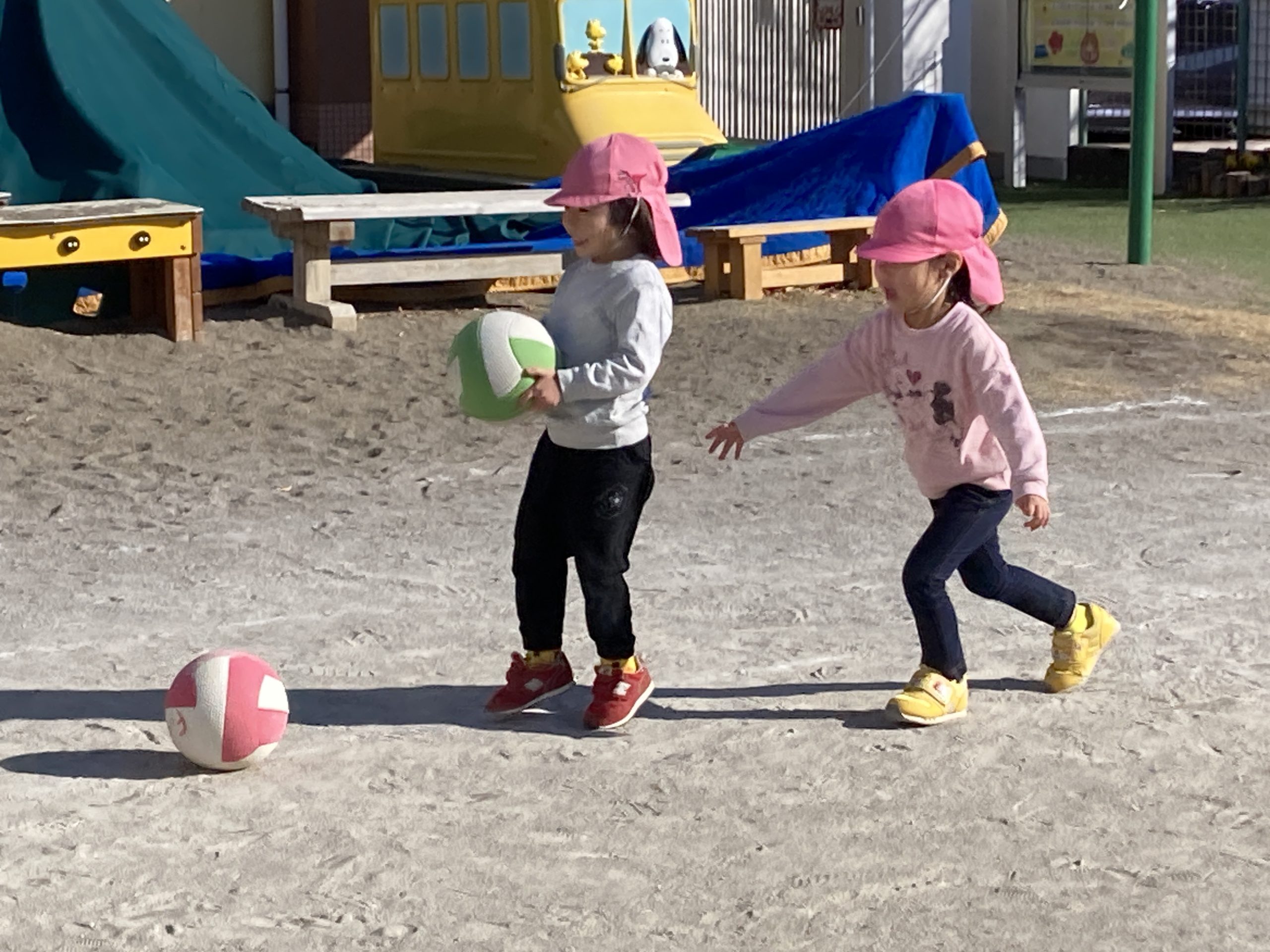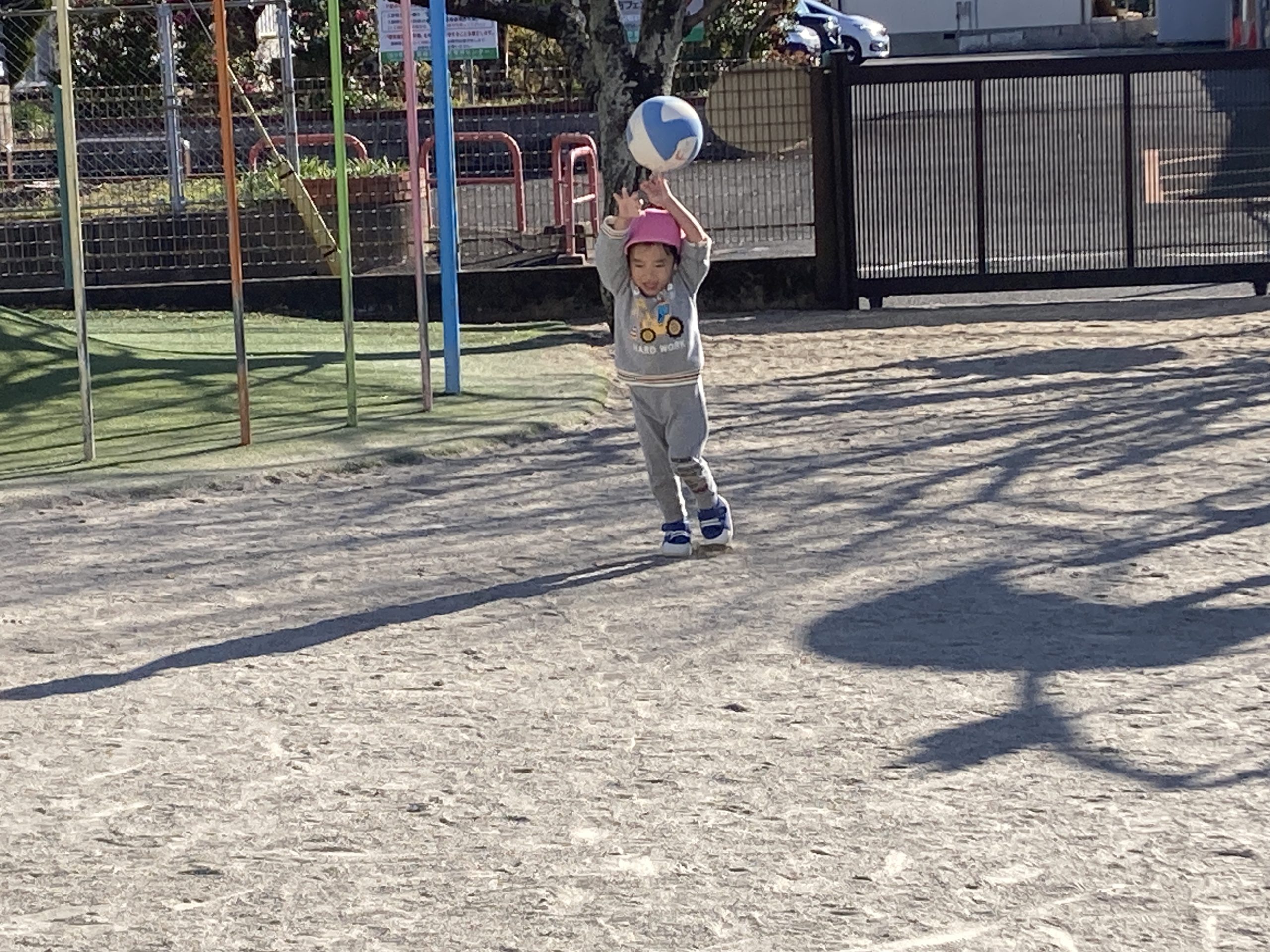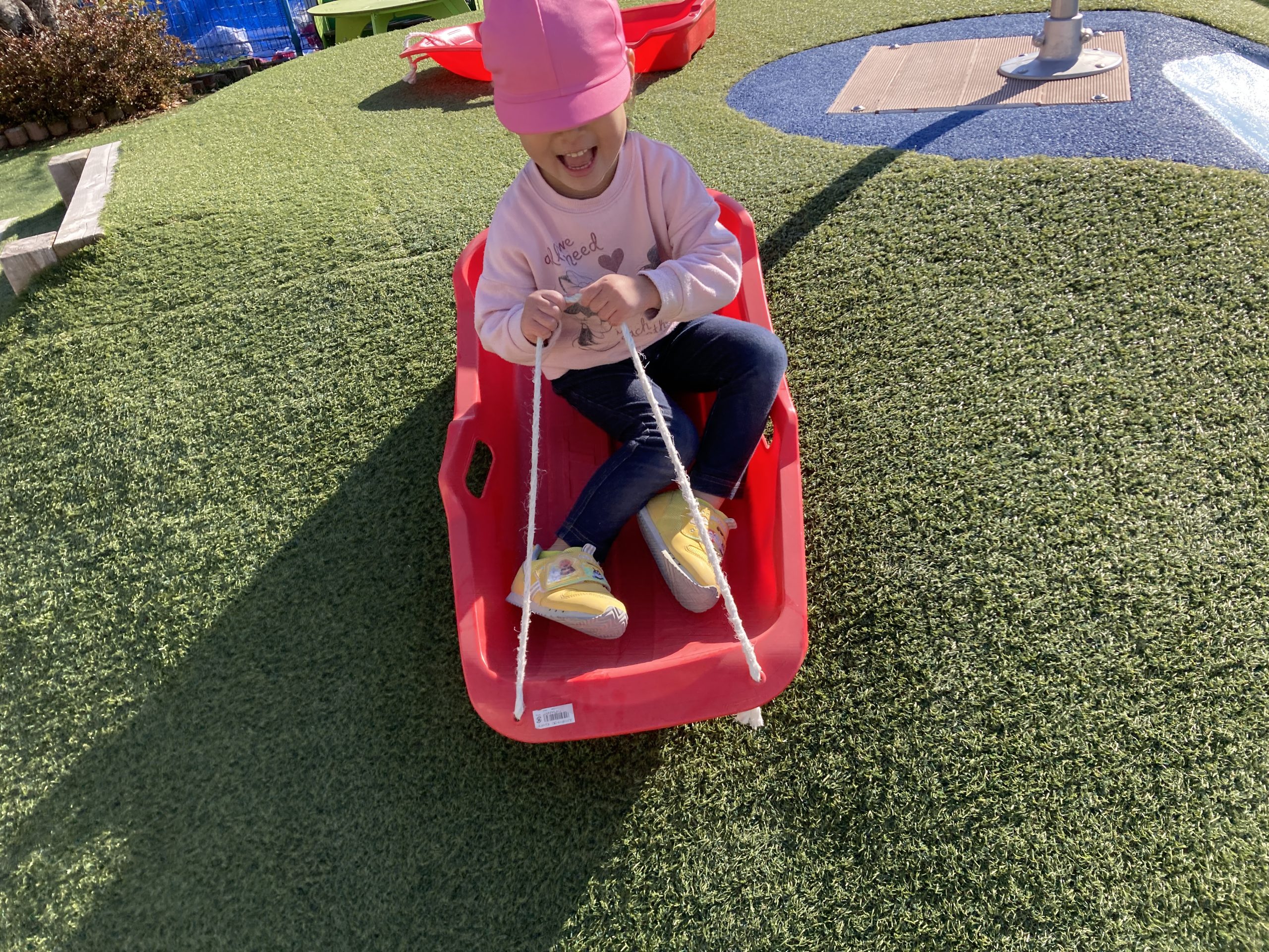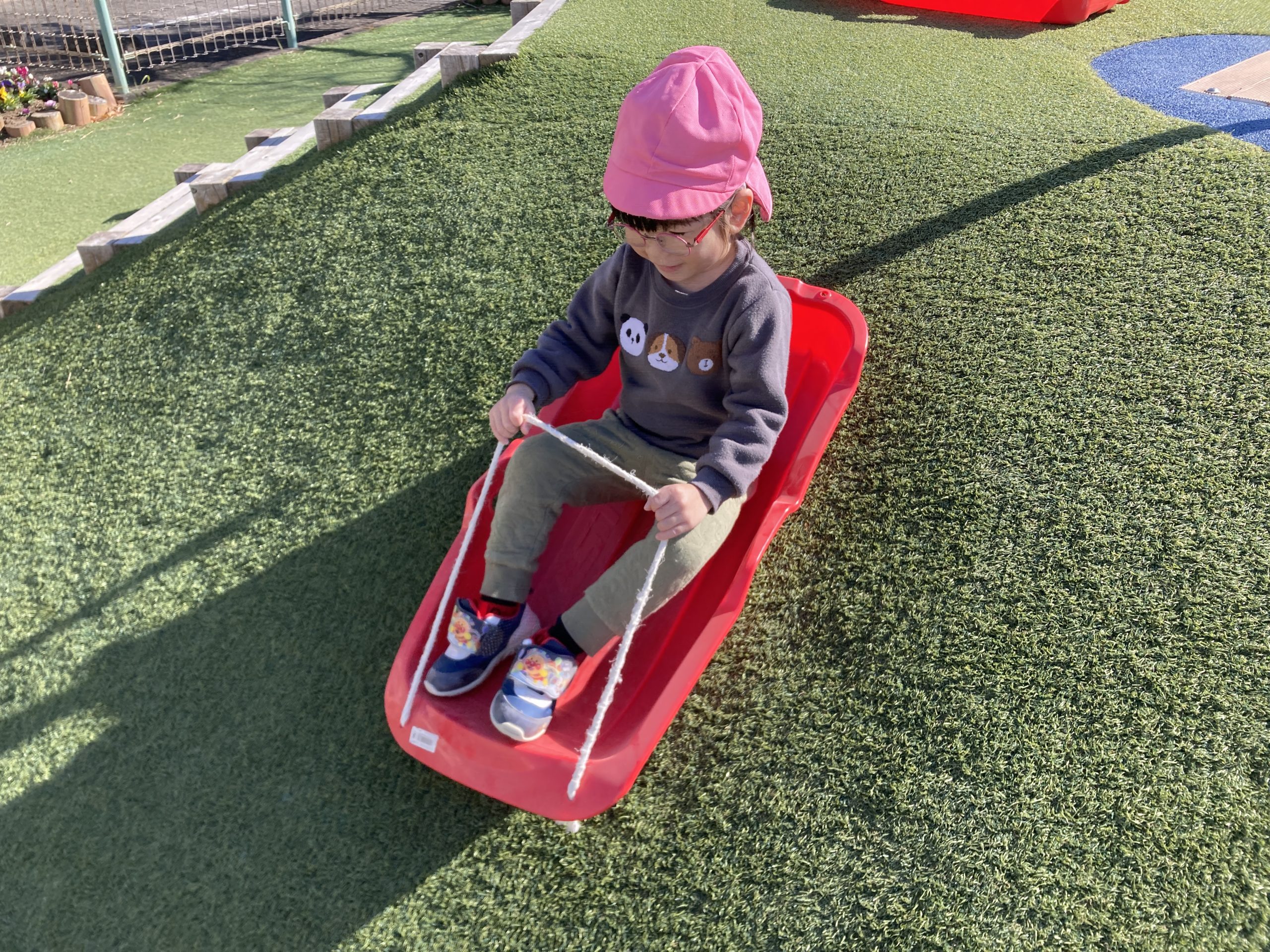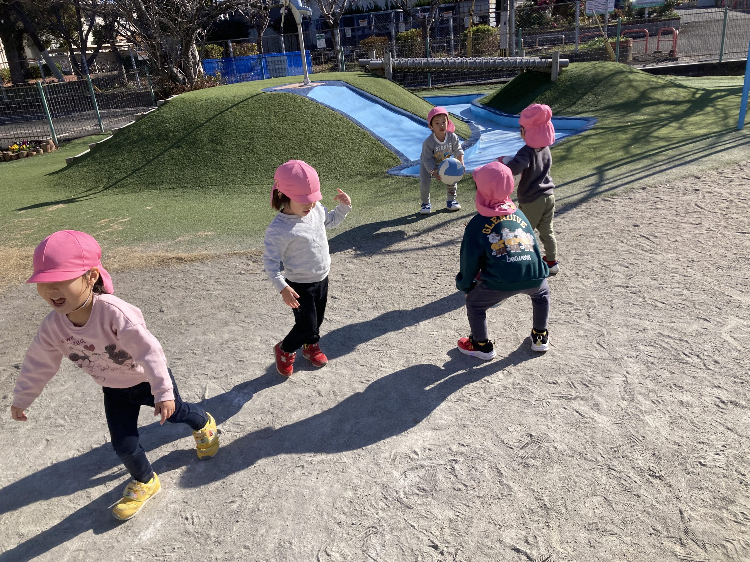 今日は、戸外遊びをしました🌤芝生で草スキーを楽しんだり、ボールを使って沢山身体を動かしましたよ🌌