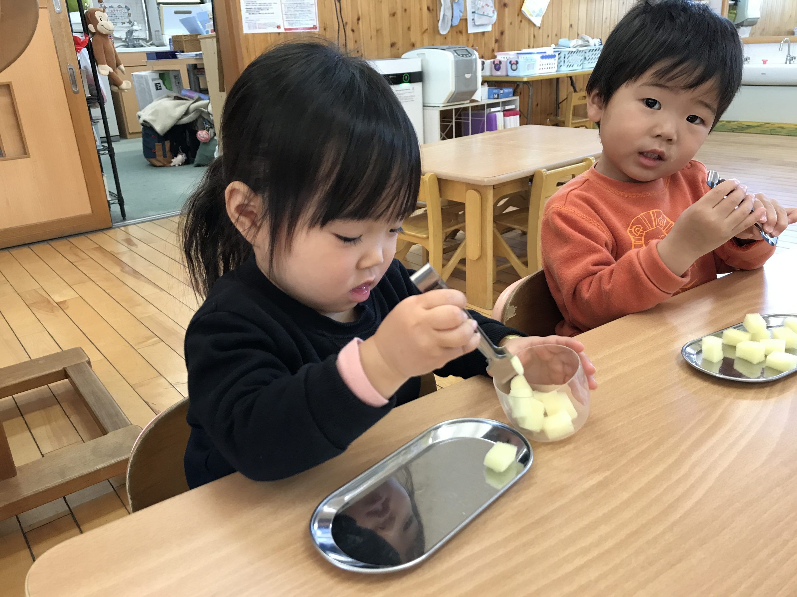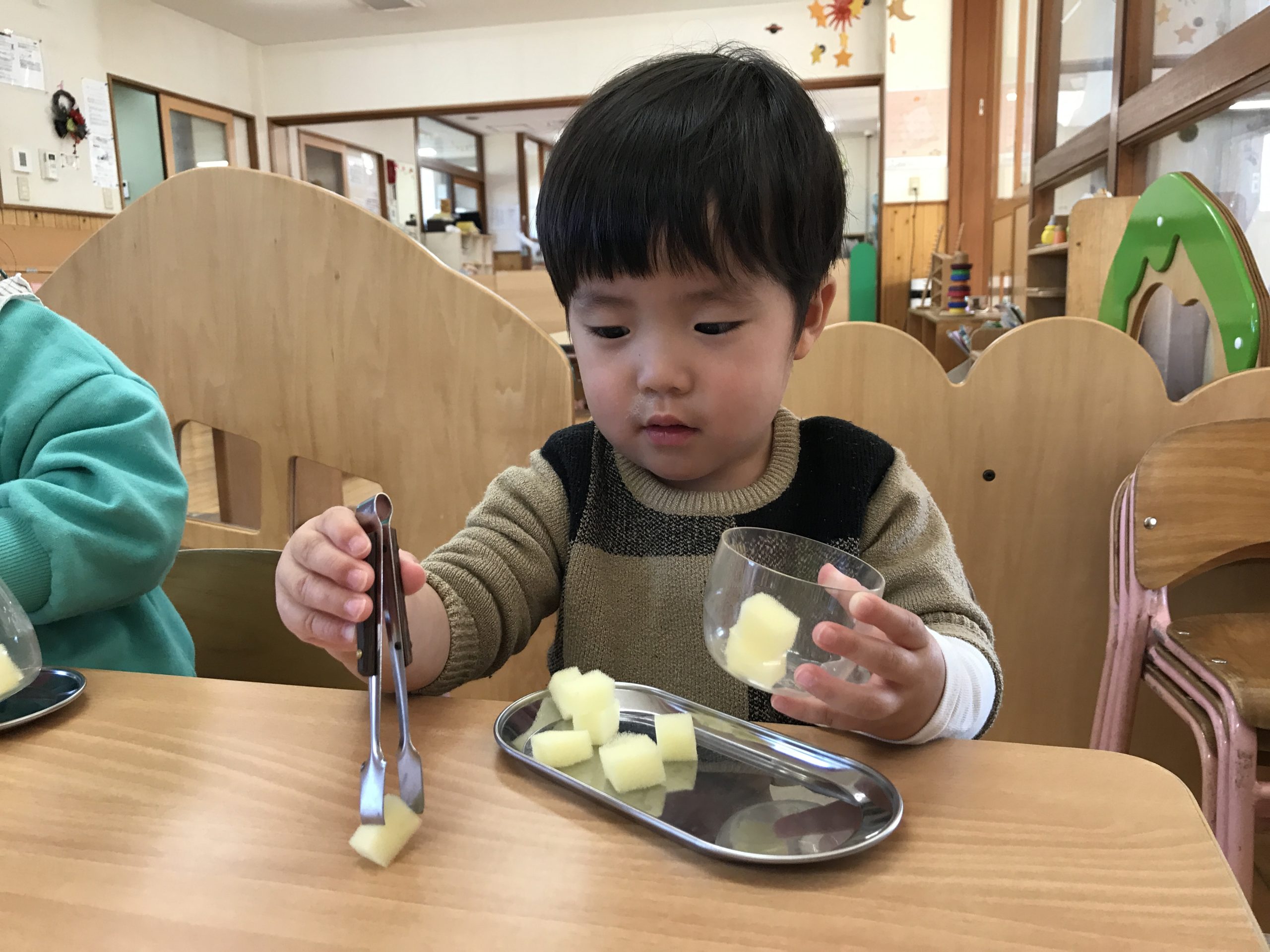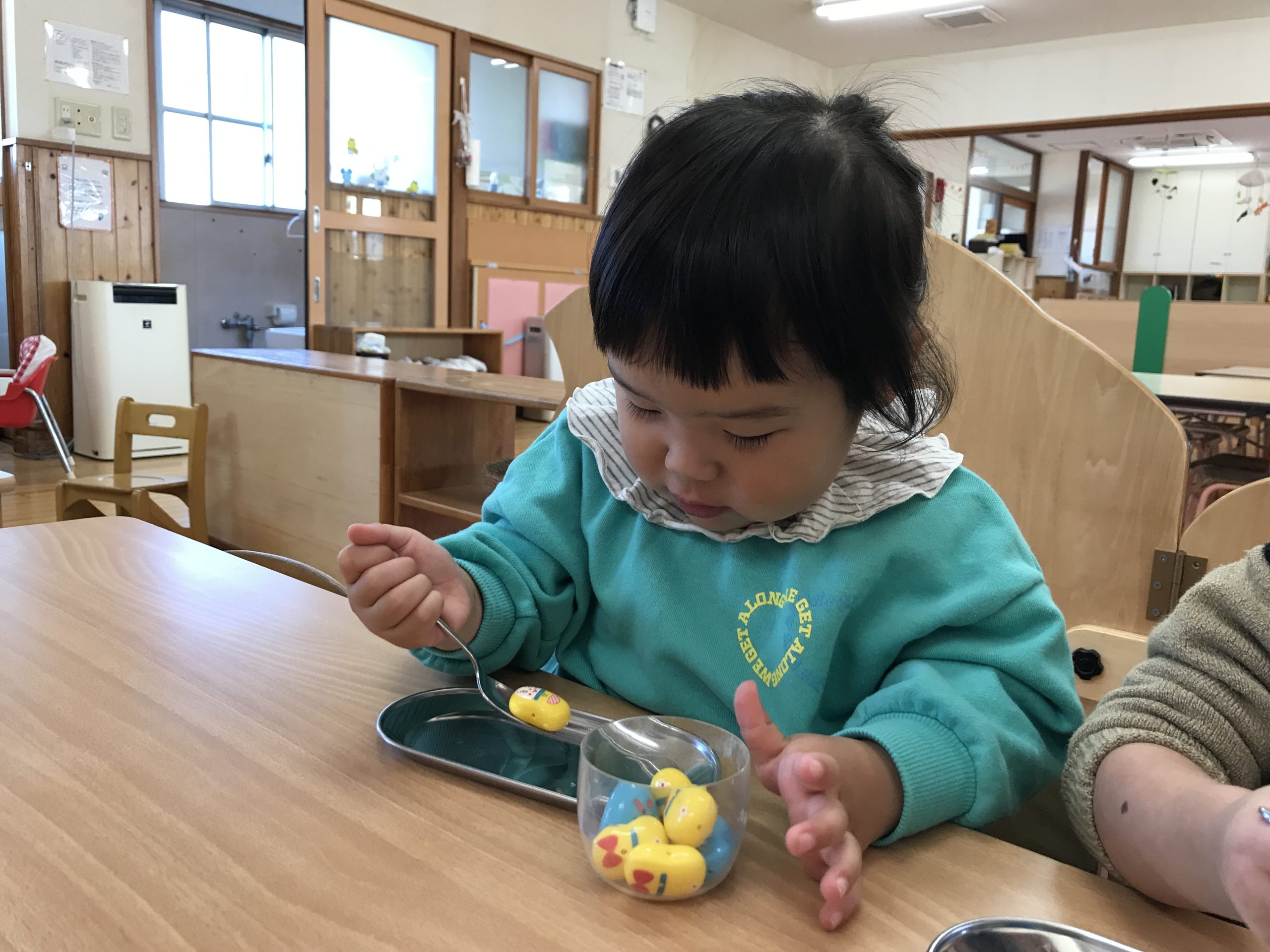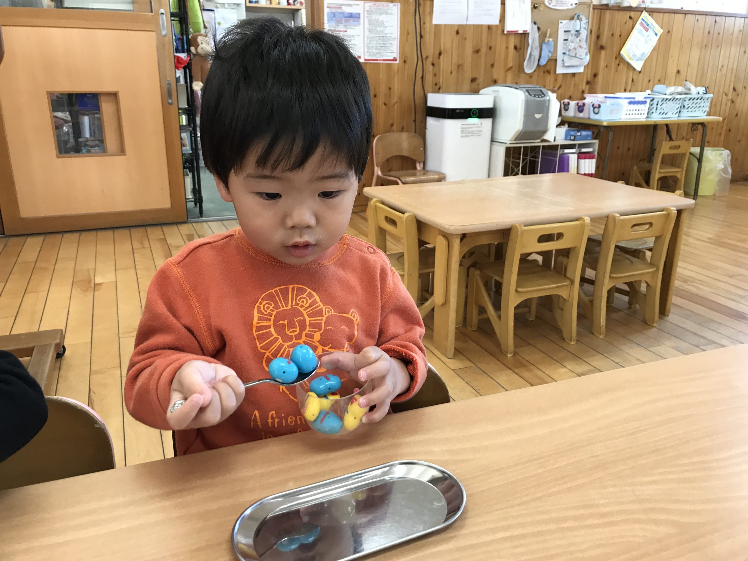 今日は豆うつしをしました🎵下握りで持って上手に豆をうつすことができていましたよ✨