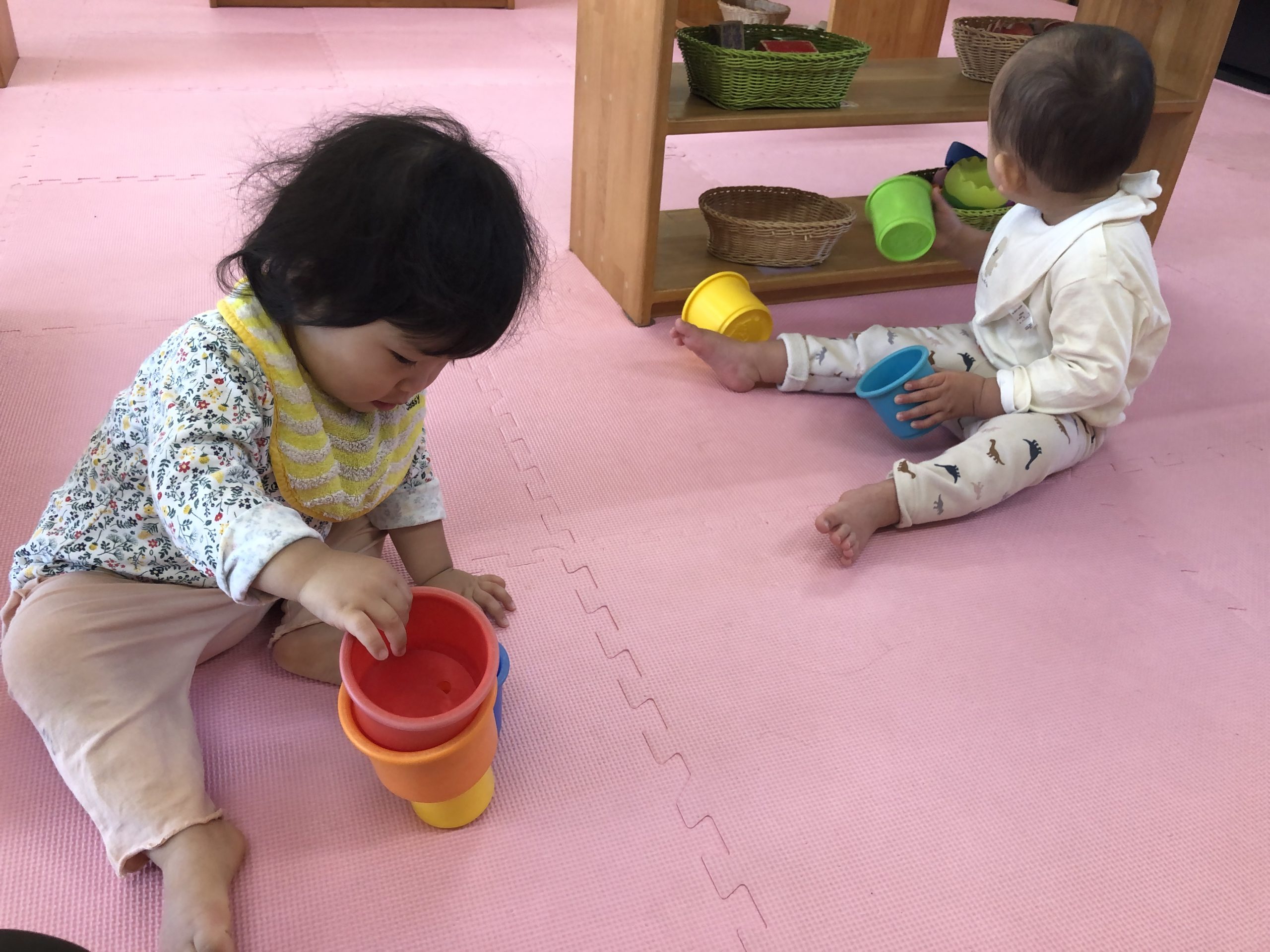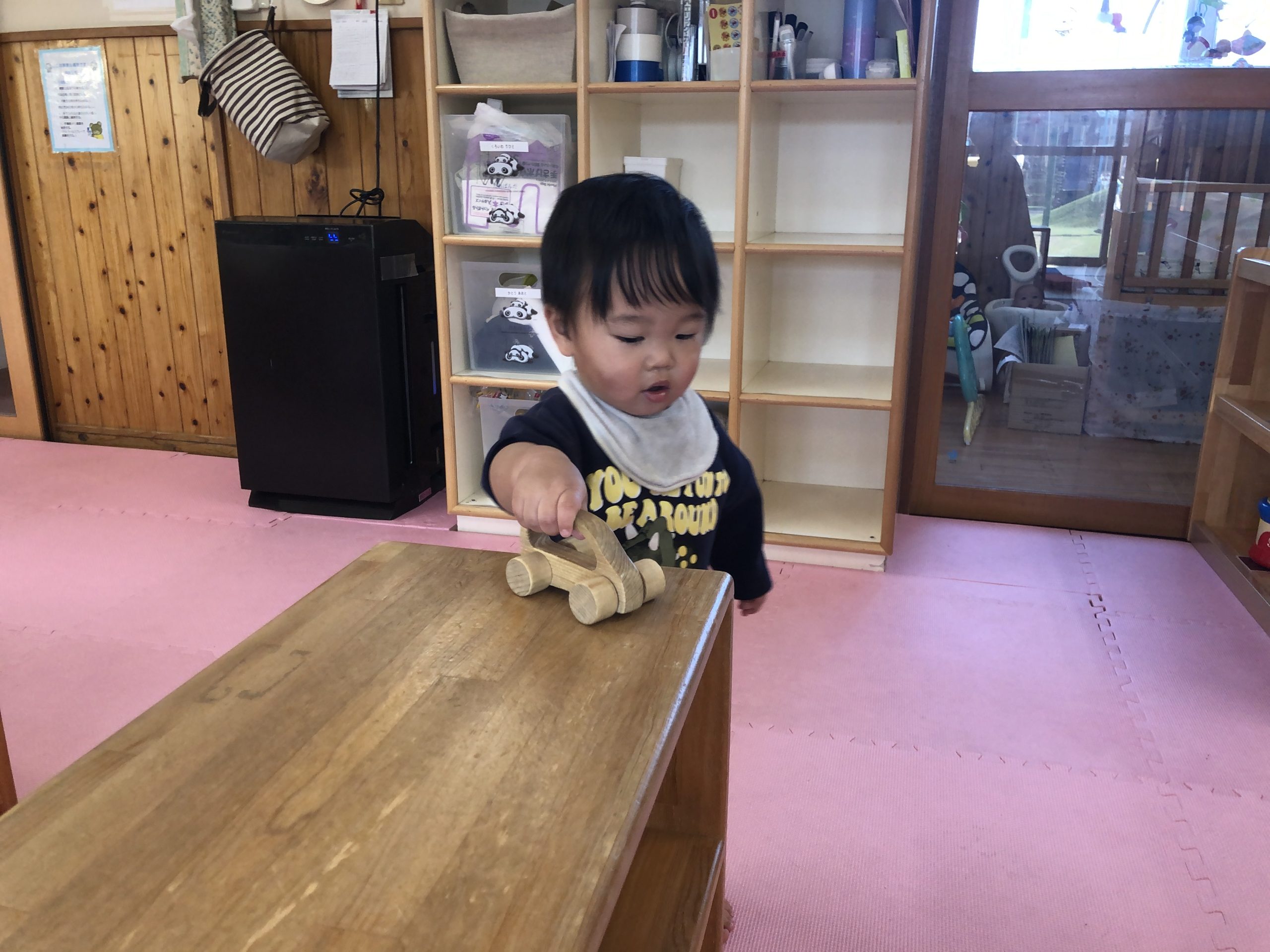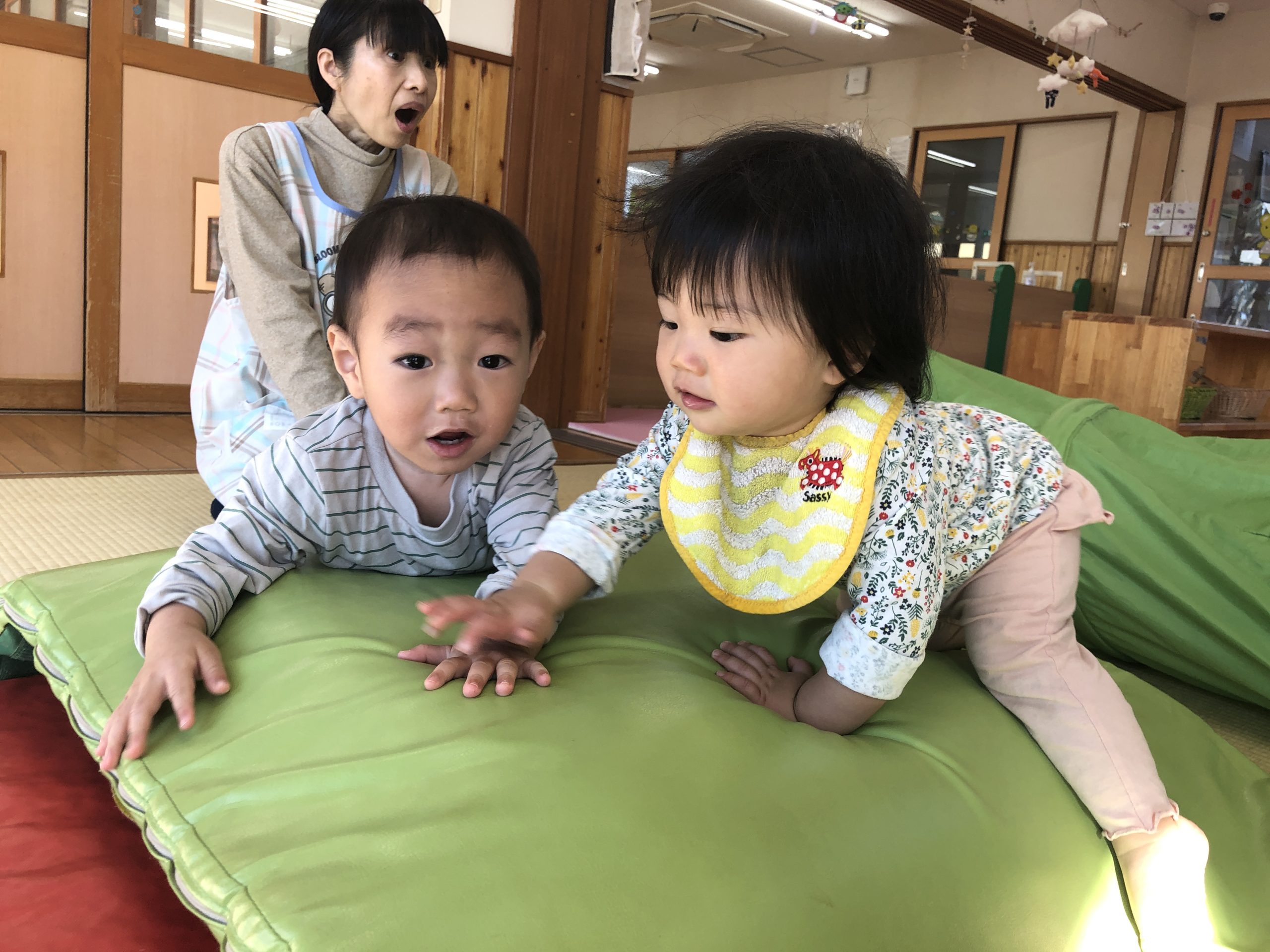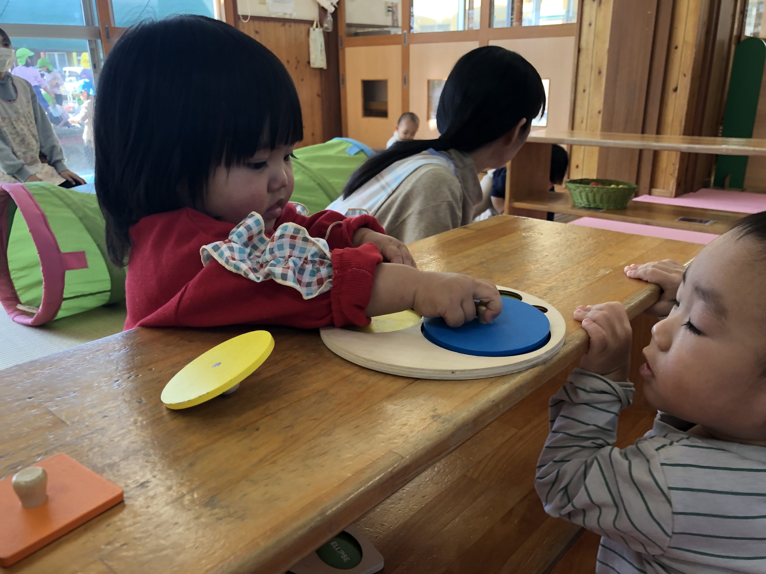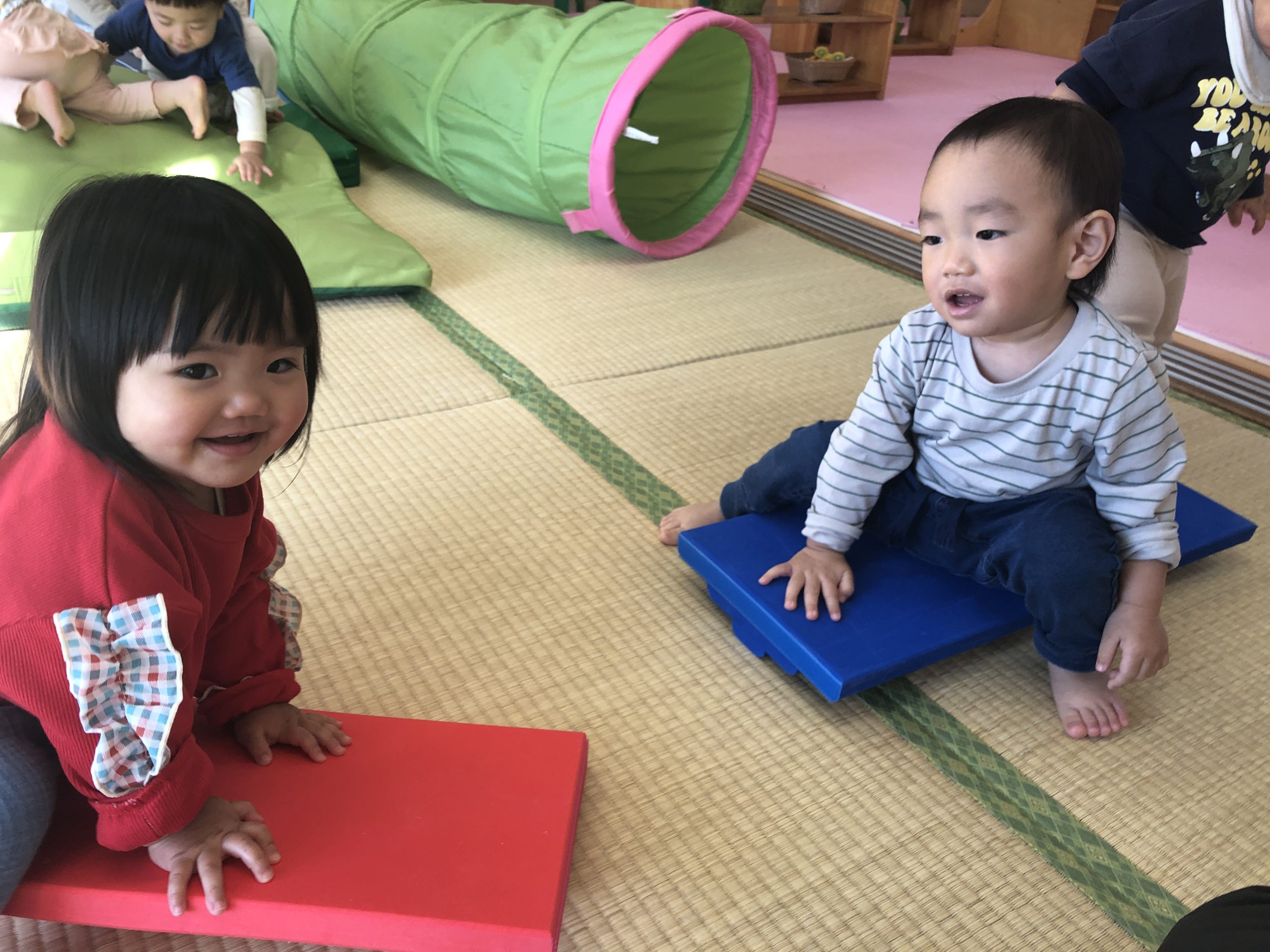 今日は、運動あそびとおもちゃあそび!好きな方を選んであそびました。蛇腹トンネルやマットで体を動かしてたくさん遊んで、おもちゃで遊びたくなったら玩具の所にきて遊んでいましたよ。