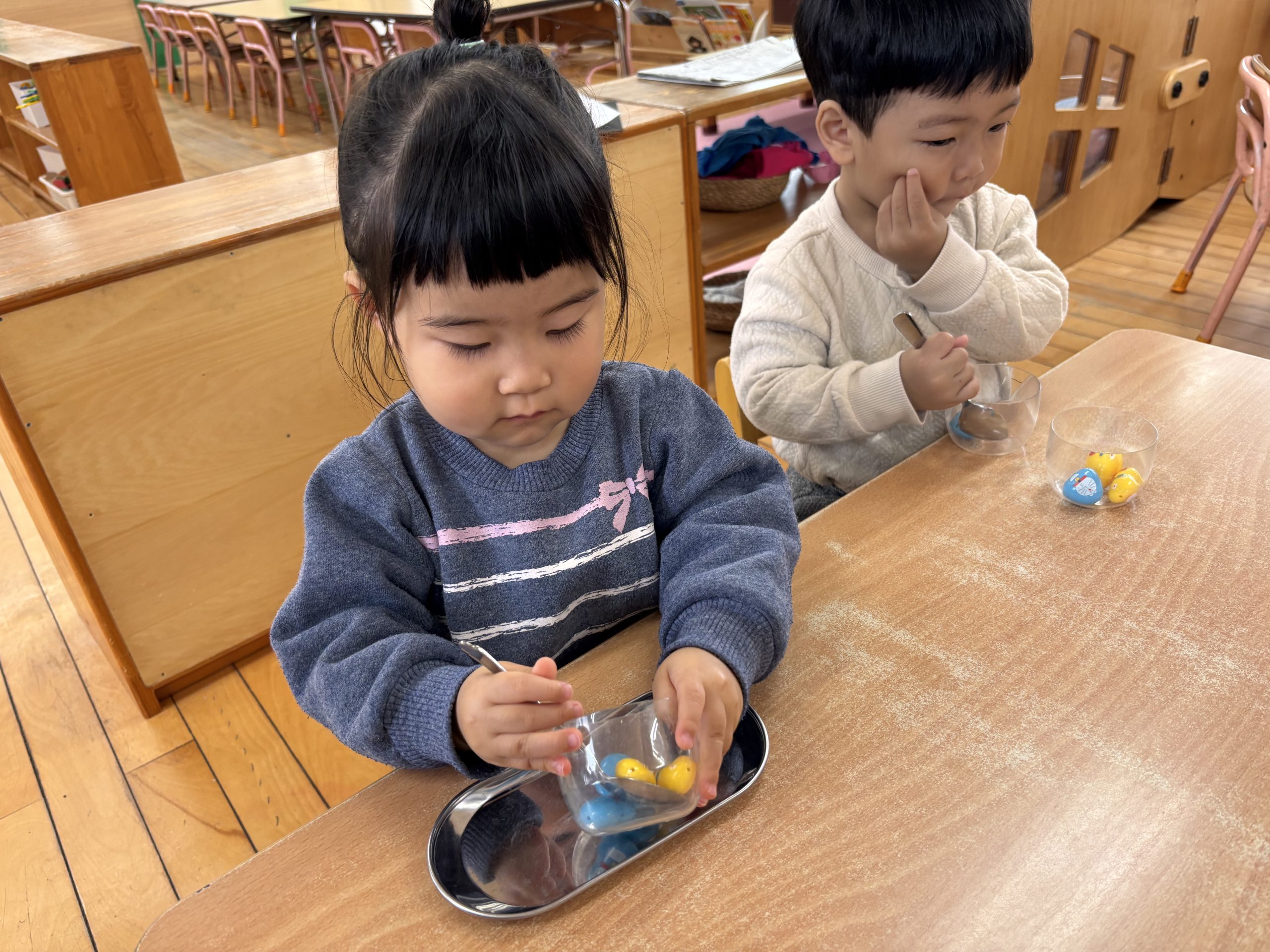 今日は、豆うつしをしました!!上手にうつすことができていましたよー!!