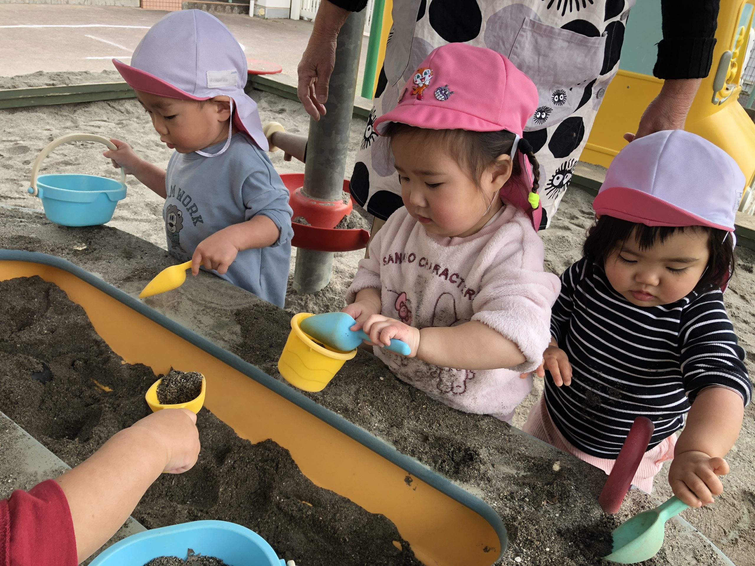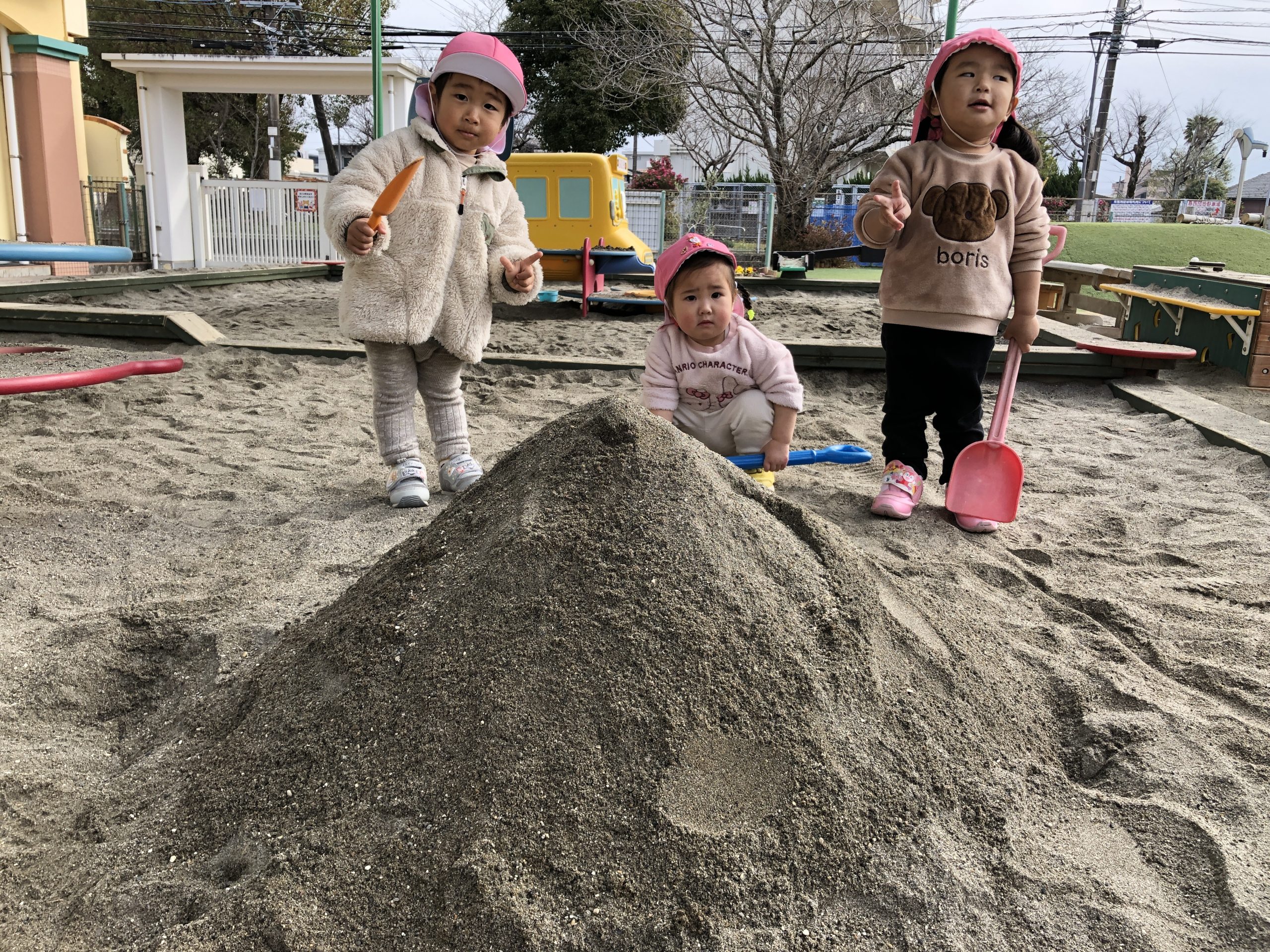 今日は砂場遊びをしました!スコップやバケツを使って遊びました🎵みんなで大きいお山も作りましたよ⭐️