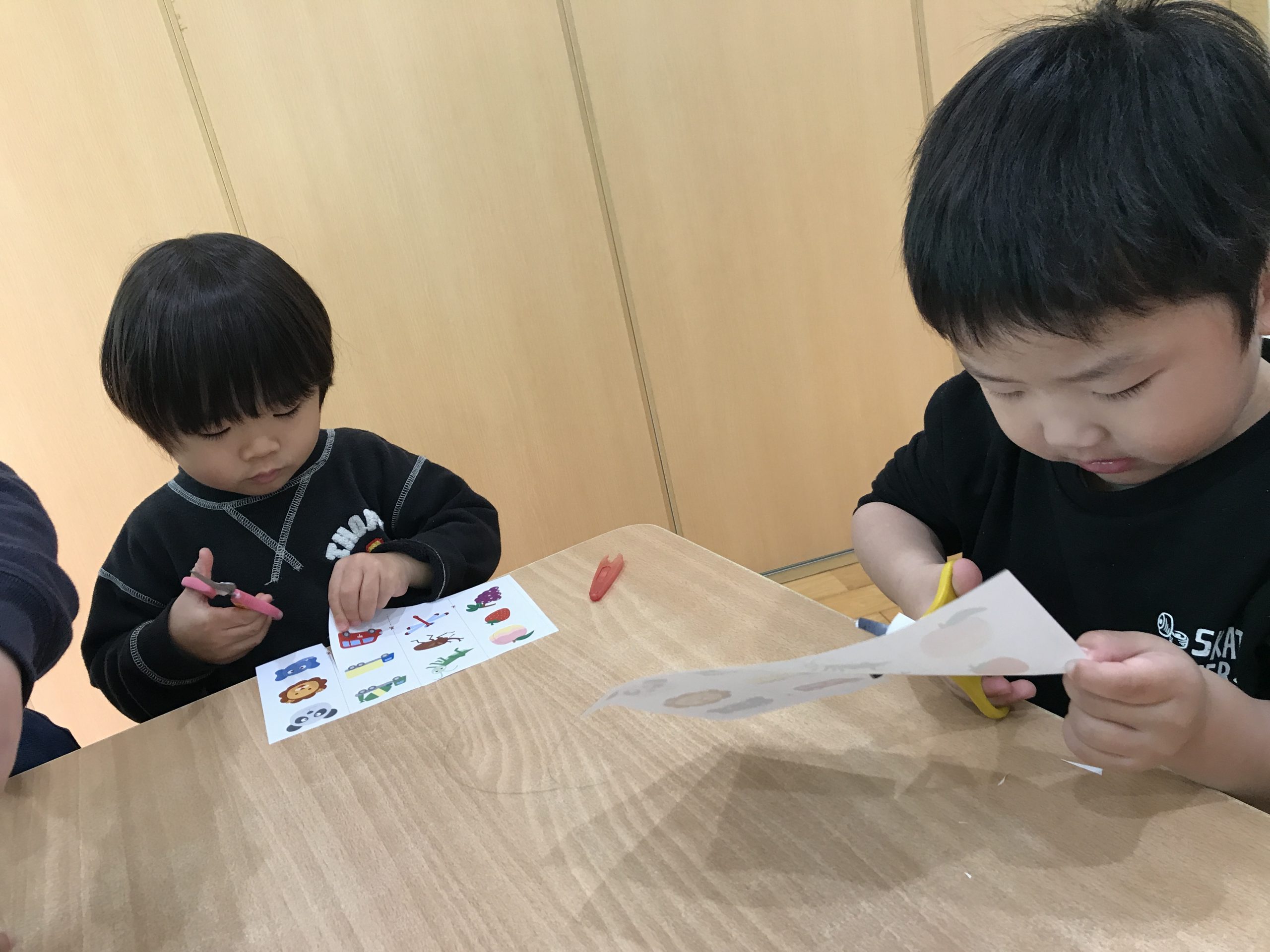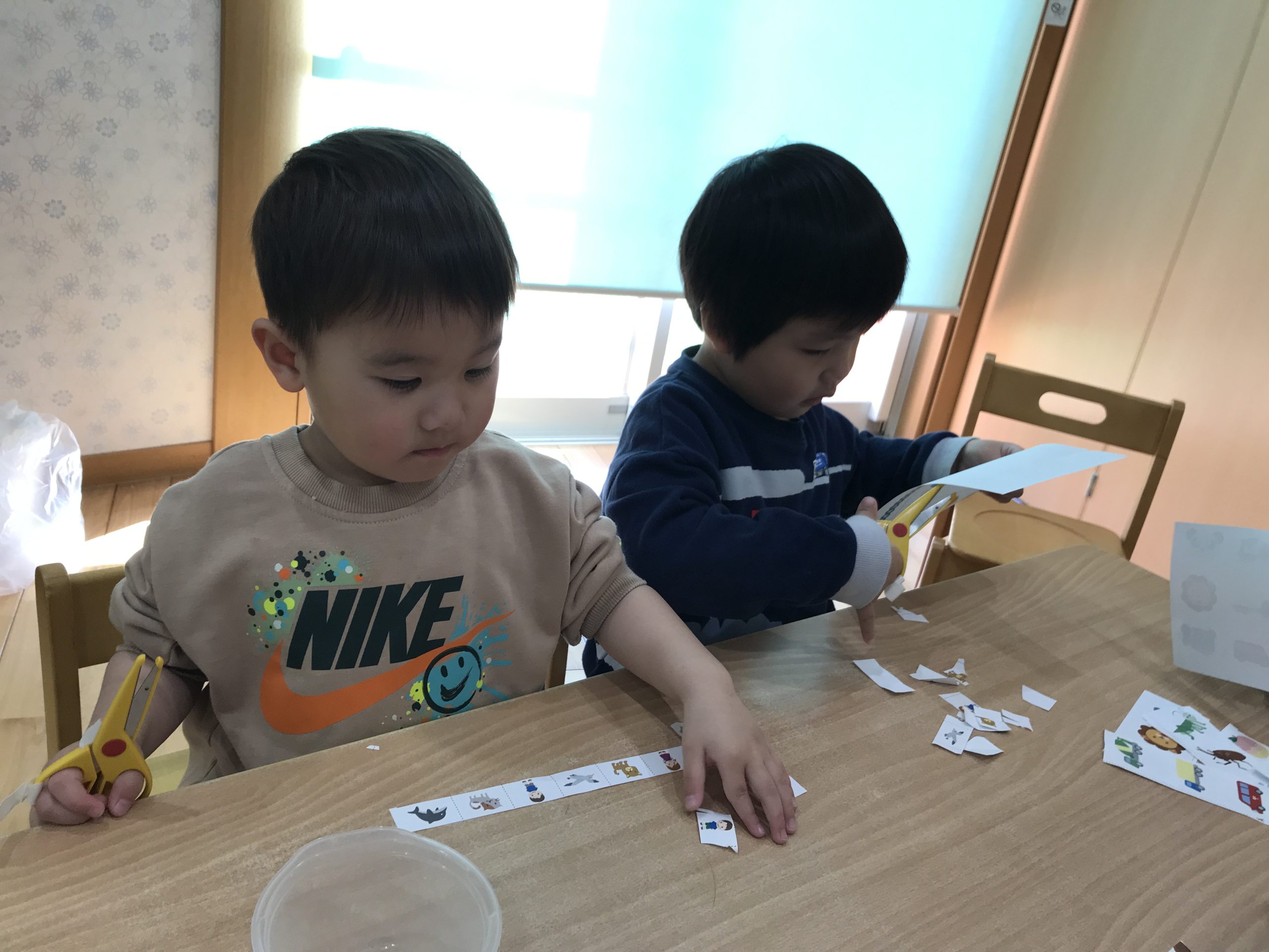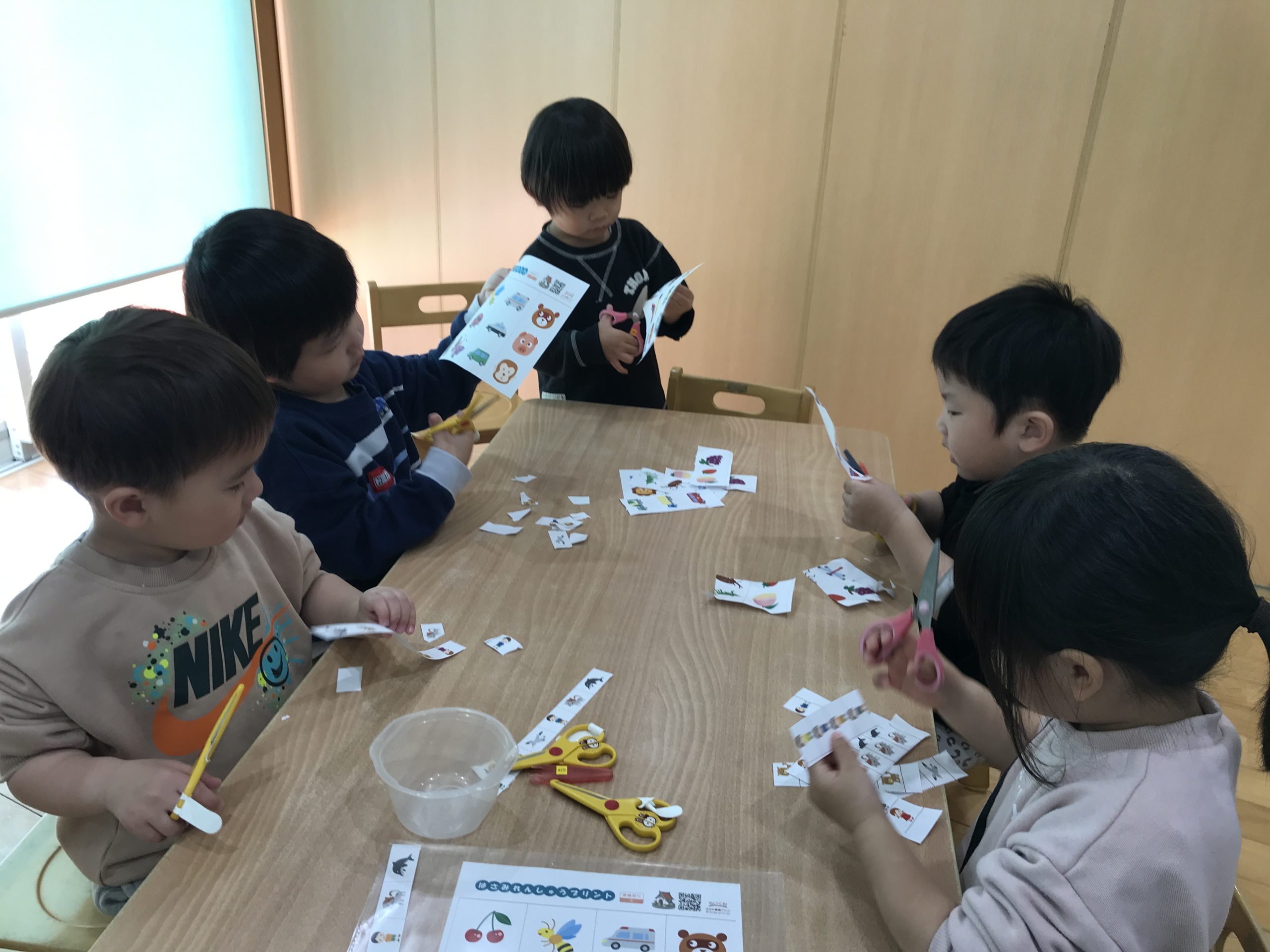 今日は、ハサミの練習をしました✂️1回切りや直線切りをしました。集中して取り組んでいましたよ😊✨