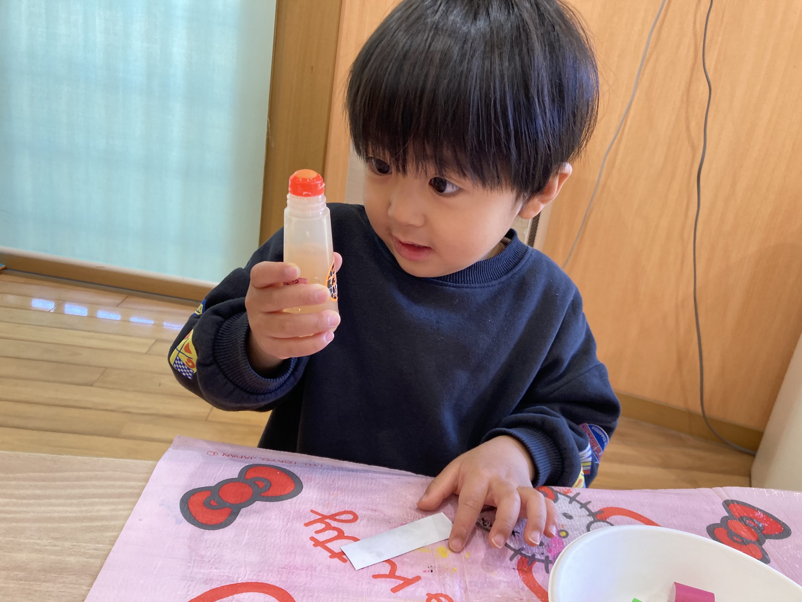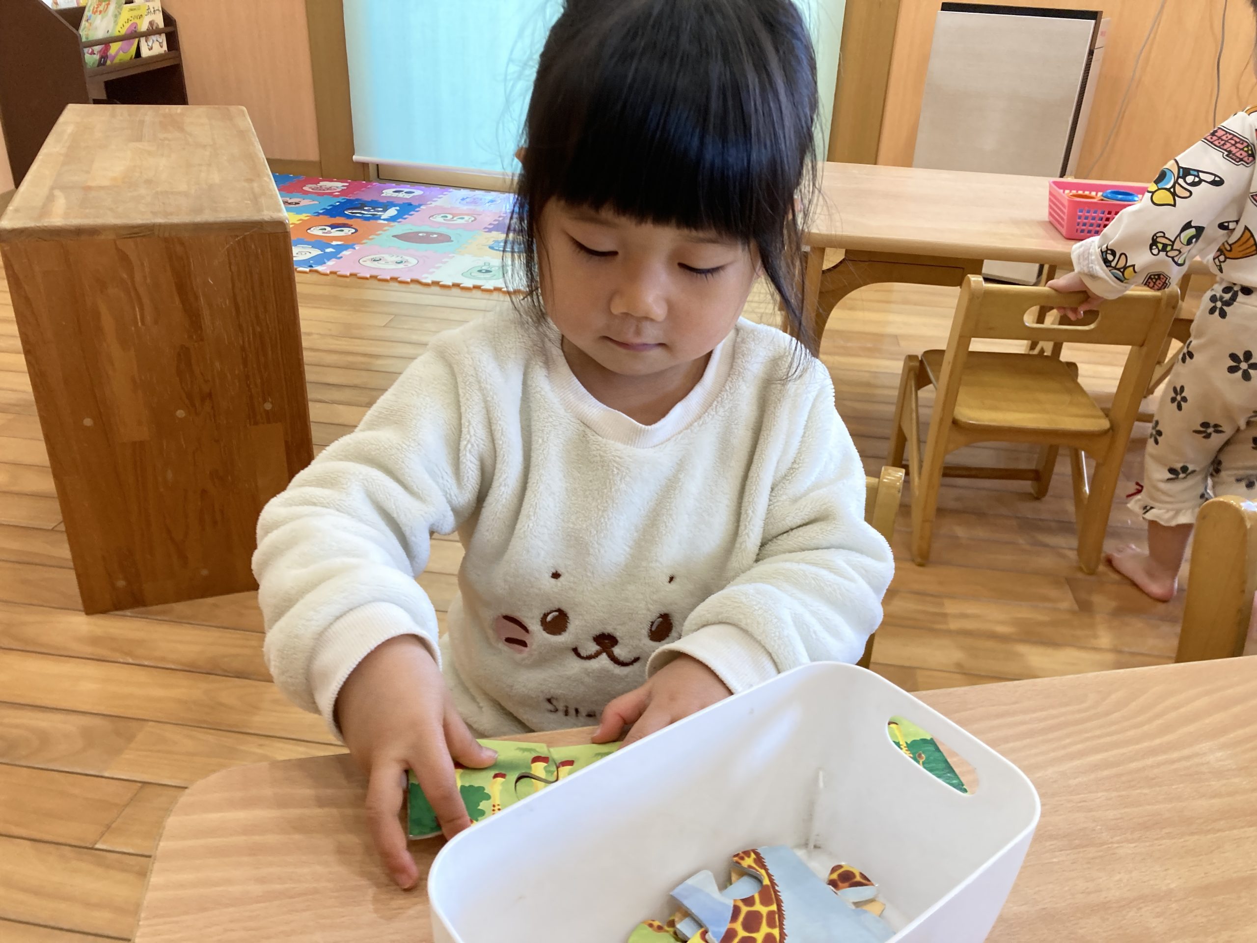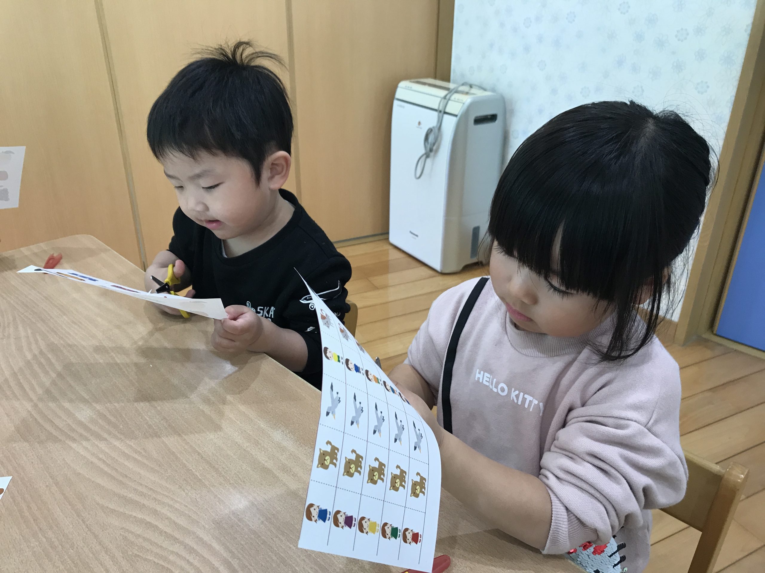 今日は、ハサミの練習をしました✂️1回切りや直線切りをしました。集中して取り組んでいましたよ😊✨