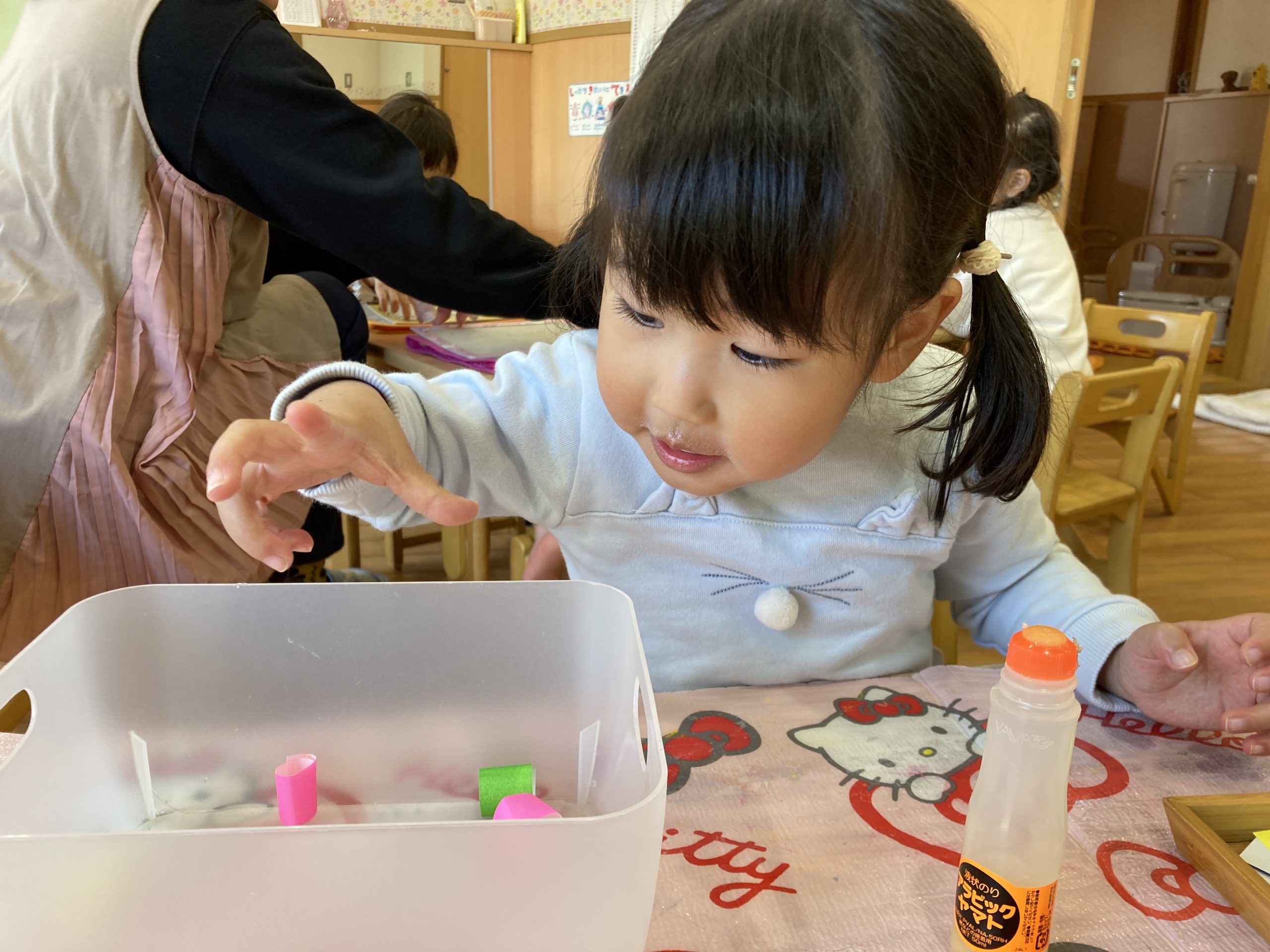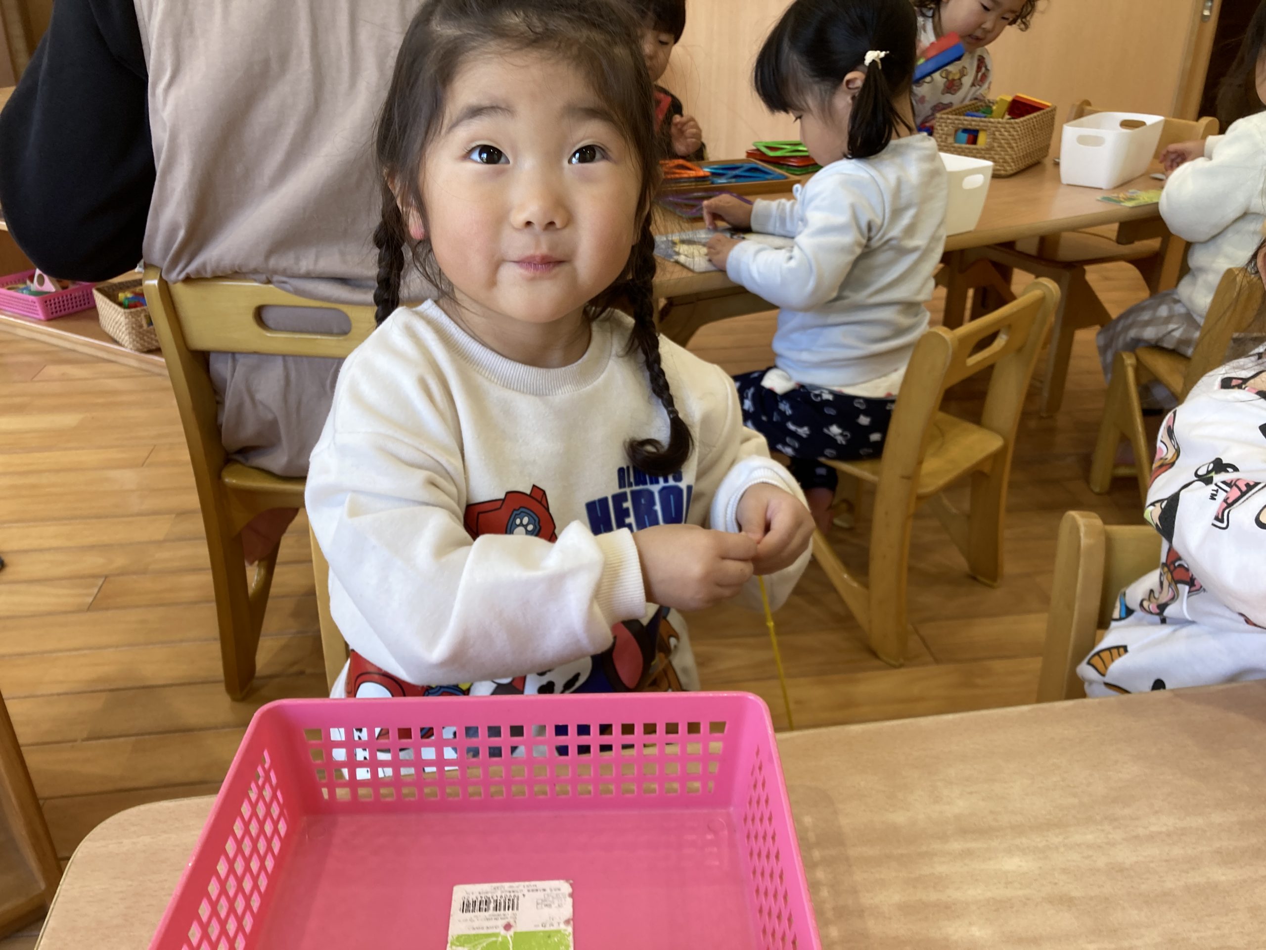 今日は、昨日に引き続き、お面作りをしました👹お面作りが終わると、ぞれぞれ好きな遊びをしながら楽しく過ごしていましたよ🎵
