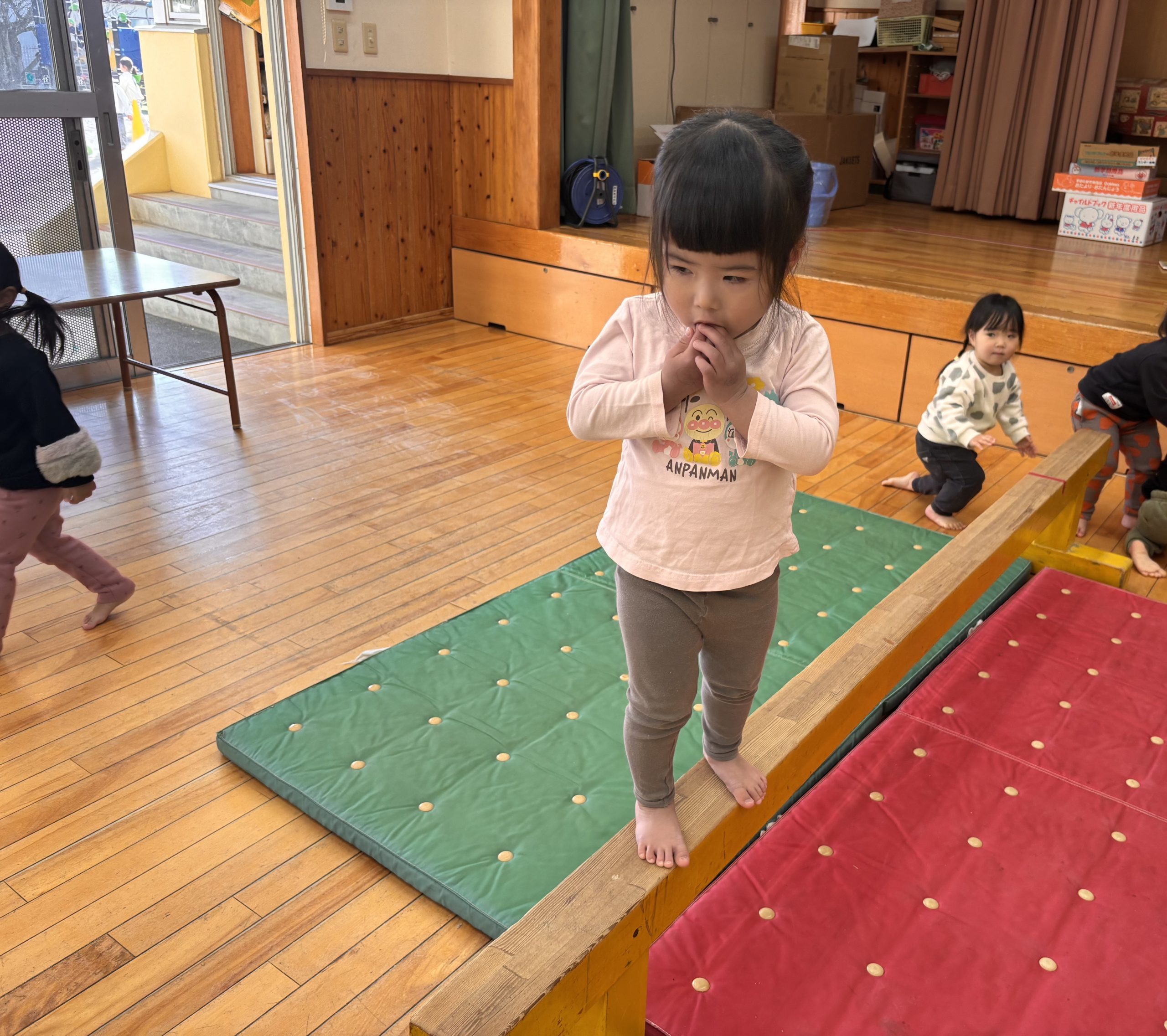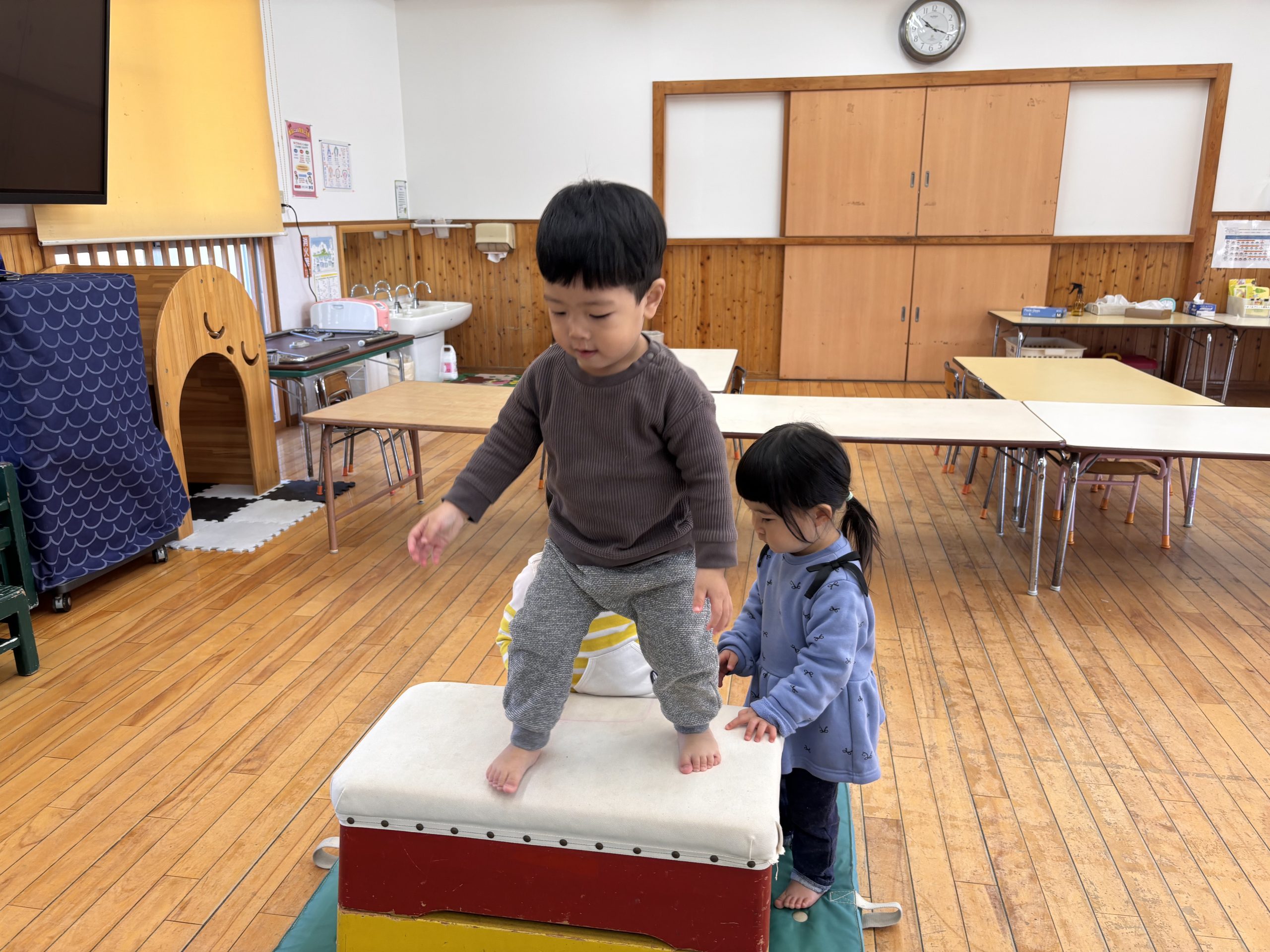 今日は柳沢運動遊びをしました!跳び箱からの跳び降り、鉄棒、平均台をしてたくさん体を動かしました⭐️
