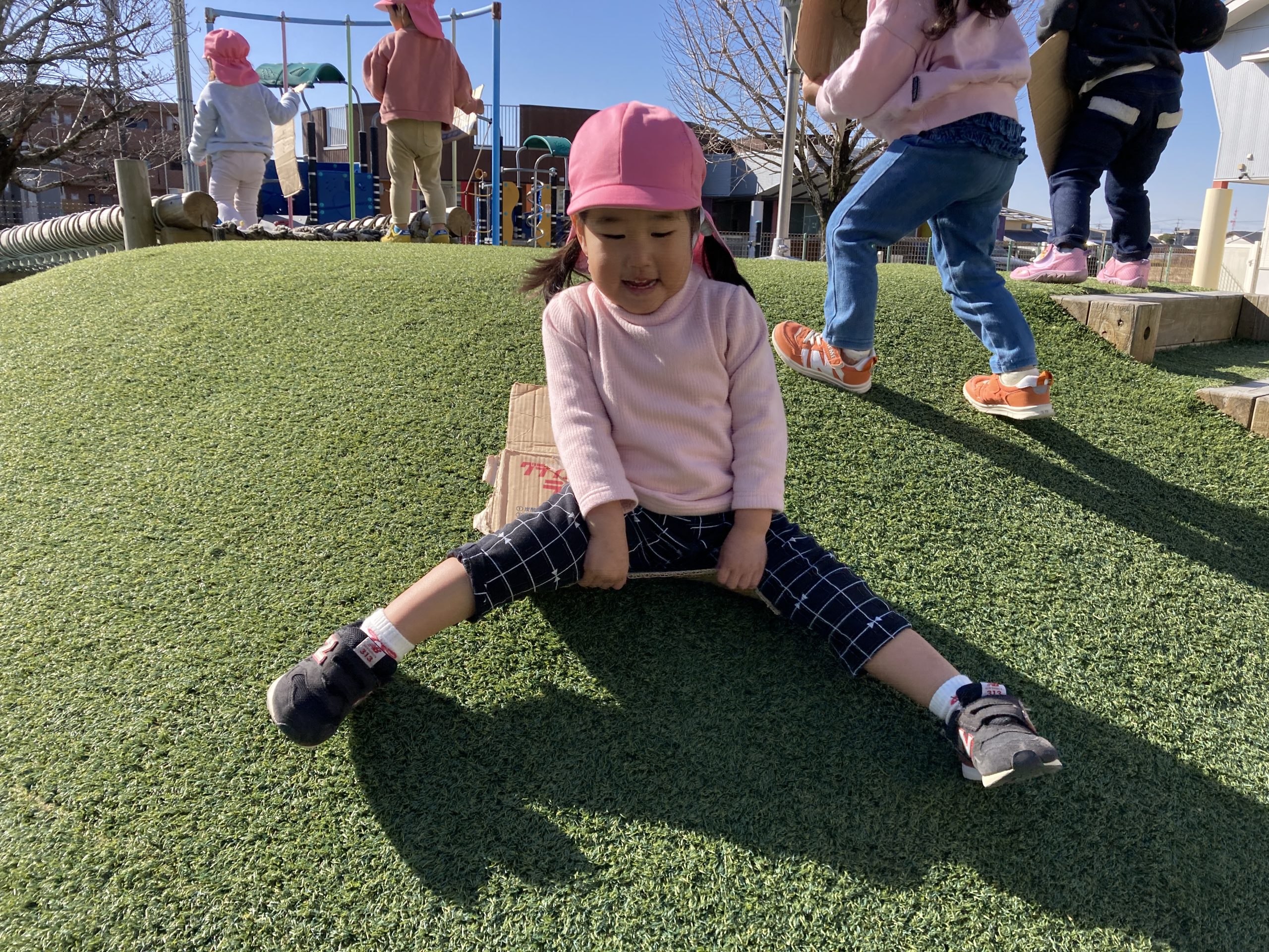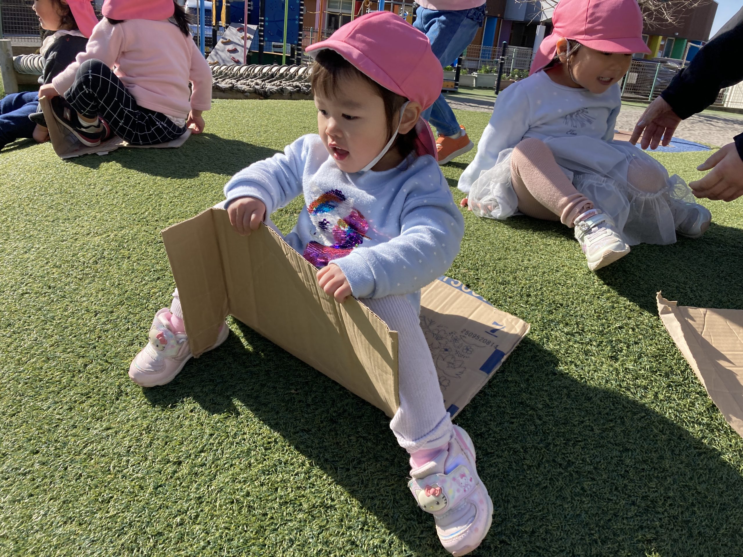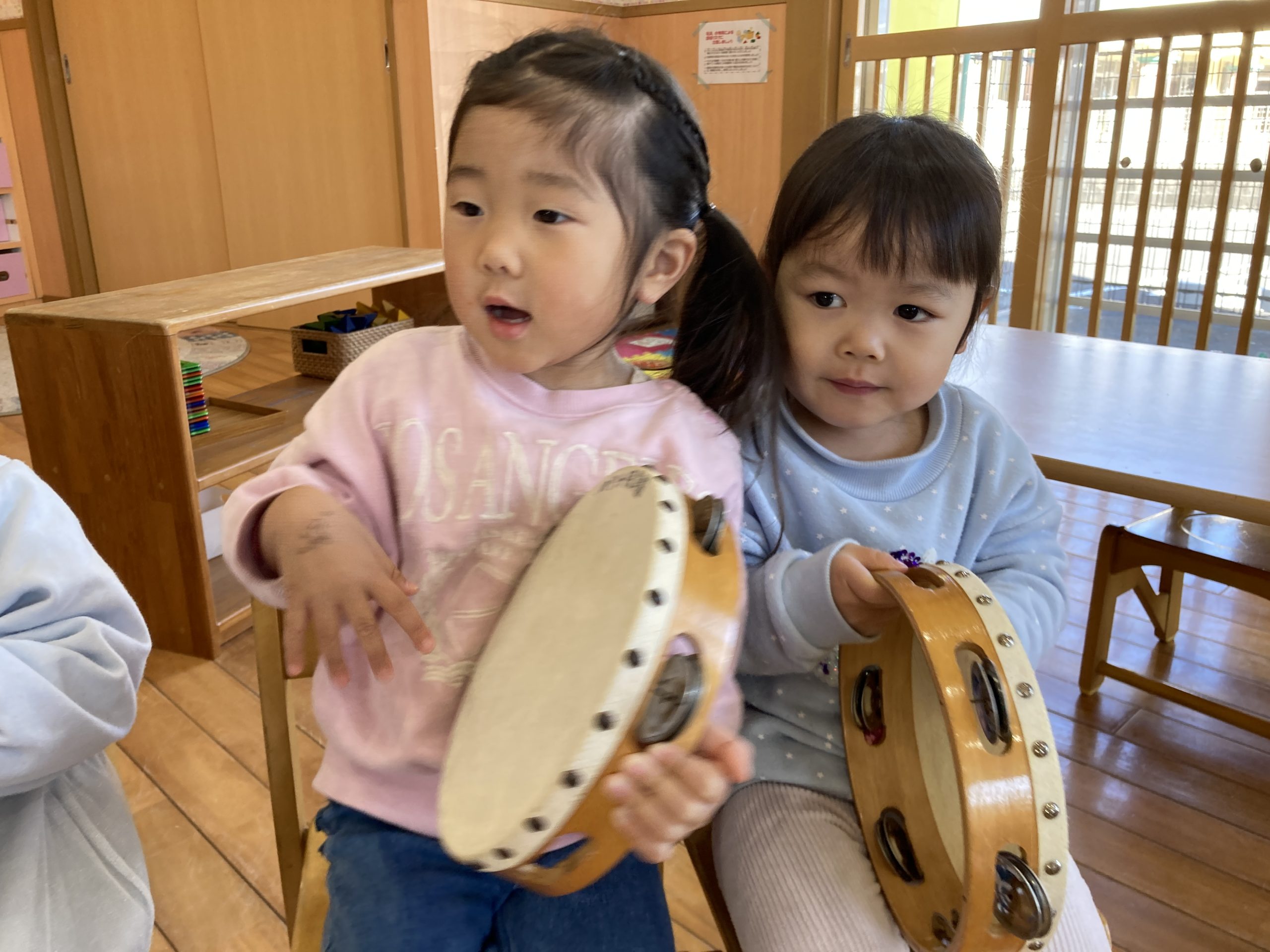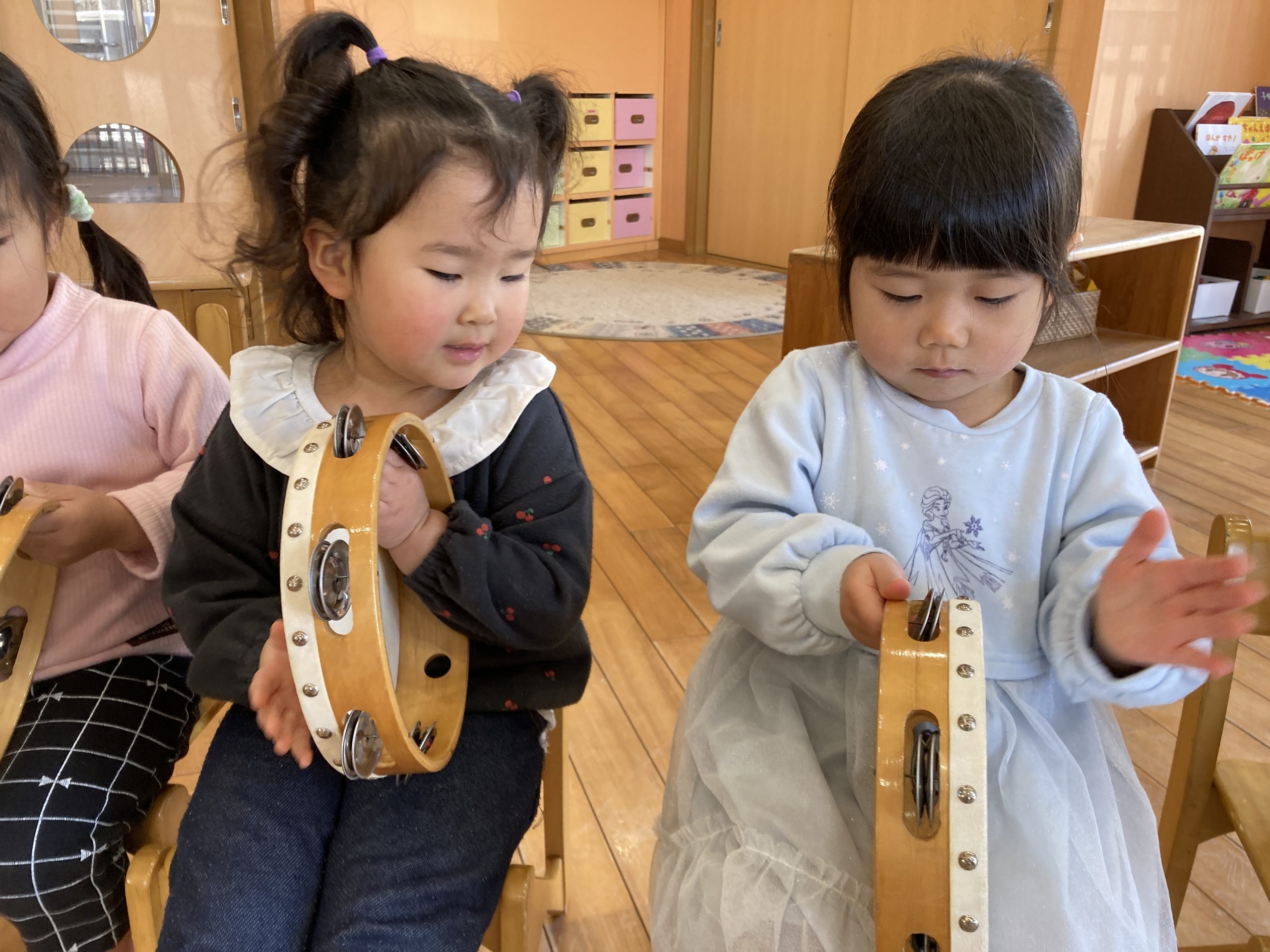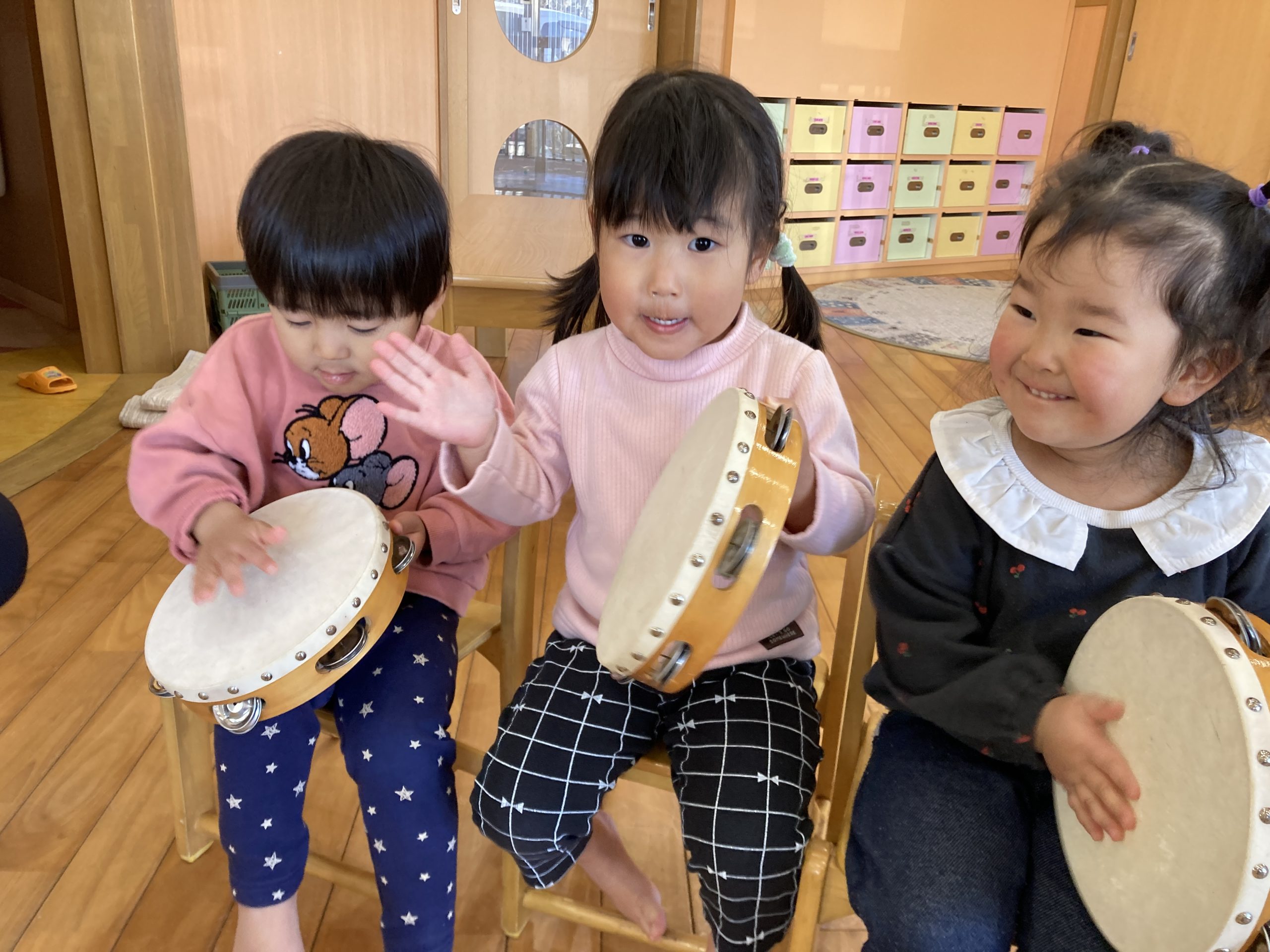 今日は、楽器遊びをしました🎵タンバリンを鳴らして楽しんでいました!楽器遊びの後は築山で遊びました😆
