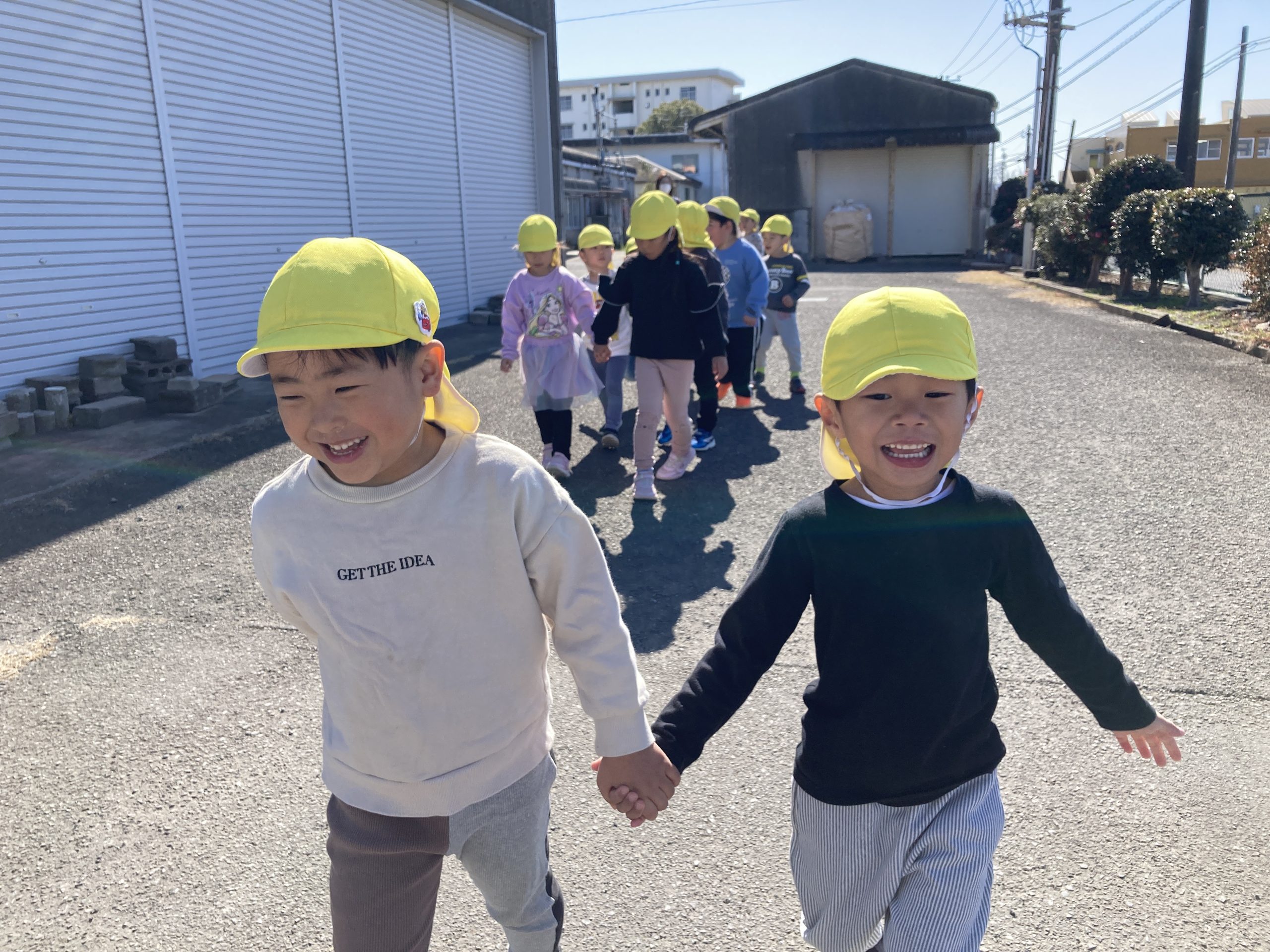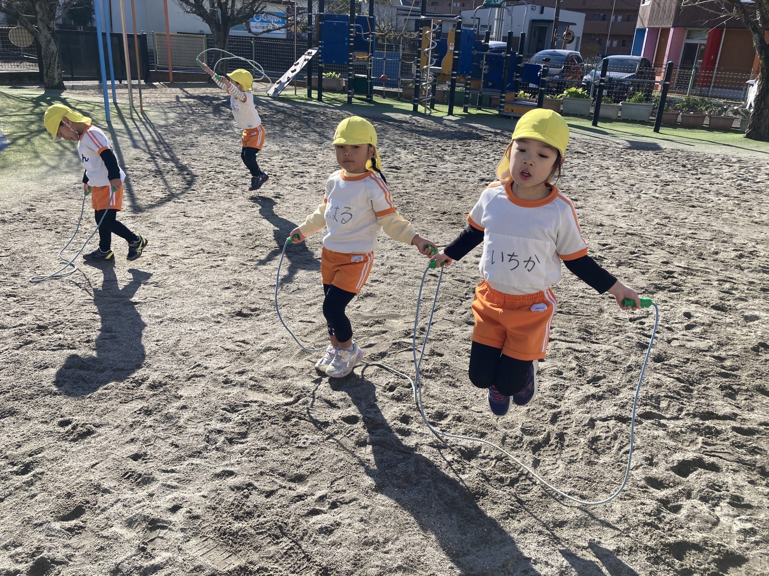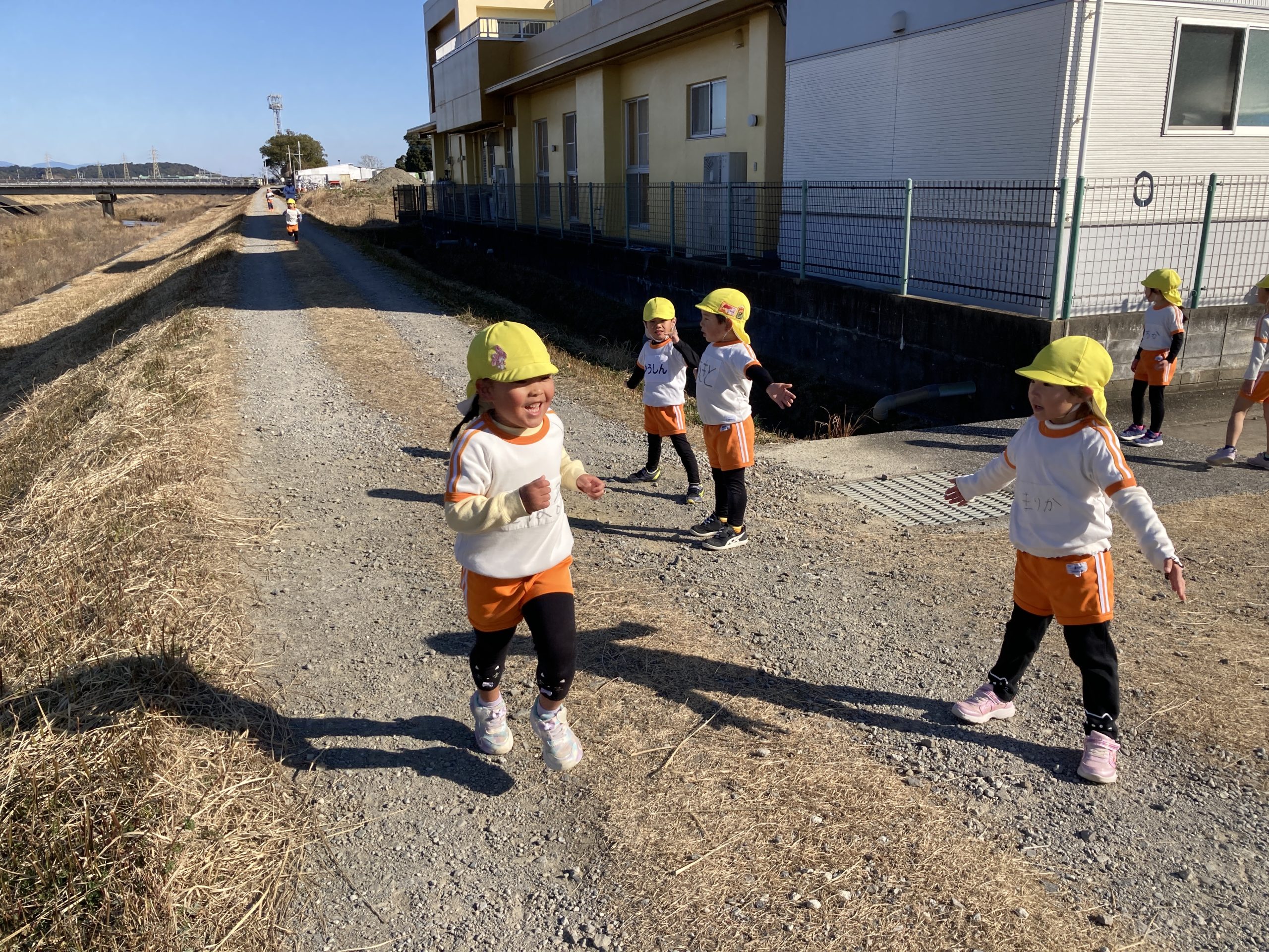 今日の体育遊びは縄跳びやマラソン、ドッヂボールをしました!マラソンでは堤防を走った後、順位で並んだら他のクラスのお友達と「何位だった?」とお話ししたりしていました🏅ドッヂボールはルールを覚えてチームの対決を楽しんでいました⭐️午後からは近隣公園に行きマラソン大会のコースの確認をしました!少し公園でも遊びましたよ🍀
