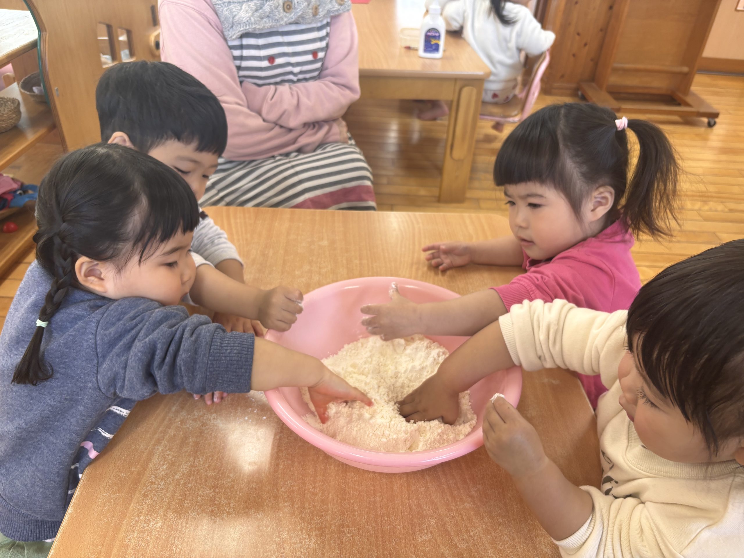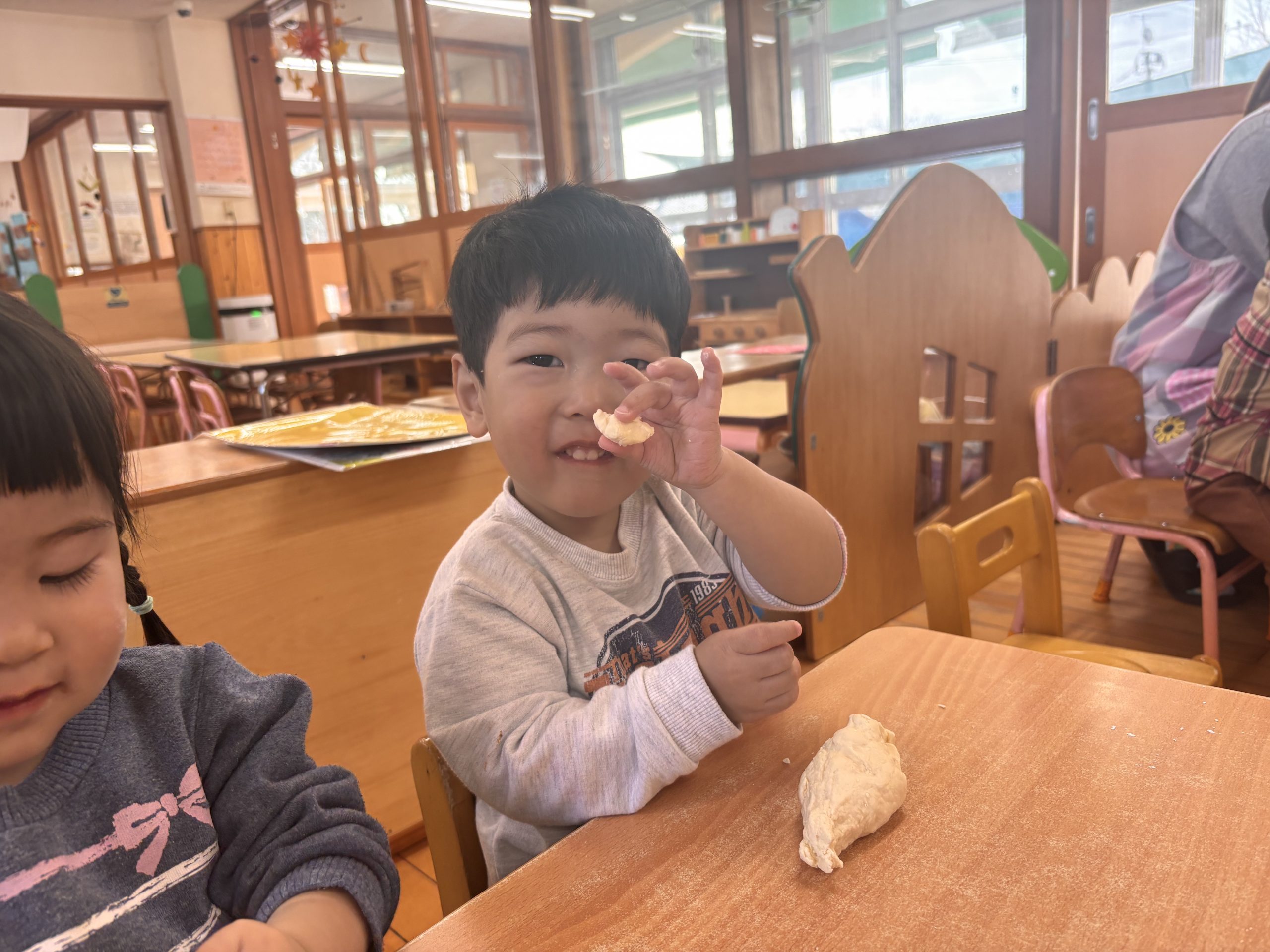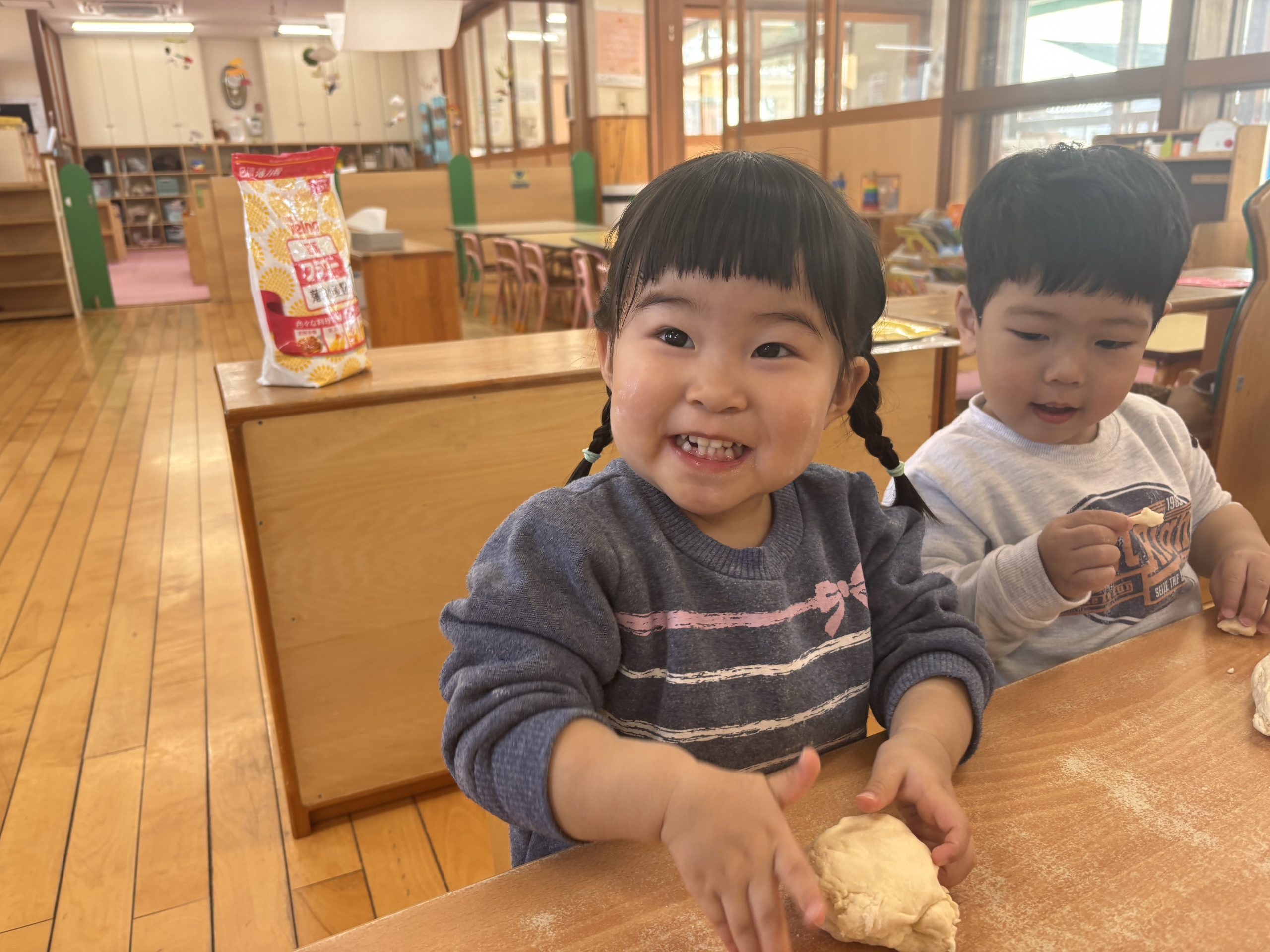今日は、小麦粉粘土遊びをしました♪