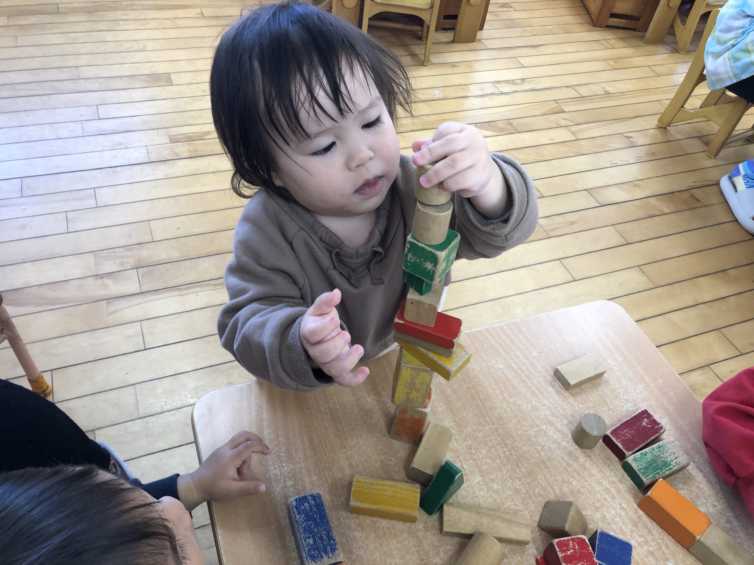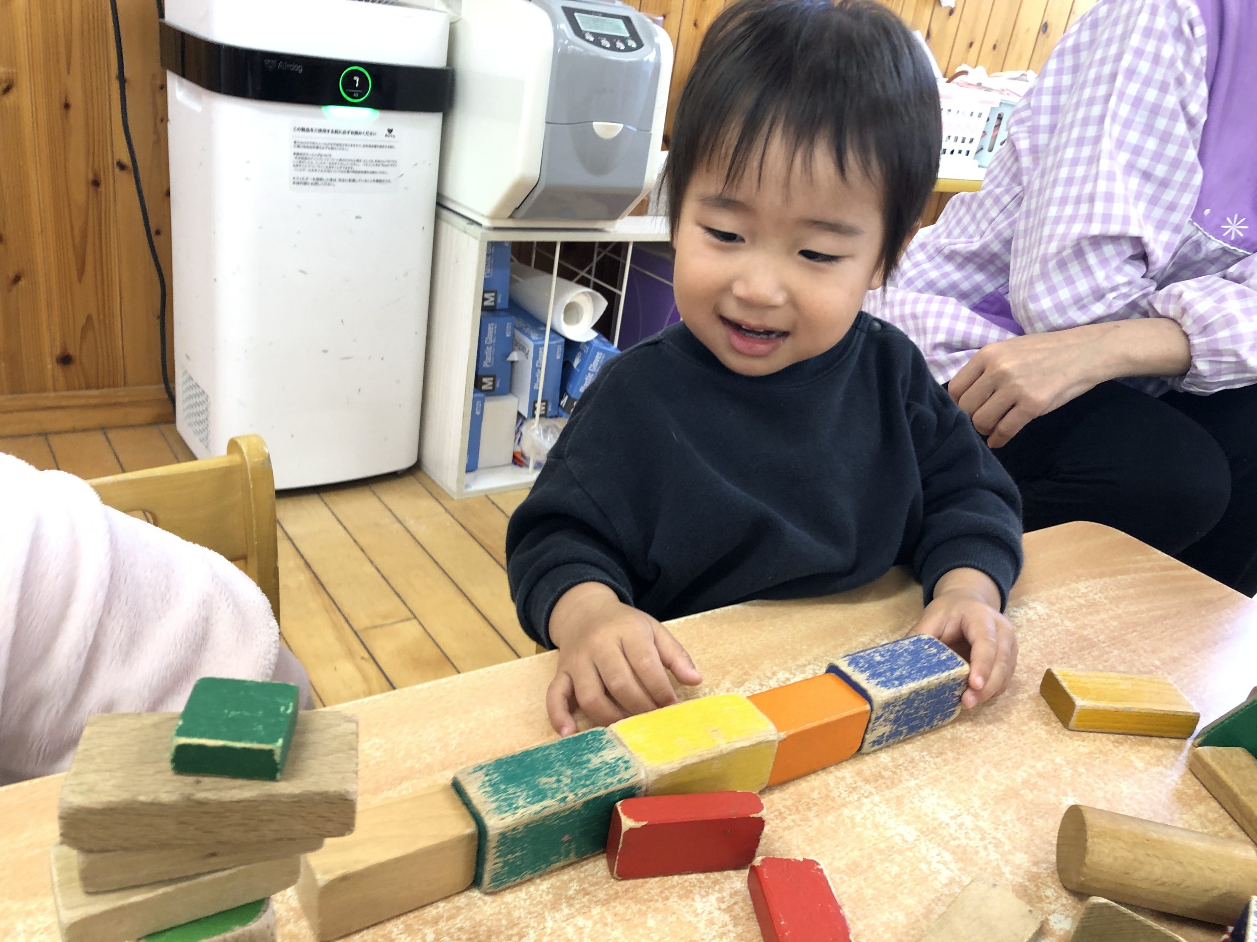 今日は積み木遊びをしました!高く積み上げたり、電車やお家を作りましたよ⭐️