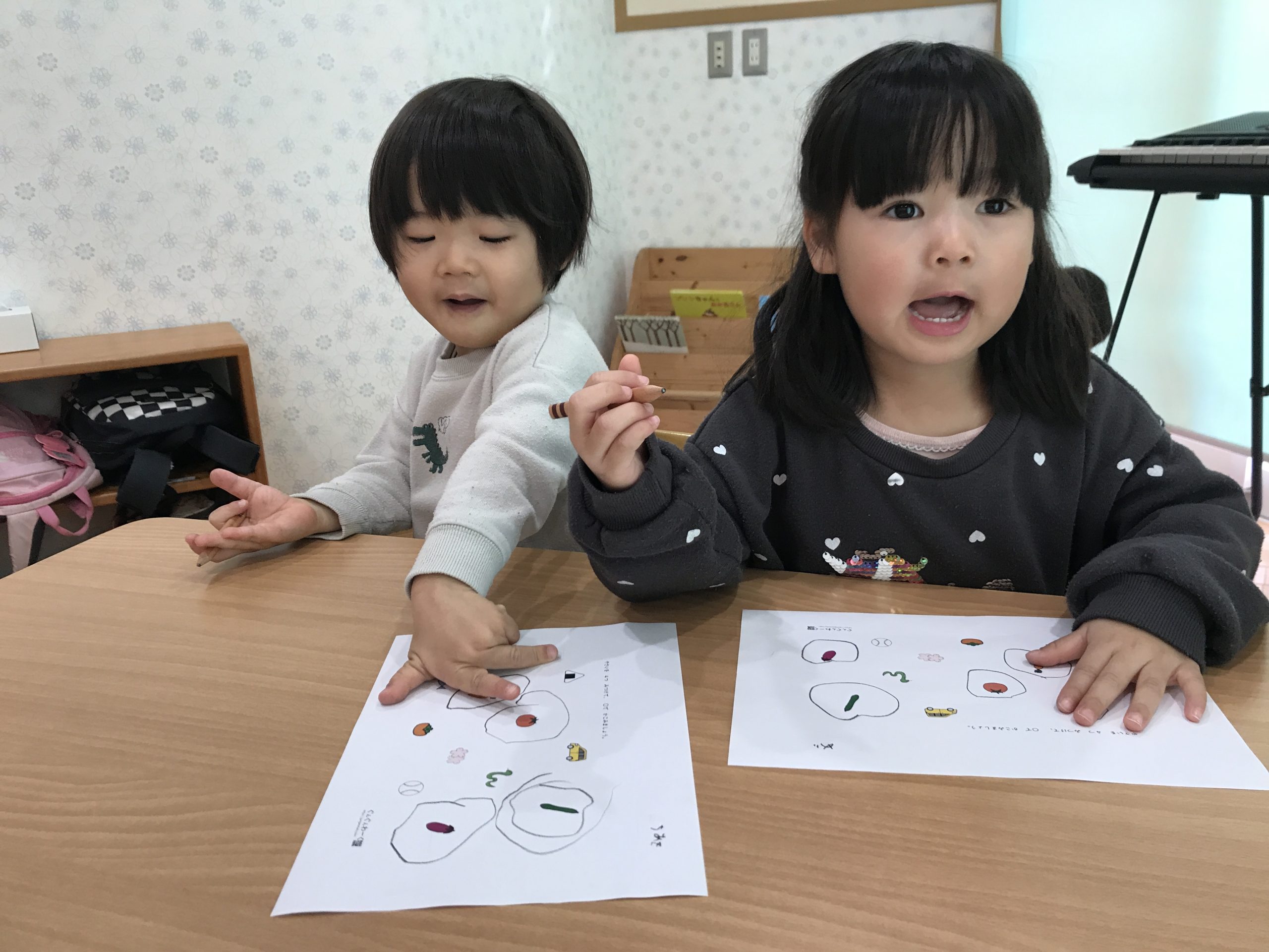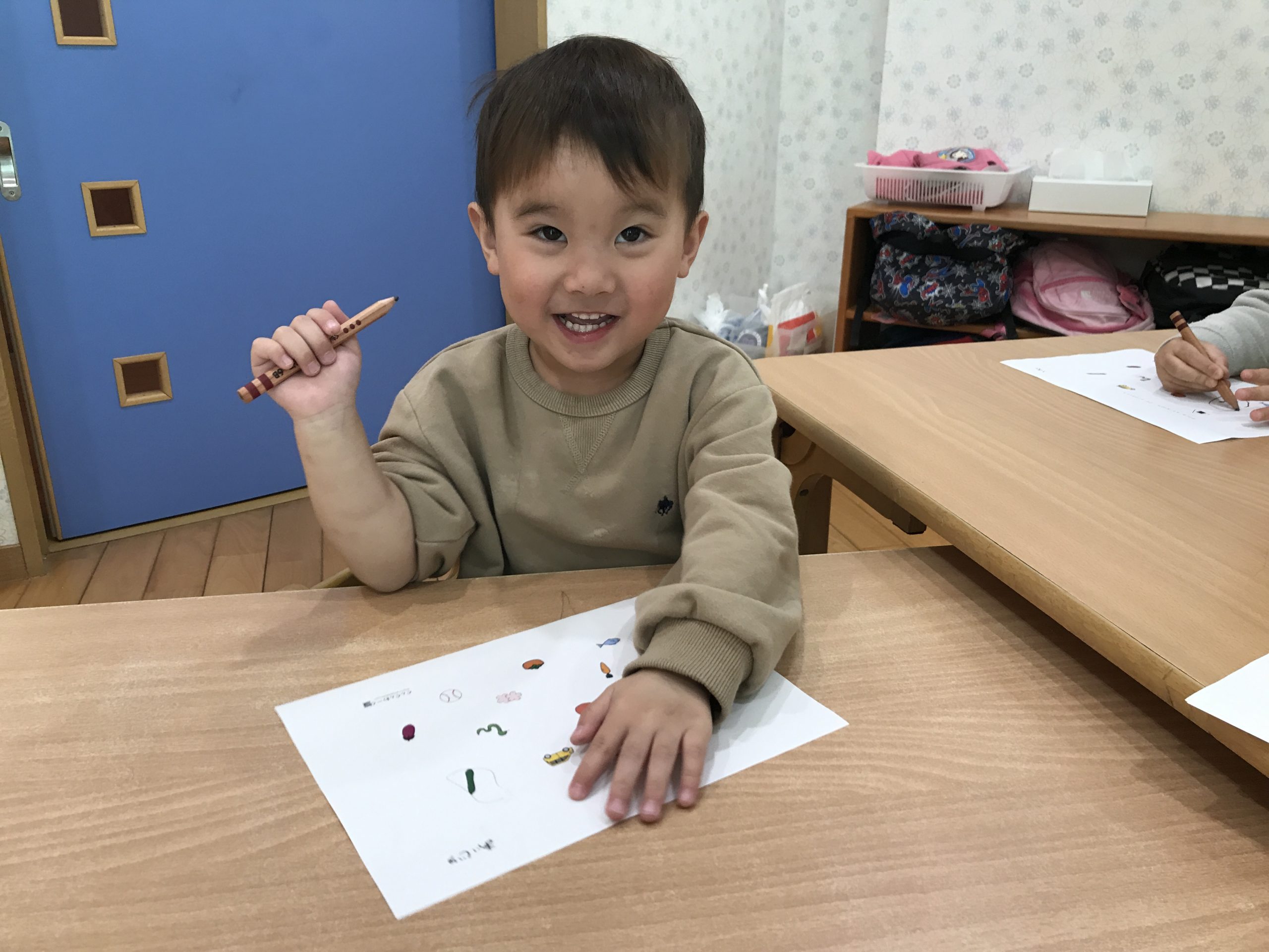 今日は、線をなぞる練習をしました✎鉛筆を使って、同じ仲間を〇で囲みながら集中して取り組んでいましたよ😊
