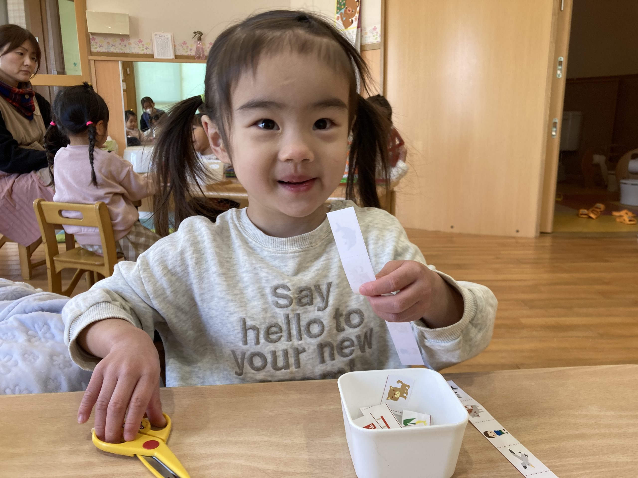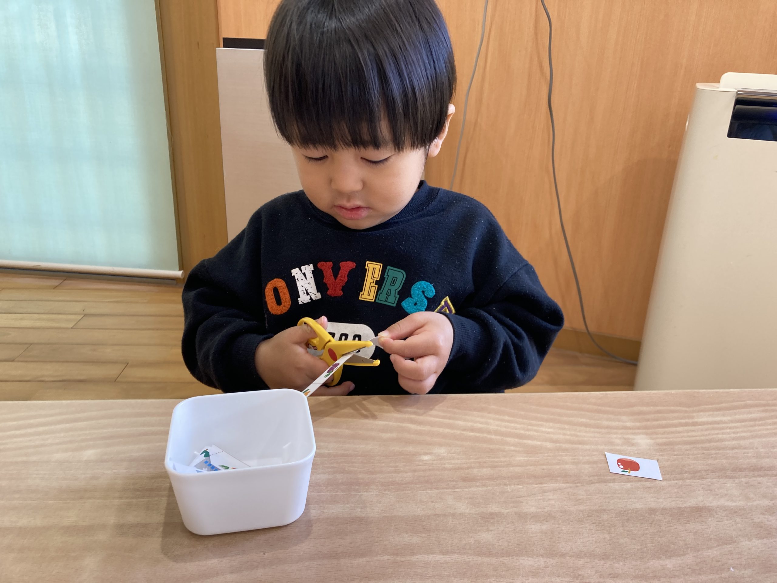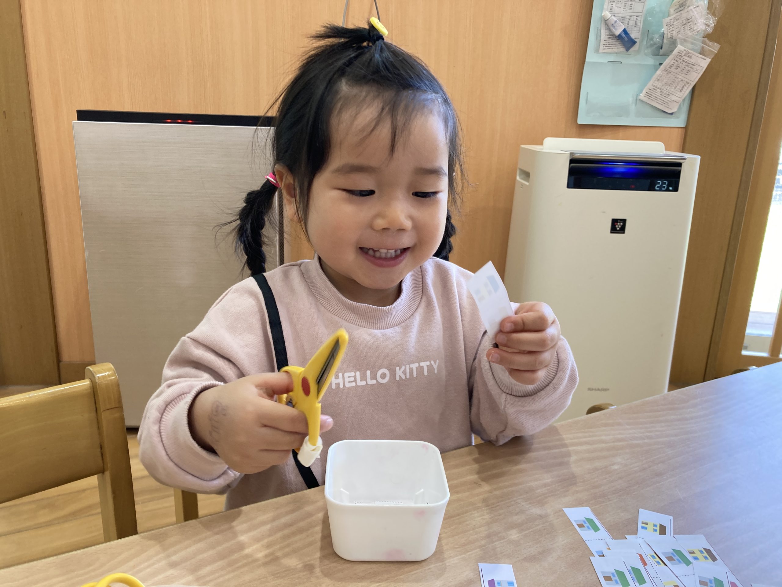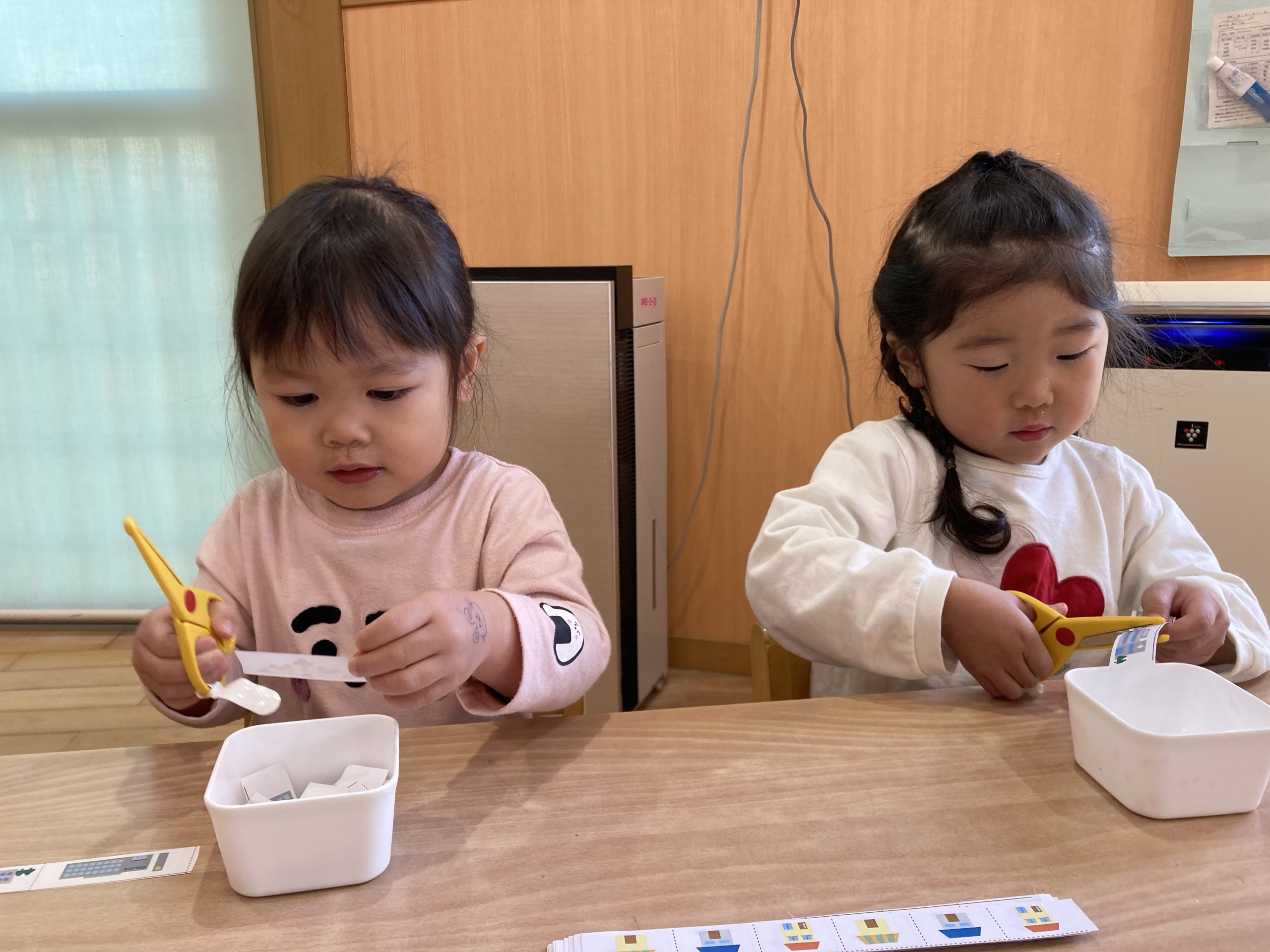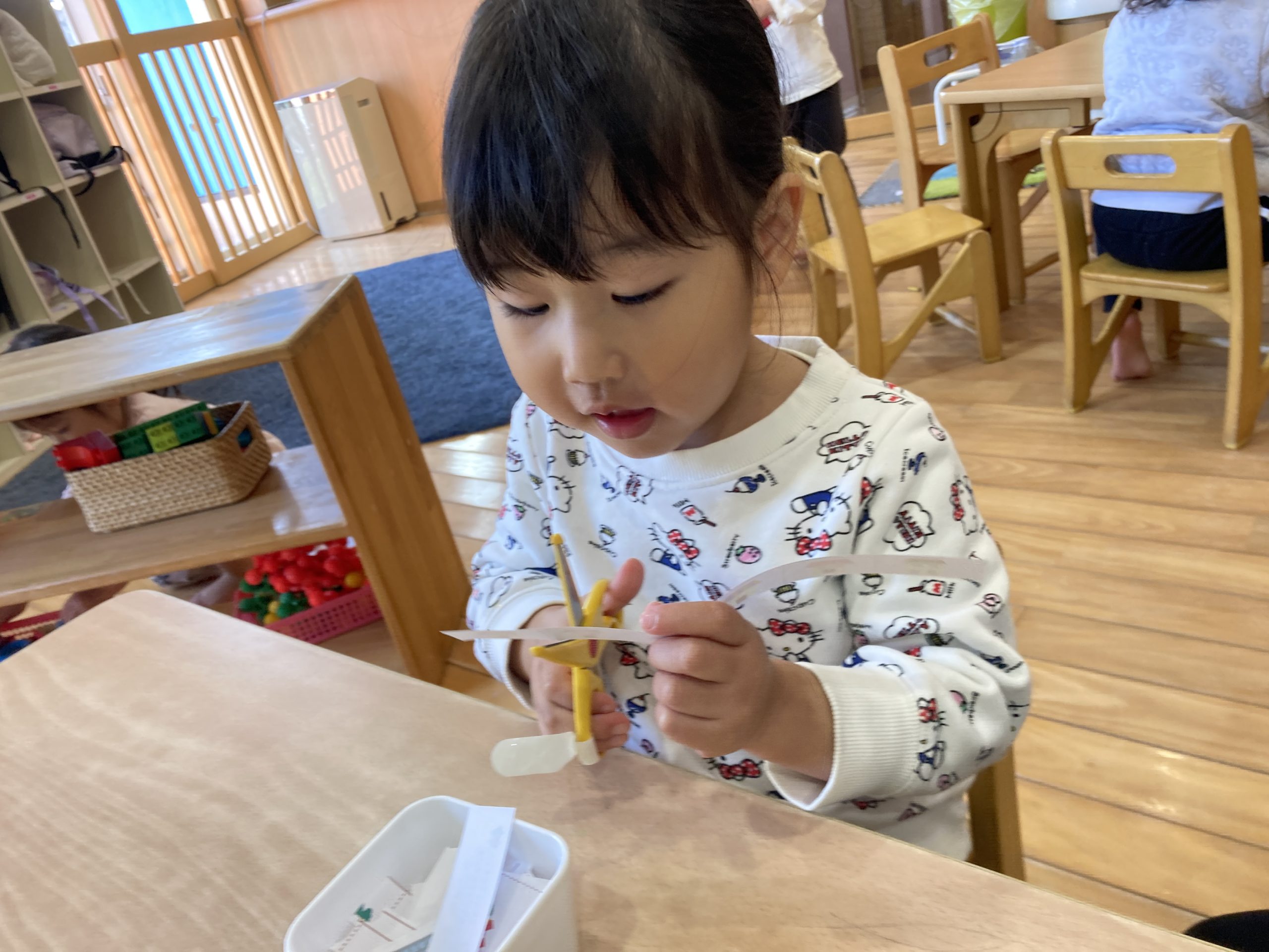 今日は、はさみの練習をしました✂正しい握り方で一度切りすることが出来ていましたよ🎵