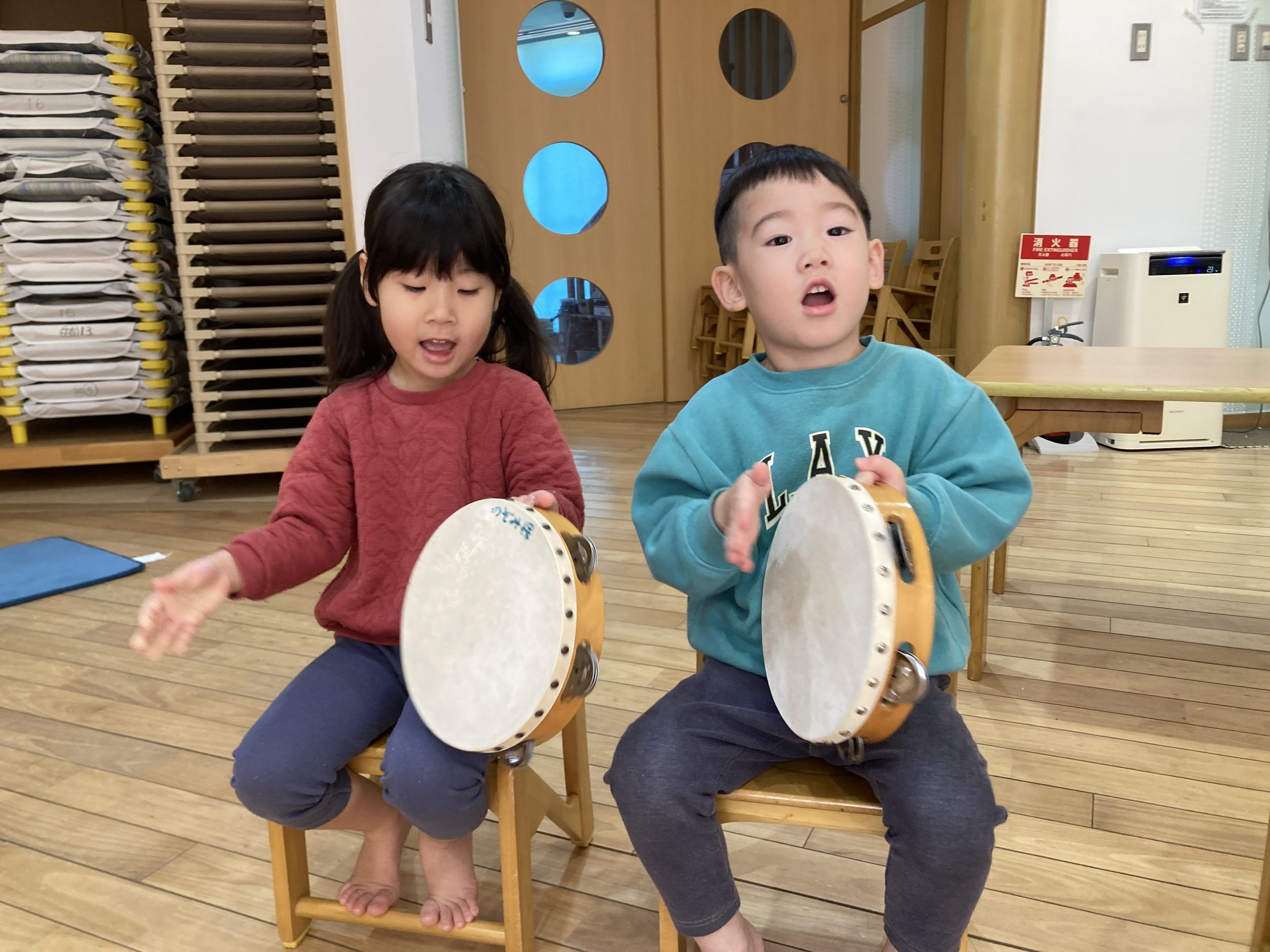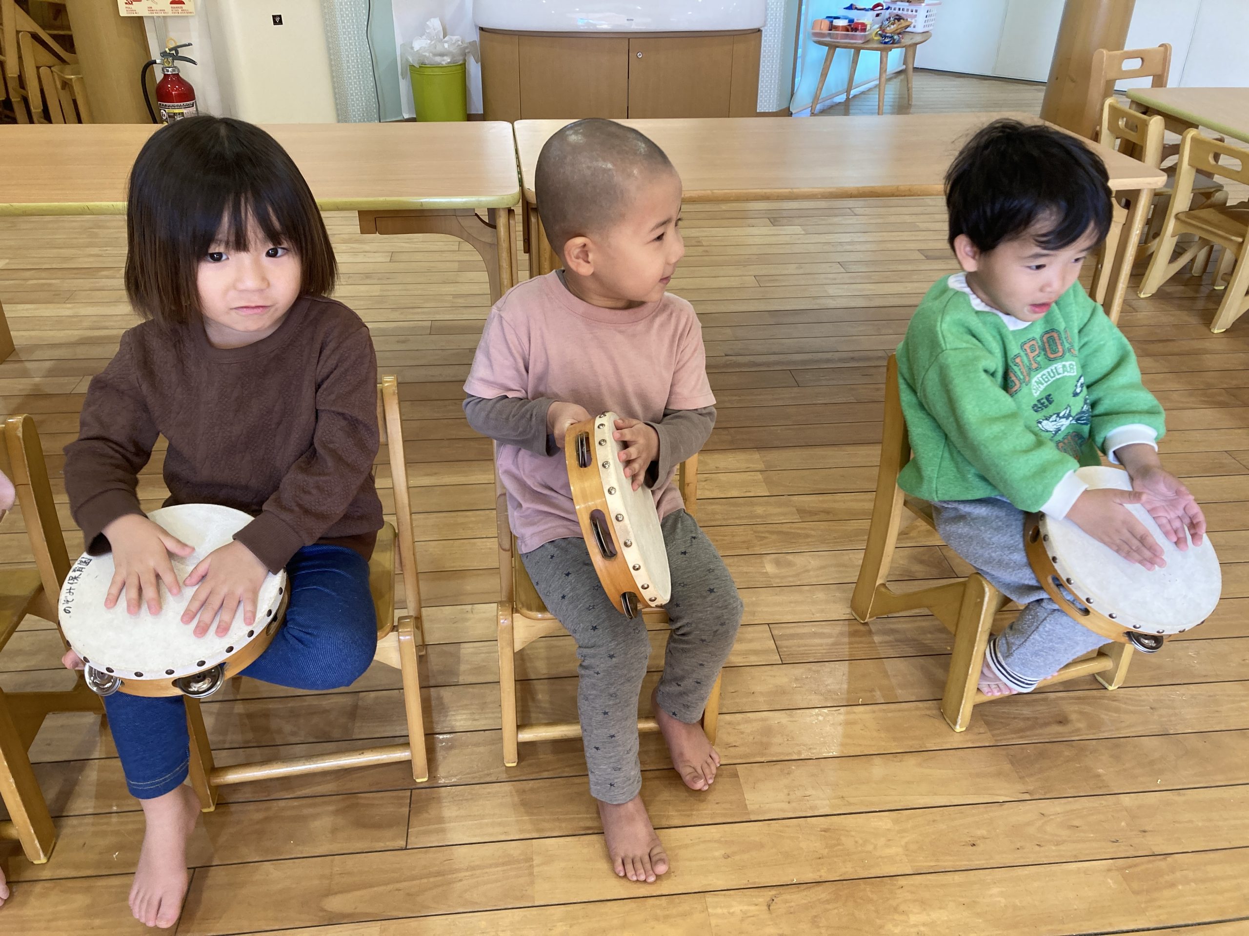 今日は、楽器遊びをしました🎵タンバリンを使って、音楽に合わせて音を鳴らしていましたよ✨