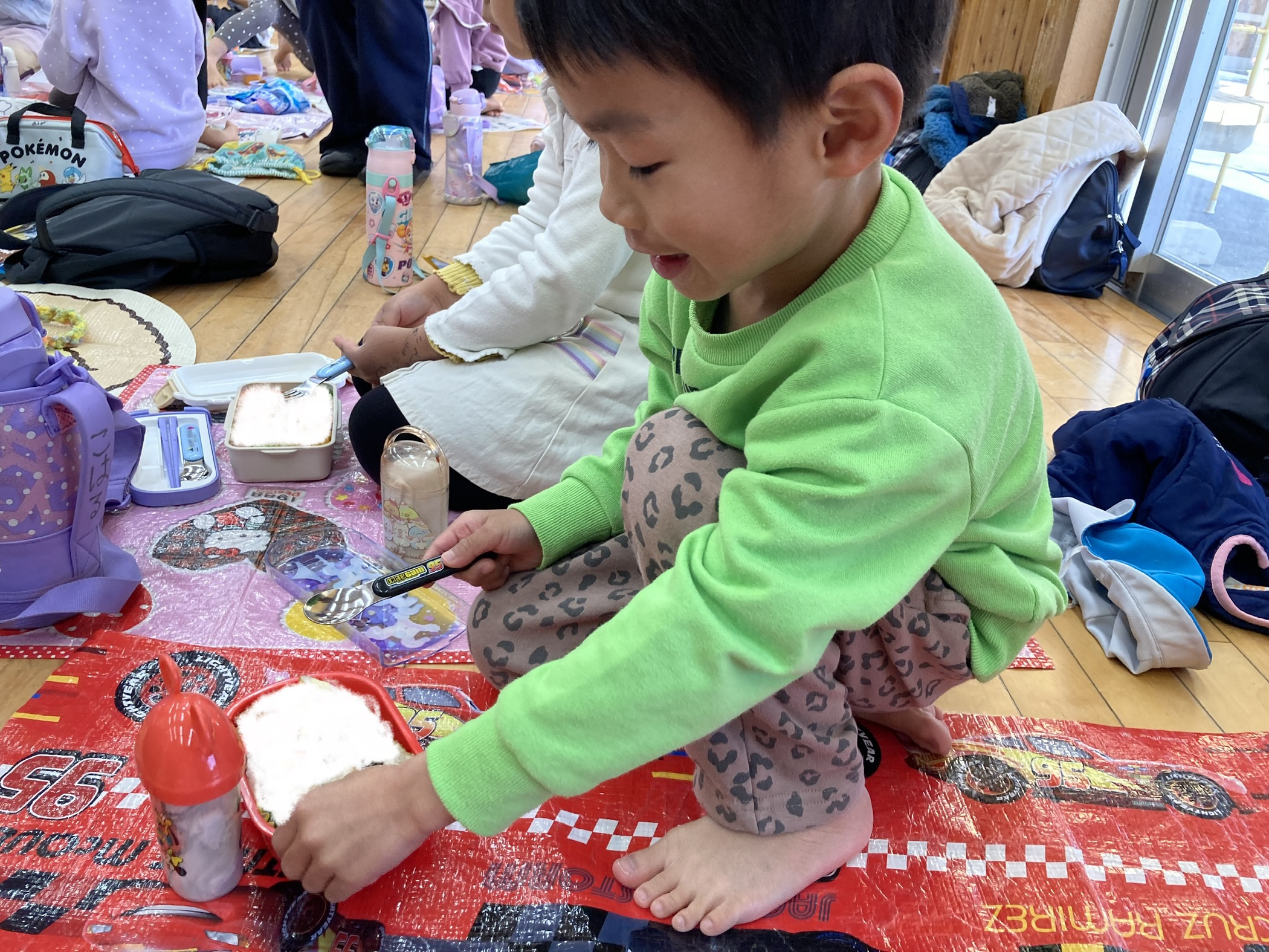 今日はつきぐみさんと一緒に近隣公園にお散歩に行きました!最初にマラソンをして体をあたためました🏃🏻♀️その後は遊具のあるところでジャングルジムやブランコ、虫探しなどをして遊びました🍀朝からお弁当を楽しみにしていたりすぐみさん!お友達とお話をしながら美味しそうに食べていましたよ😋