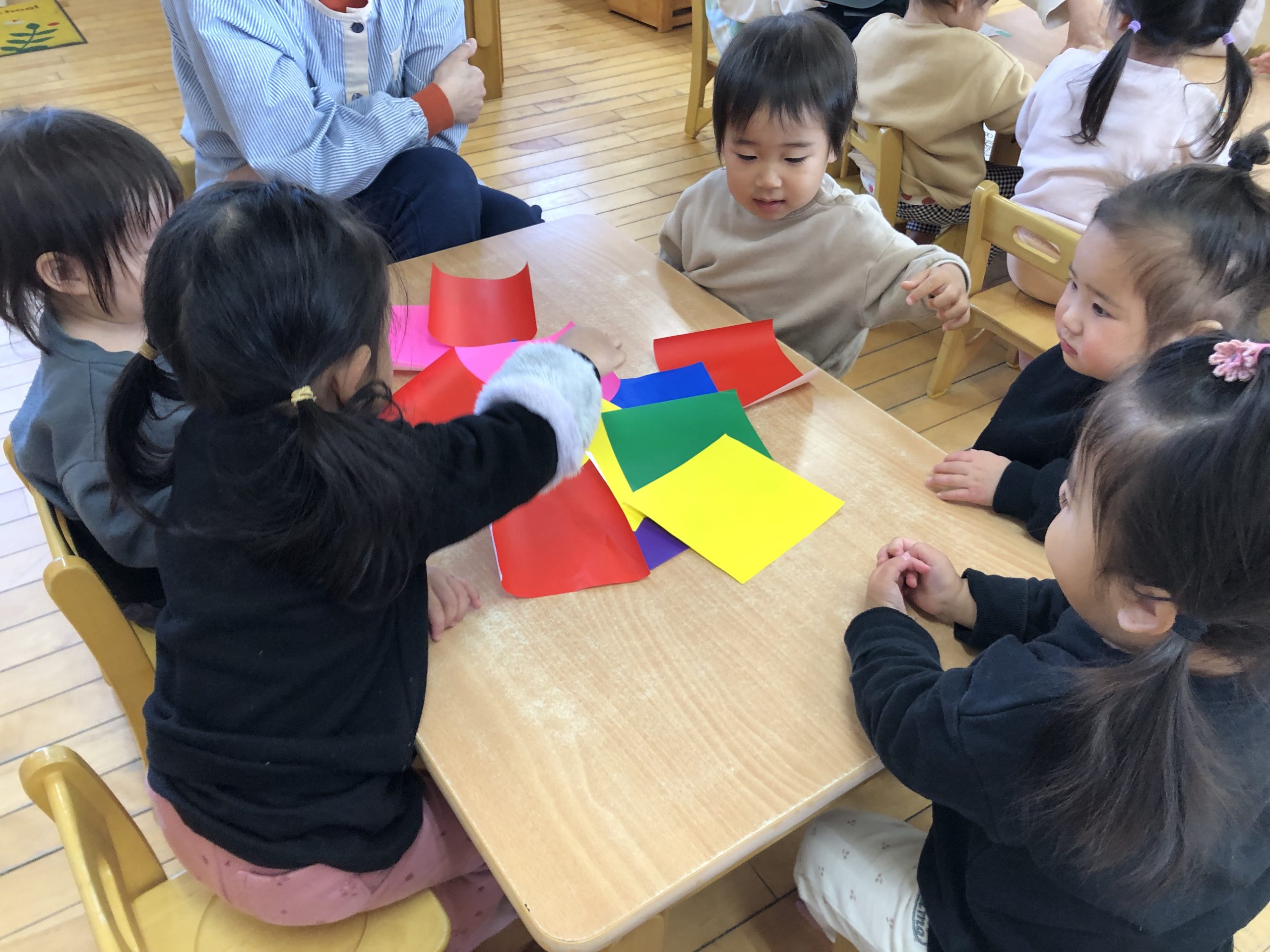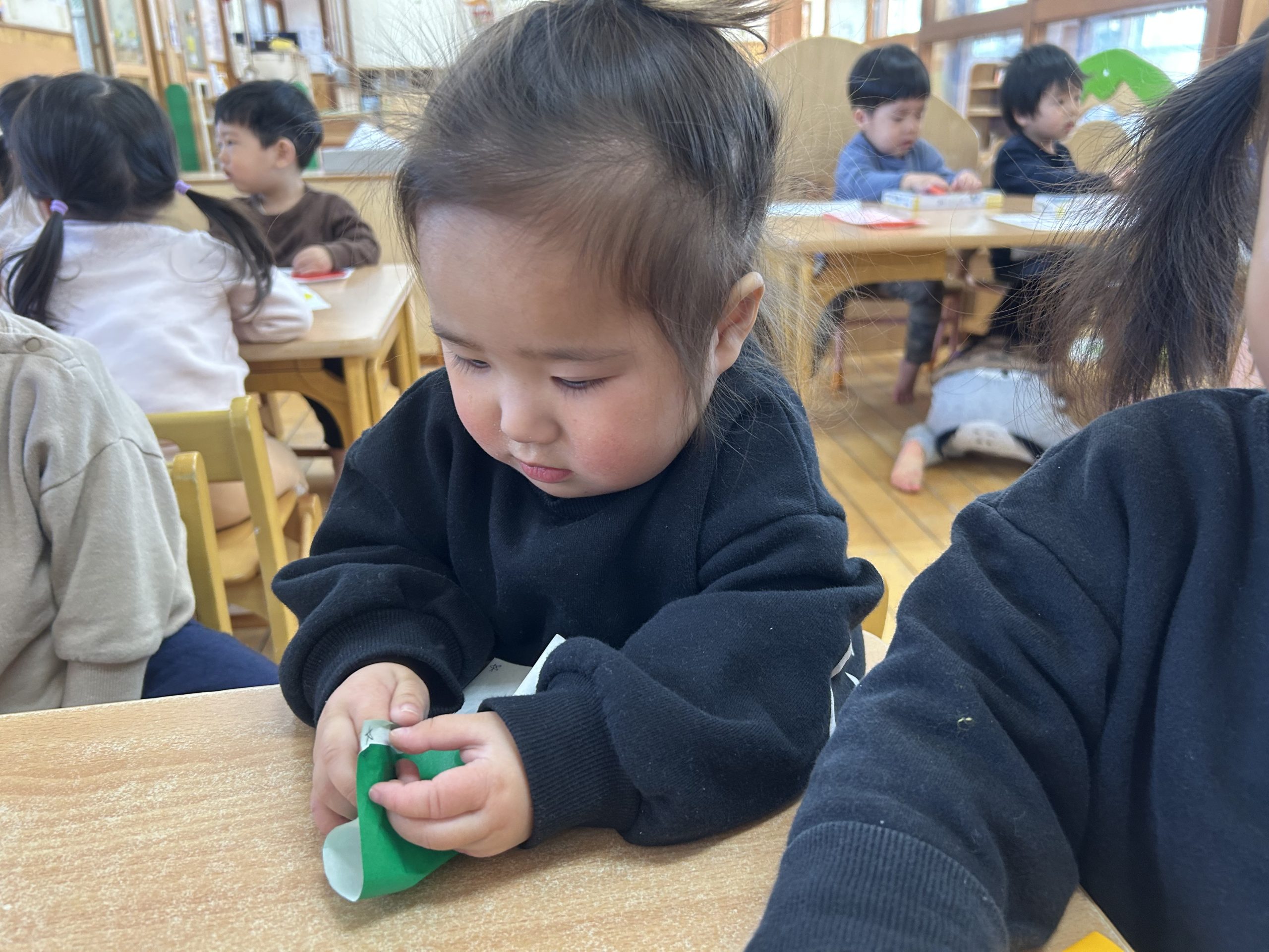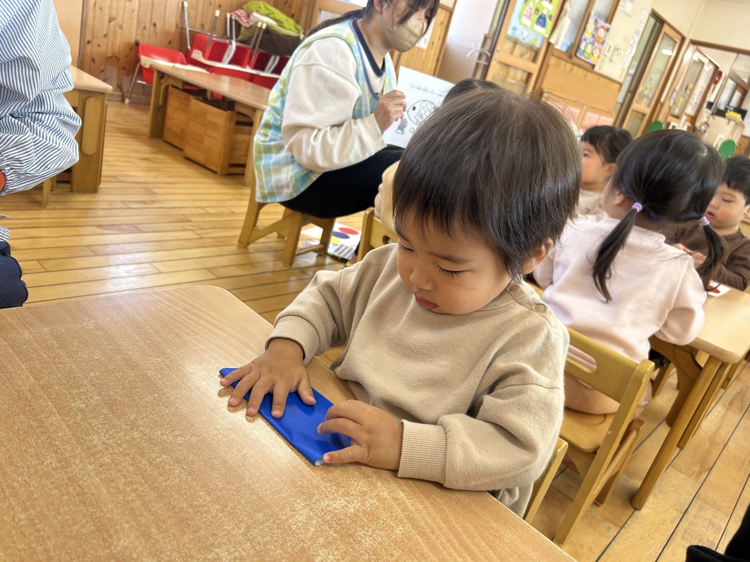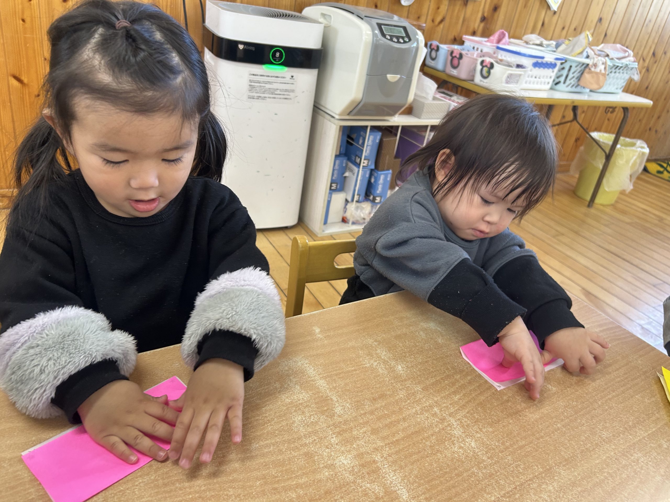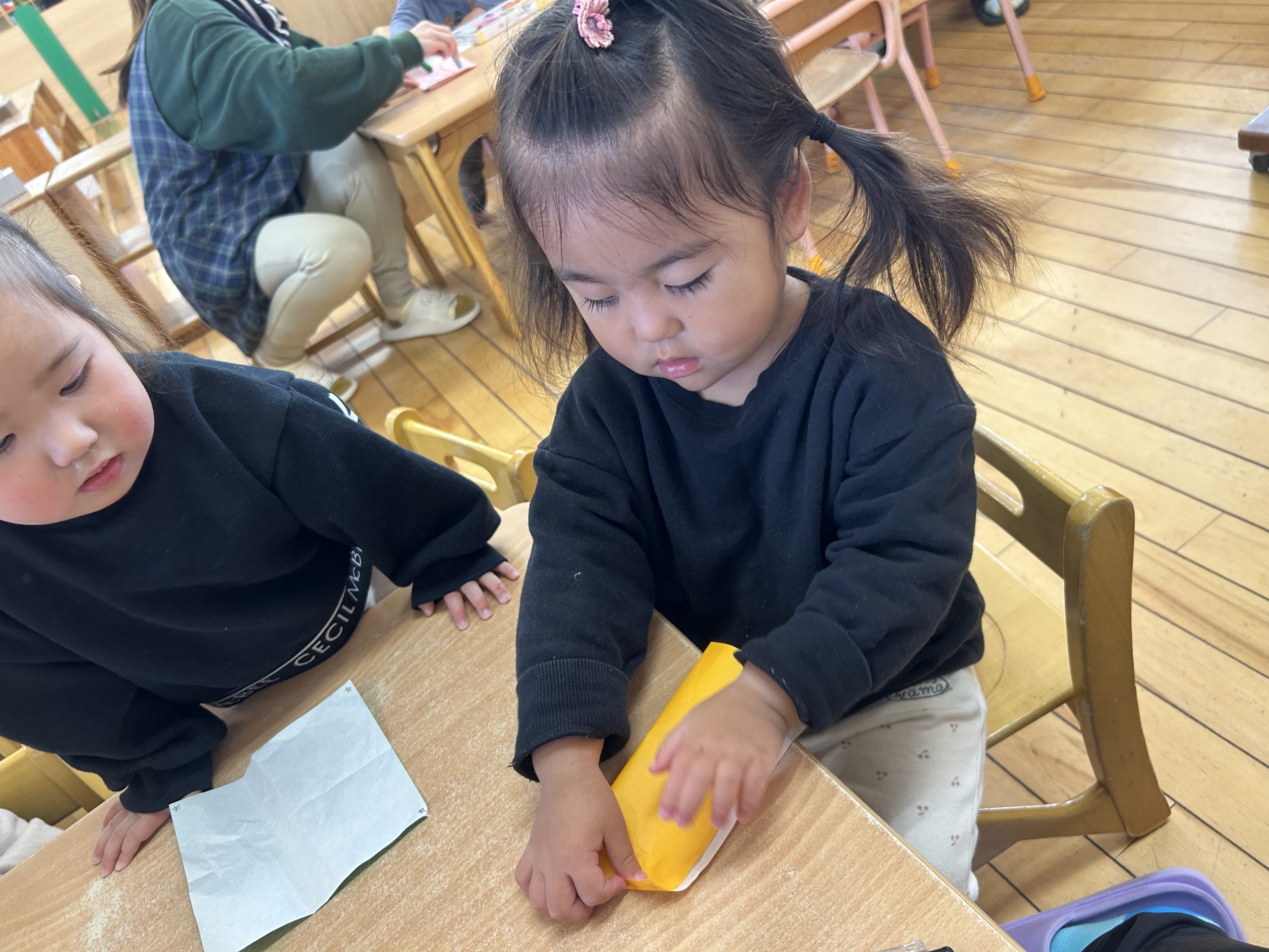 今日は折り紙遊びをしました!半分に折って遊びましたよ🎵