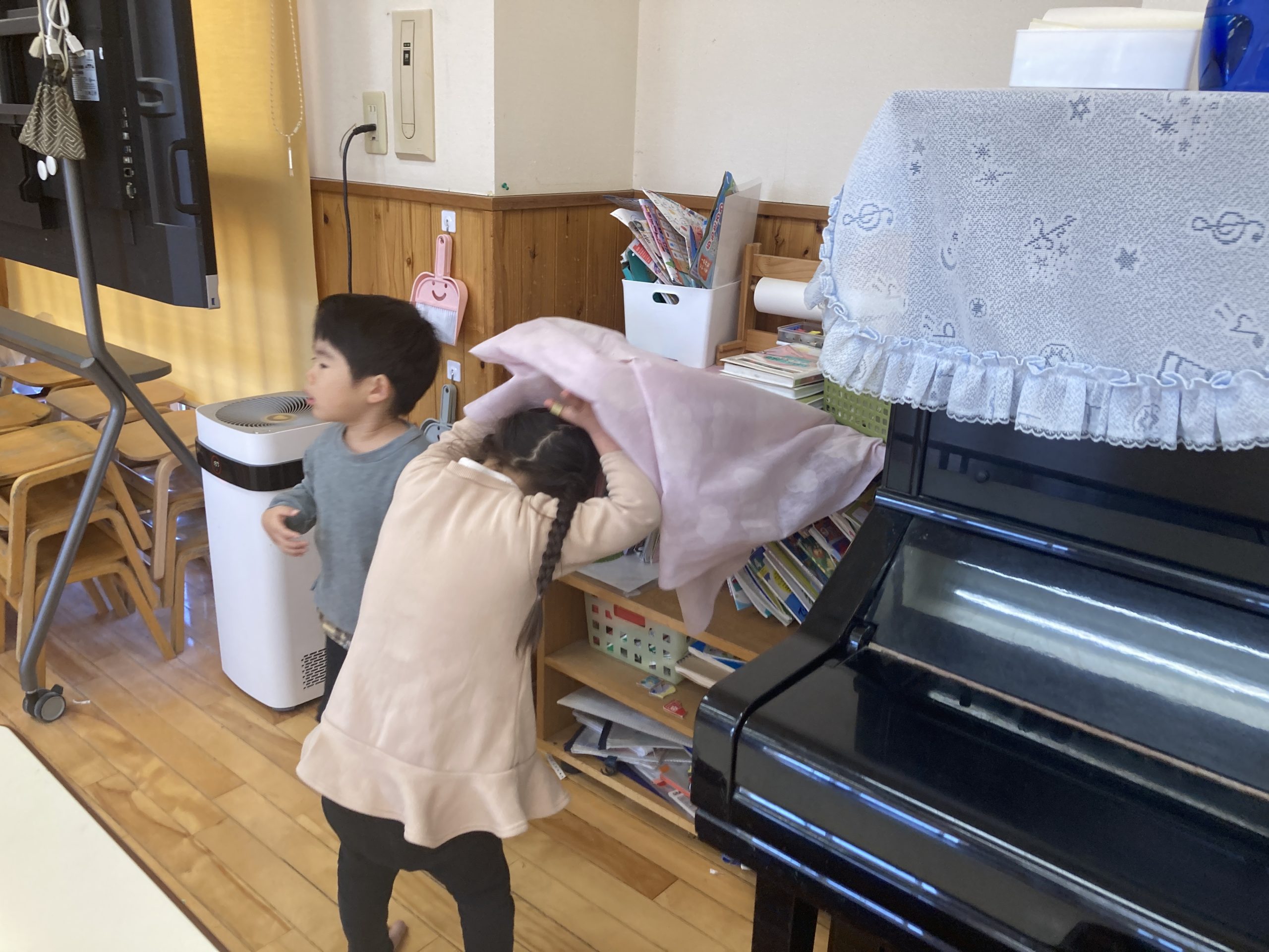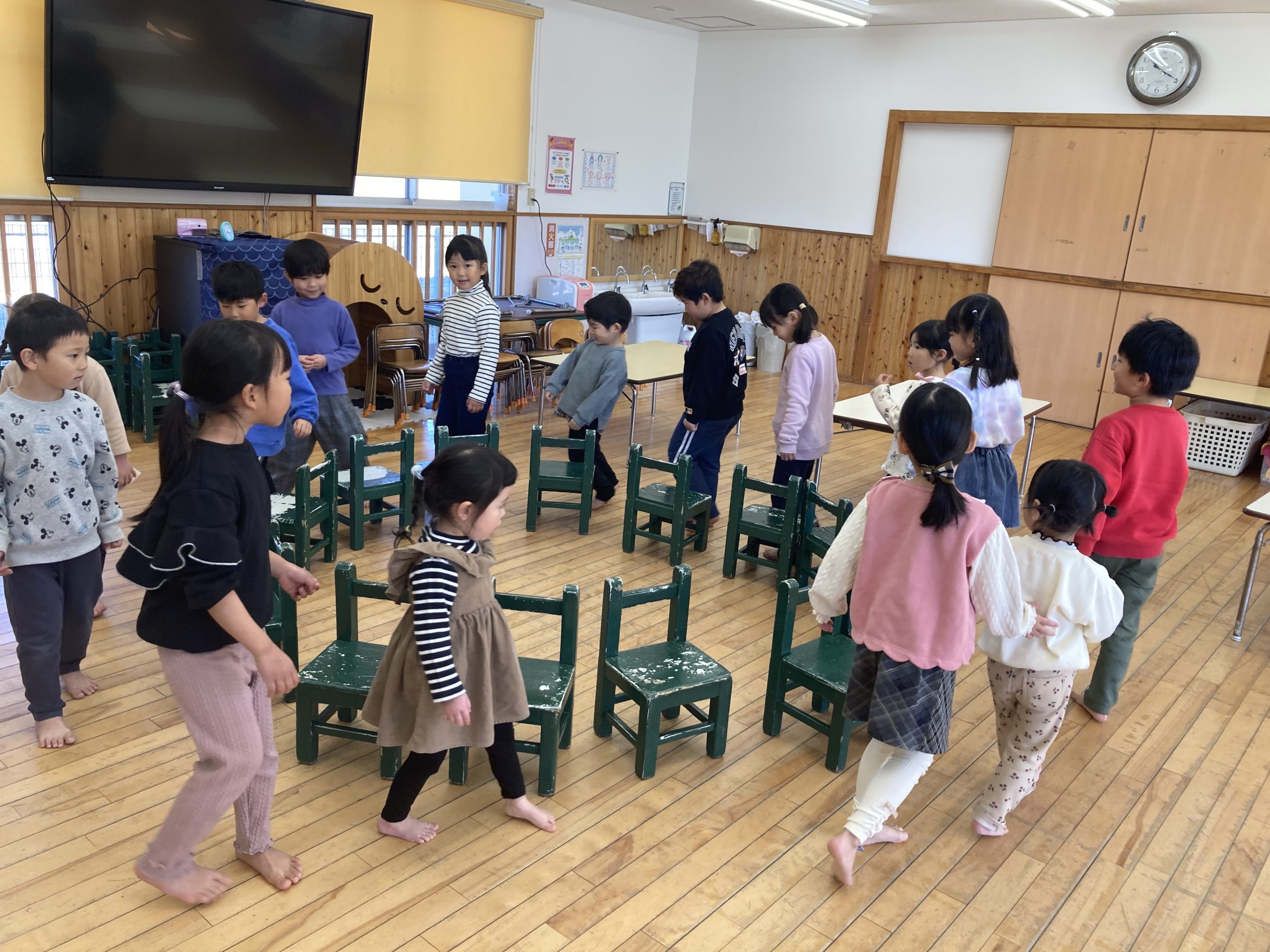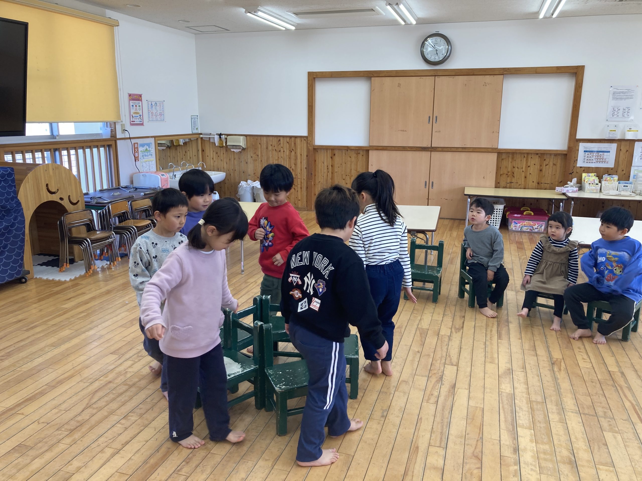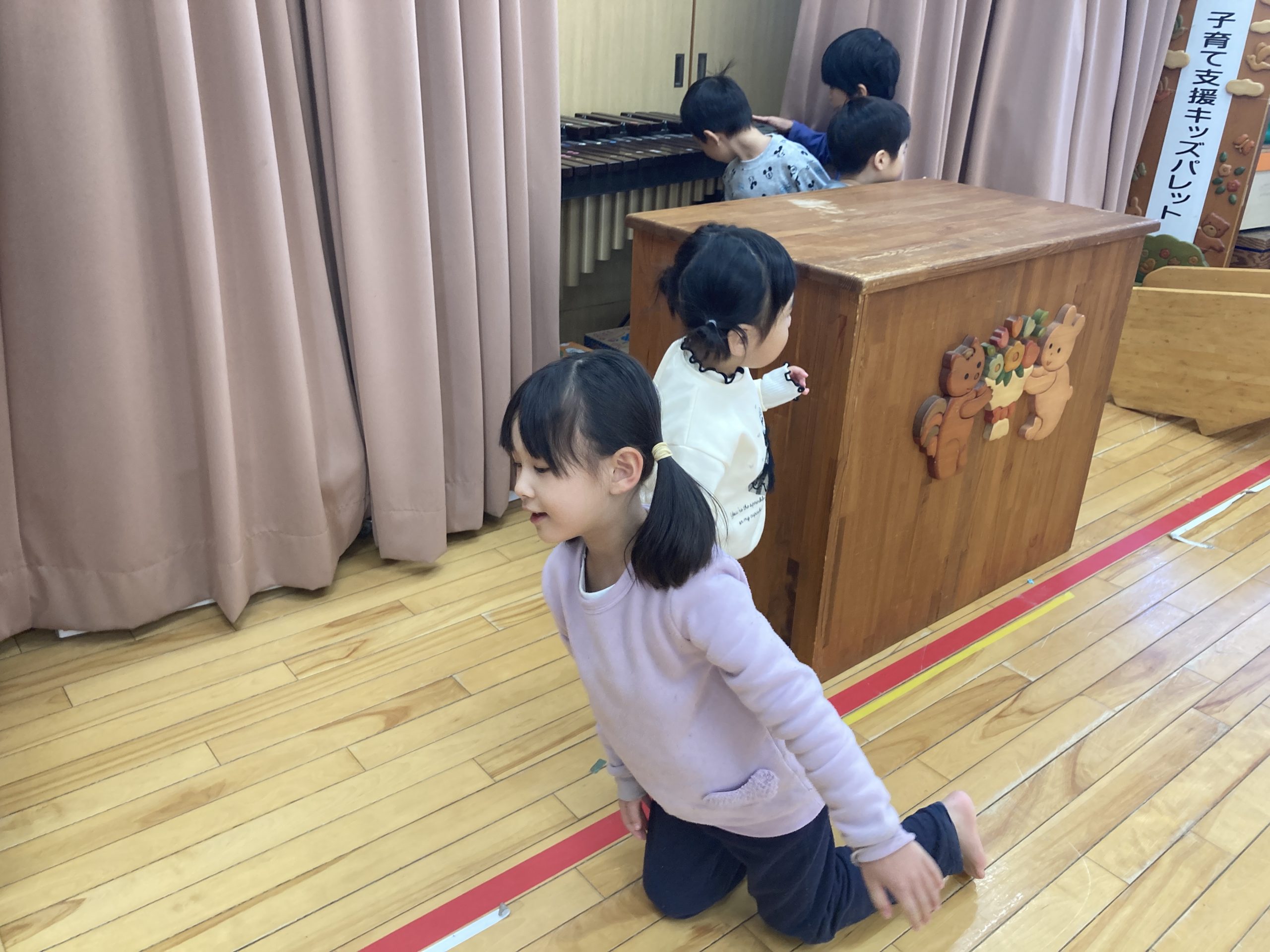 今日はホールで椅子取りゲームと宝探しゲームをしました🪑椅子取りゲームではノリノリで歩き音楽が止まると毎回盛り上がっていました😆宝探しゲームではお友達の隠す場所を一緒に探してあげたり「ここ探してみよう」と誘いあったりと楽しそうに遊んでいました💖