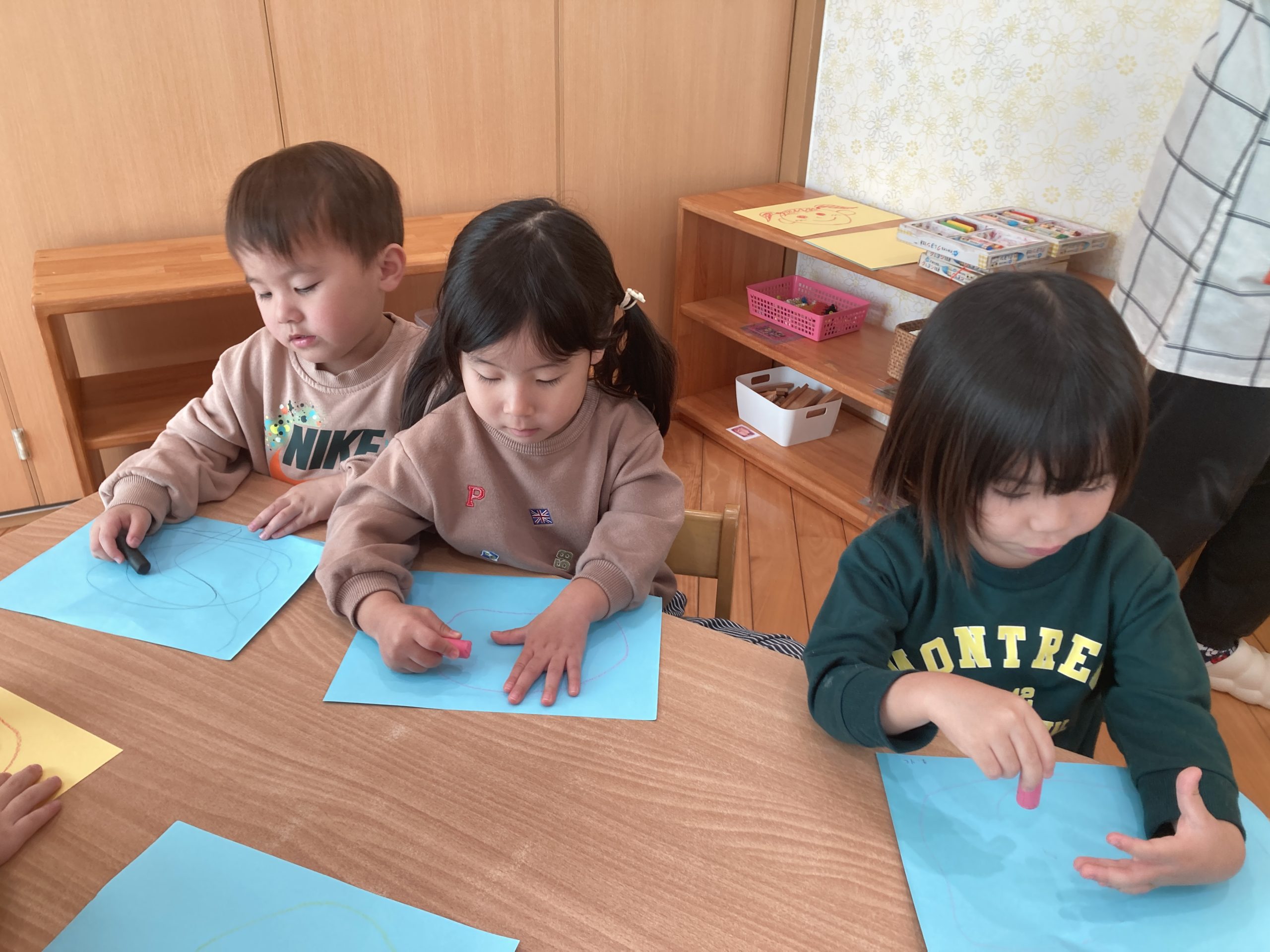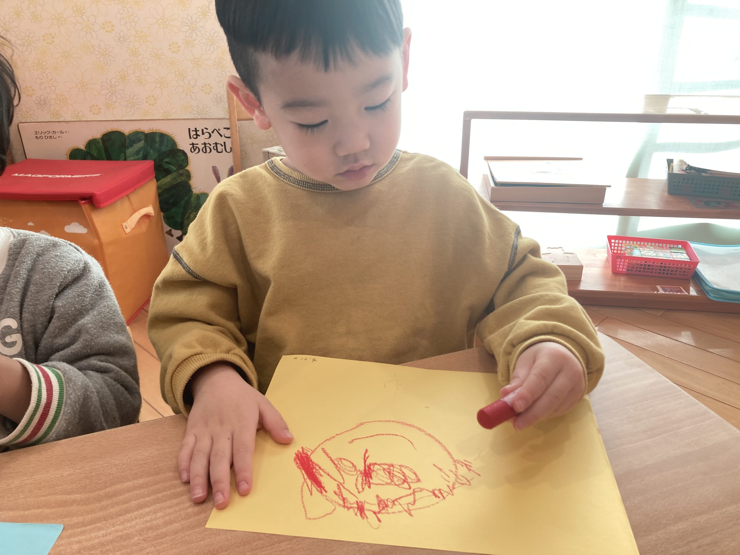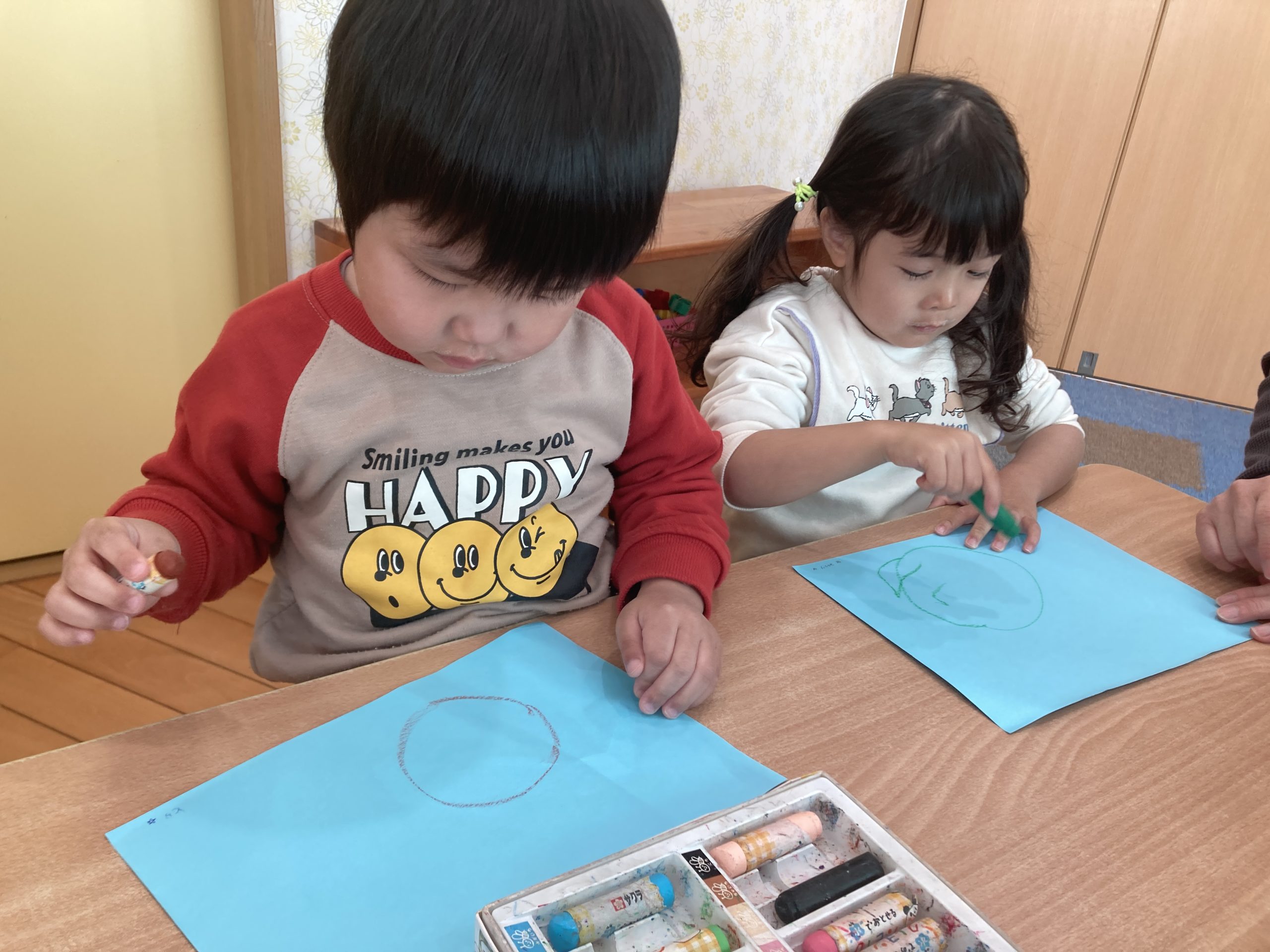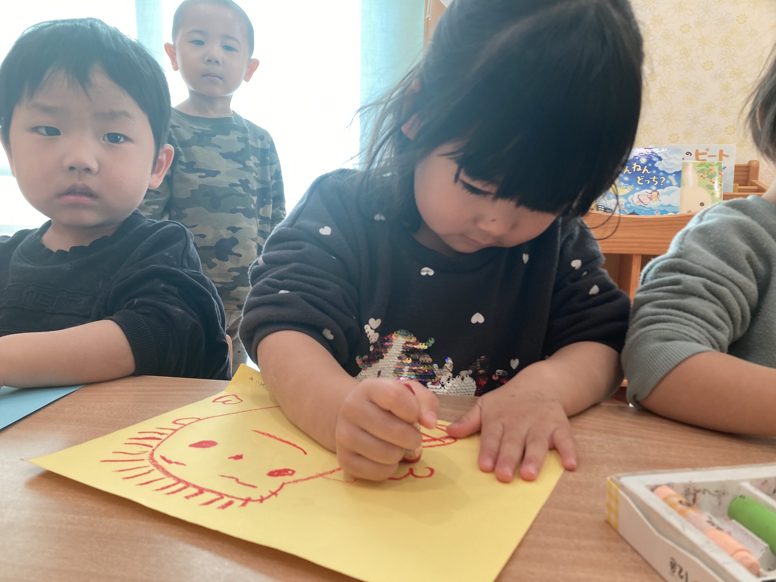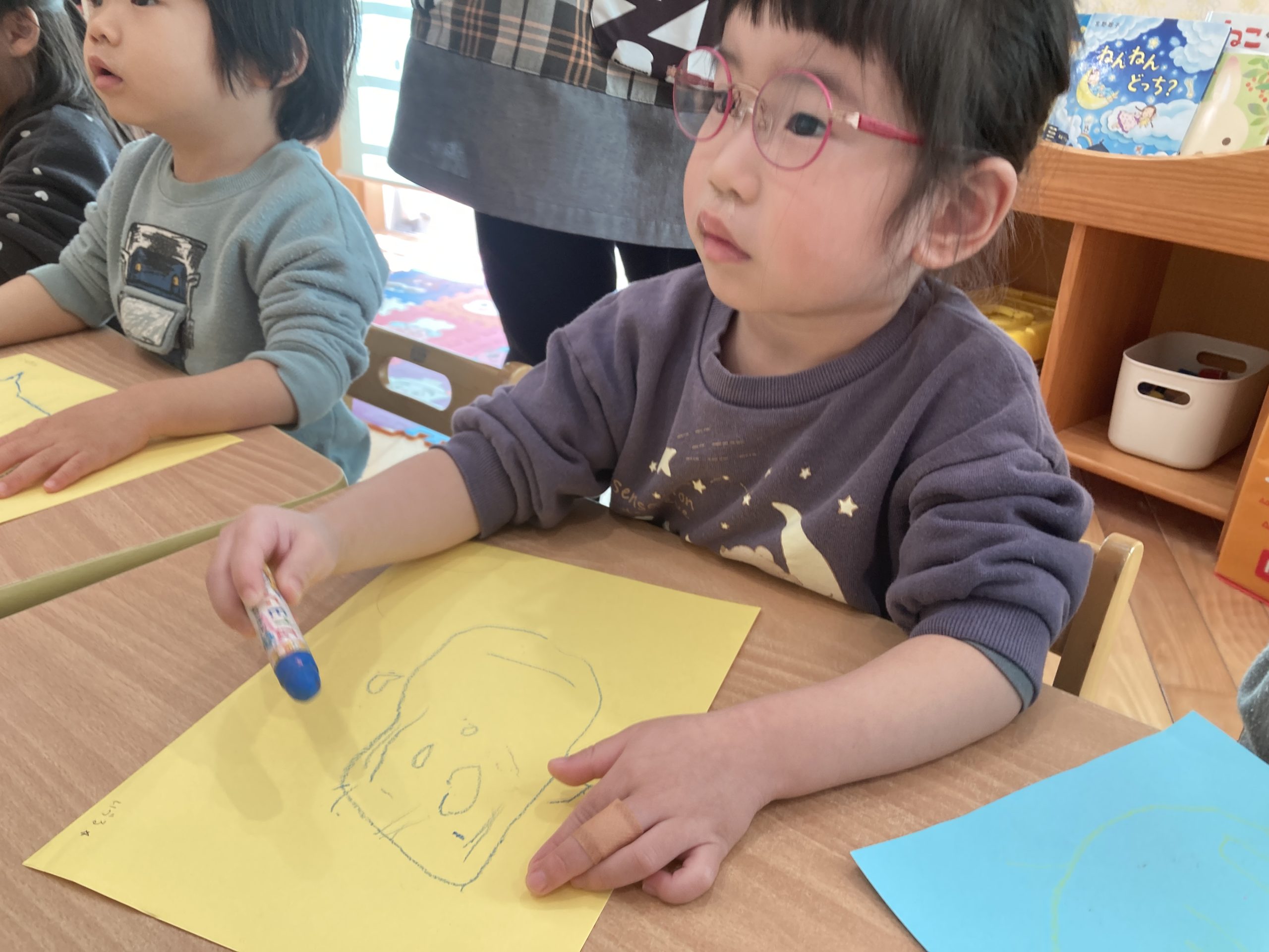 今日は、お絵描きでお顔を描く練習をしました☺✨クレヨンを握りながら、目や鼻を集中しながら描いていましたよ👀