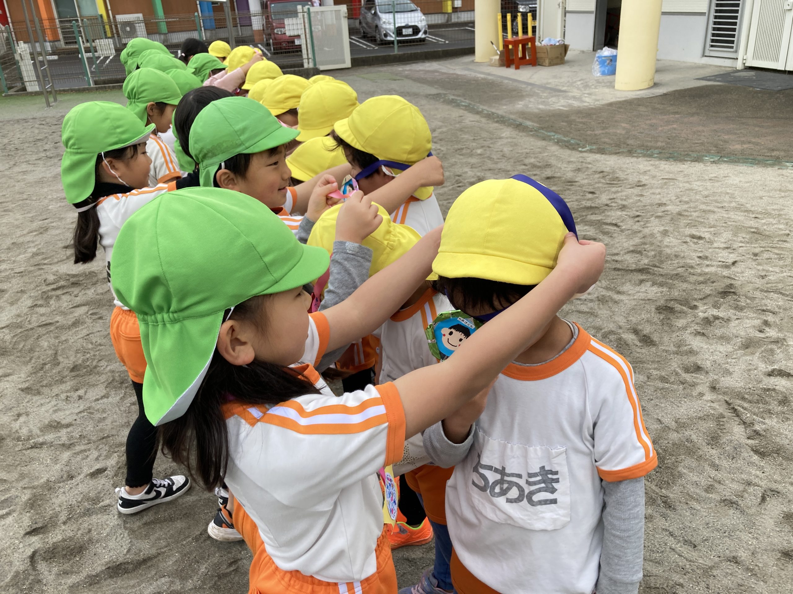 今日は、マラソン大会でした。みんな長い距離でしたがゴールまで頑張って走っていました。保育園に帰ってからは、りすぐみさんと表彰式をしました。メダル交換をして嬉しそうでした😆