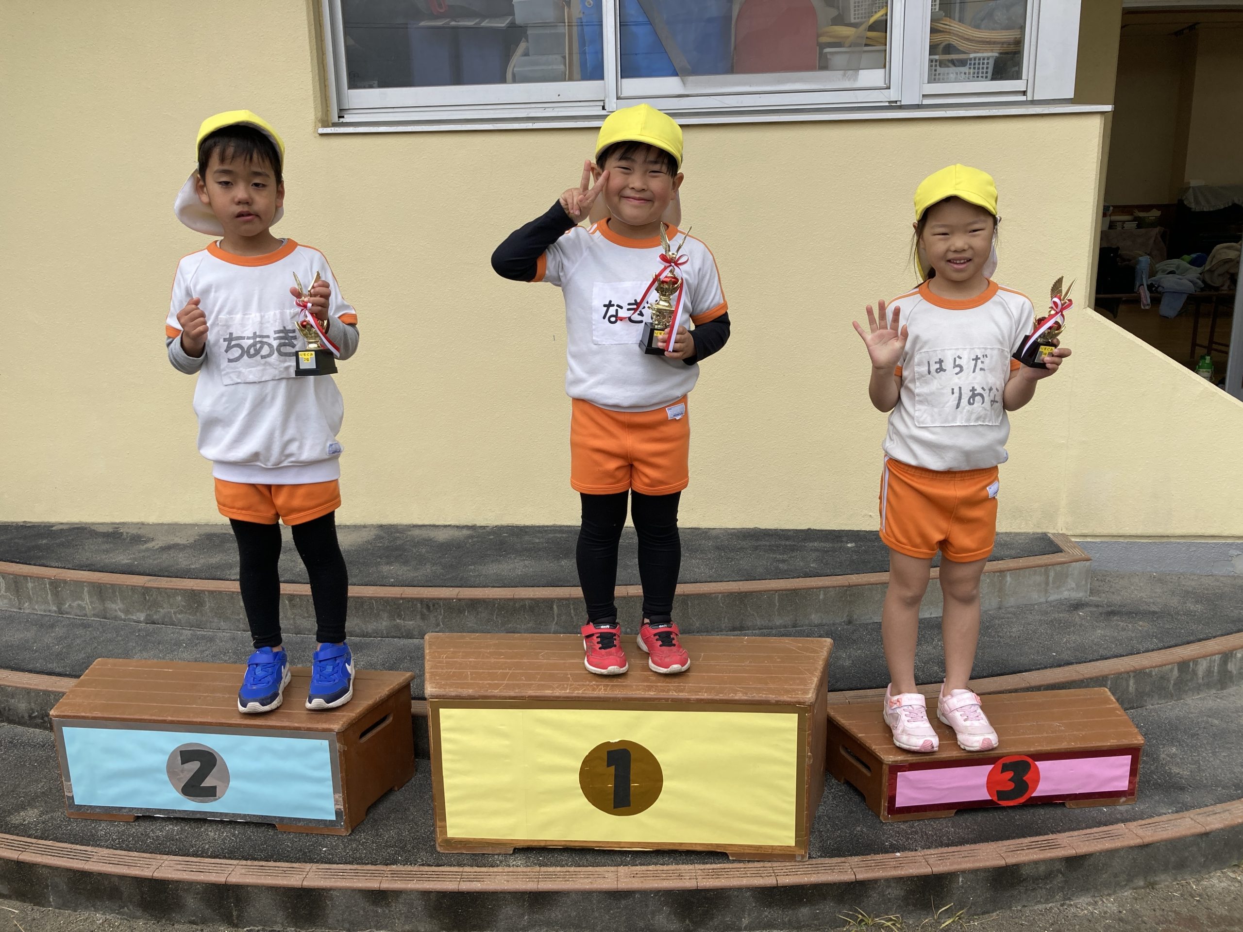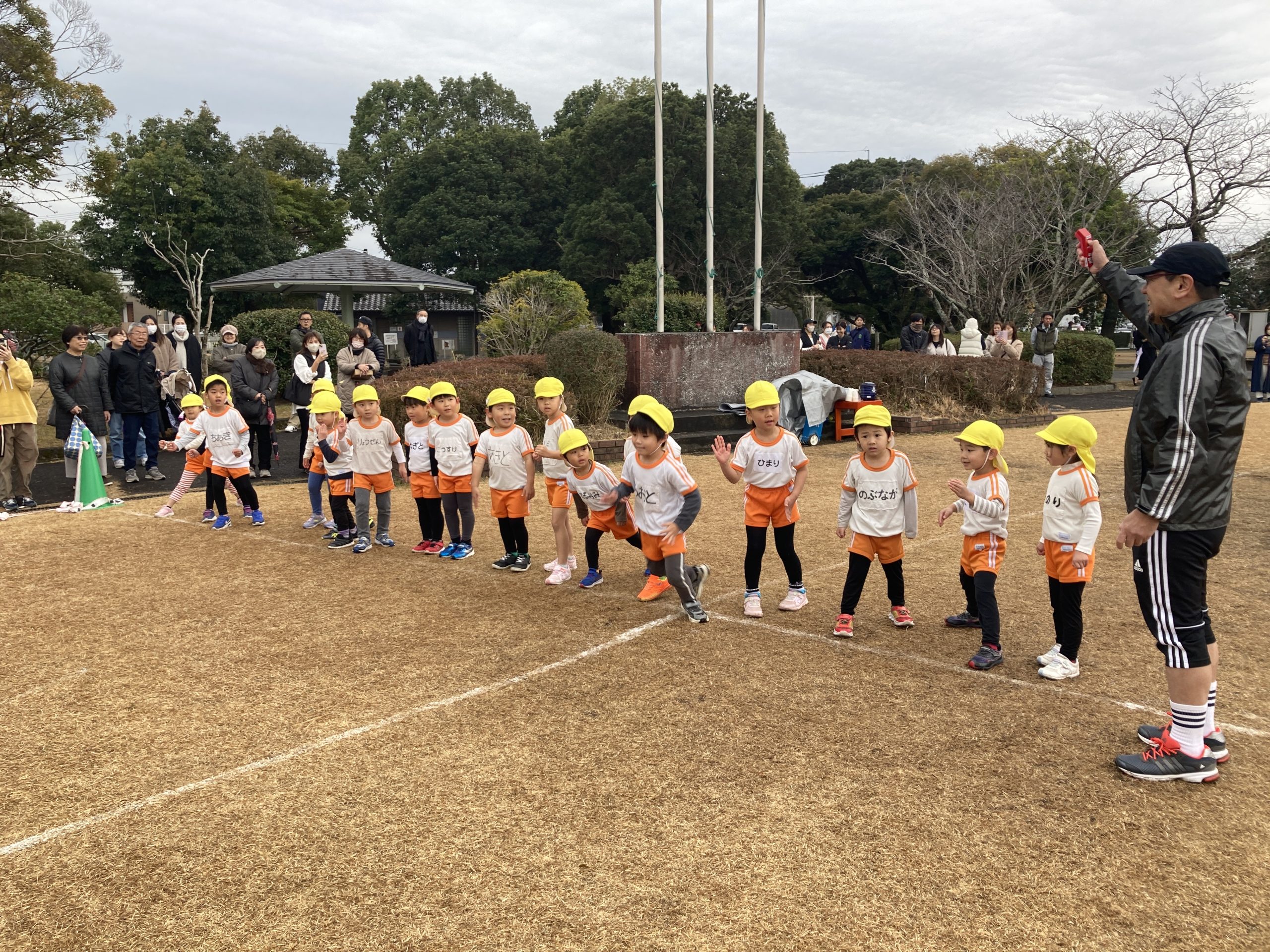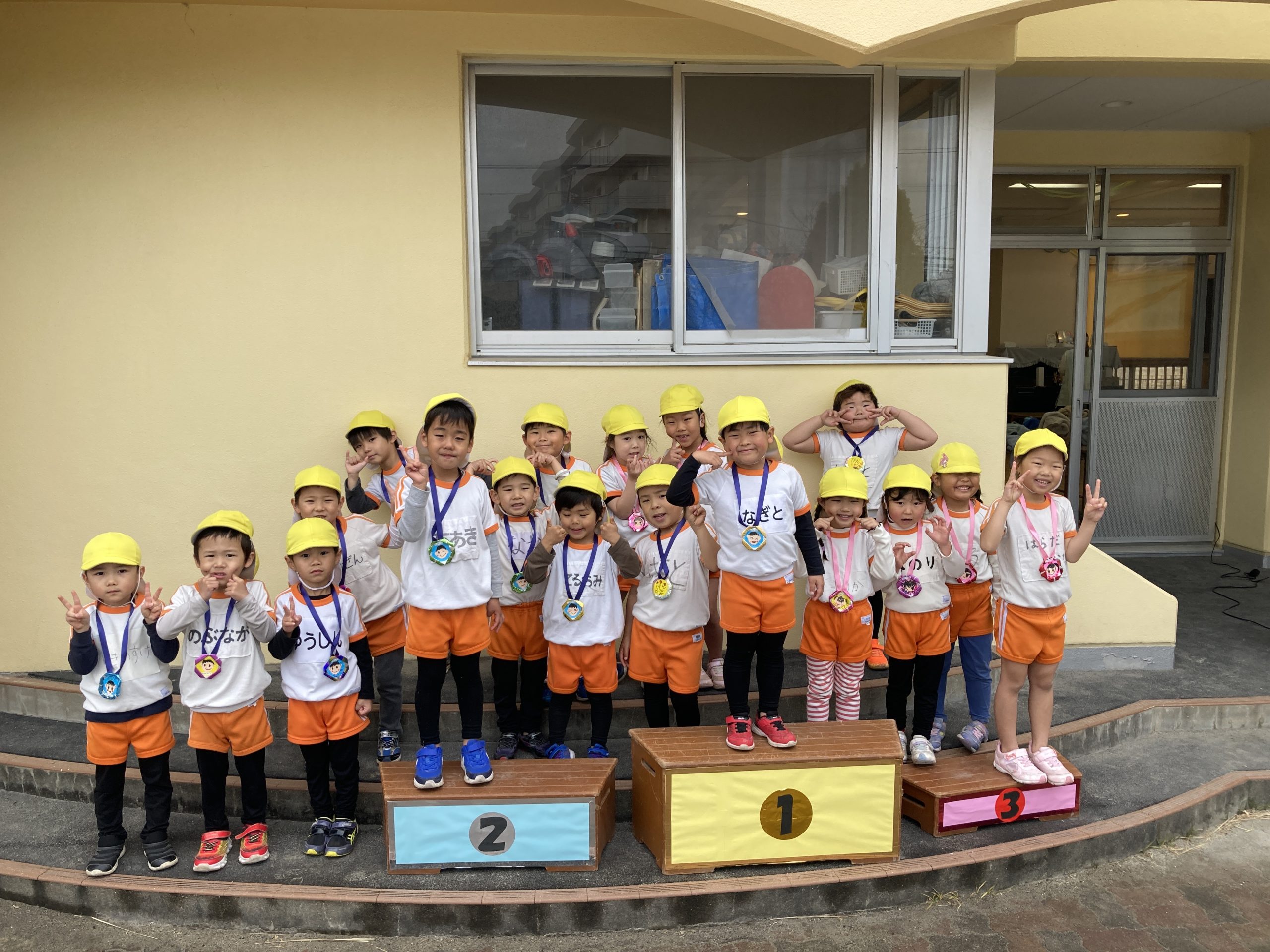 今日はマラソン大会でした!長い距離でしたが最後まで走り切ることができました✨家族の人に見守られて練習の時よりもパワーを発揮していた子どもたちでした💖きりんさんからメダルをもらうと「ありがとう!かわいい〜」と嬉しそうにしていました🏅