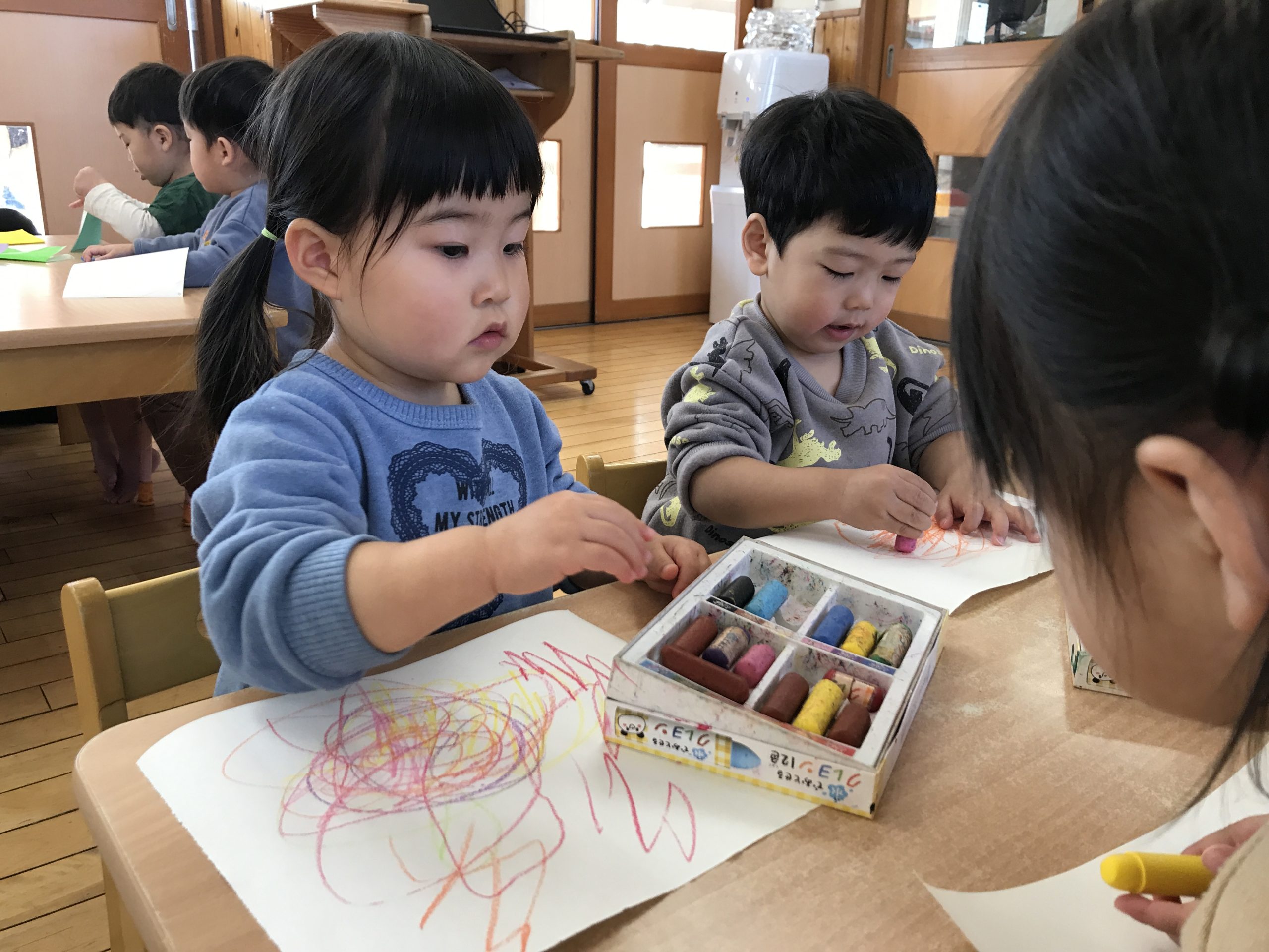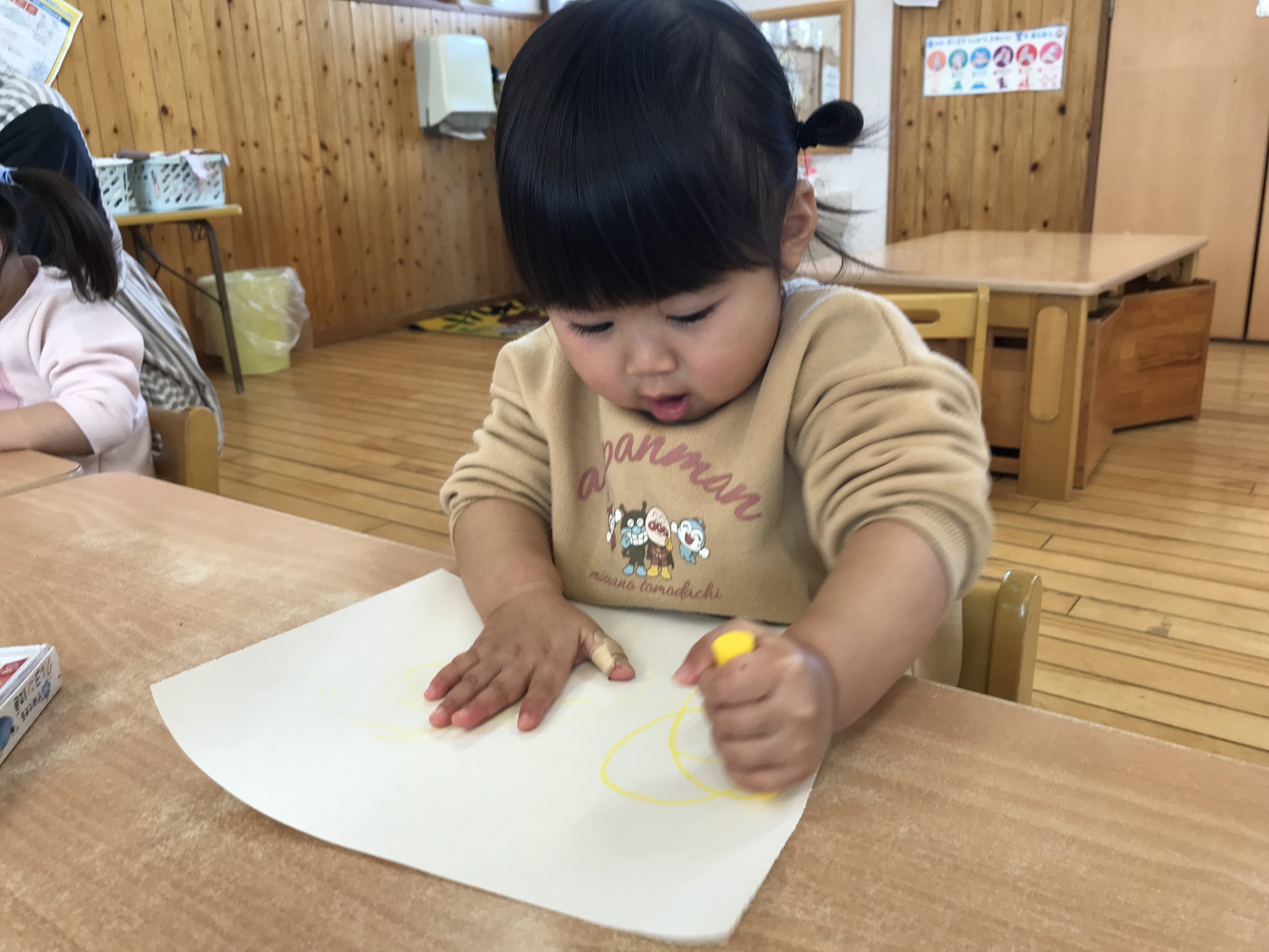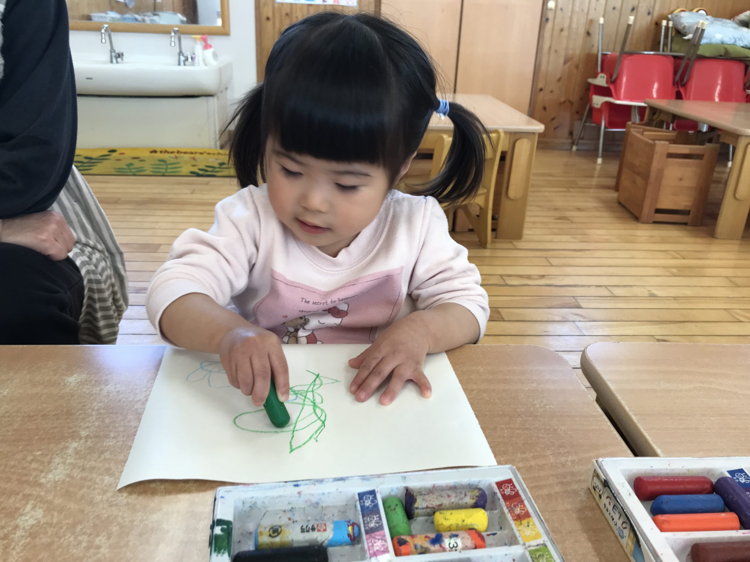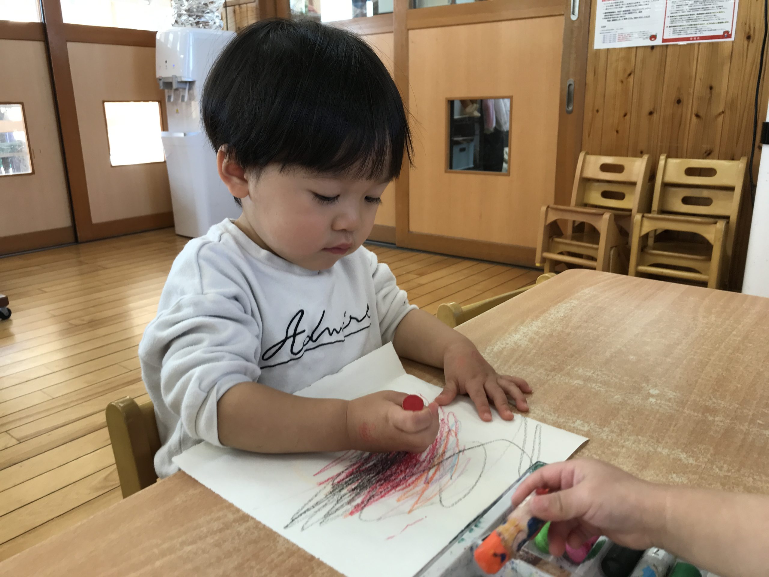 今日はお絵描きをしました🎵好きな色のクレヨンを使って楽しそうに絵を描いていましたよ✨