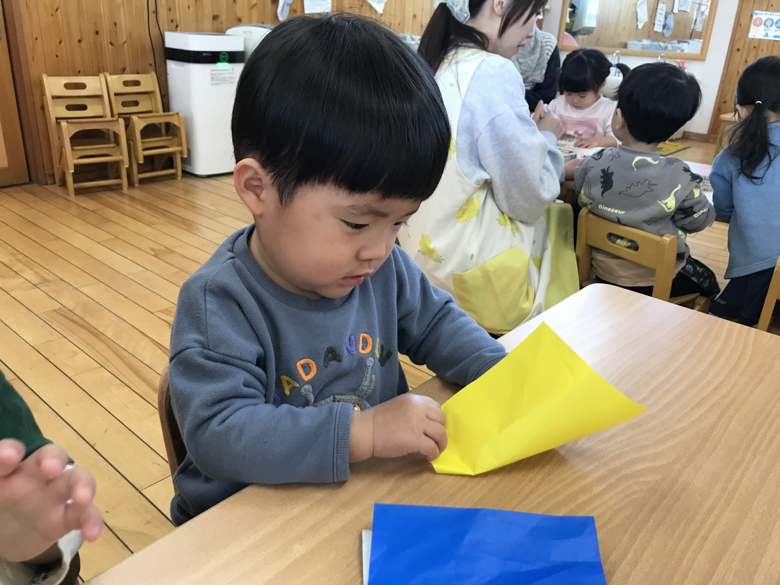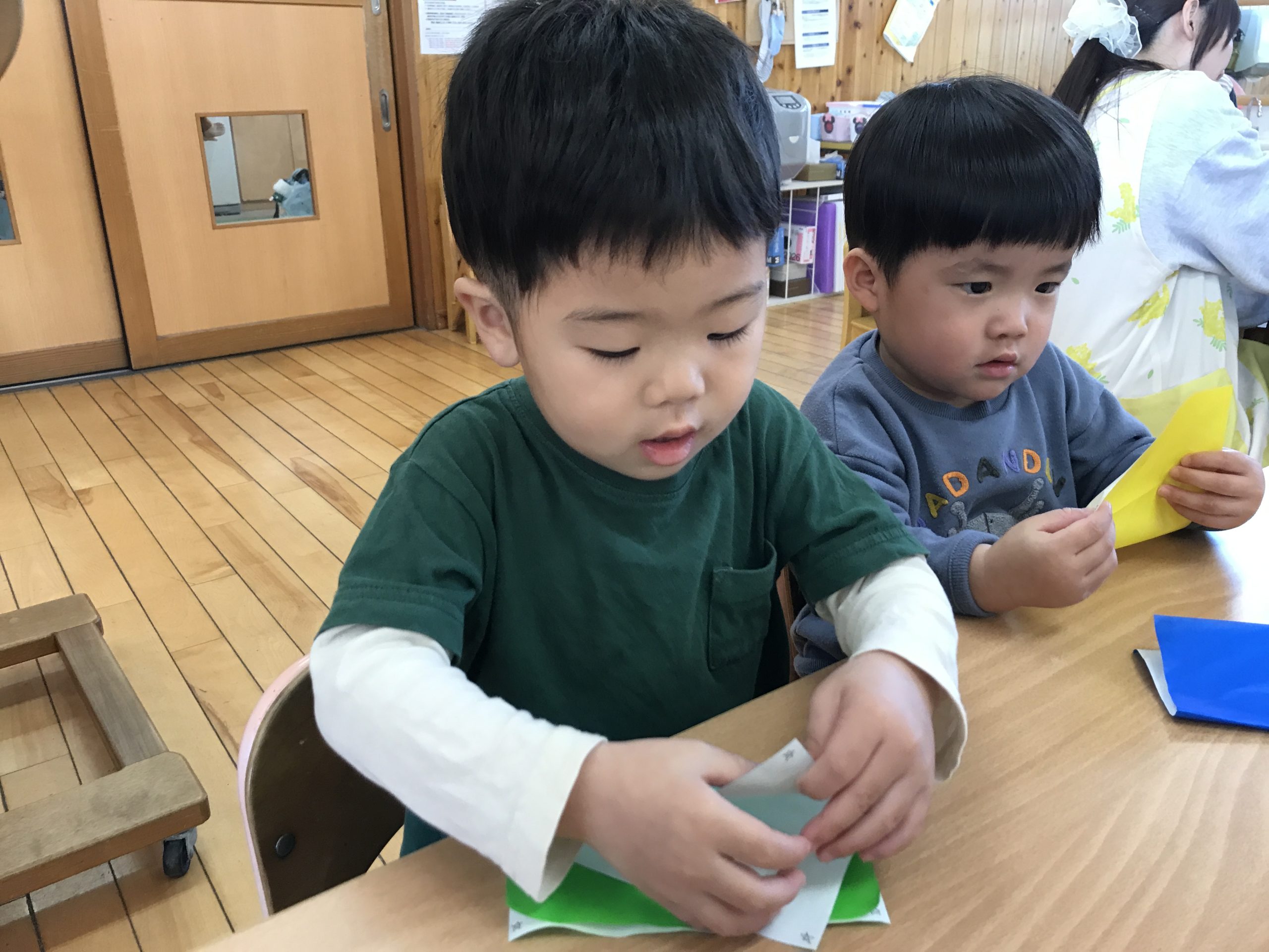 今日は折り紙を半分に折る練習をしました🎶みんな集中して取り組むことができました✨