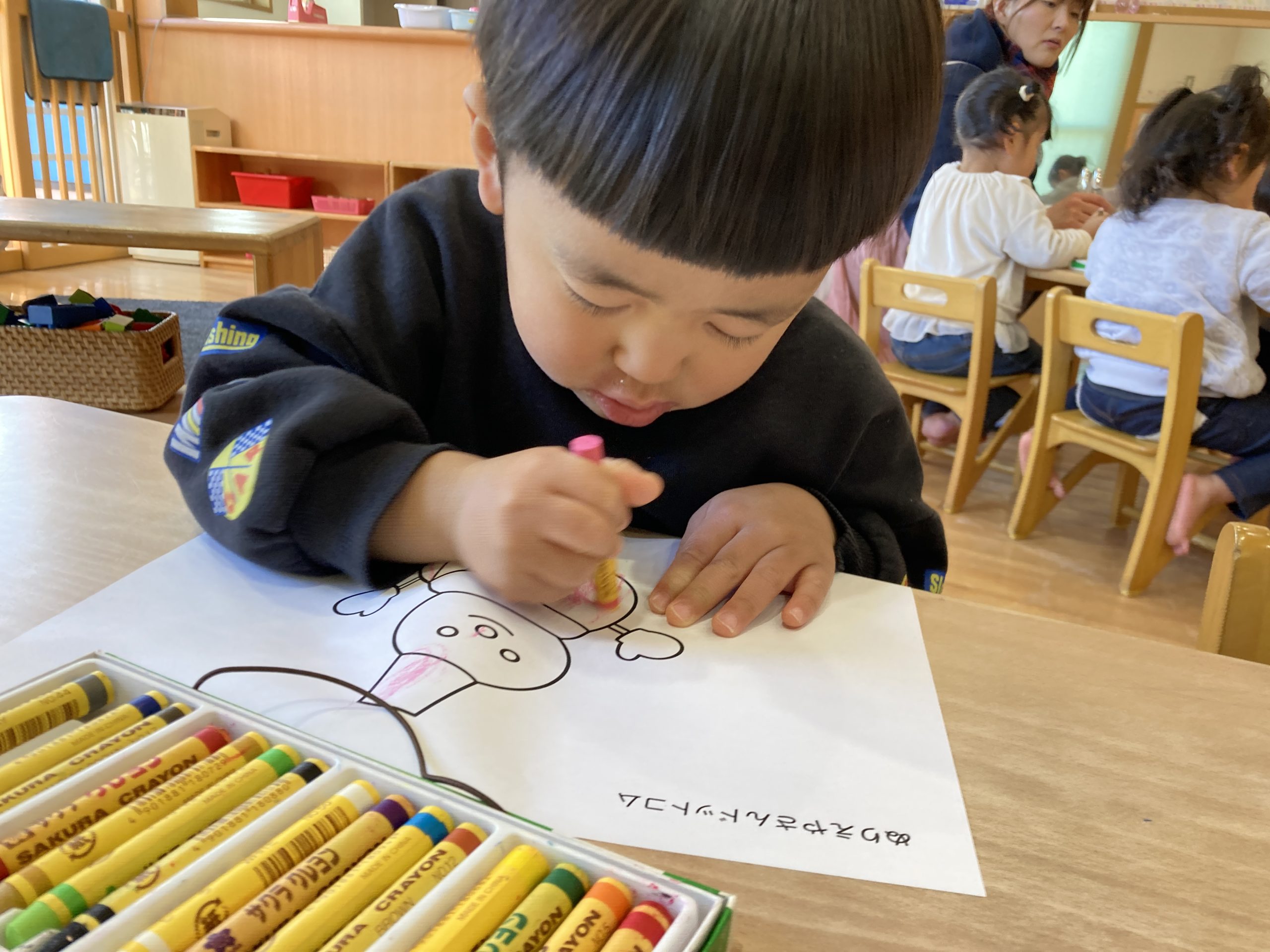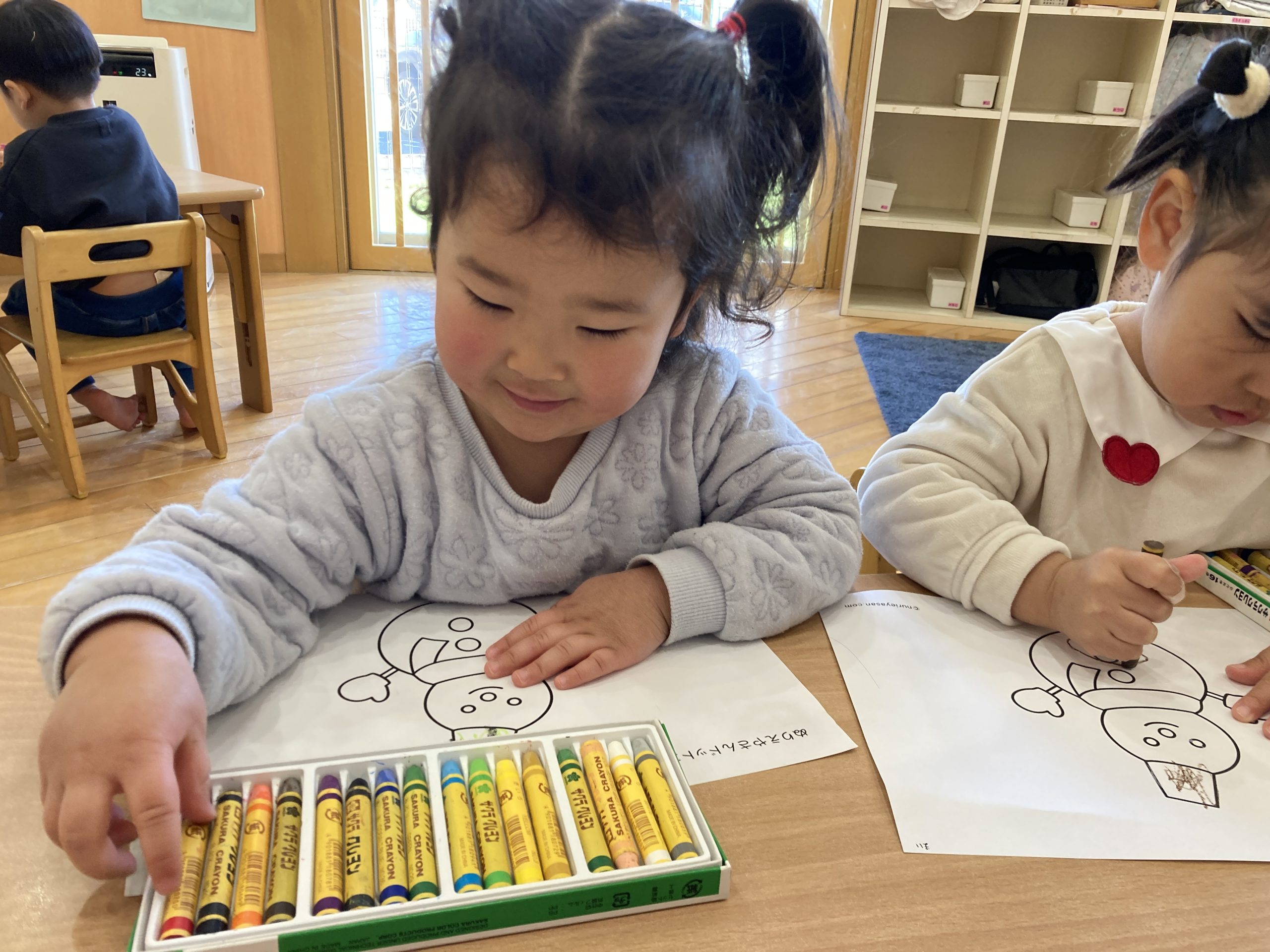 今日は、ぬりえとお絵描きをしました😊❤好きな色のクレヨンを使って楽しくお絵描きをしていましたよ~🌌