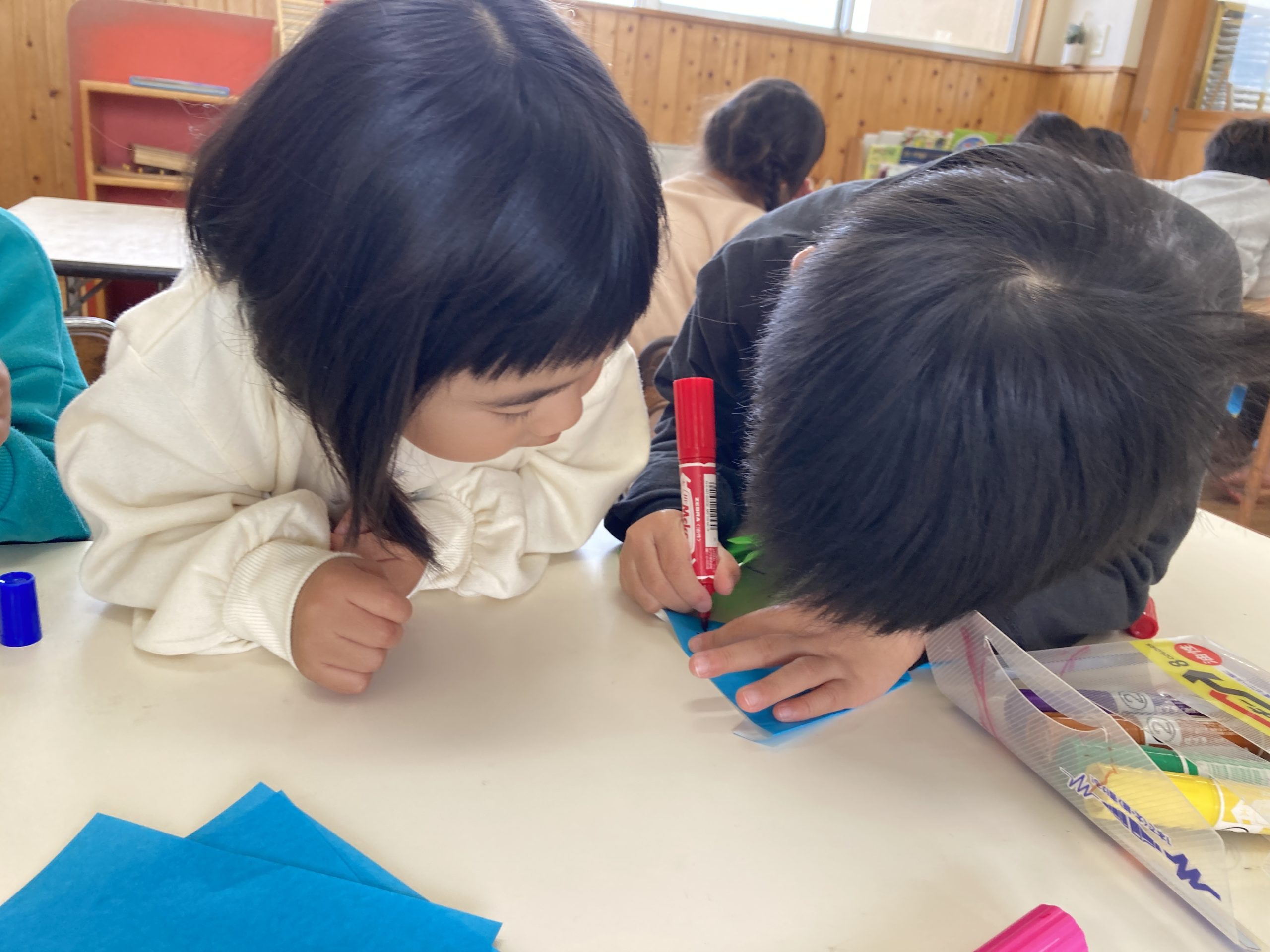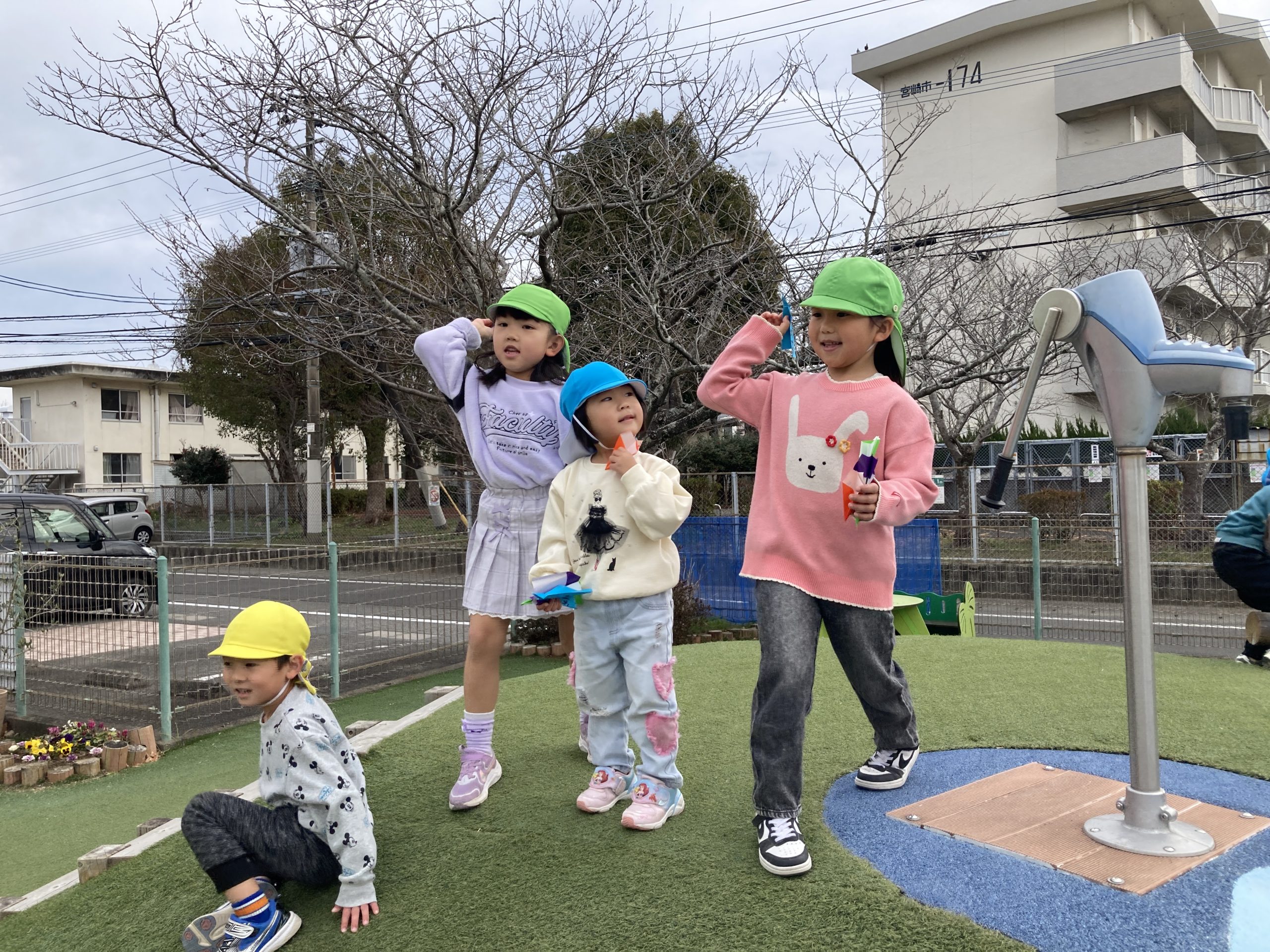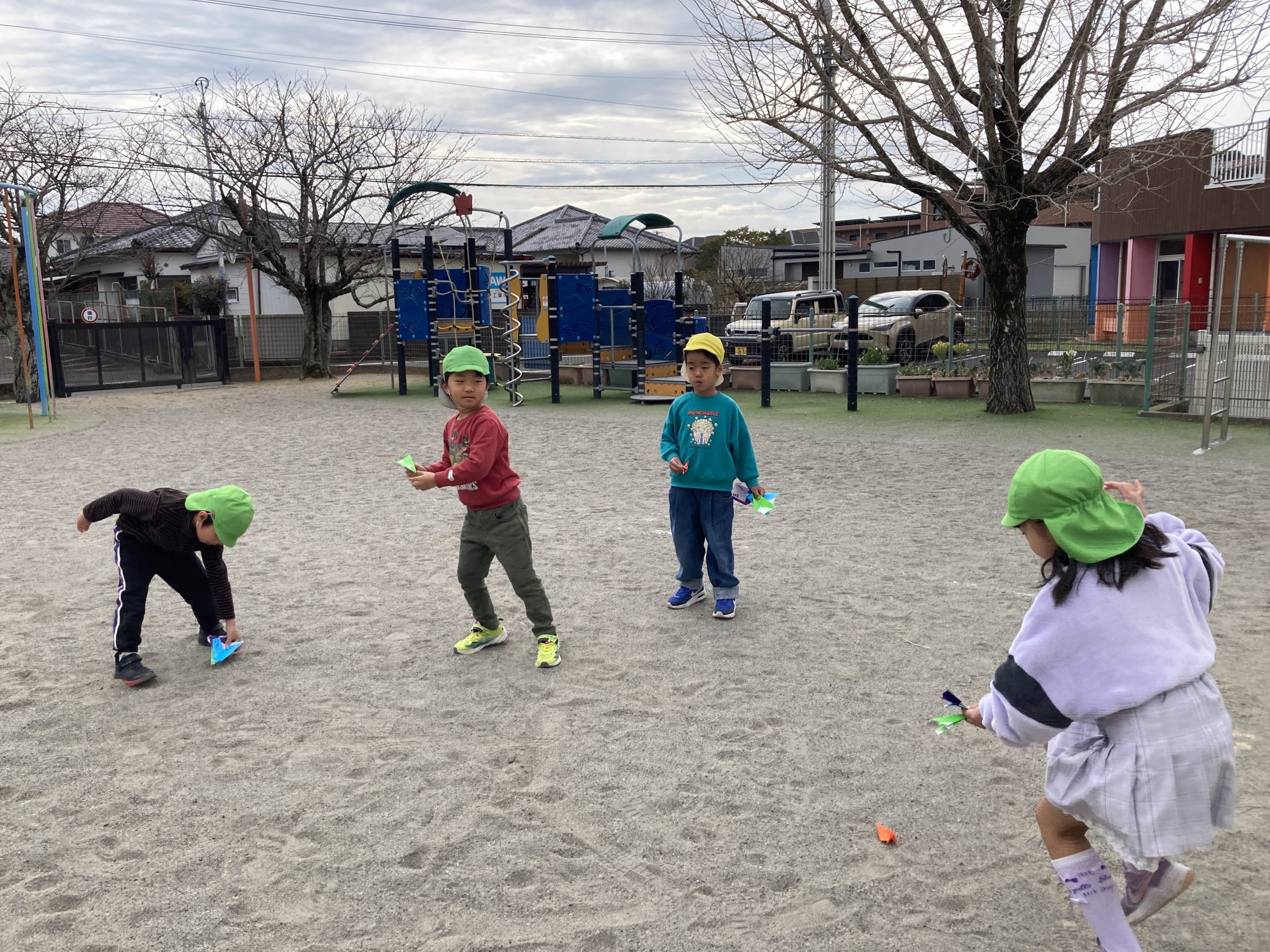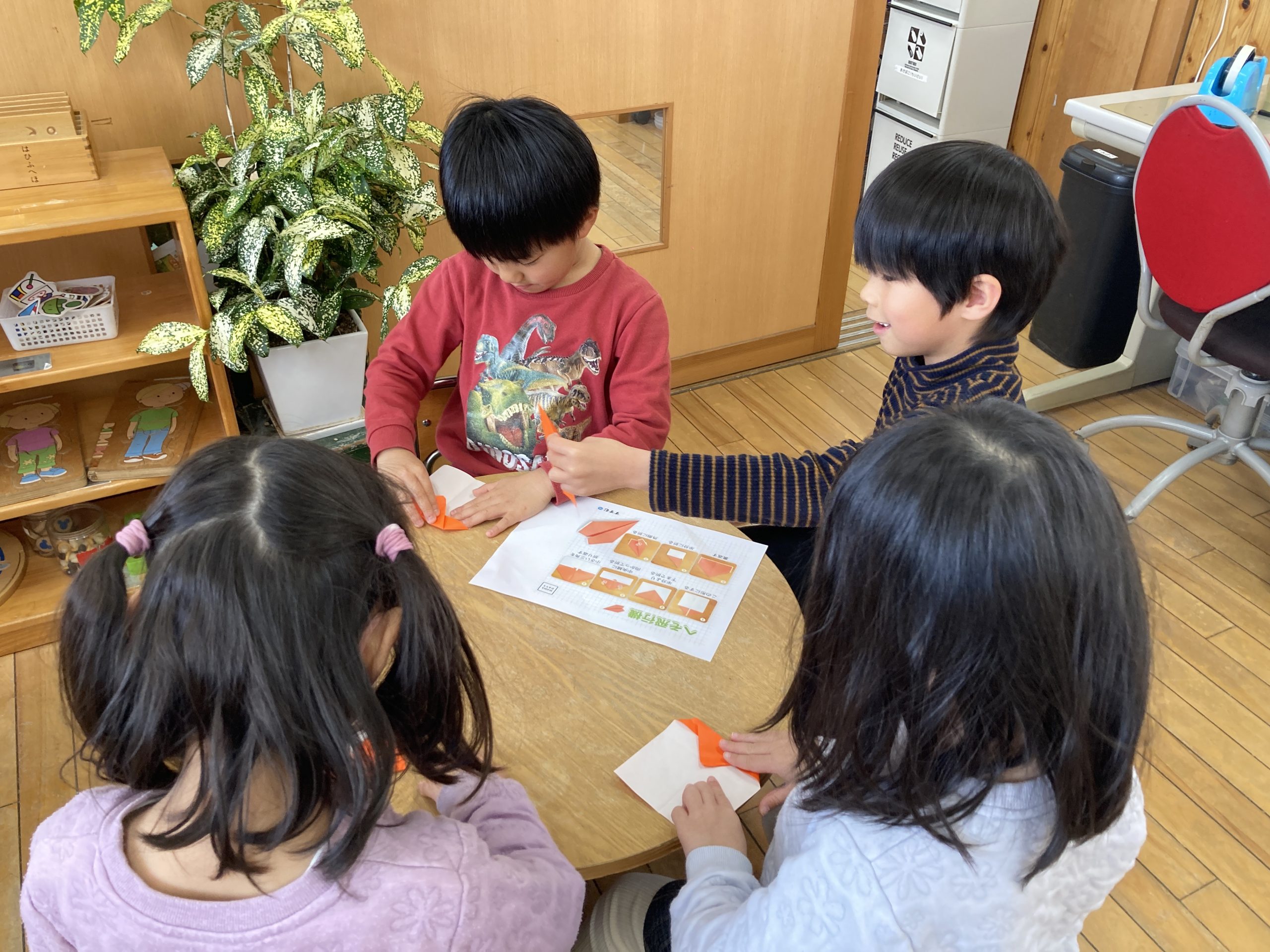 今日は4種類の紙飛行機を作って飛ばして遊びました✈️折り方の説明書を見ながらお友達と教え合いながら作っていました!外に出て飛ばしてみると「水色が1番飛んだ!」「競争しよう!」と楽しそうに遊んでいました🍀