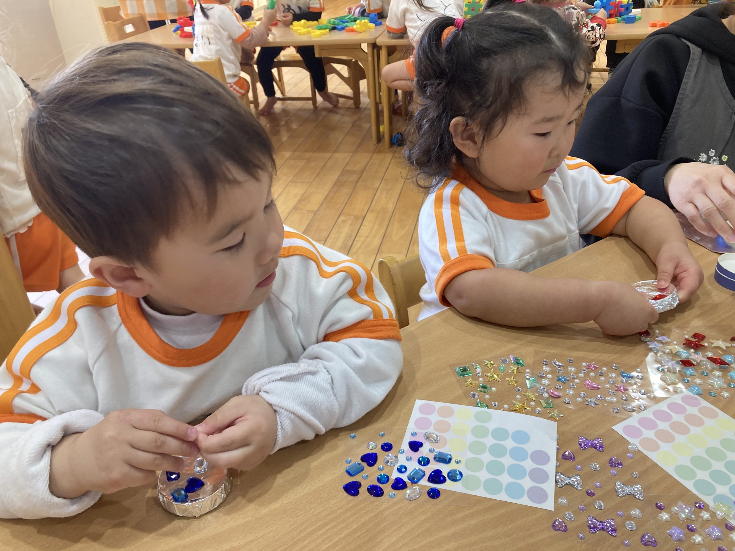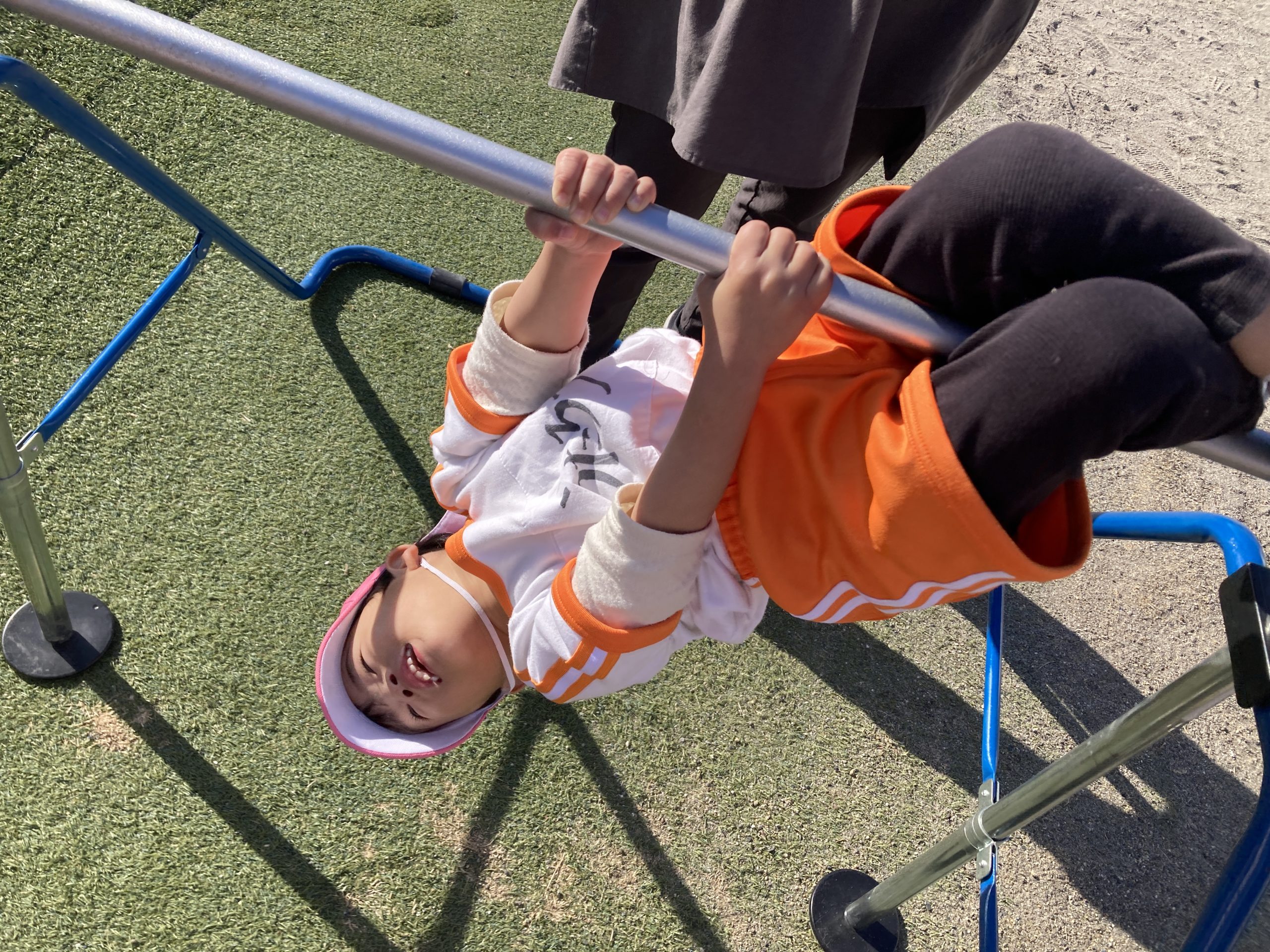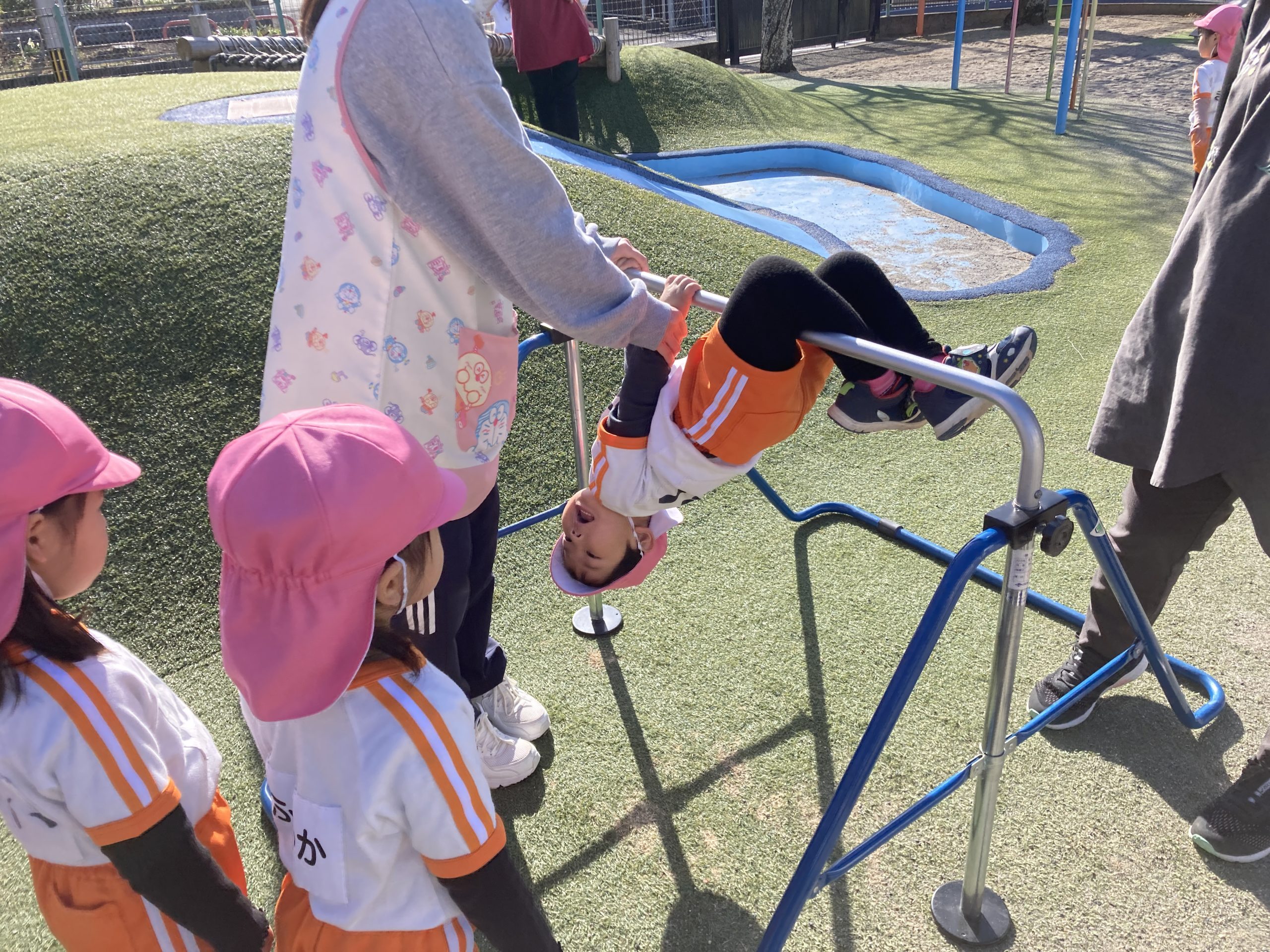 今日は、体育あそびに参加しました!鉄棒では豚の丸焼きに挑戦し、みんな一生懸命取り組んでいましたよ🏃🏻♂️✨体育遊びの後は、お買い物ごっこの製作もしました🎶