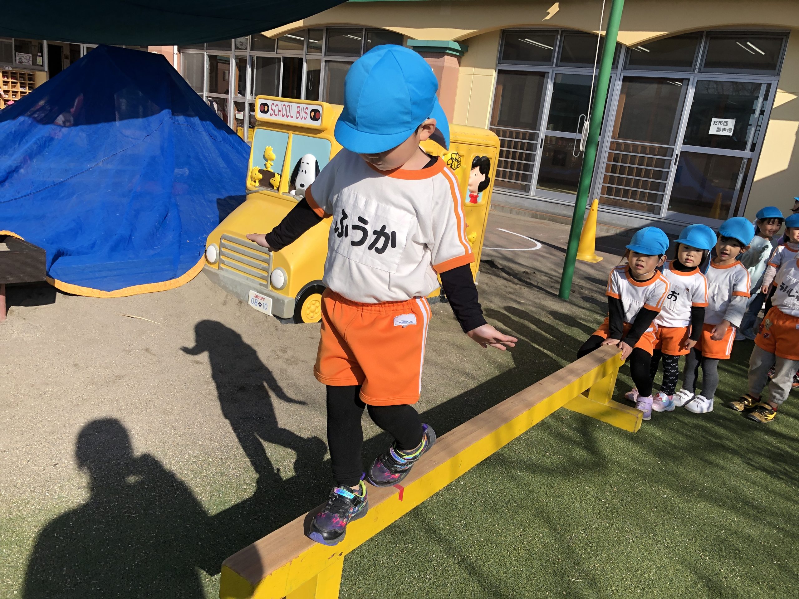 今日の体育遊びもみんな元気いっぱい取り組んでいましたよ🌞また、今回は初めて前回りに挑戦しました!!初めは、回ることに少し不安がる子もいましたが何度か練習し慣れてくると保育者の補助の元回ることができましたよ😊✨