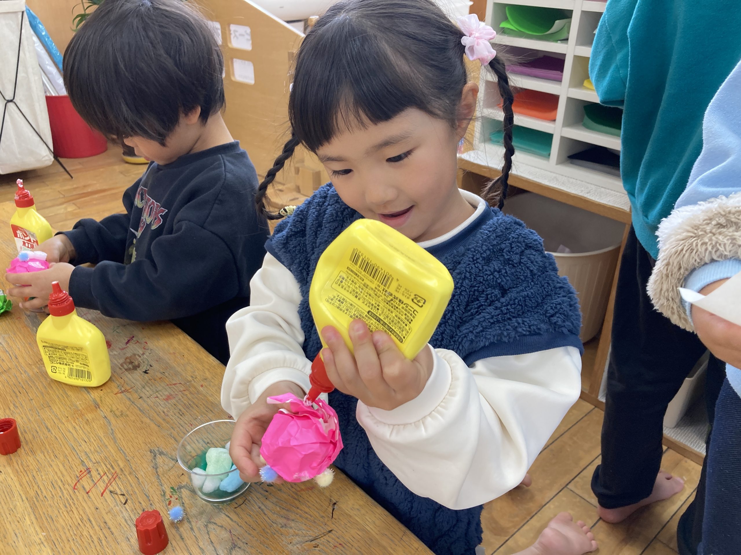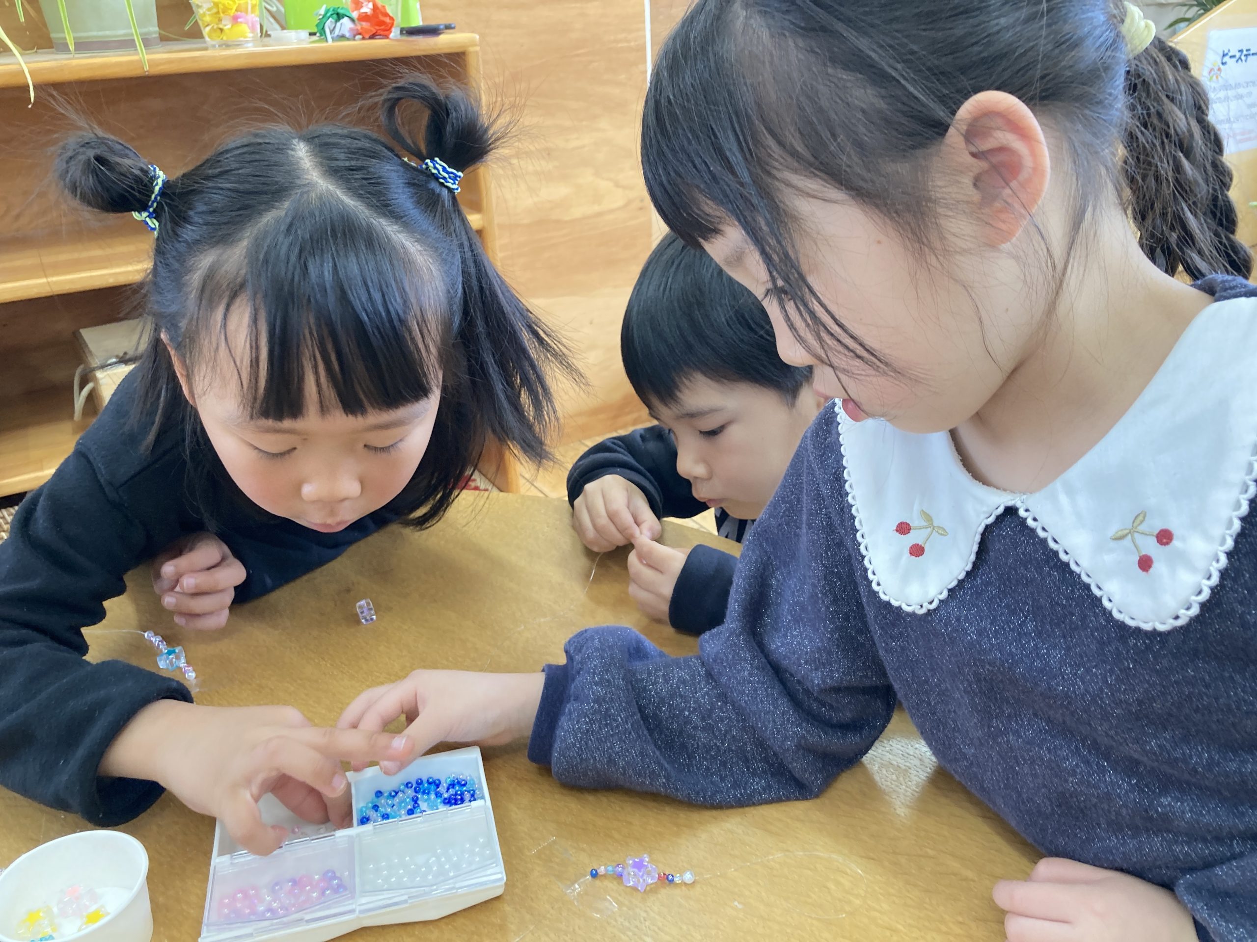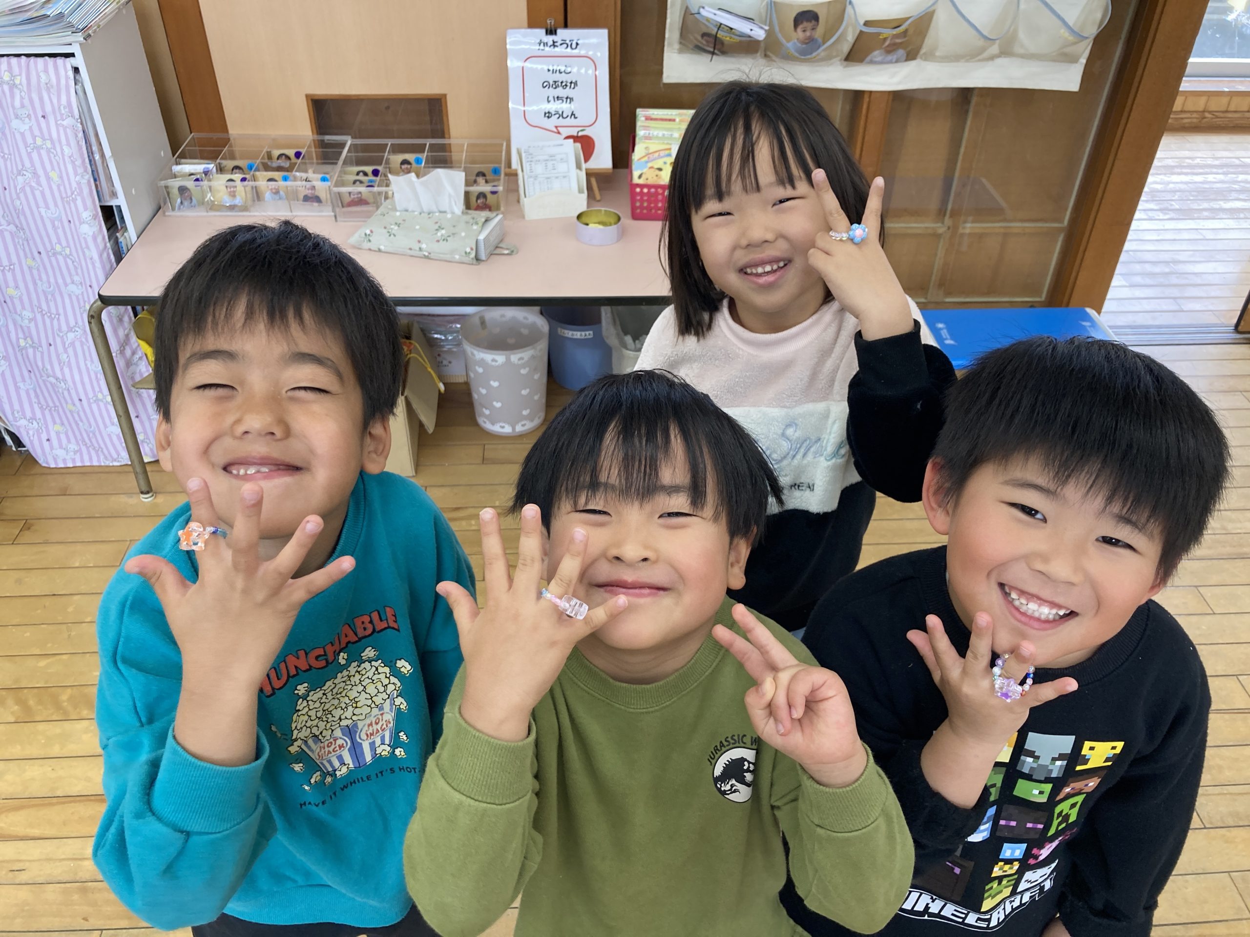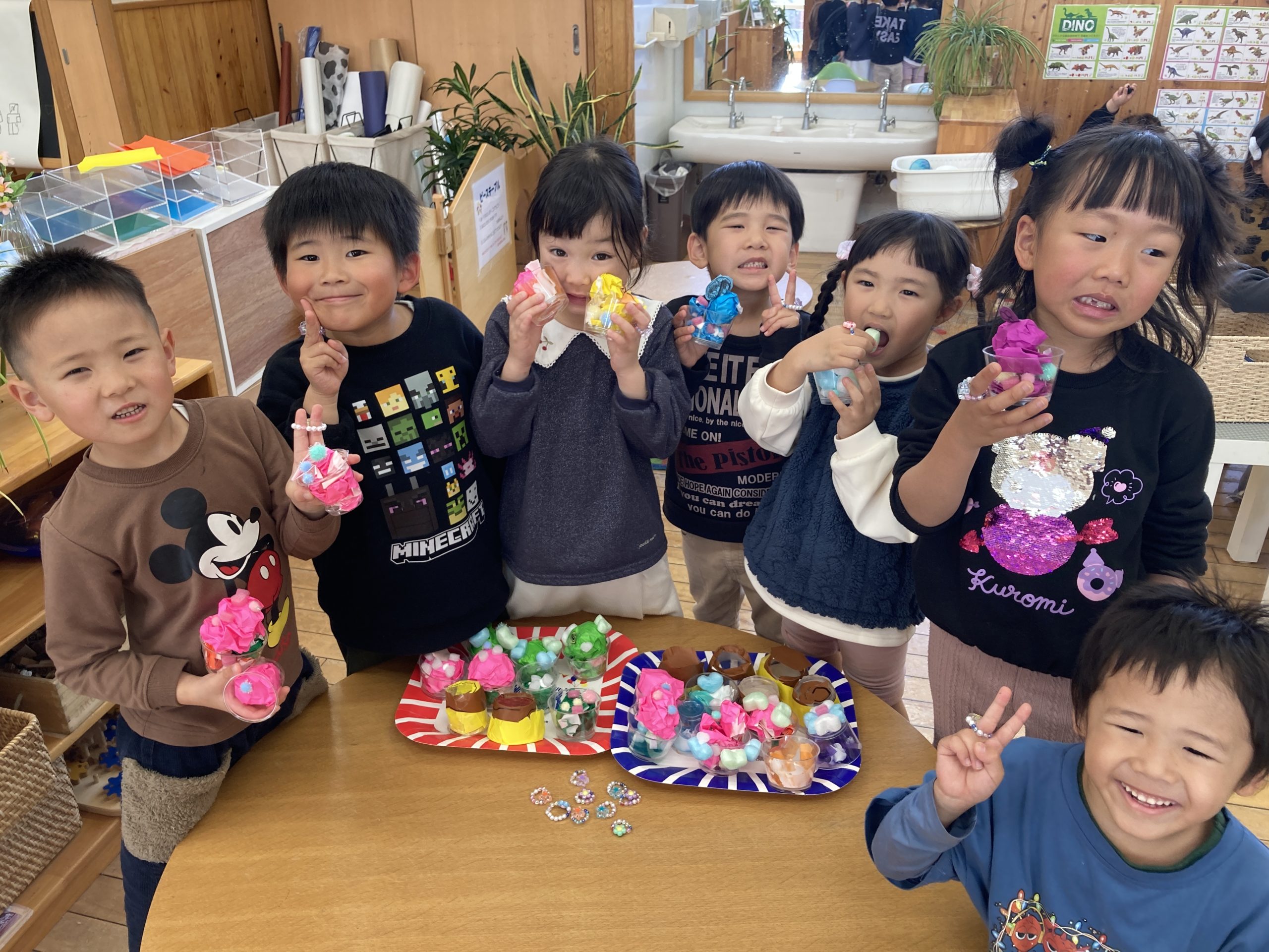 今日はお買い物ごっこの商品製作でバイキングのデザートと指輪を作りました!デザートはパフェ・プリン・ゼリーの中から作りたいものを1人1つ以上作りました🍨指輪はビーズを使って可愛い指輪が完成しました💍指輪は「お買い物ごっこで買いたい!」と持って帰りたそうにしてました🥹💖