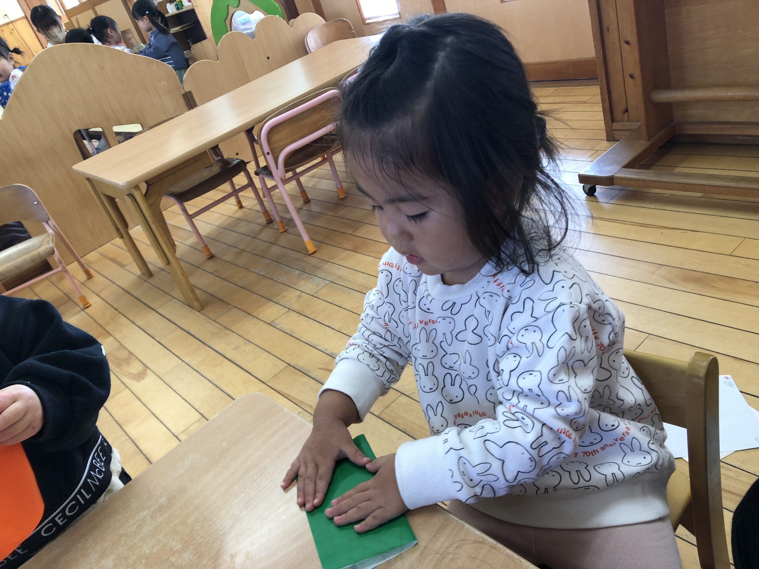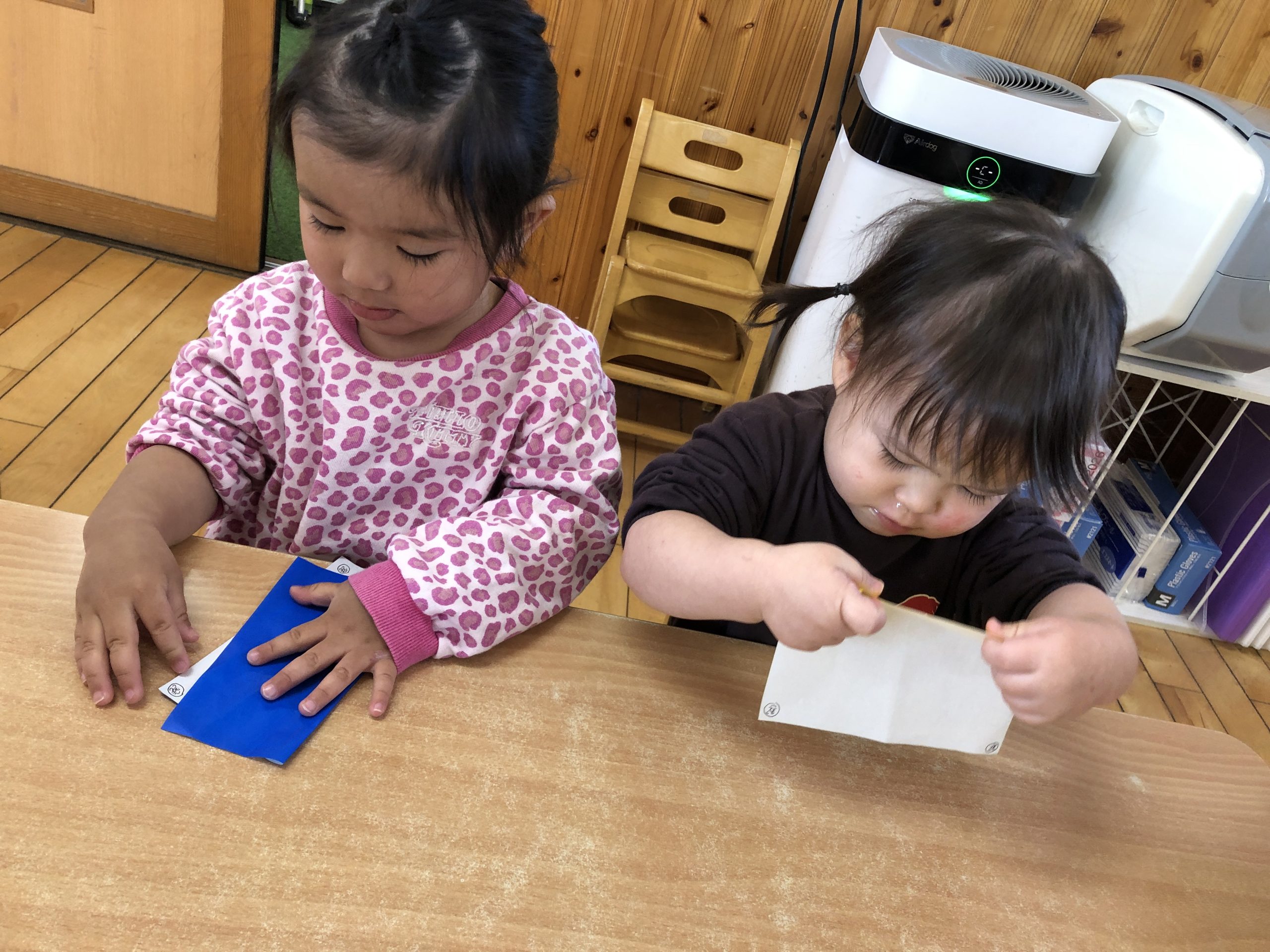 今日は折り紙遊びをしました!半分折りが上手にできましたよ⭐️