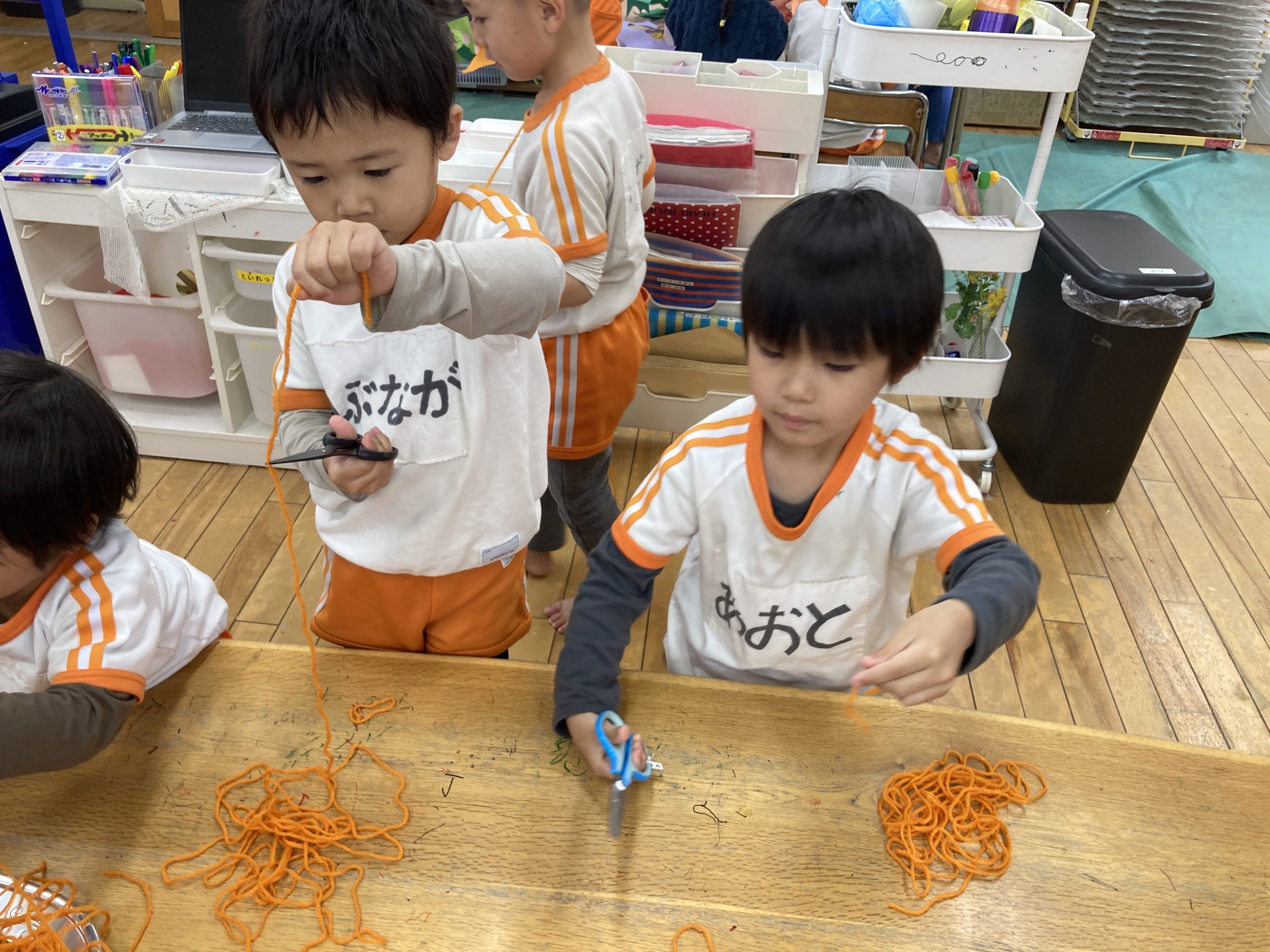 今日の体育遊びは、平均台・ケンケン・鉄棒・登り棒・ドッヂボールなどをしてたくさん体を動かしました✊🏻また、お買い物ごっこの商品製作でナポリタンを作りました🍝✨