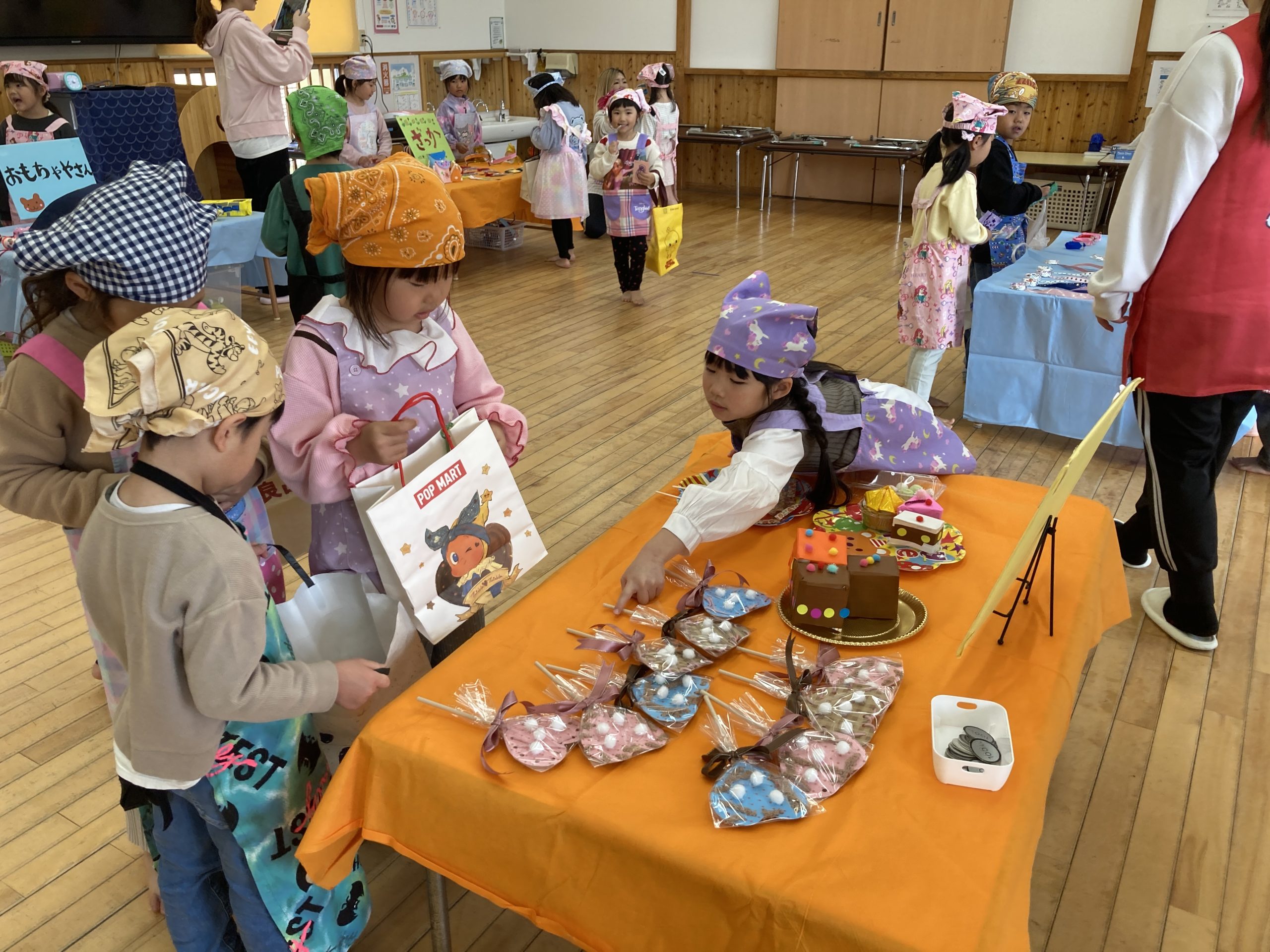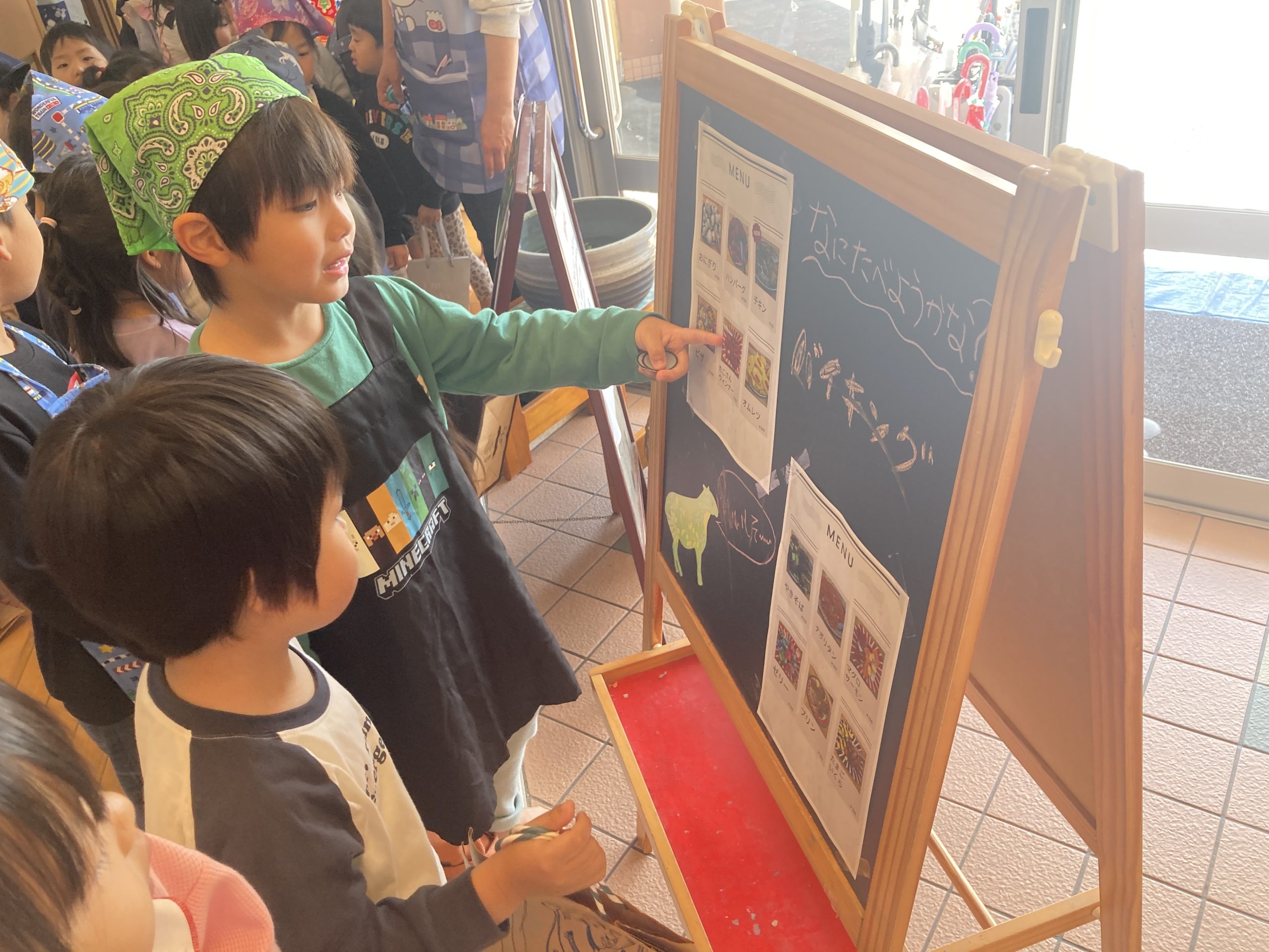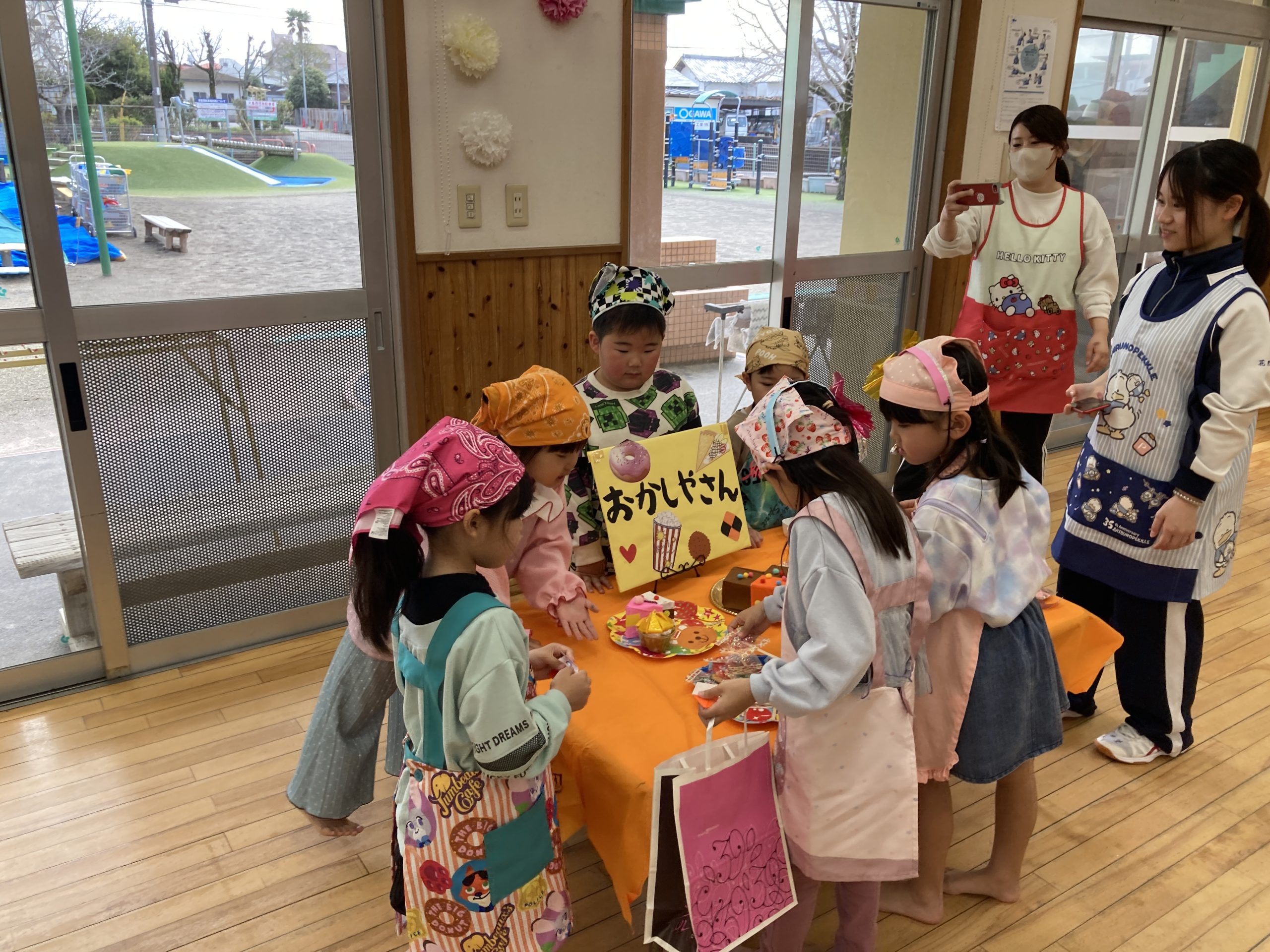 今日はお買い物ごっこに参加しました。店員さんになったり、お客さんになったりしてやり取りを楽しんでいました。